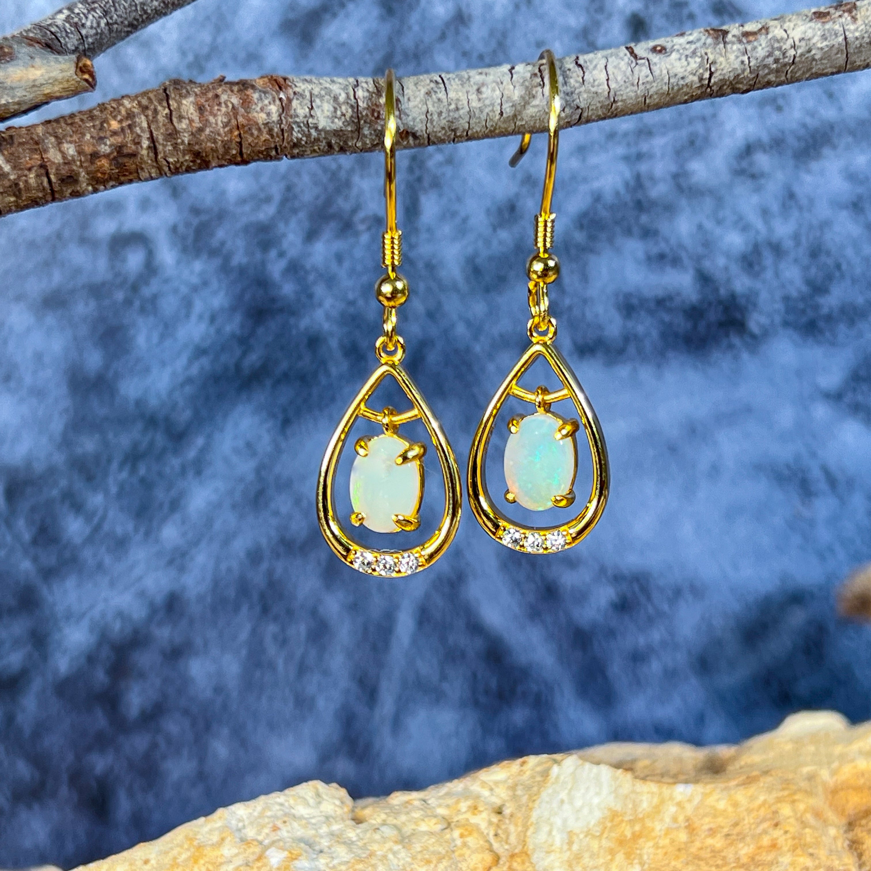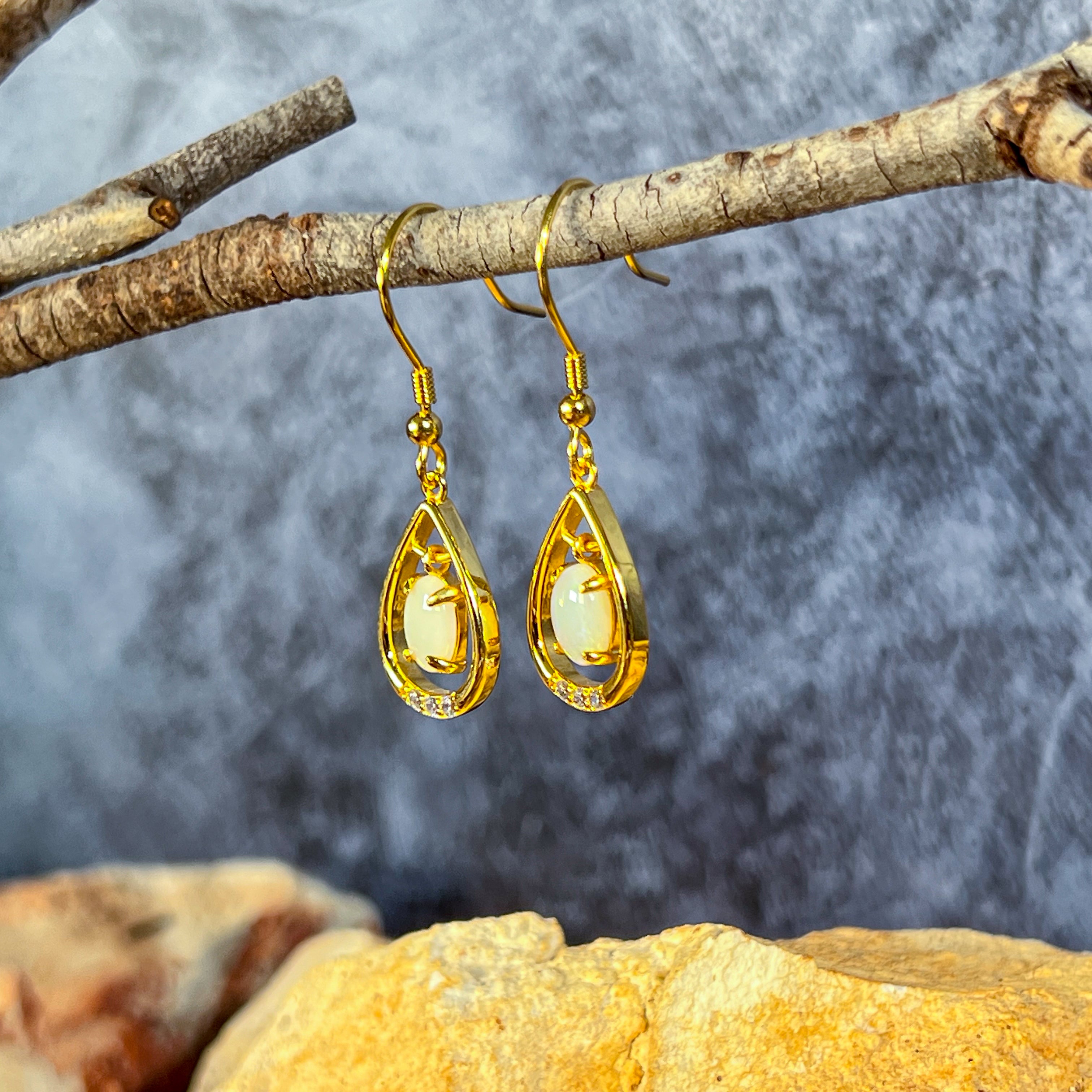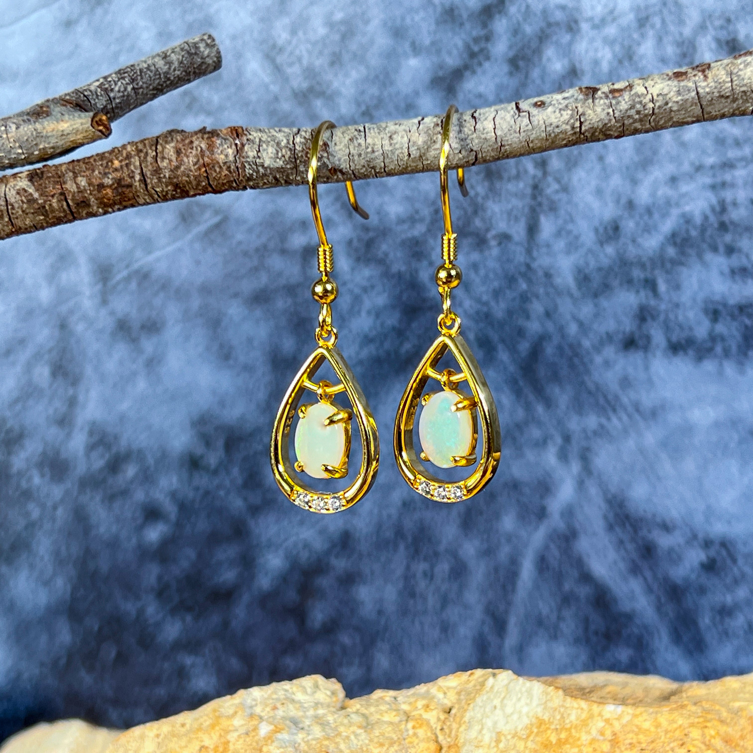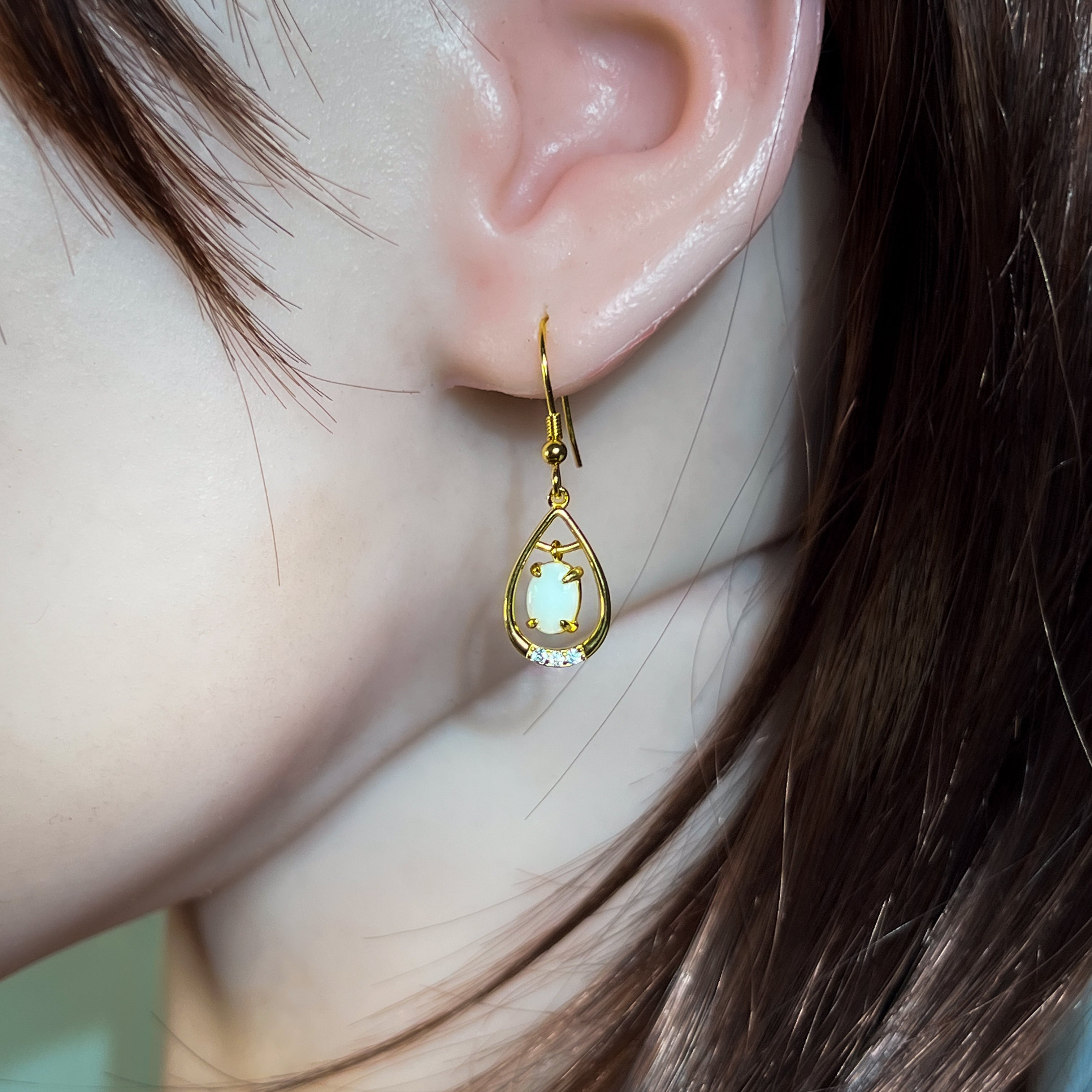 Gold Plated silver dangling pearshape frame dangling 7x5mm Opal earrings