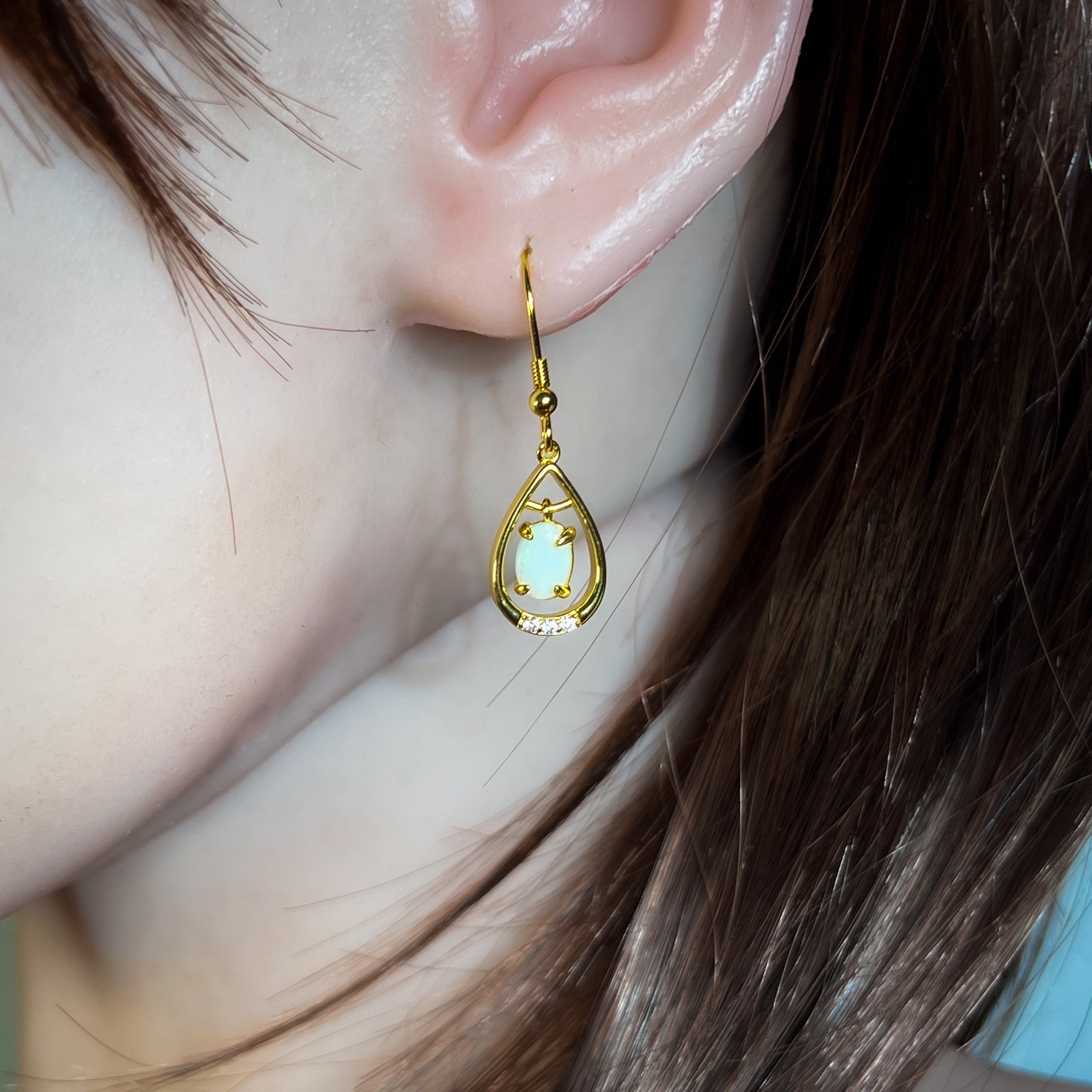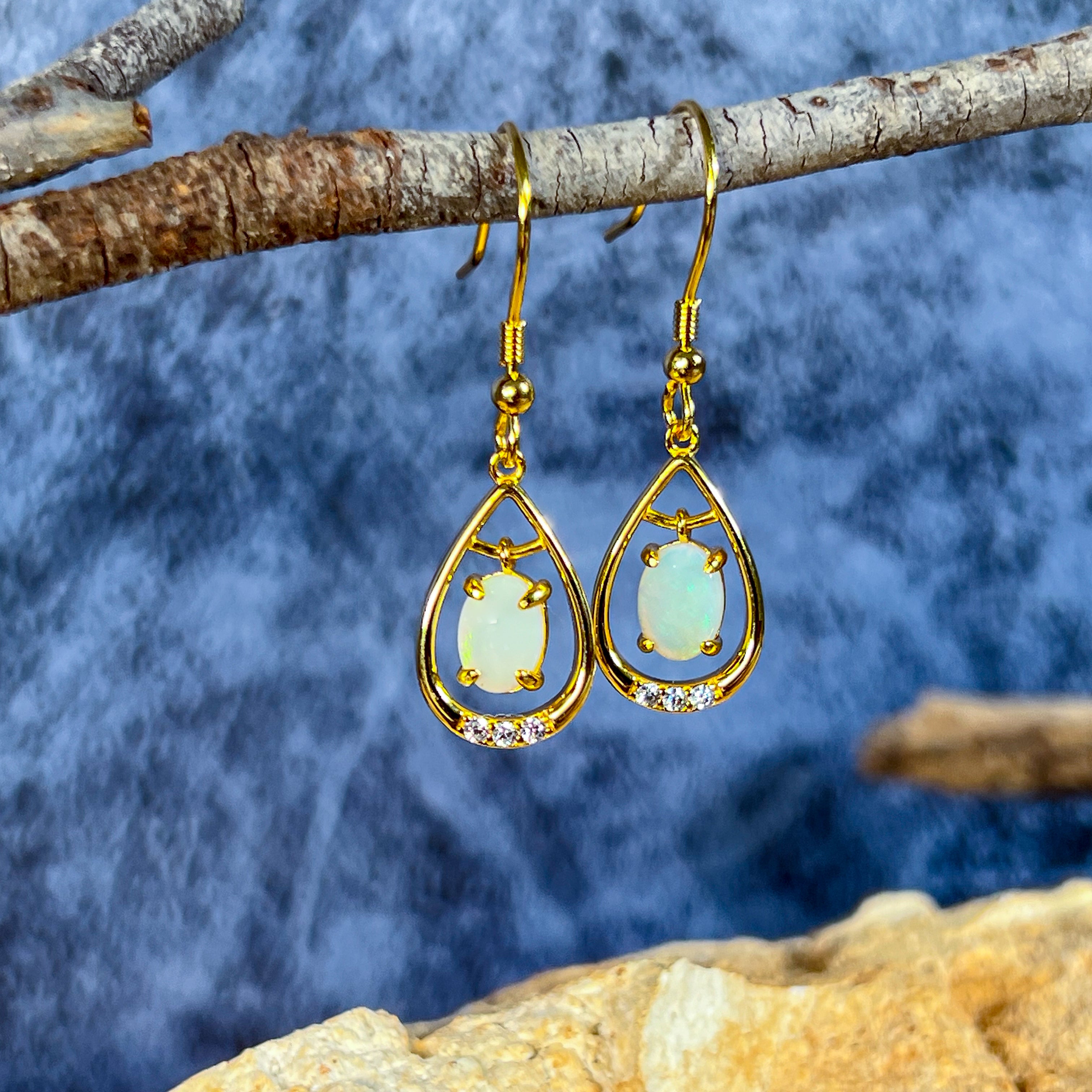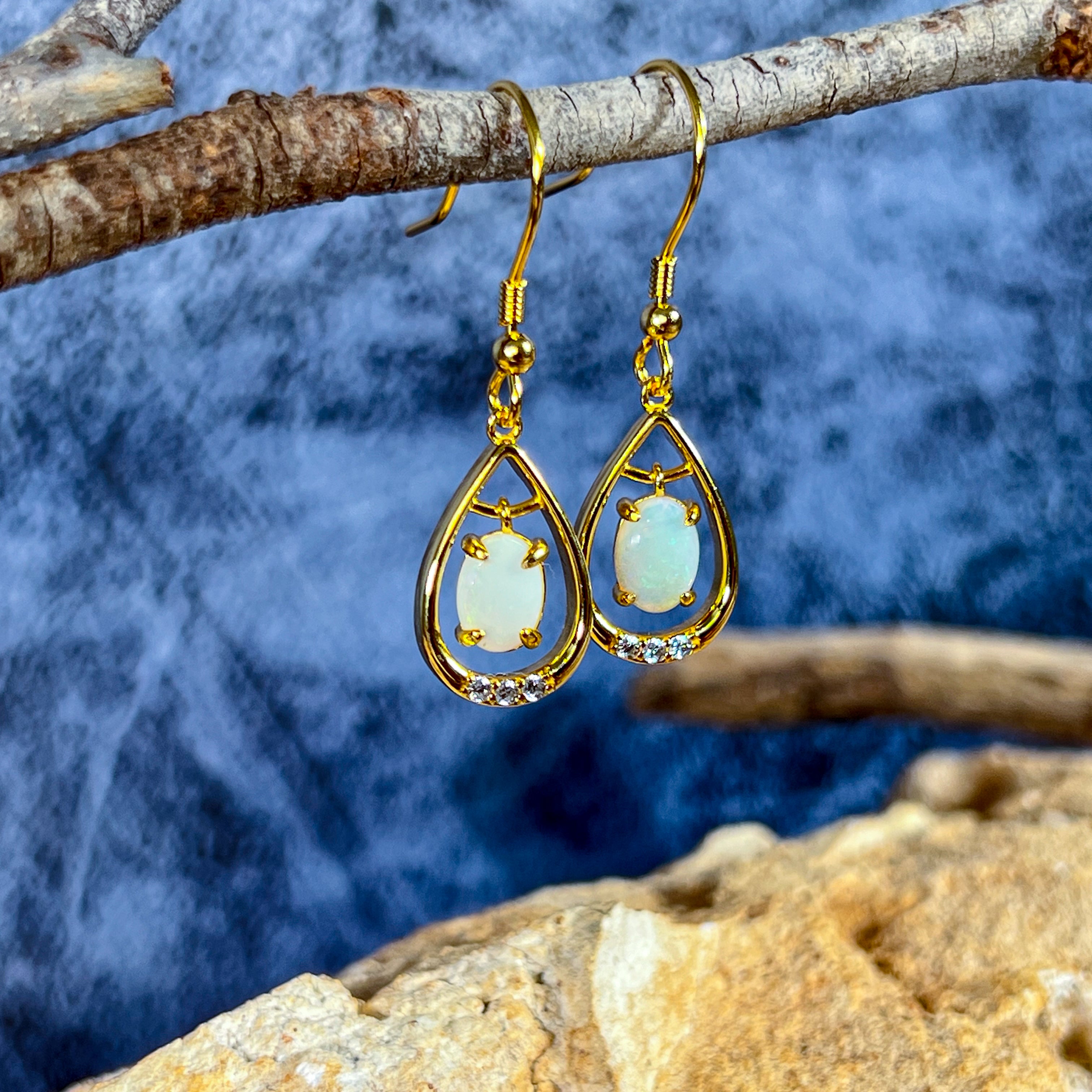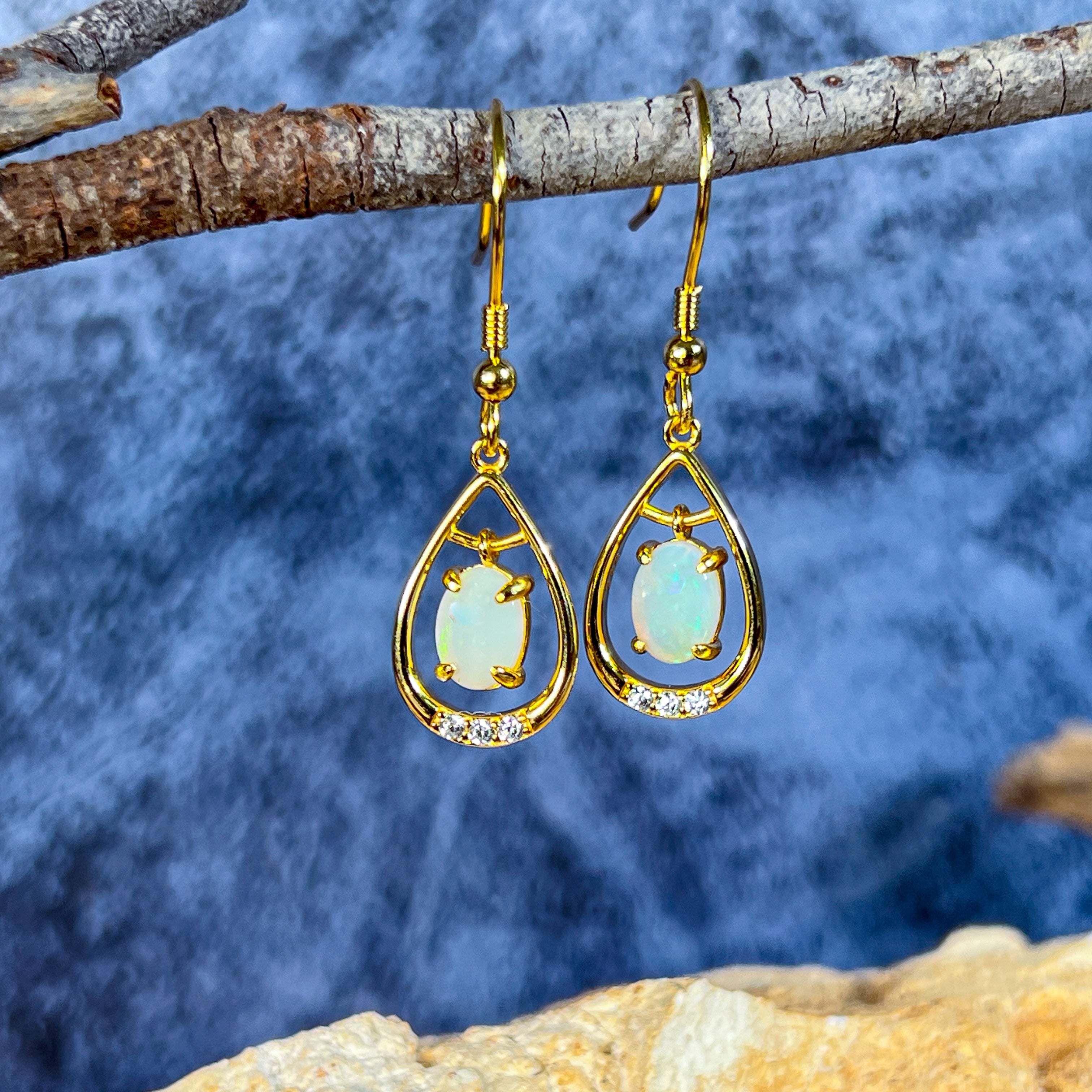 Gold Plated silver dangling pearshape frame dangling 7x5mm Opal earrings