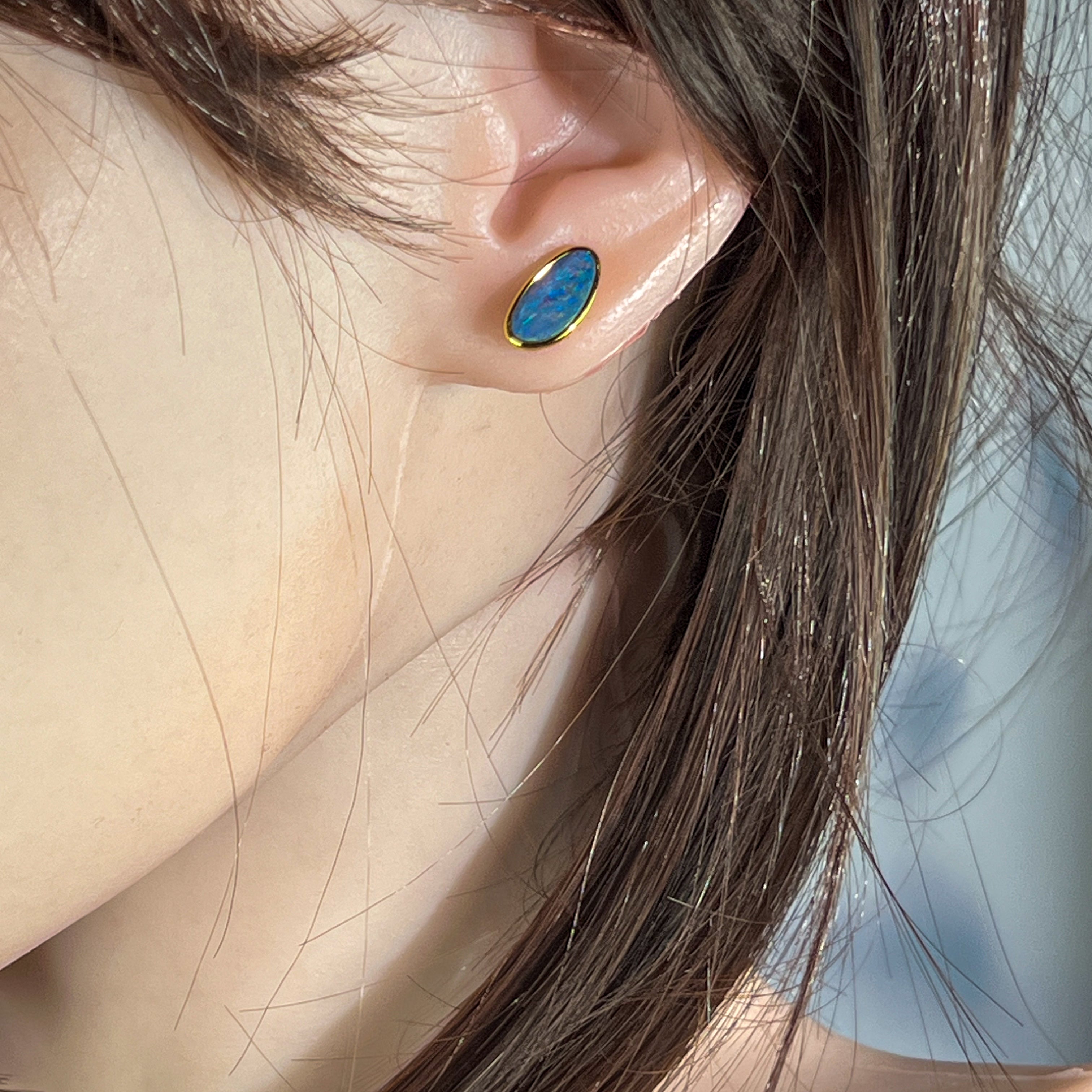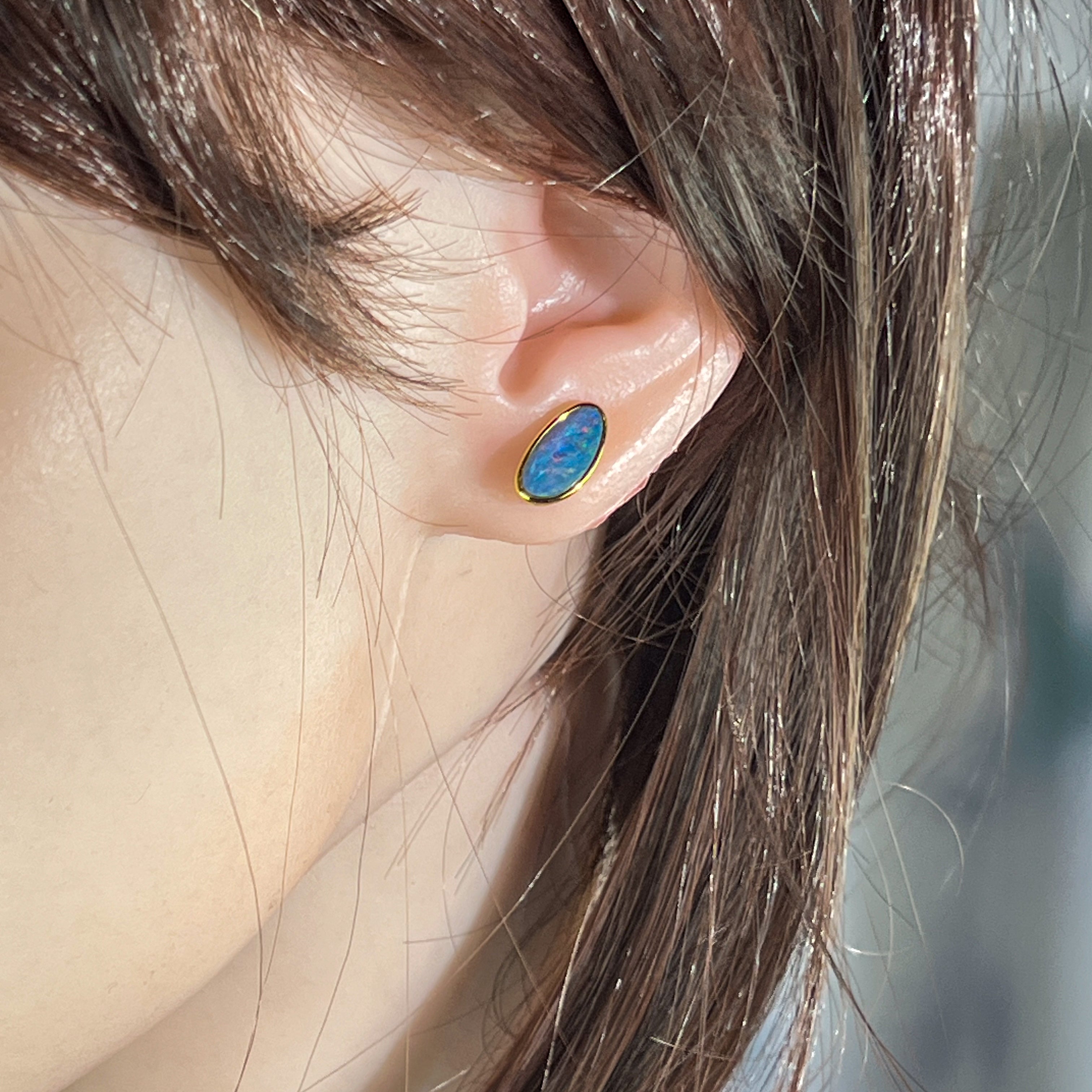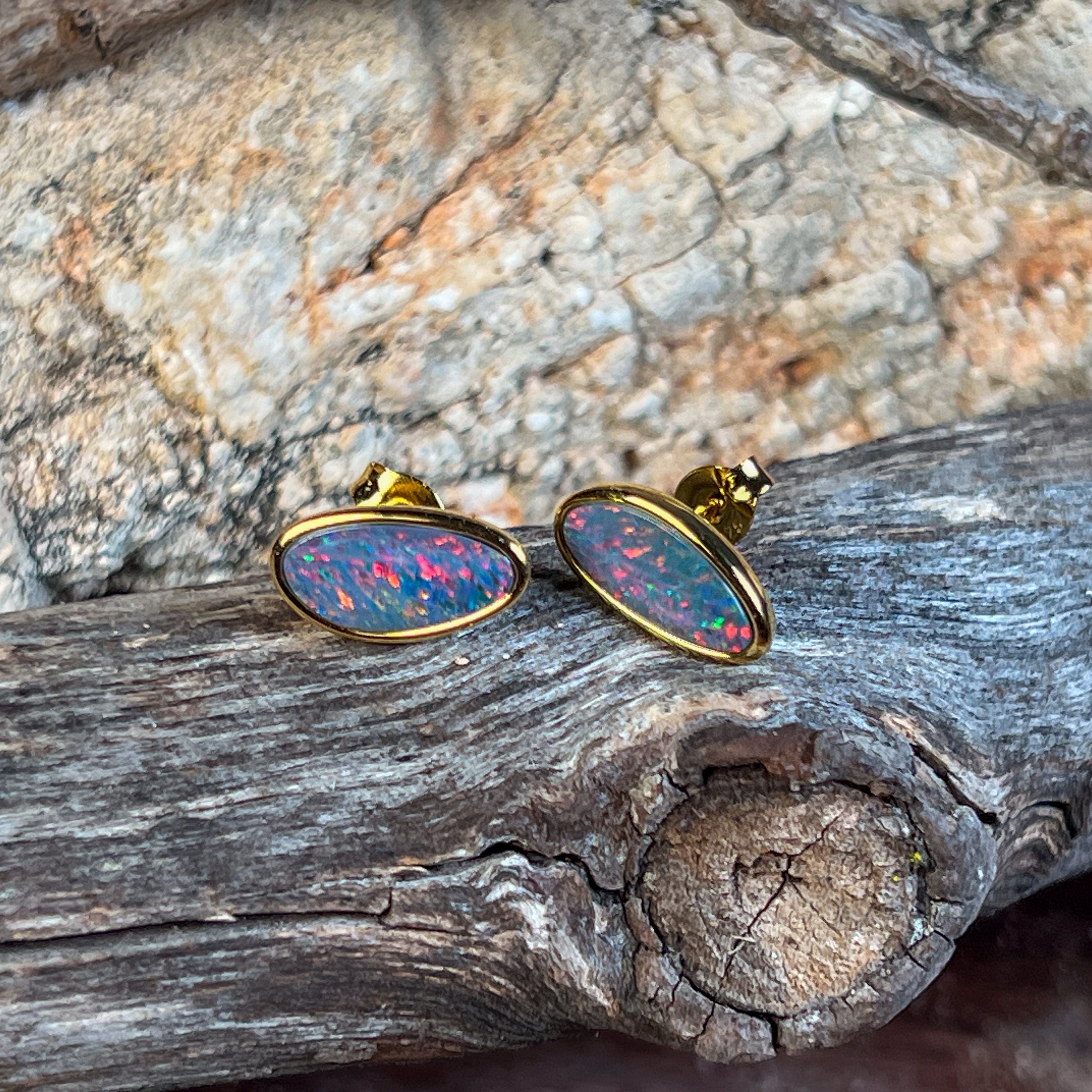 Discover the perfect blend of elegance and affordability with these stunning gold-plated silver opal doublet stud earrings. Each piece features a mesmerizing freeform opal doublet that catches the light beautifully, showcasing nature's most enchanting colours. The luxurious gold plating adds warmth and sophistication, while the secure silver backing ensures lasting comfort for everyday wear. These versatile studs effortlessly transition from casual to formal occasions, making them an essential addition to any jewellery collection. Experience the timeless appeal of opal with a modern twist.