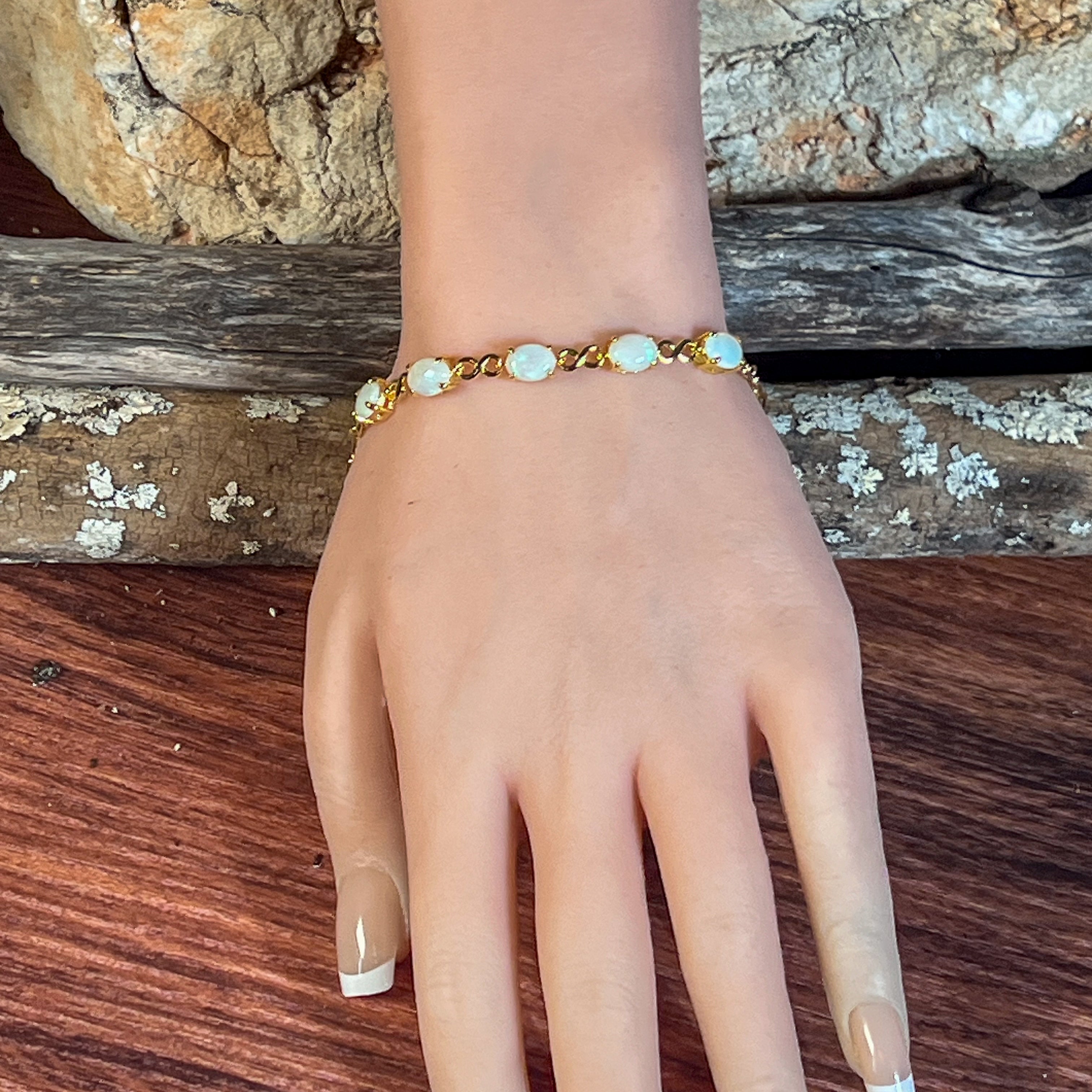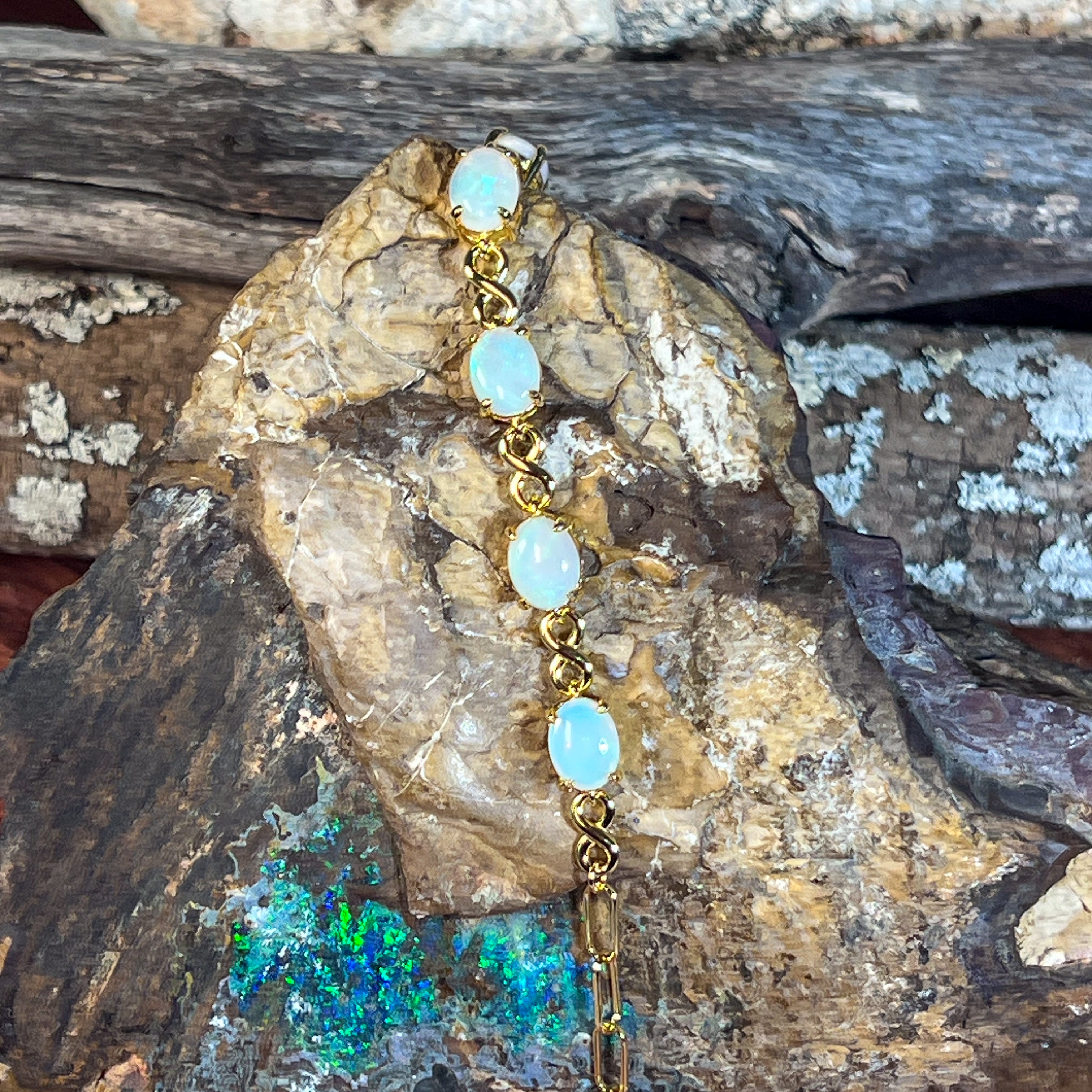 Gold plated silver infinity design light opal 8x6mm bracelet