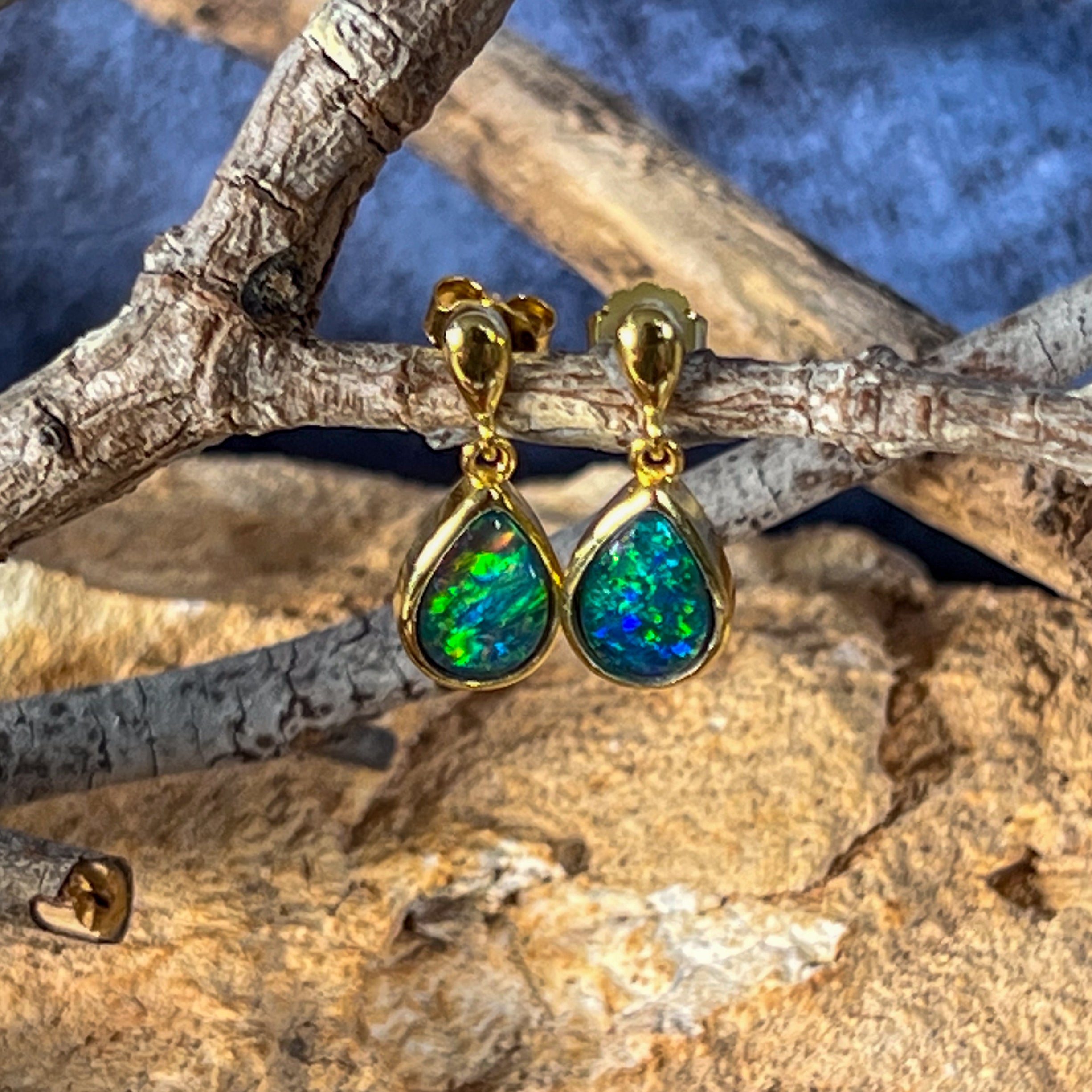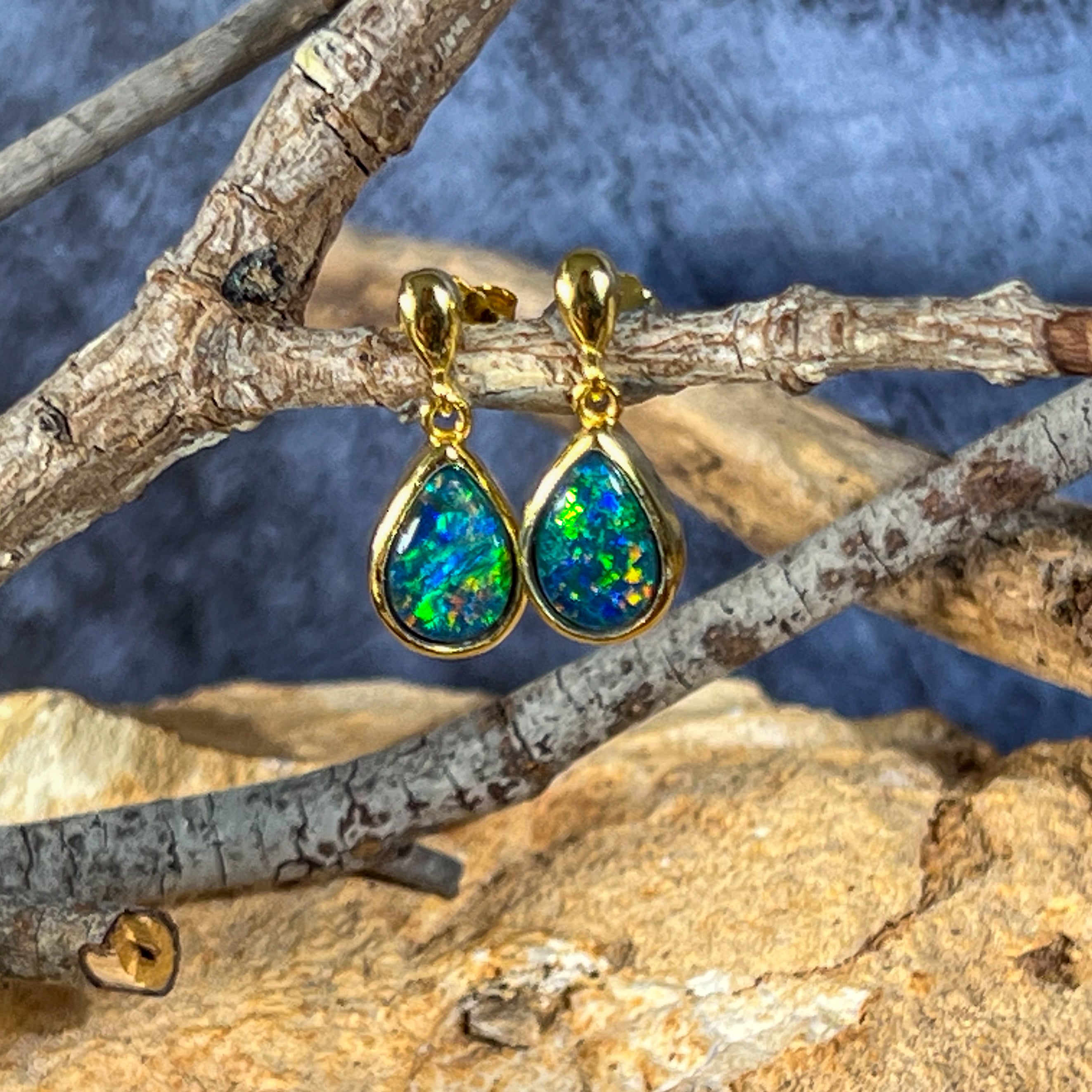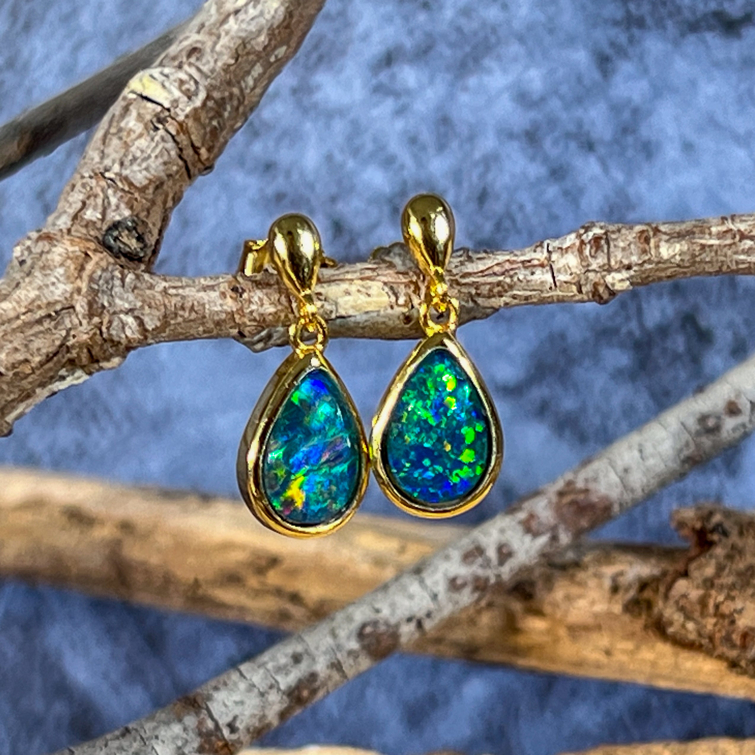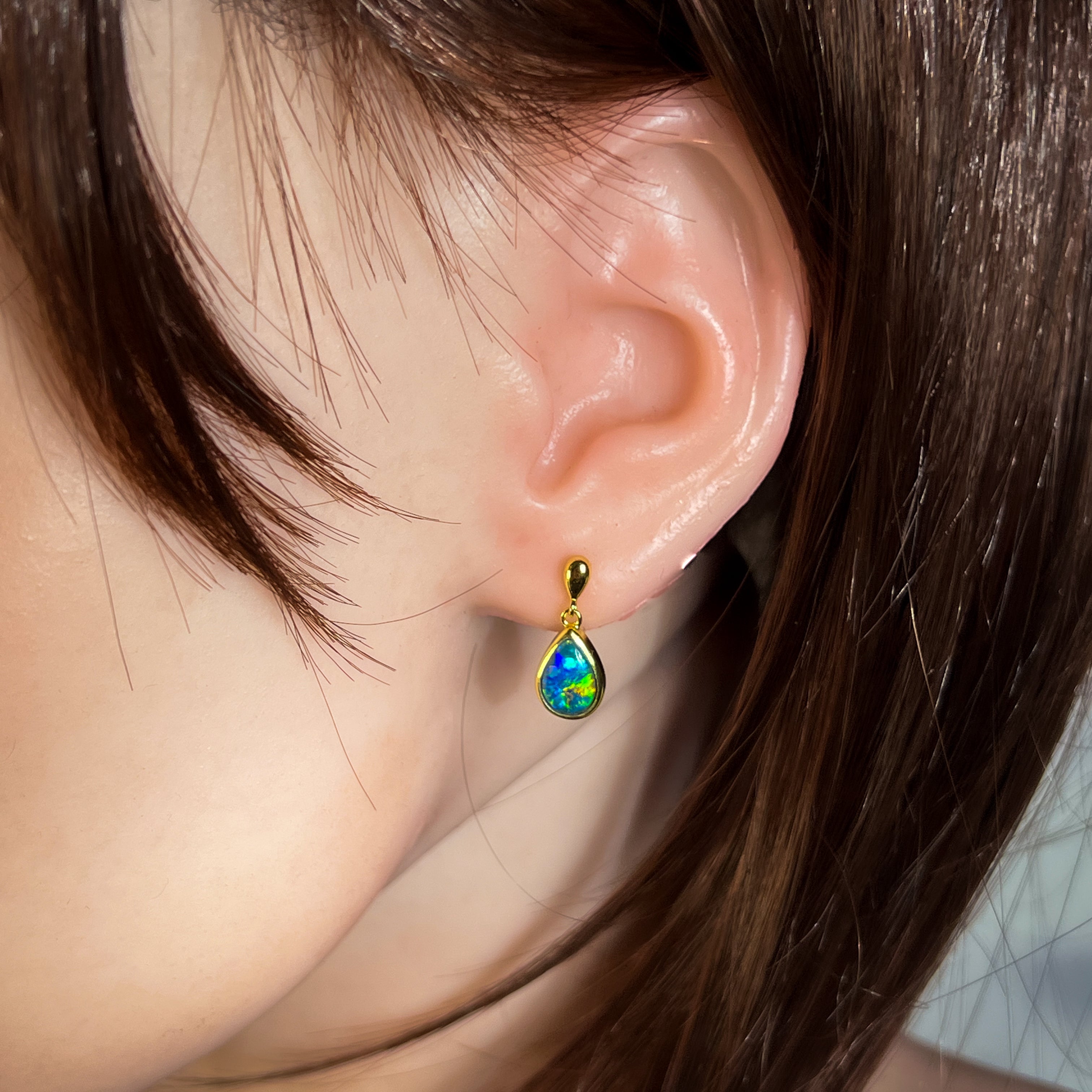 Gold plated Silver short drop pear shape 9x6mm Opal triplet earrings