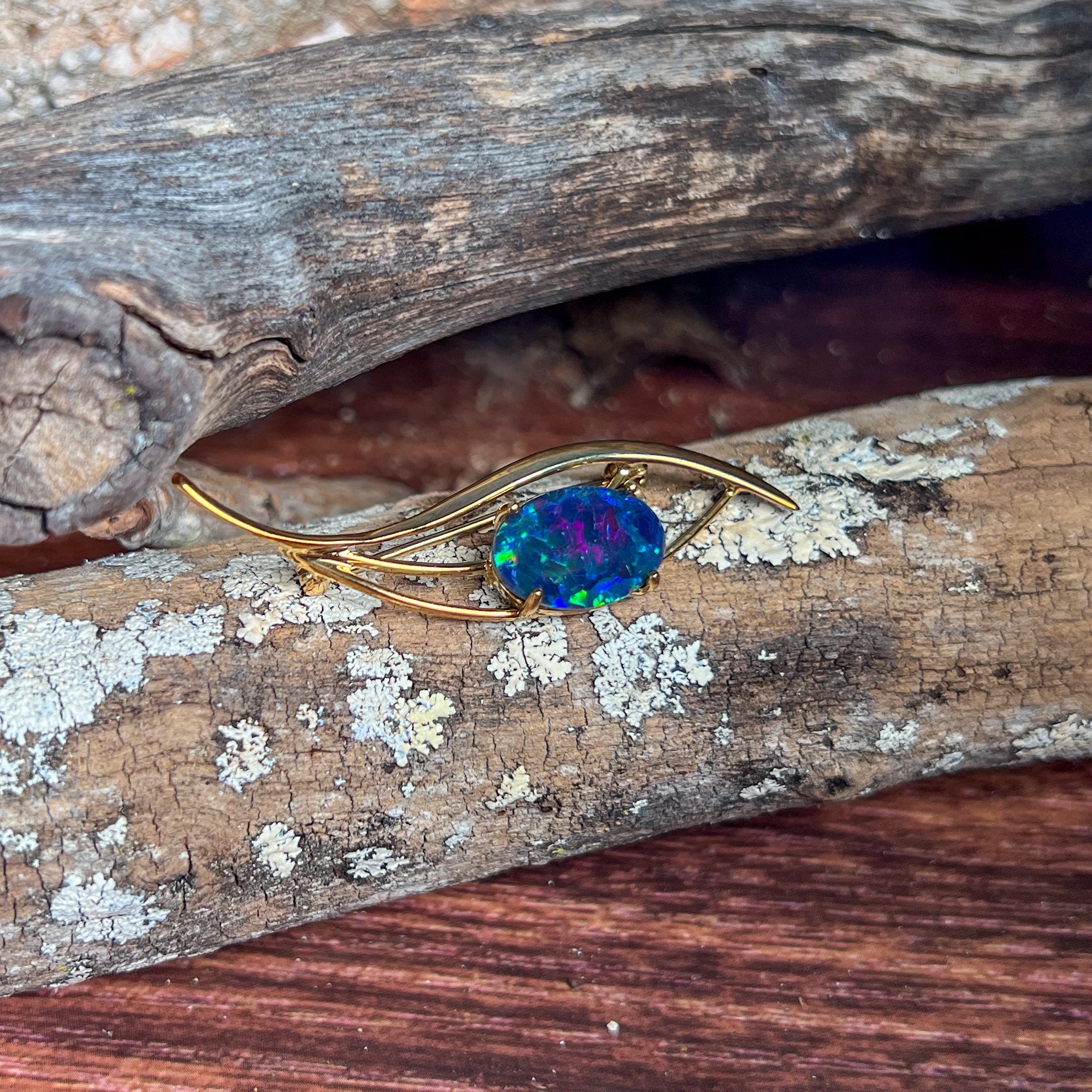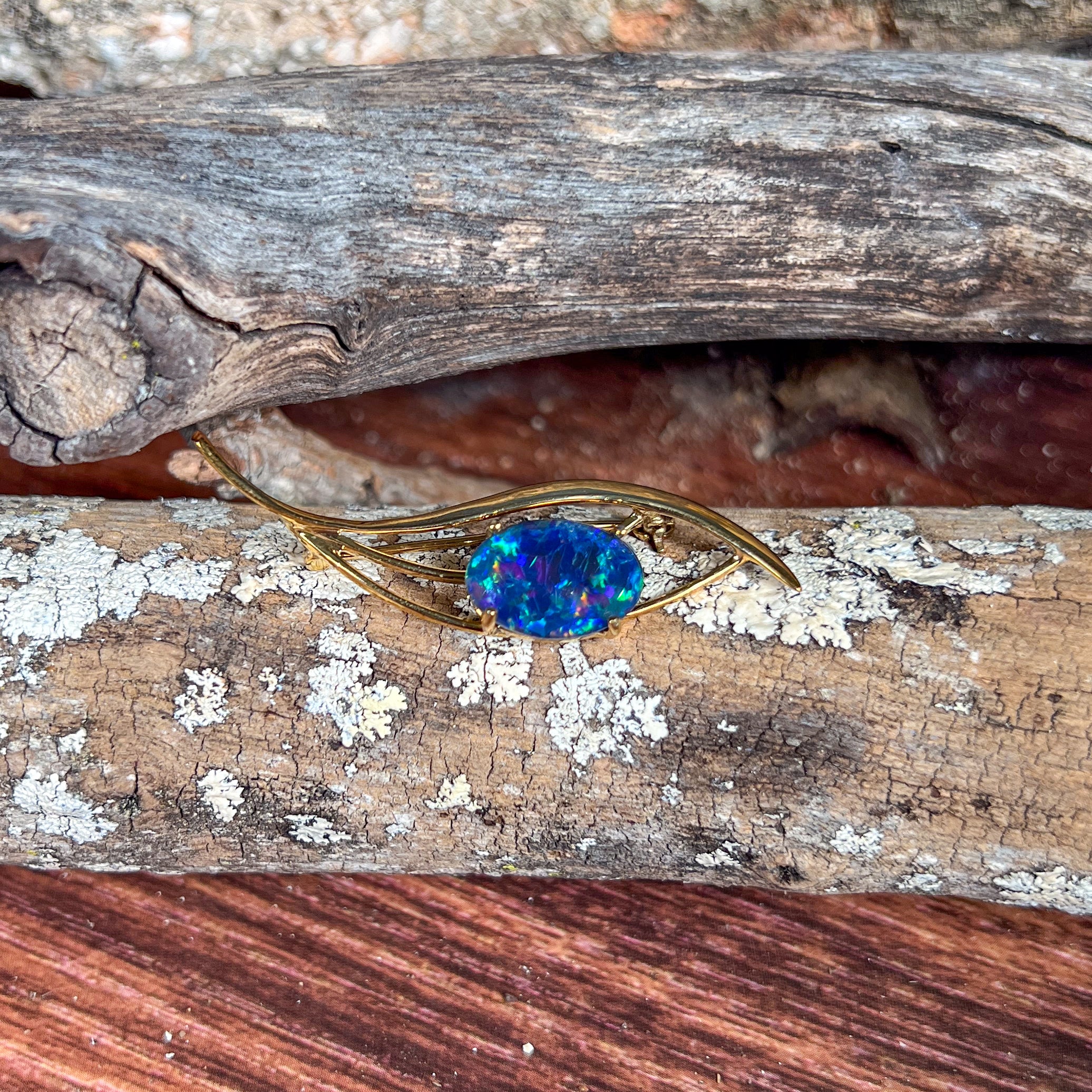 Elevate your style with this gold-plated silver brooch featuring a captivating wave design and a stunning triplet opal centerpiece. Its modern craftsmanship adds a touch of elegance to any outfit, making it perfect for special occasions or everyday wear. The unique opal shimmer captures light beautifully, ensuring you stand out with subtle sophistication.