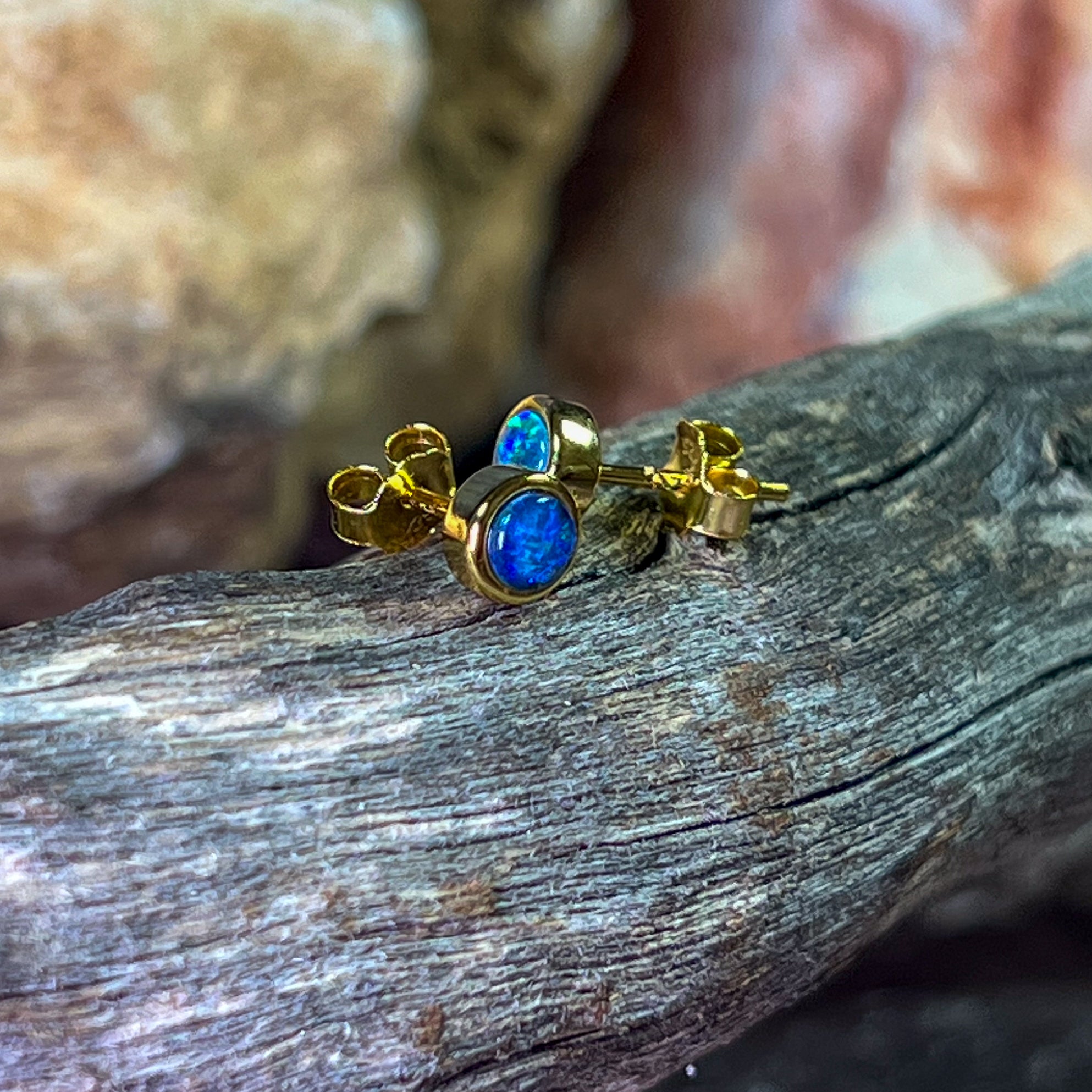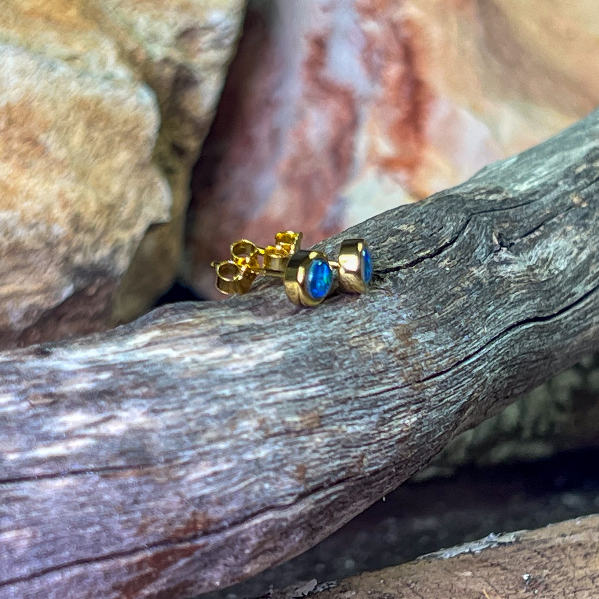 Gold Plated Sterling Silver 4mm Opal triplet round studs