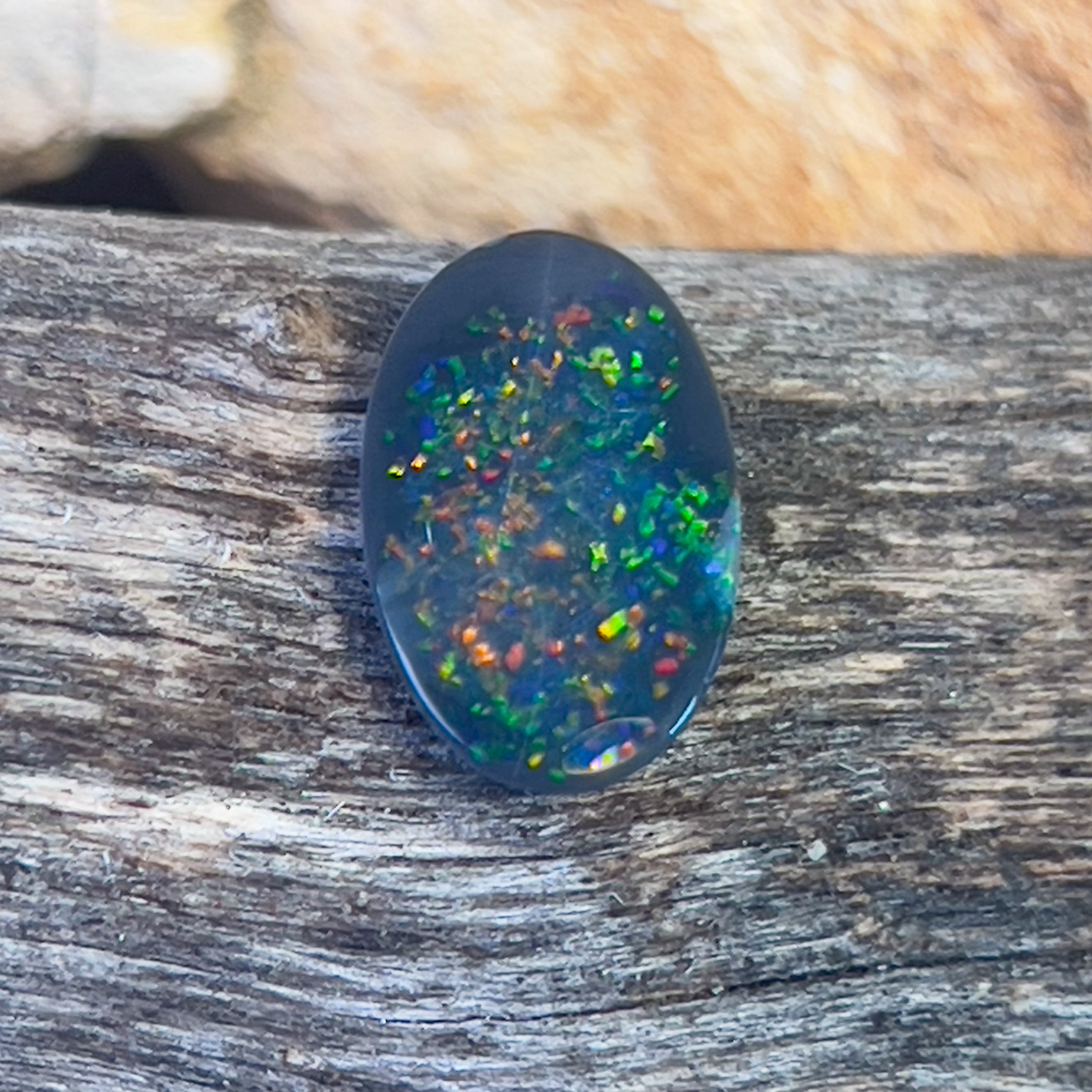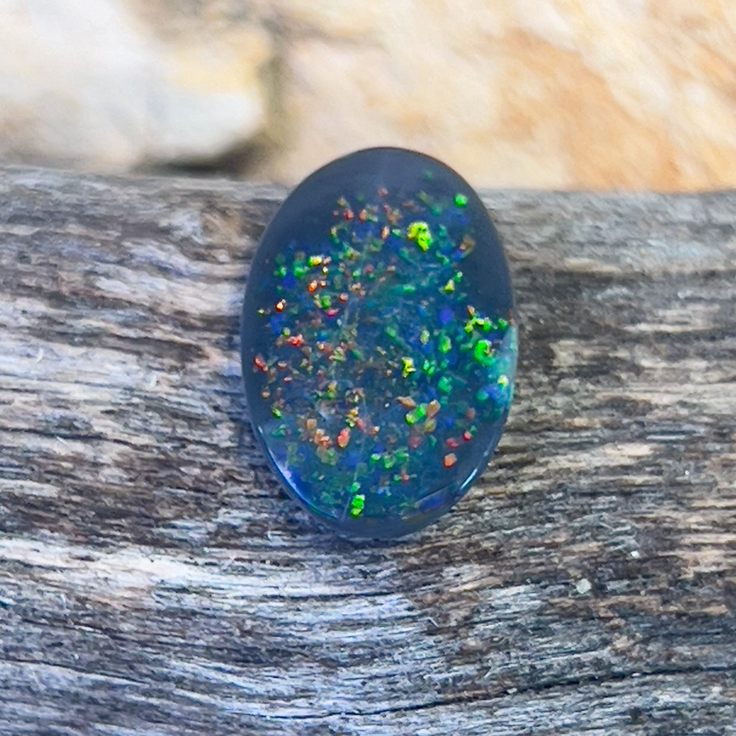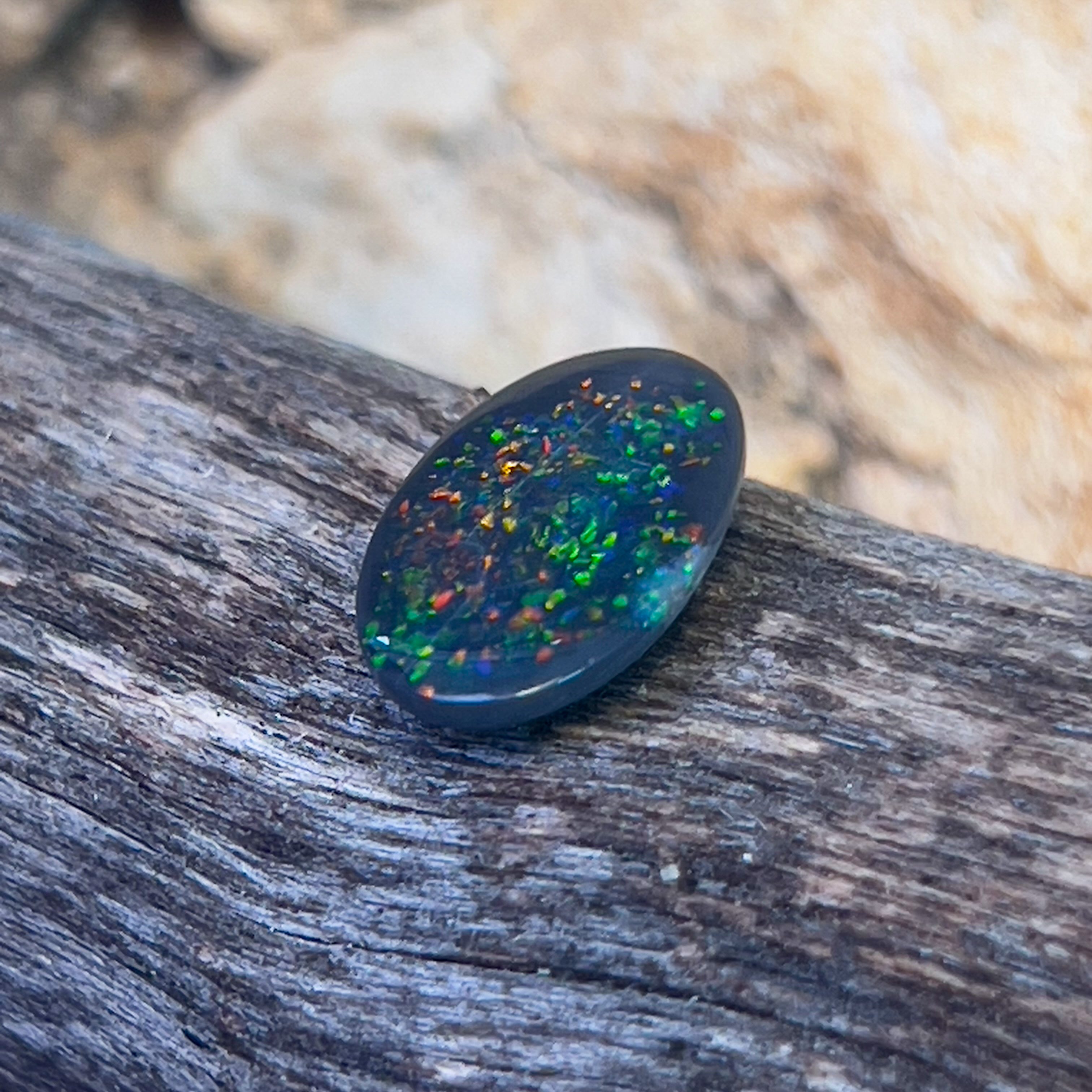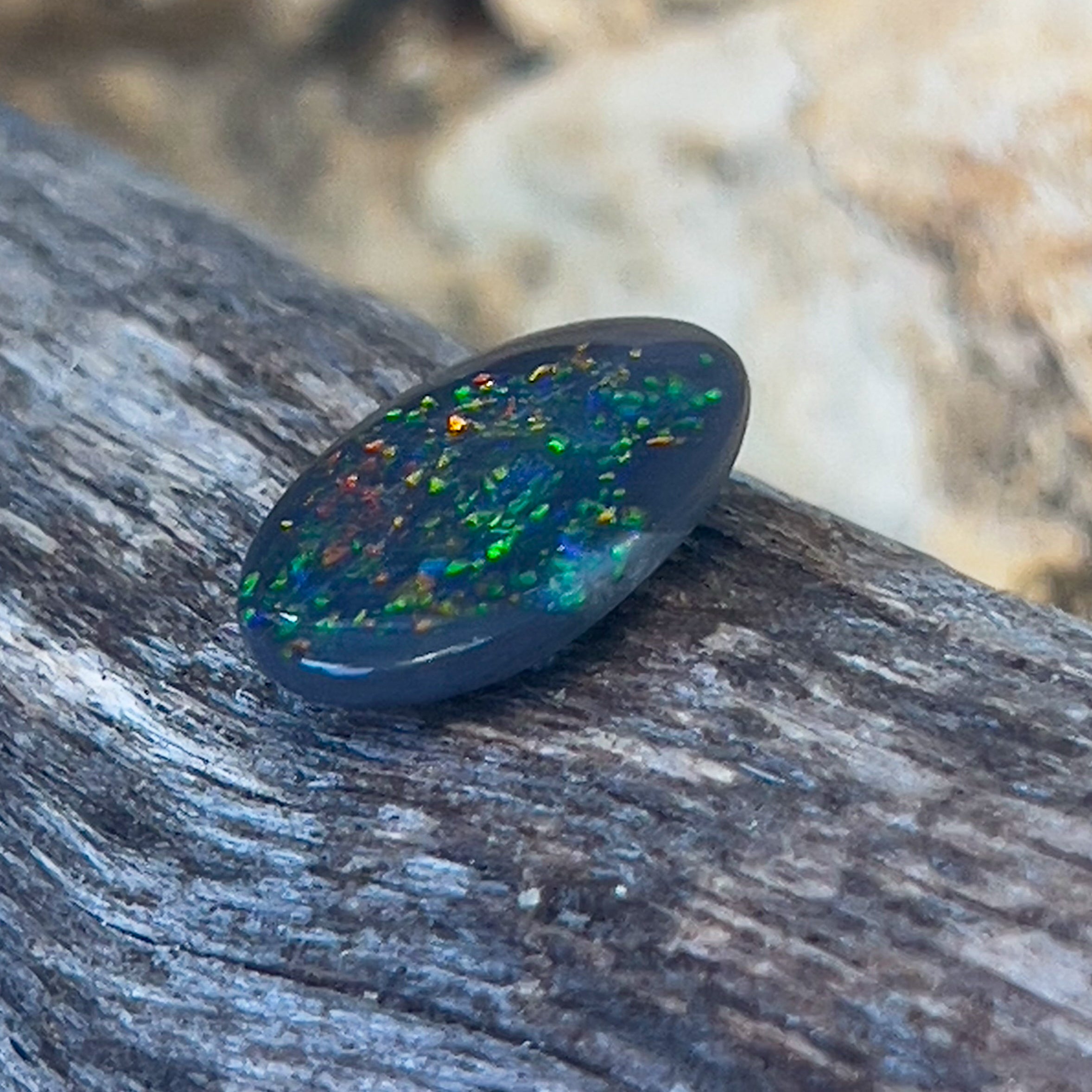 Expertly crafted, this 2.65ct Loose Oval Black Opal showcases stunning multicolored hues, characteristic of the Lightning Ridge region. A true rarity, this opal is sure to make a unique and eye-catching addition to any jewelry collection.