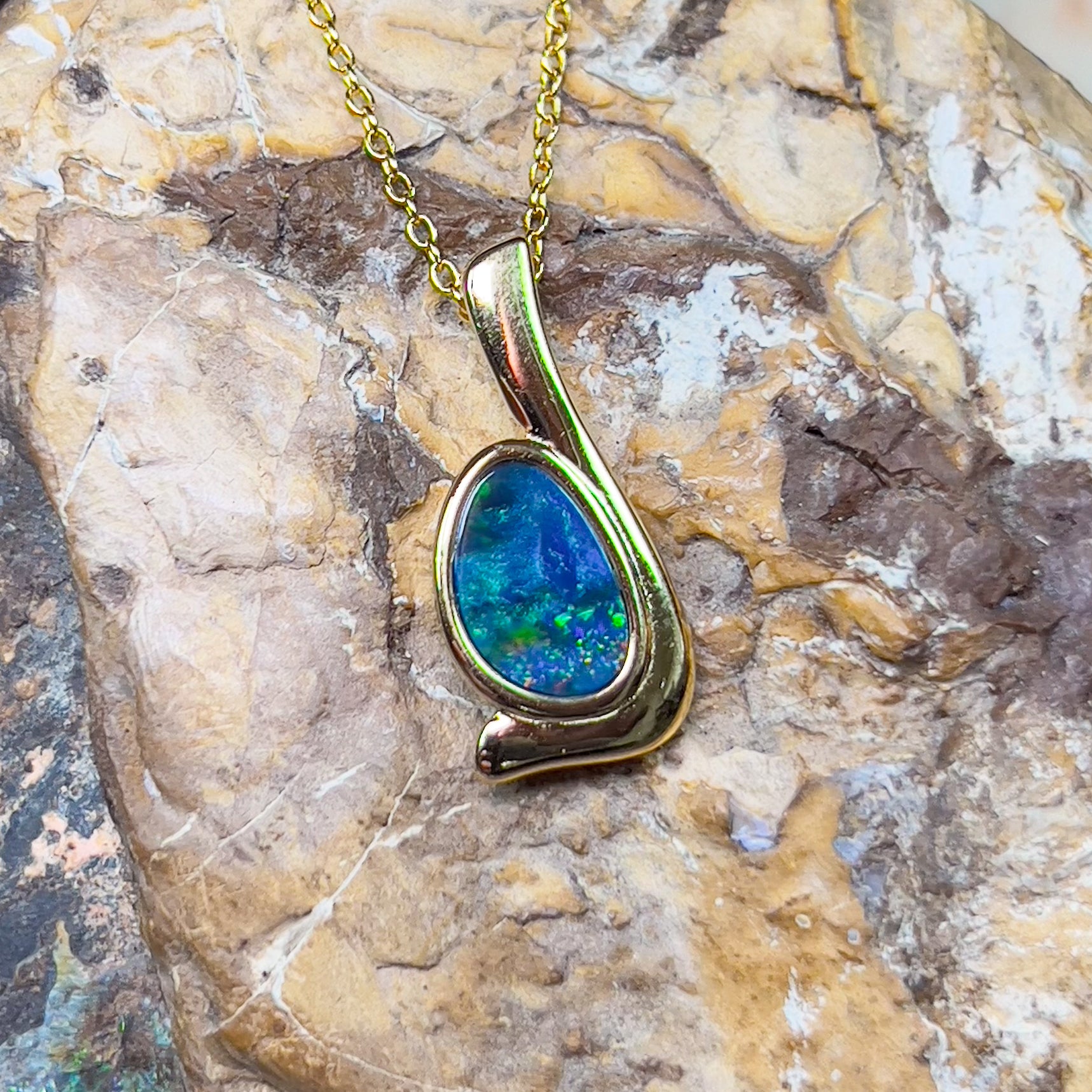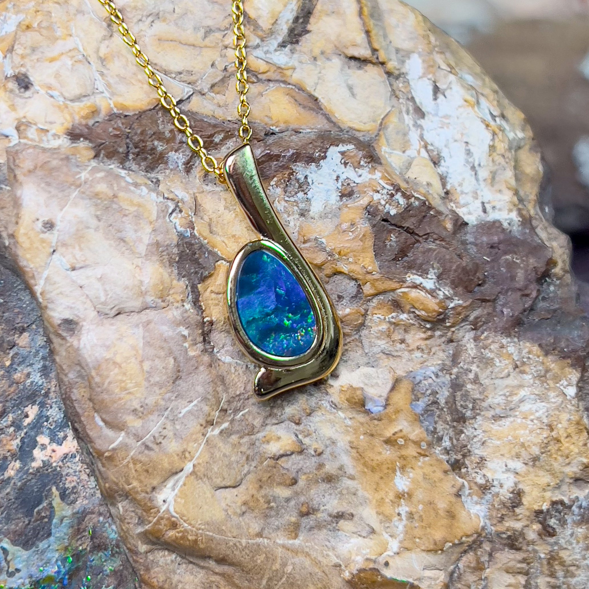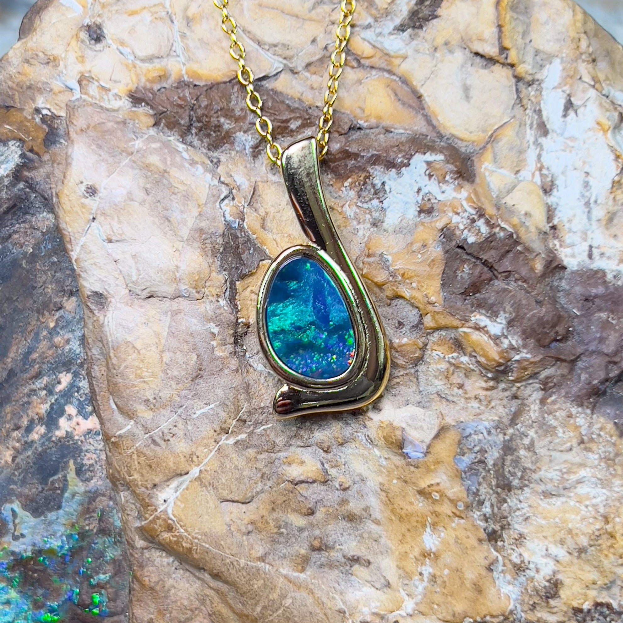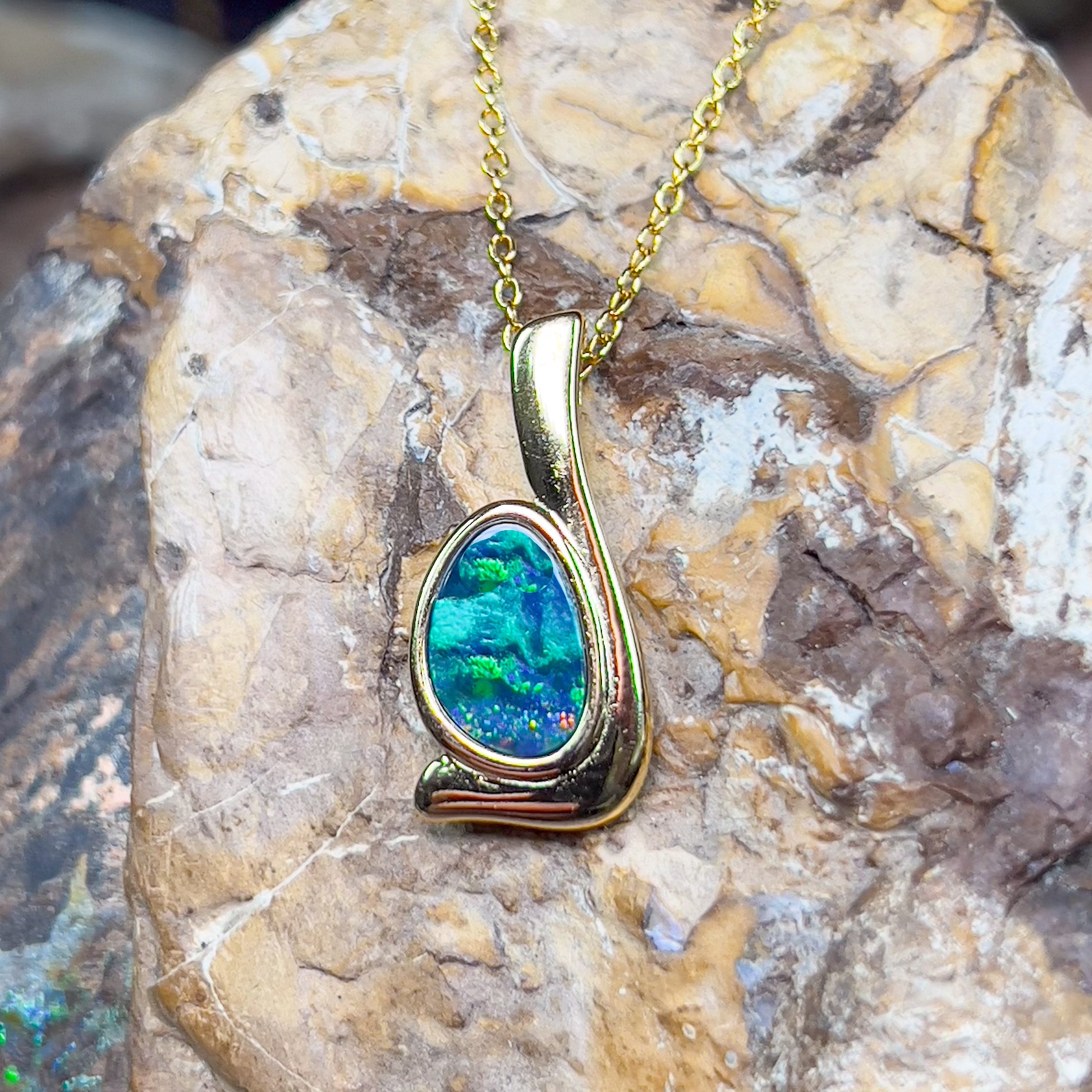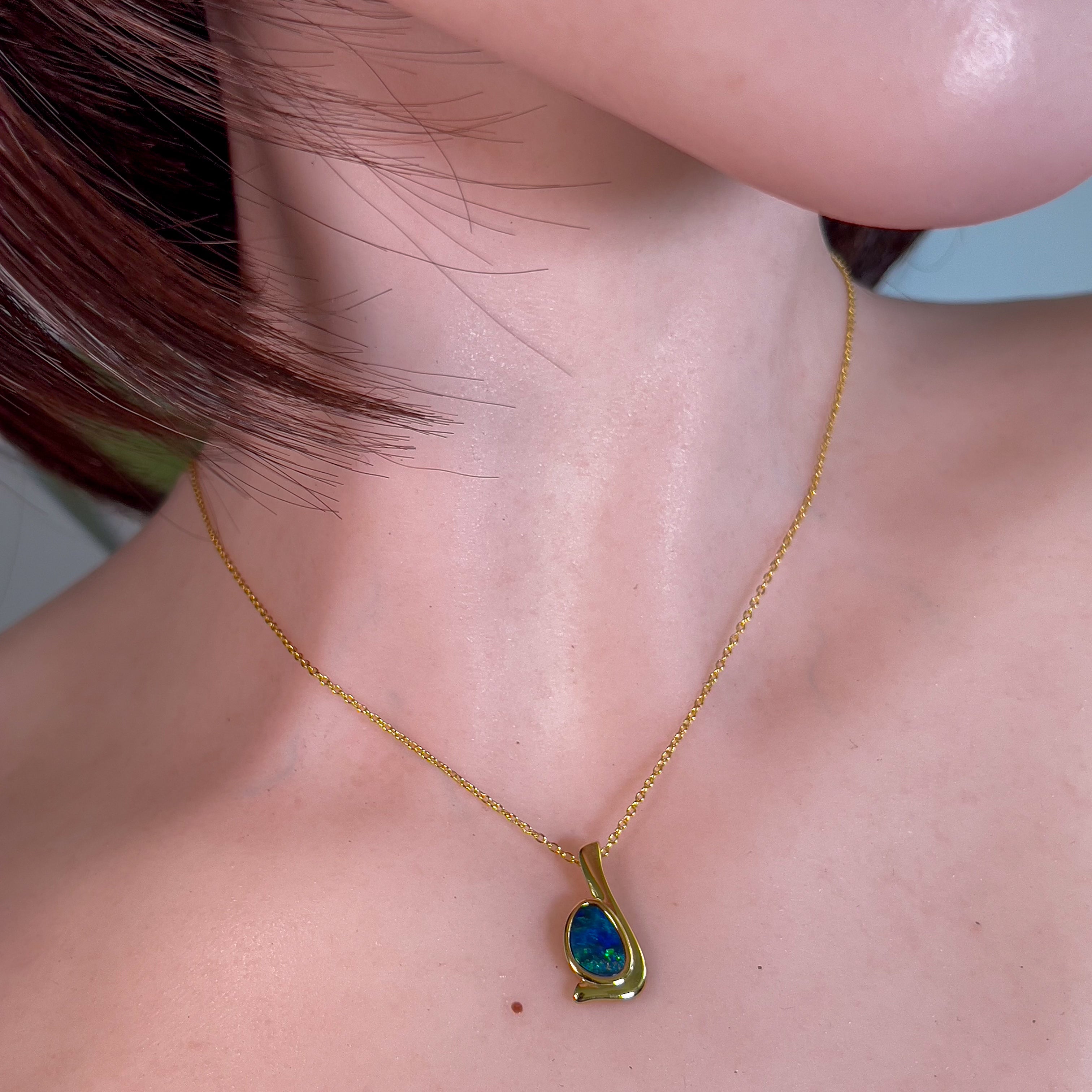 Experience contemporary elegance with our One Gold Plated Sterling Silver L-shape Opal doublet pendant. Crafted with precision, this pendant features a unique and modern design that will add a touch of sophistication to any outfit. The lustrous gold plated finish complements the stunning opal doublet, creating a luxurious and eye-catching piece of jewelry. Elevate your style with this exquisite pendant today!