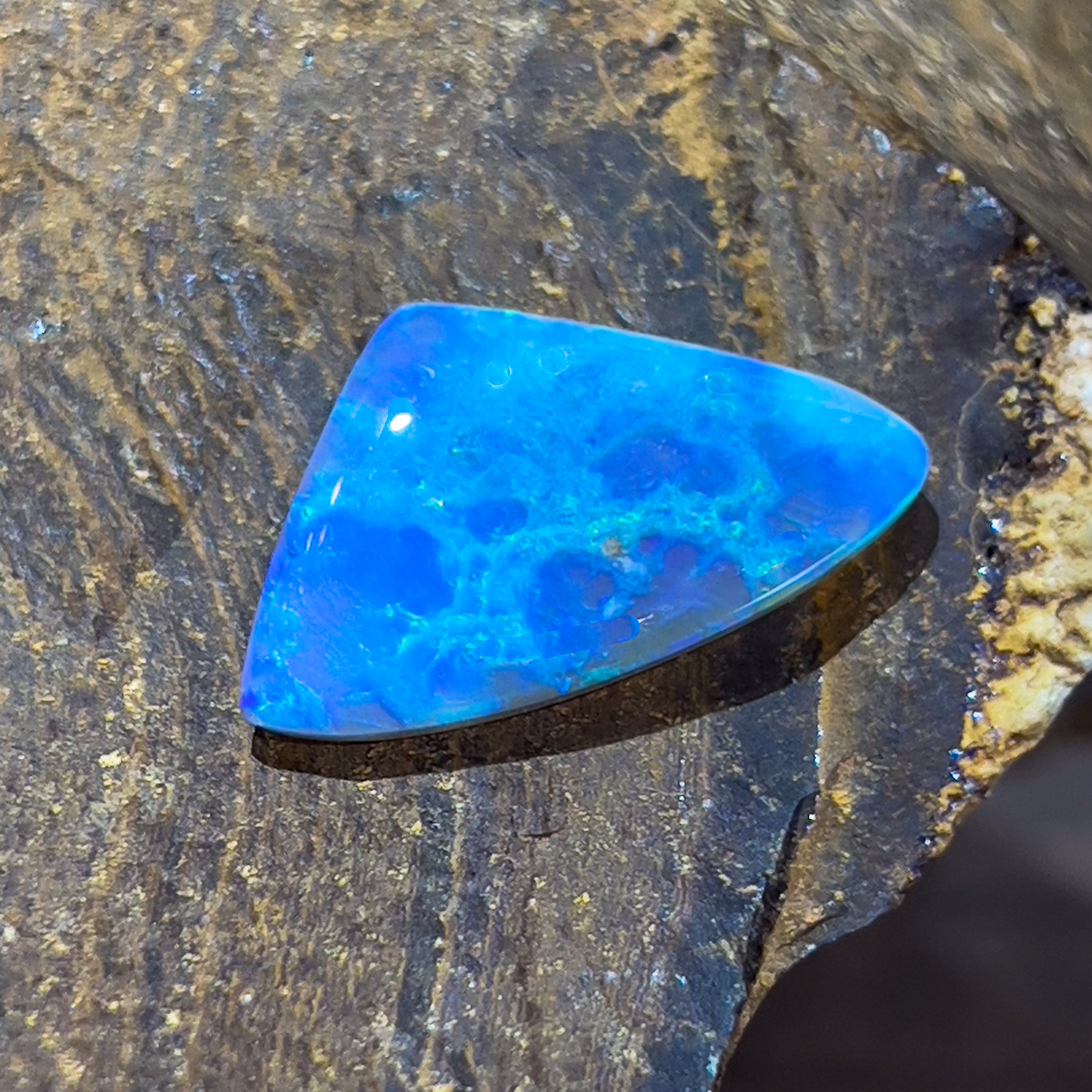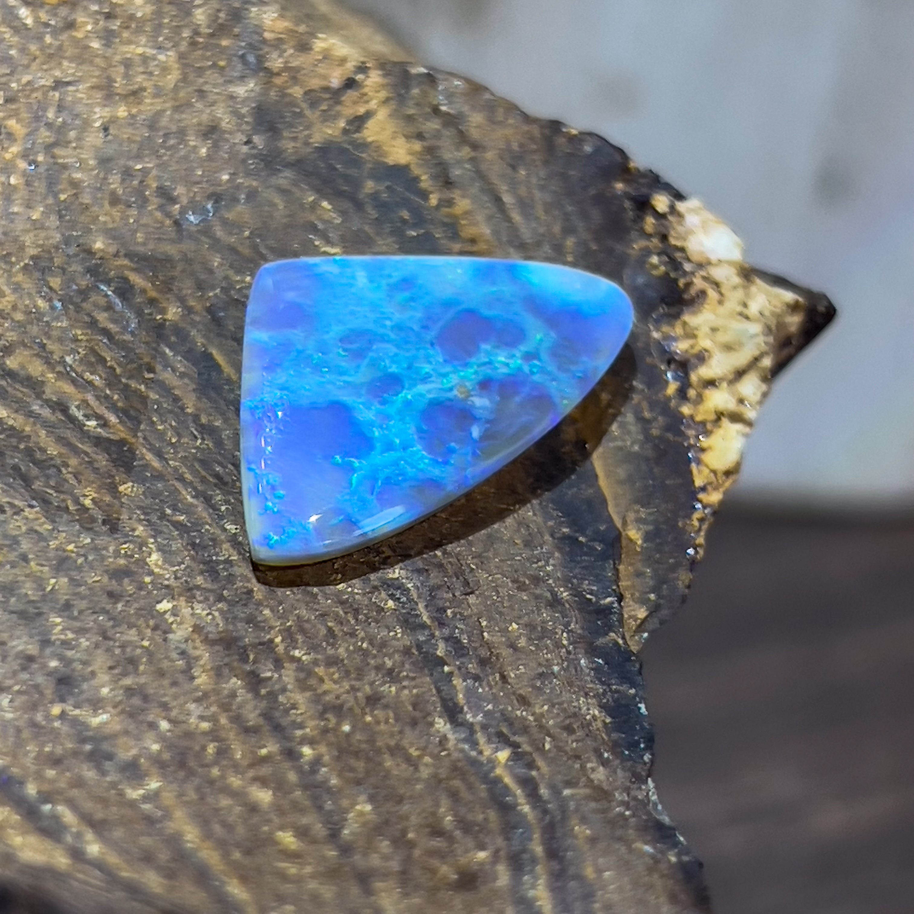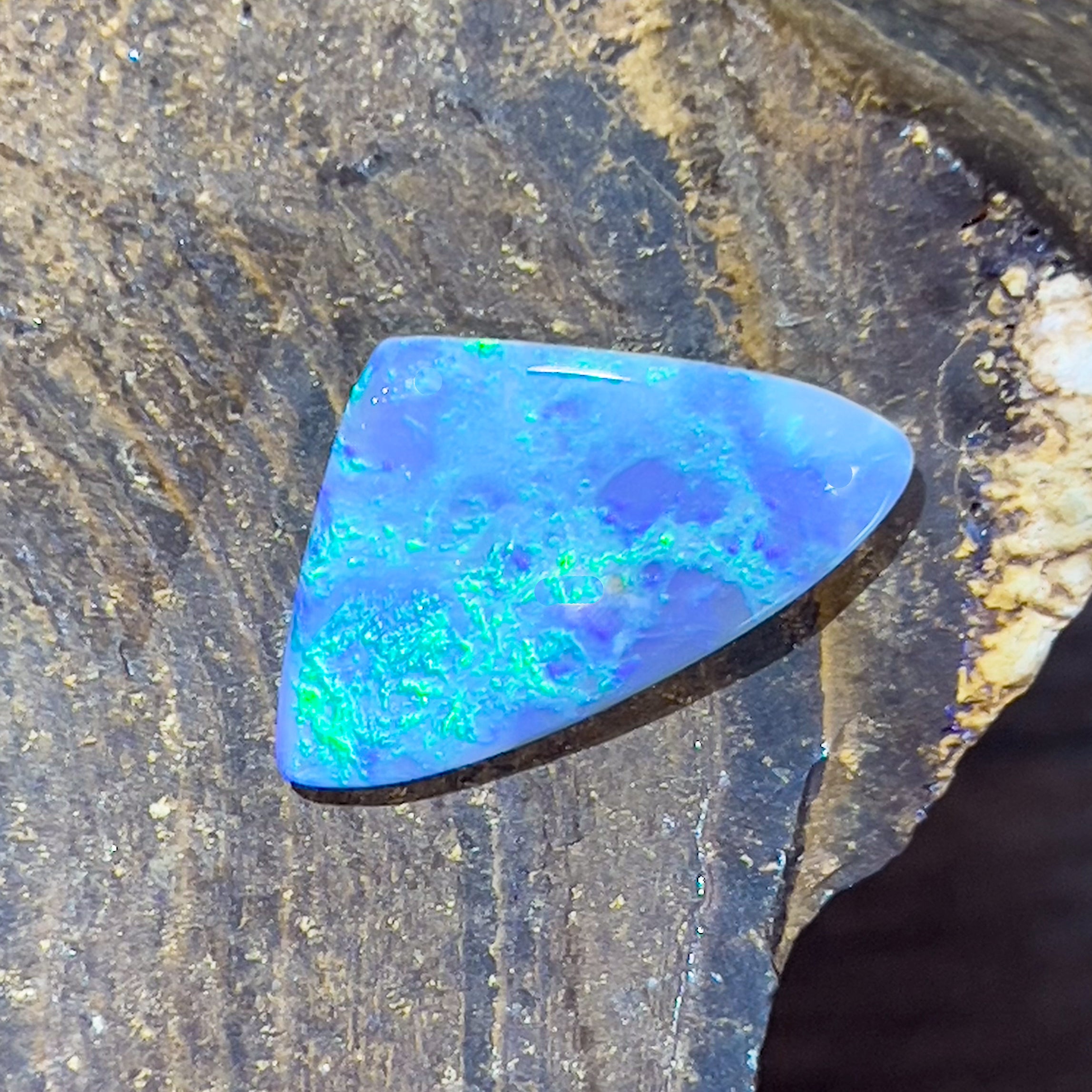 Experience the beauty of Solid Opal with our One Triangular Shape Semi Black Opal. This stunning 5.81ct gemstone boasts a unique triangular shape and mesmerizing black undertones. Add it to your jewelry collection today and elevate any look with its natural beauty.