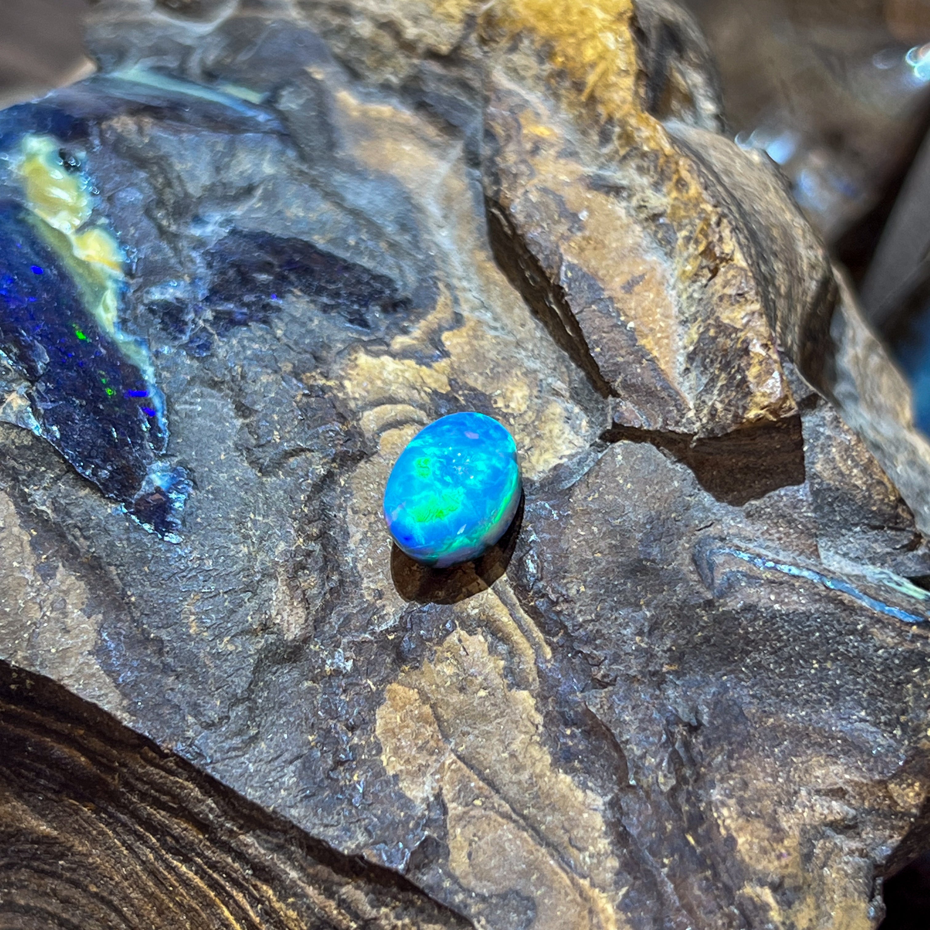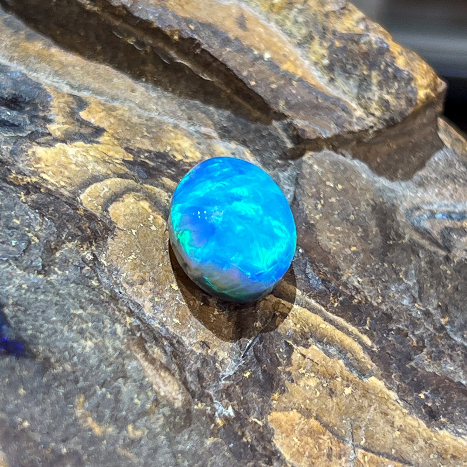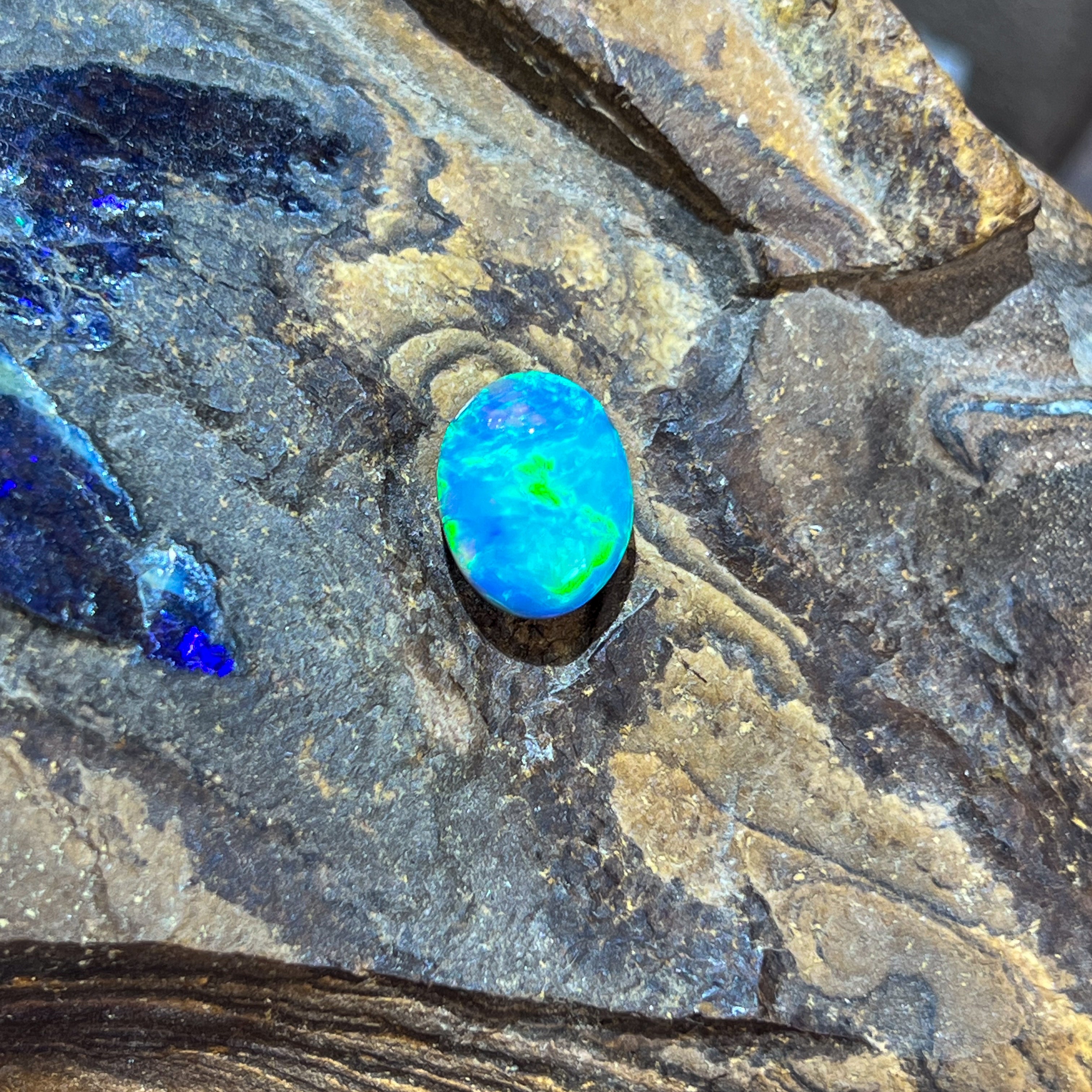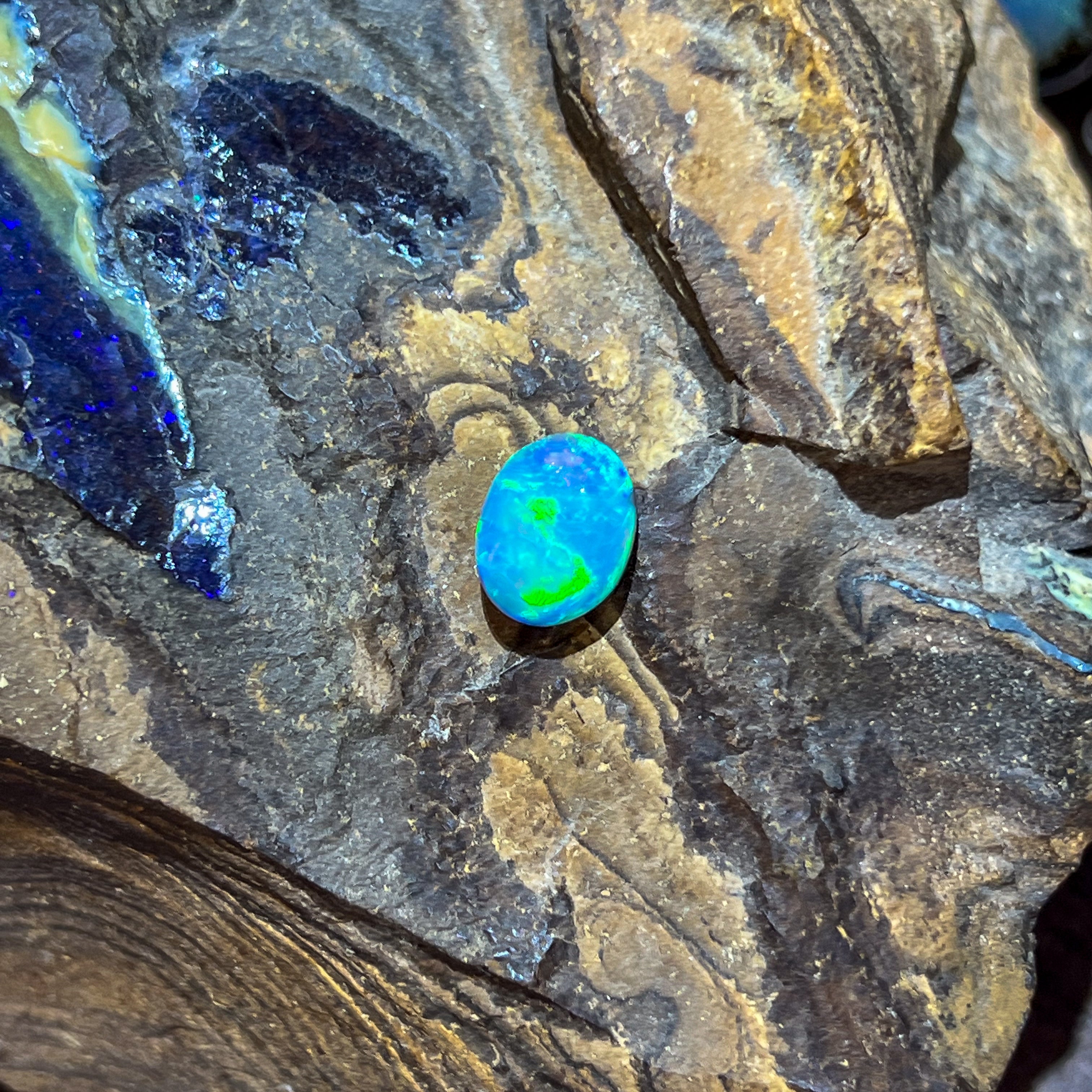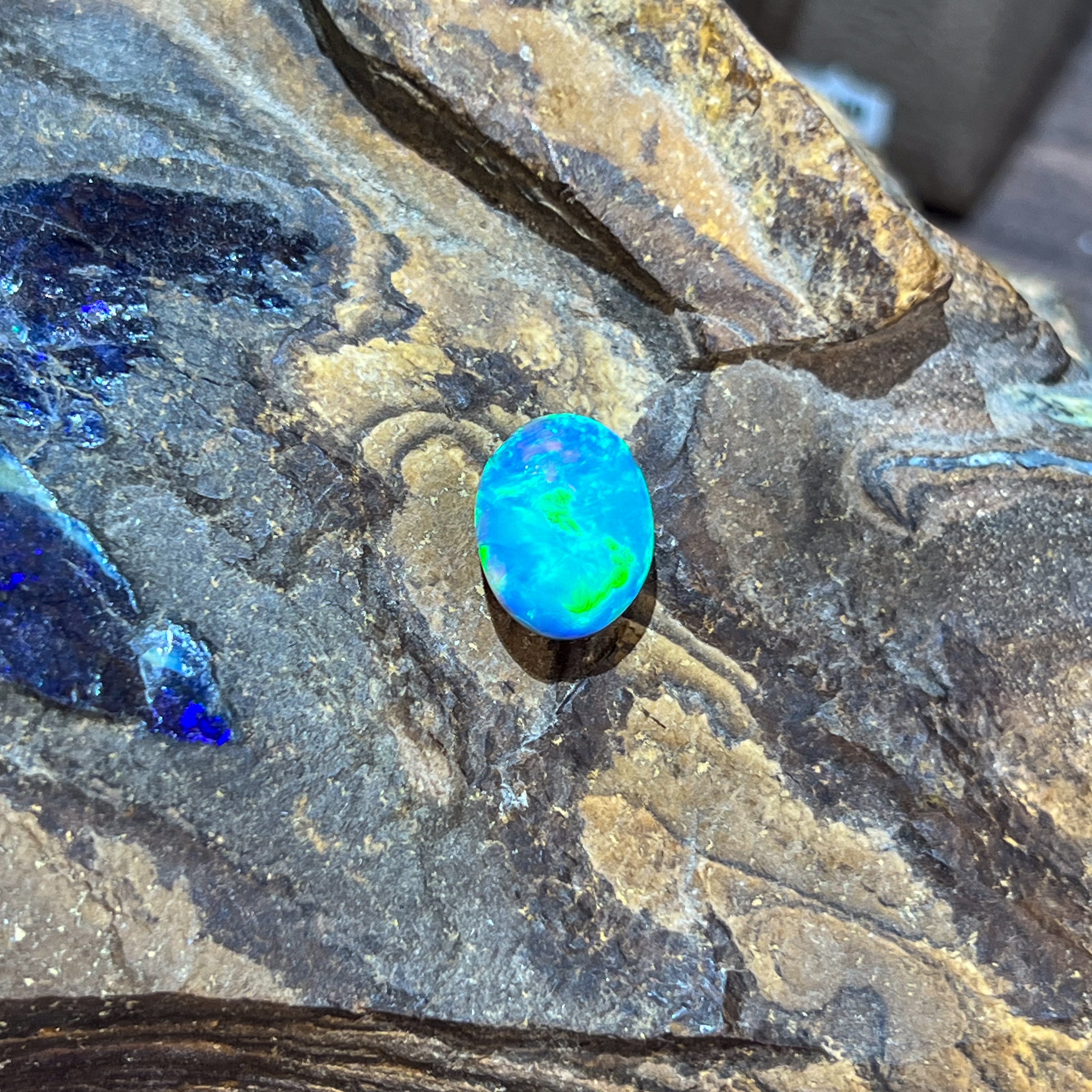 Oval Black Opal Green and light blue tones 5.02ct