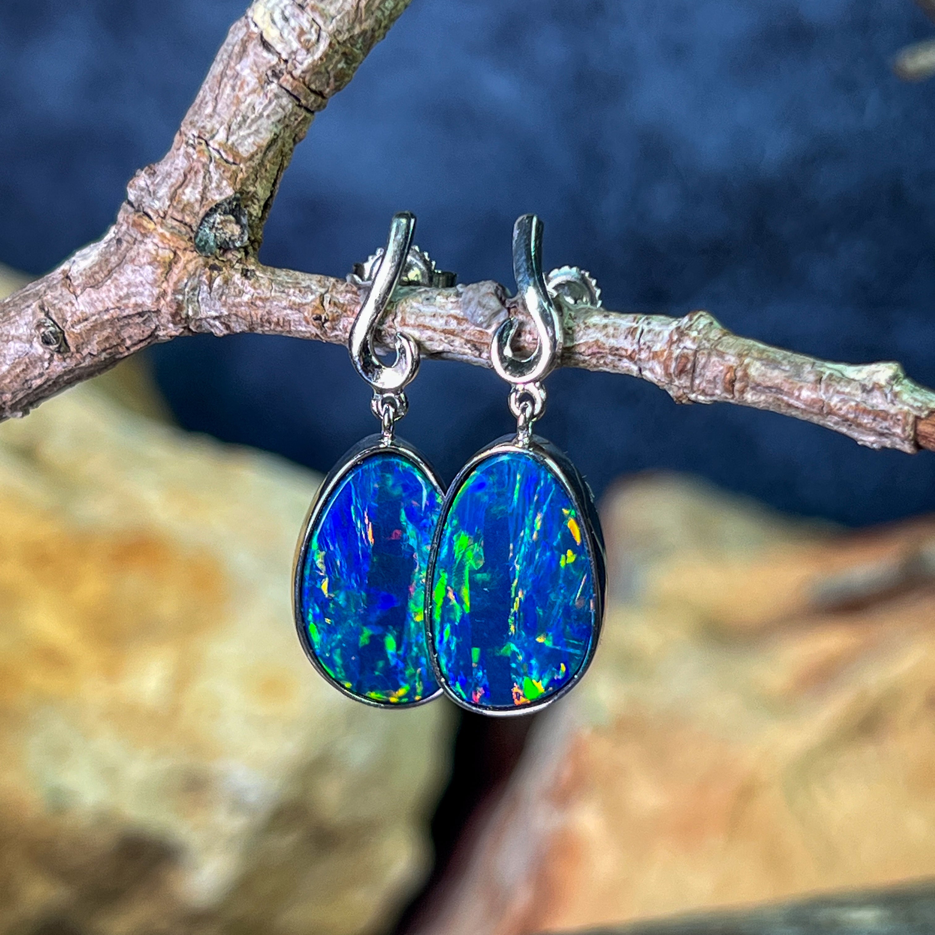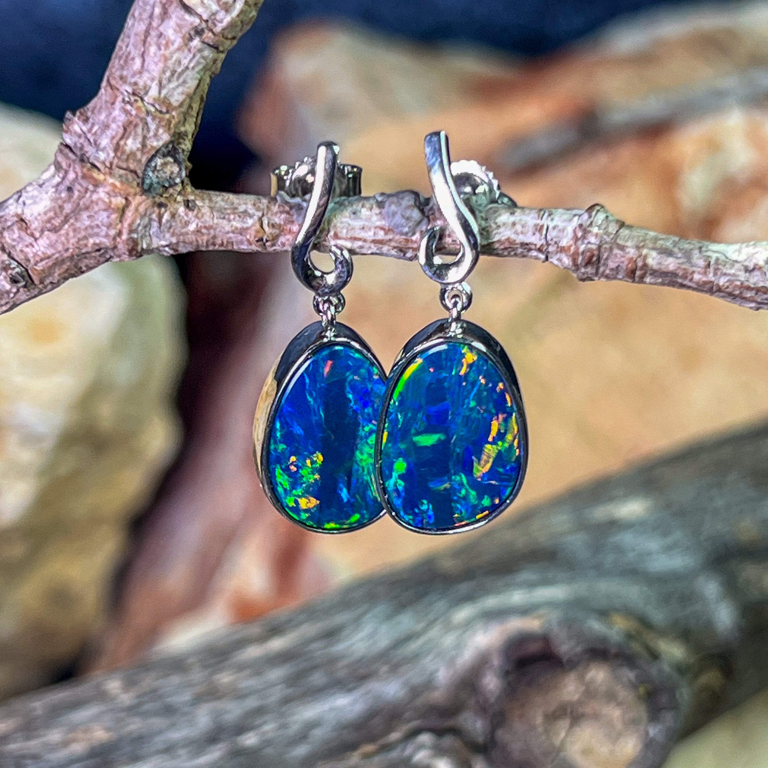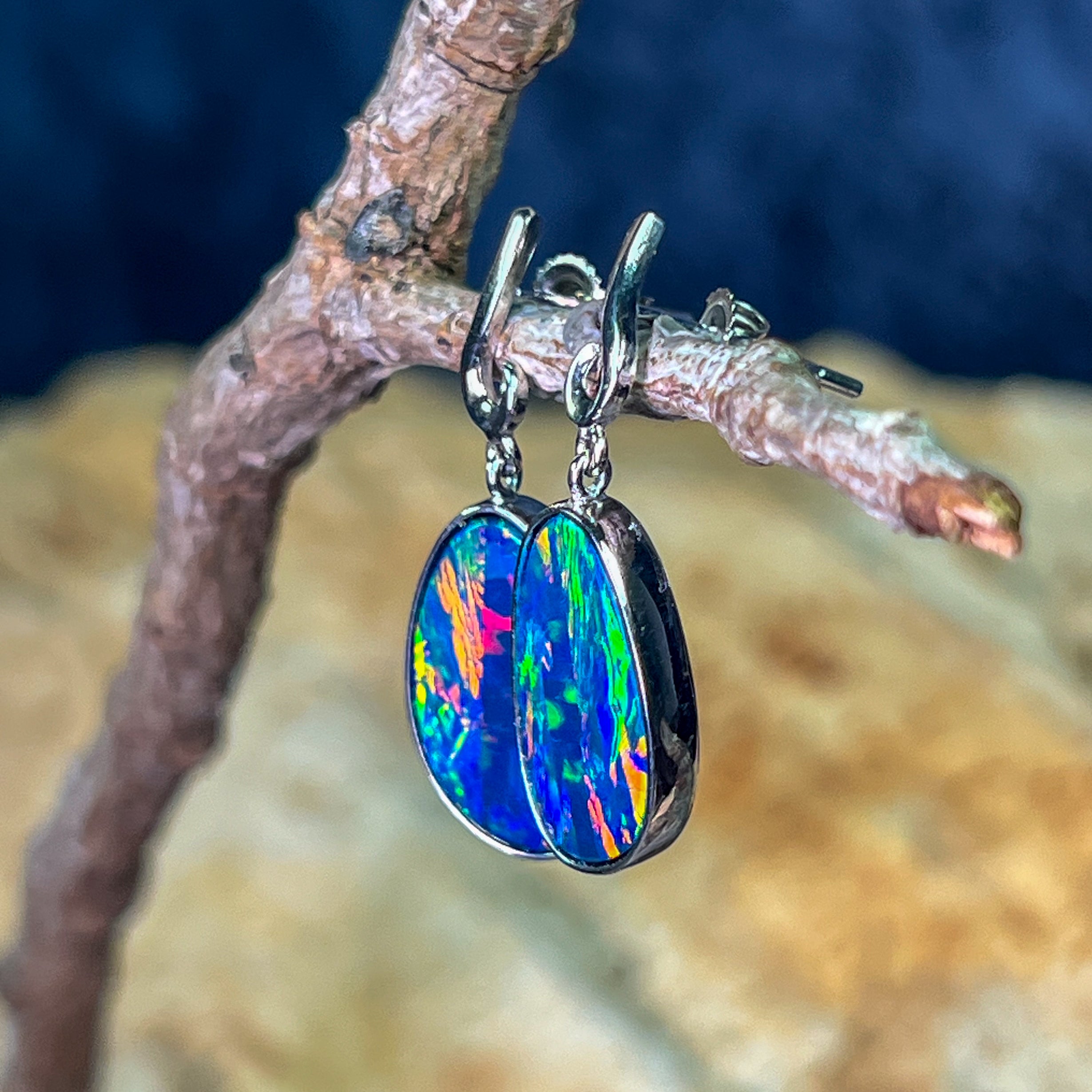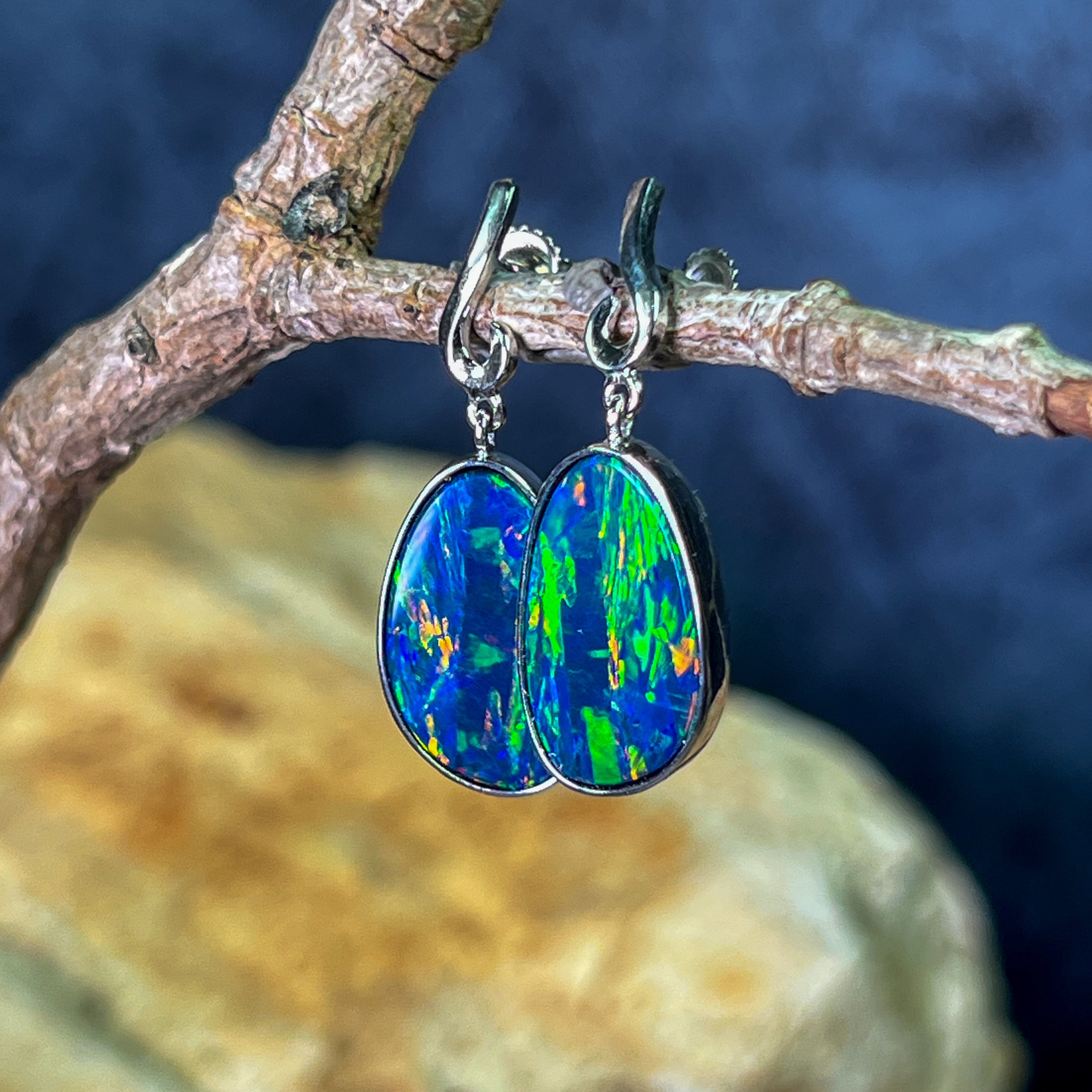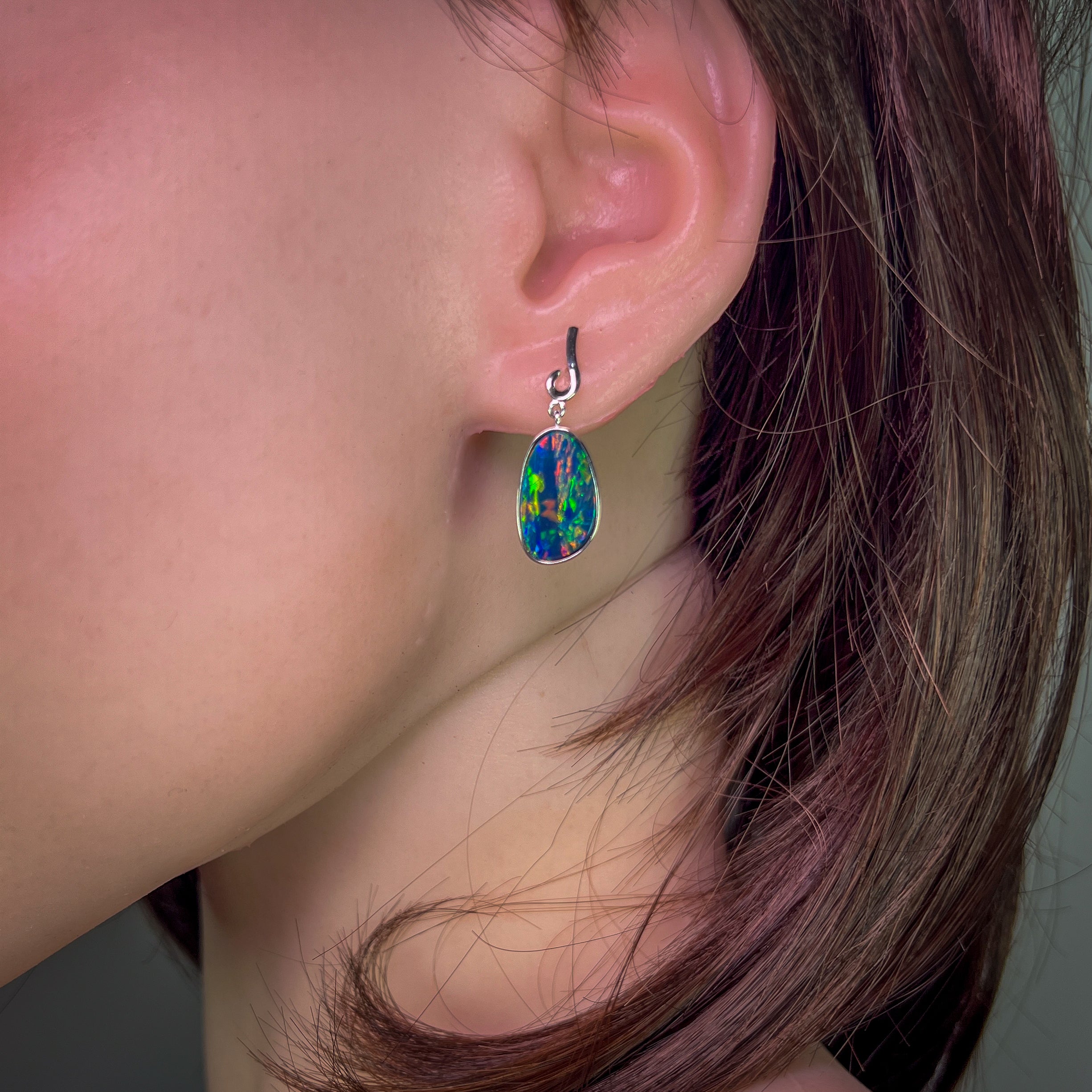 Indulge in elegance with these stunning 14kt White Gold dangling Opal doublet freeform earrings. The genuine opal drops showcase beautiful color and sparkle, making them the perfect accessory for any occasion. Elevate your style and add a touch of sophistication to any outfit with these luxurious earrings.