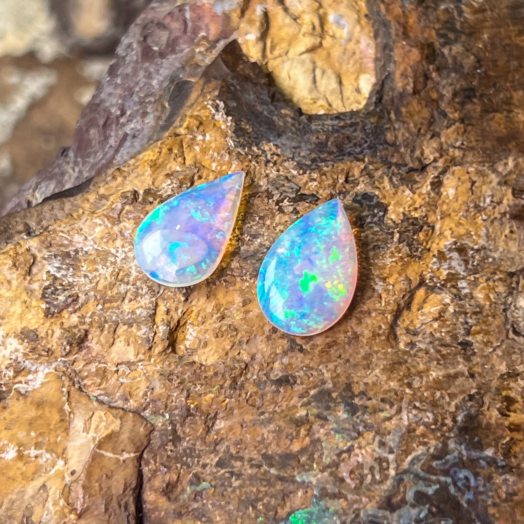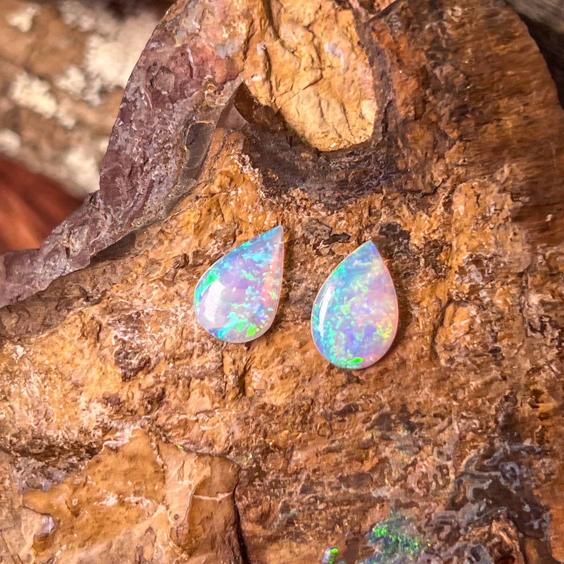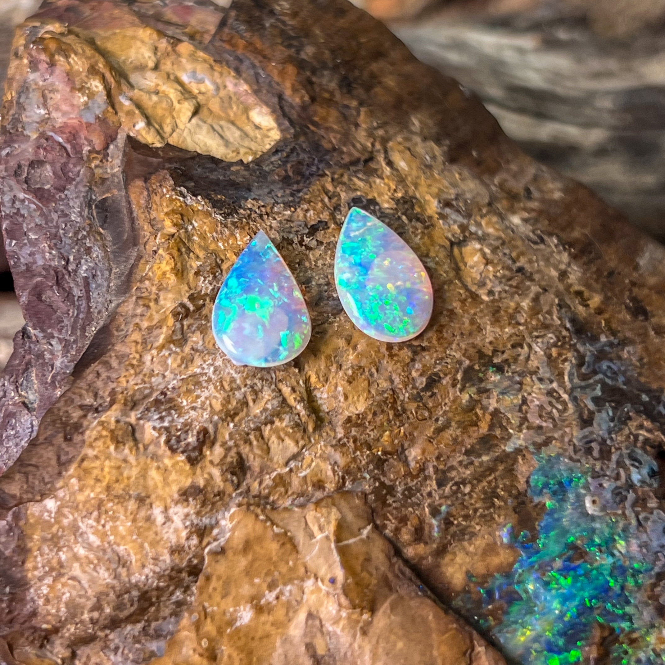 Pair of Pear shape Crystal Opal 12x8mm loose 2.04ct