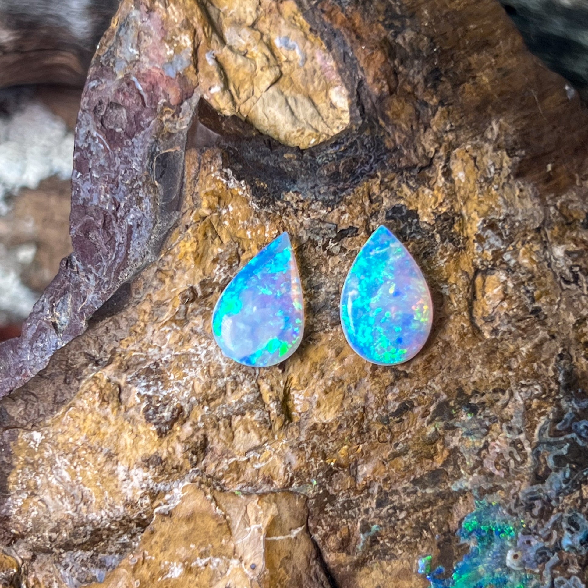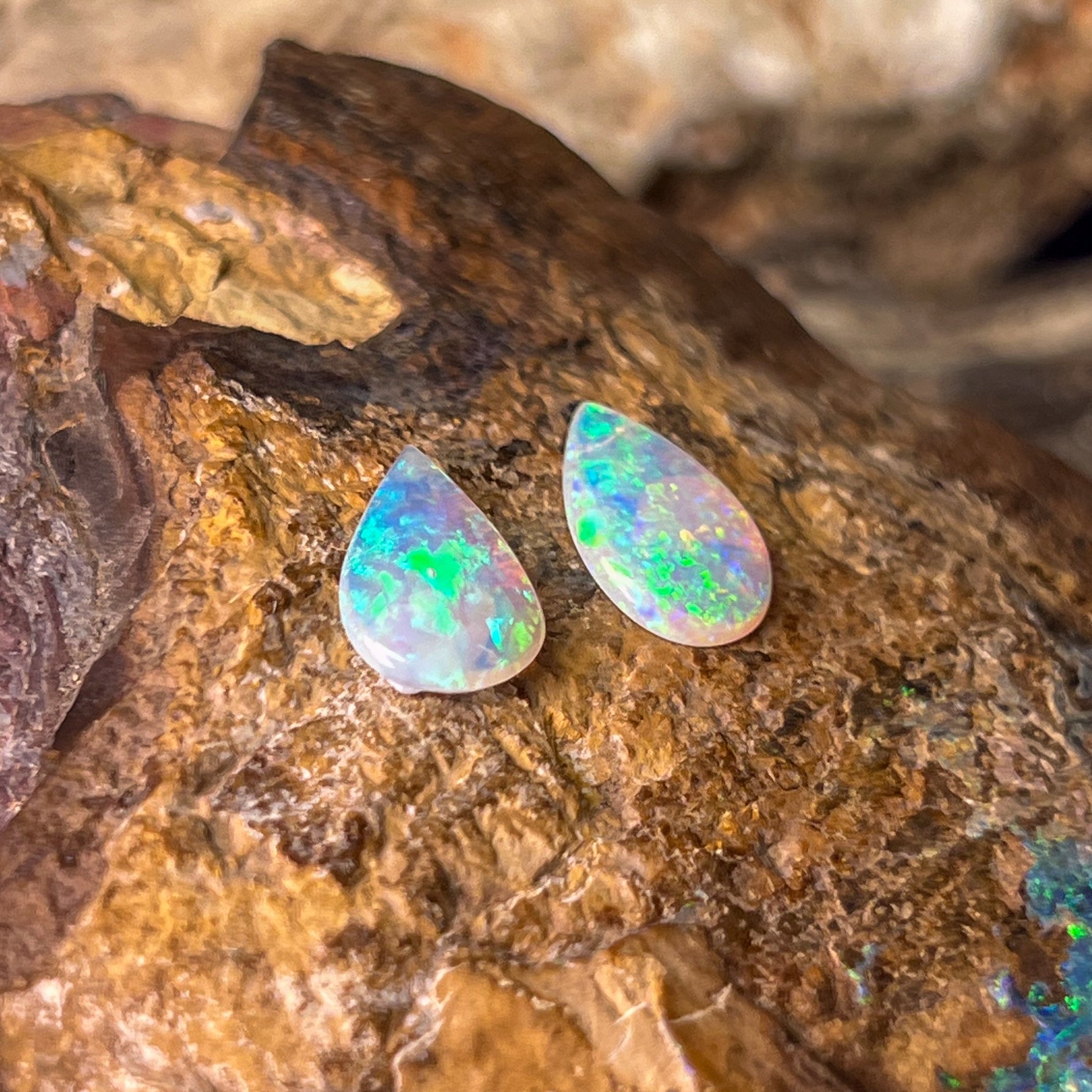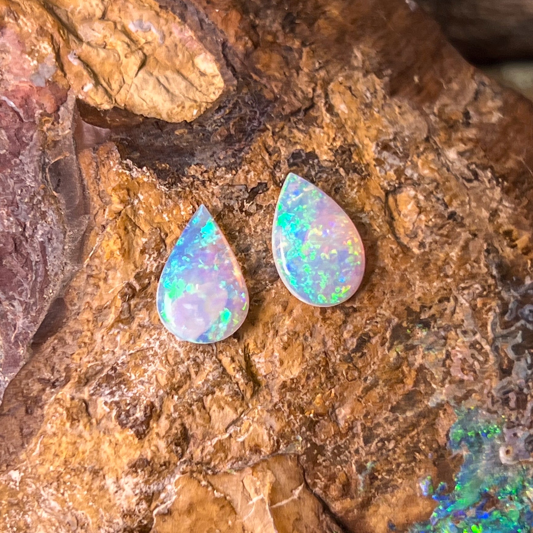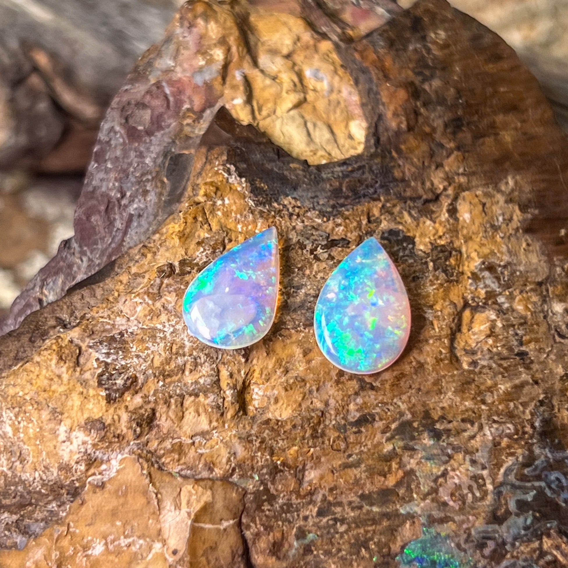 Pair of Pear shape Crystal Opal 12x8mm loose 2.04ct