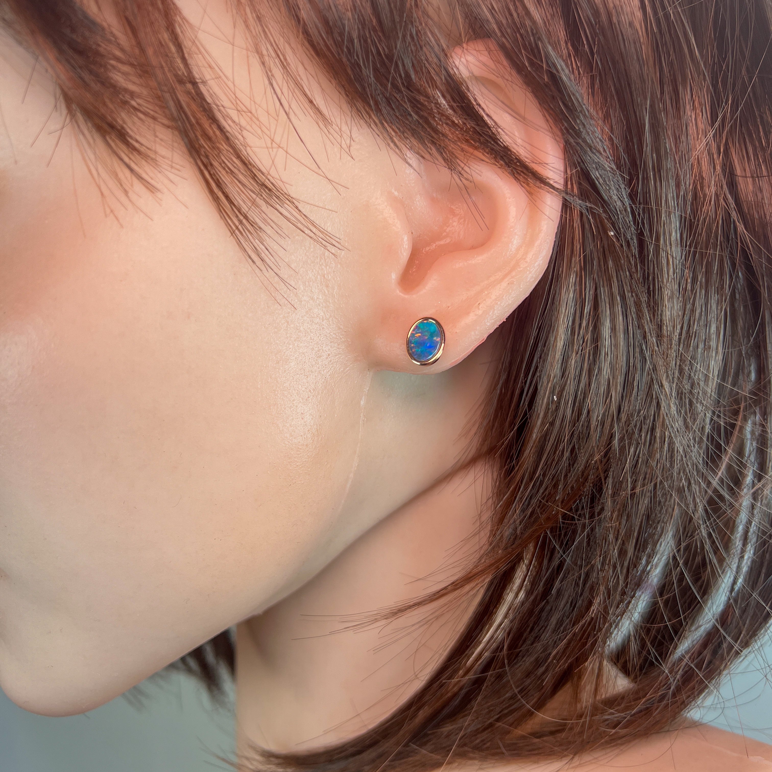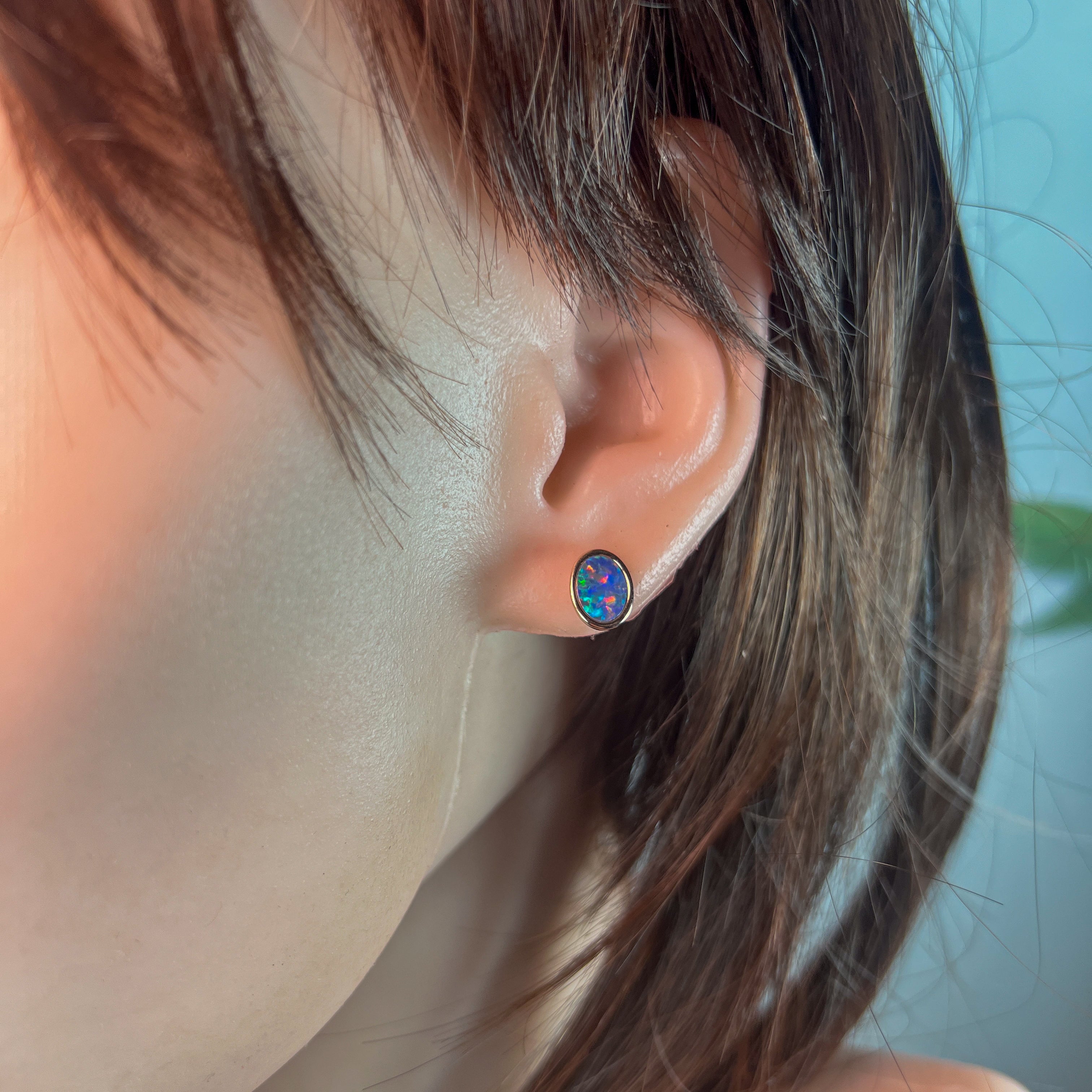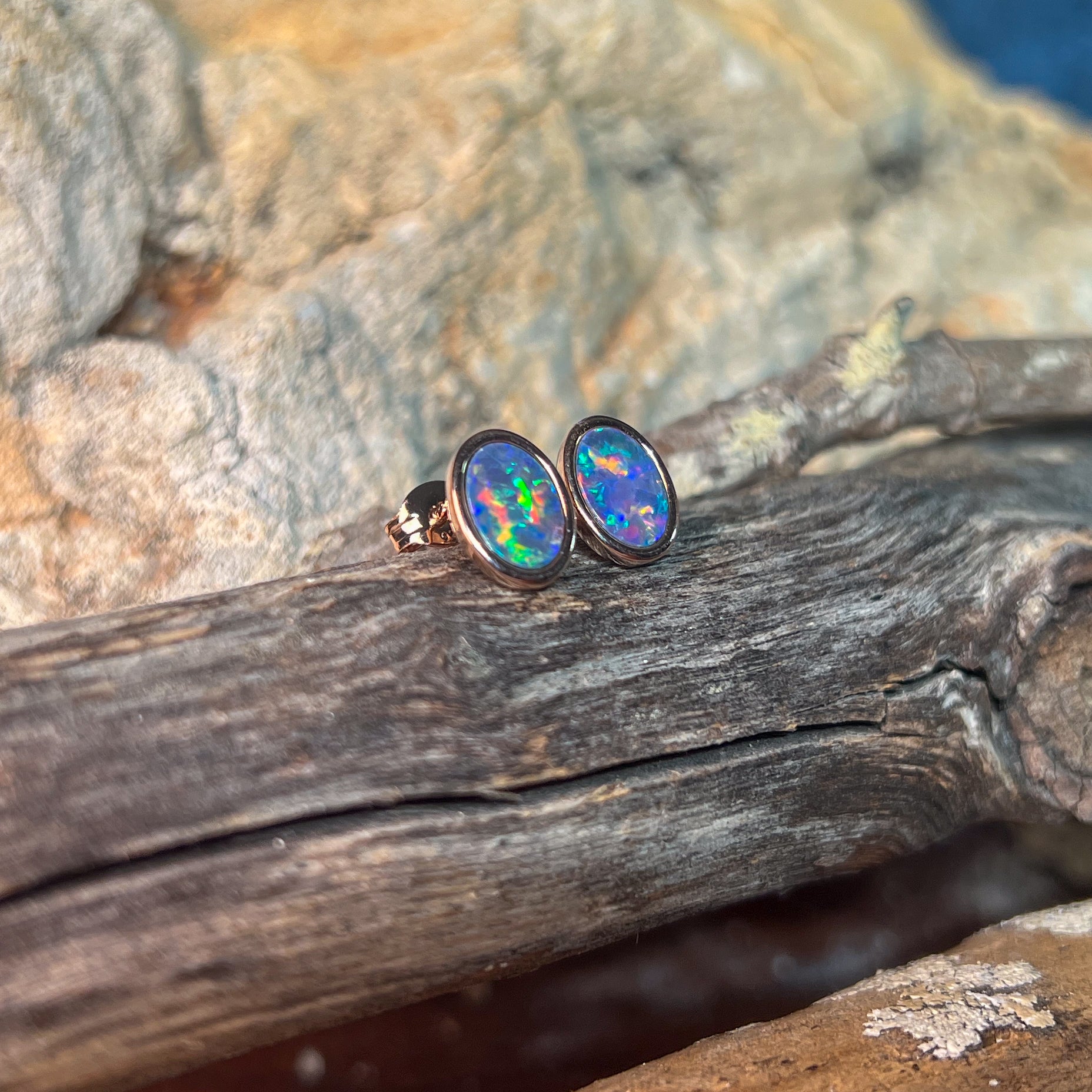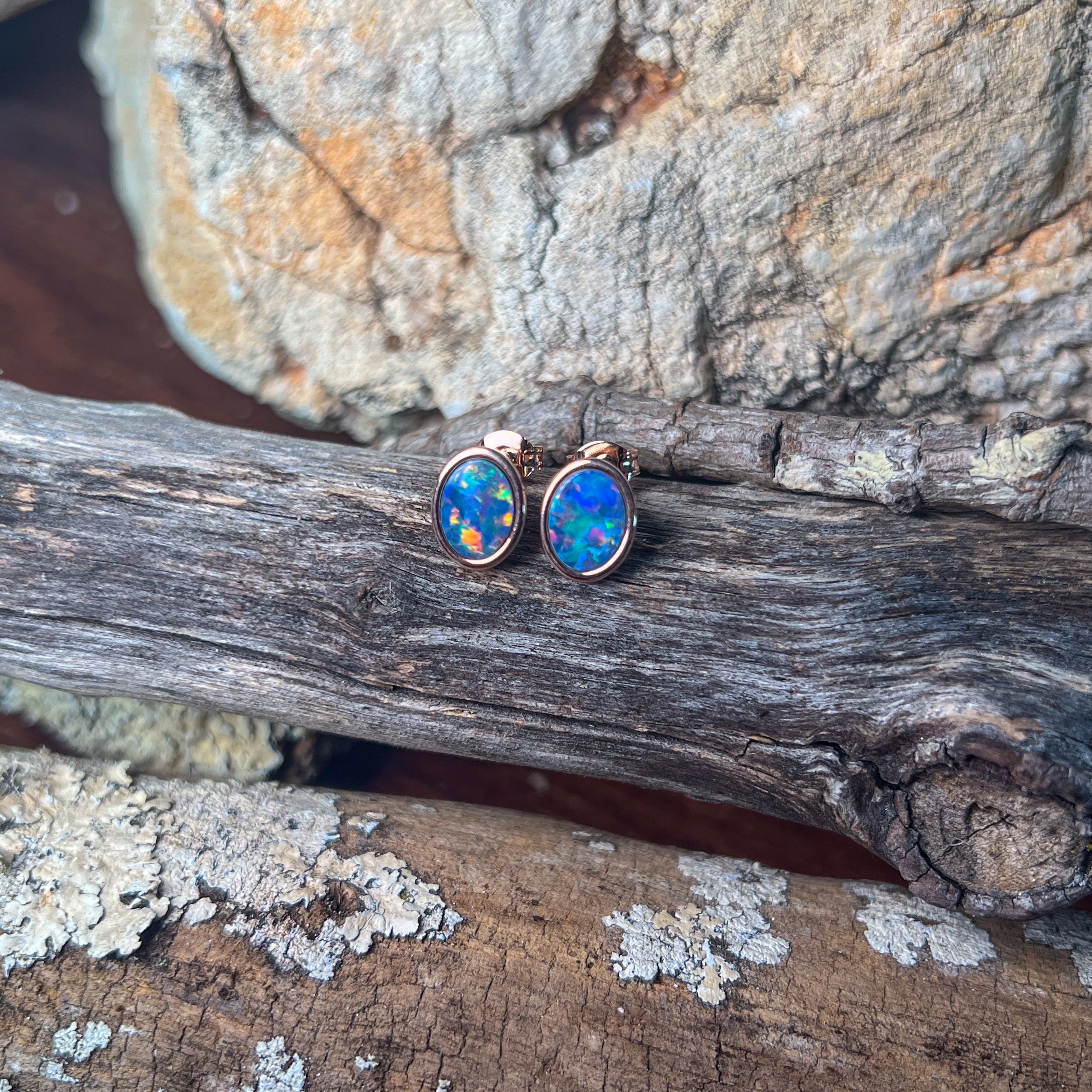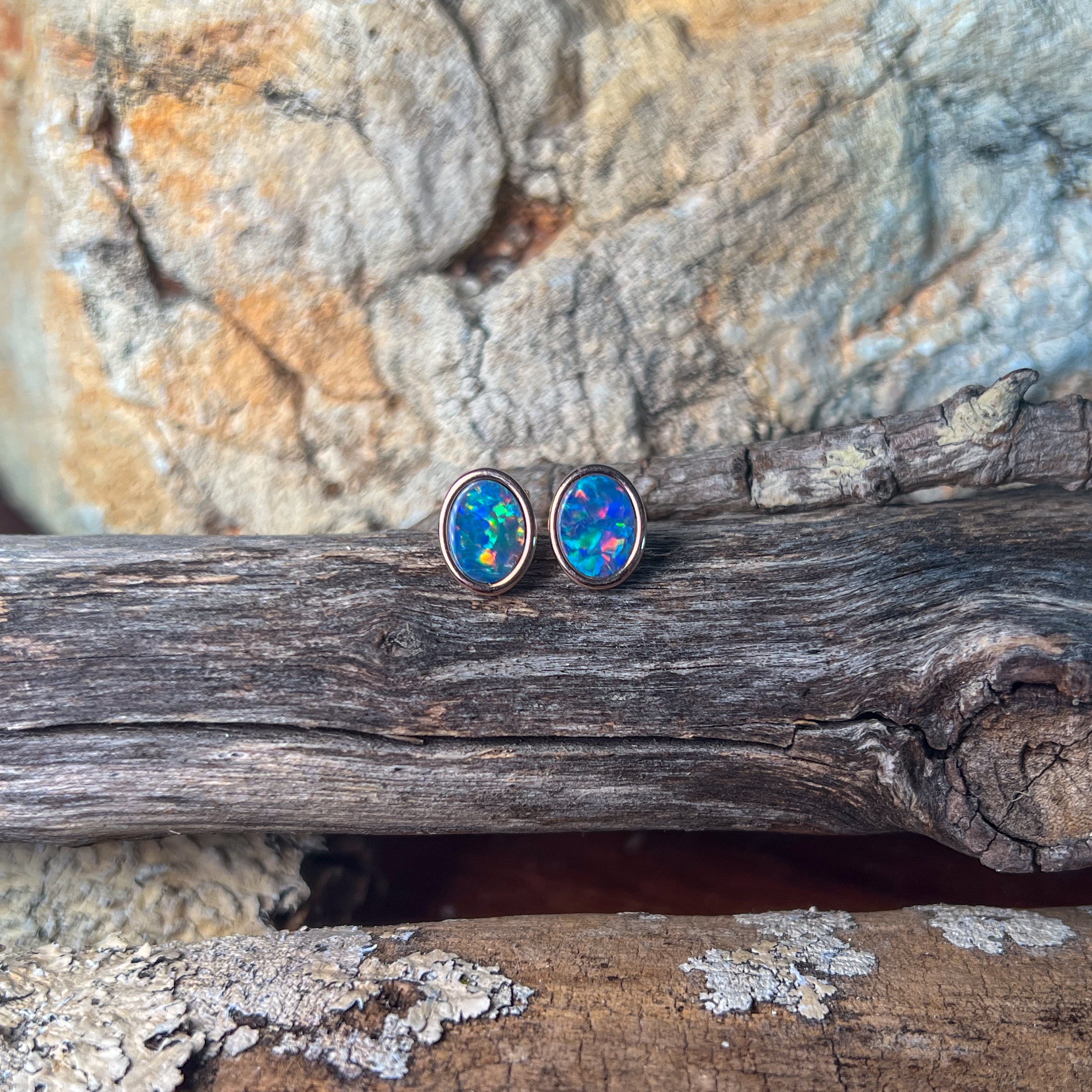 Add a splash of charm to your look with these playful Rose Gold Plate Silver Oval Opal doublet studs. Measuring 8x6mm, their vibrant opal doublets catch the light beautifully, making them perfect for brightening any outfit with a touch of fun and elegance.