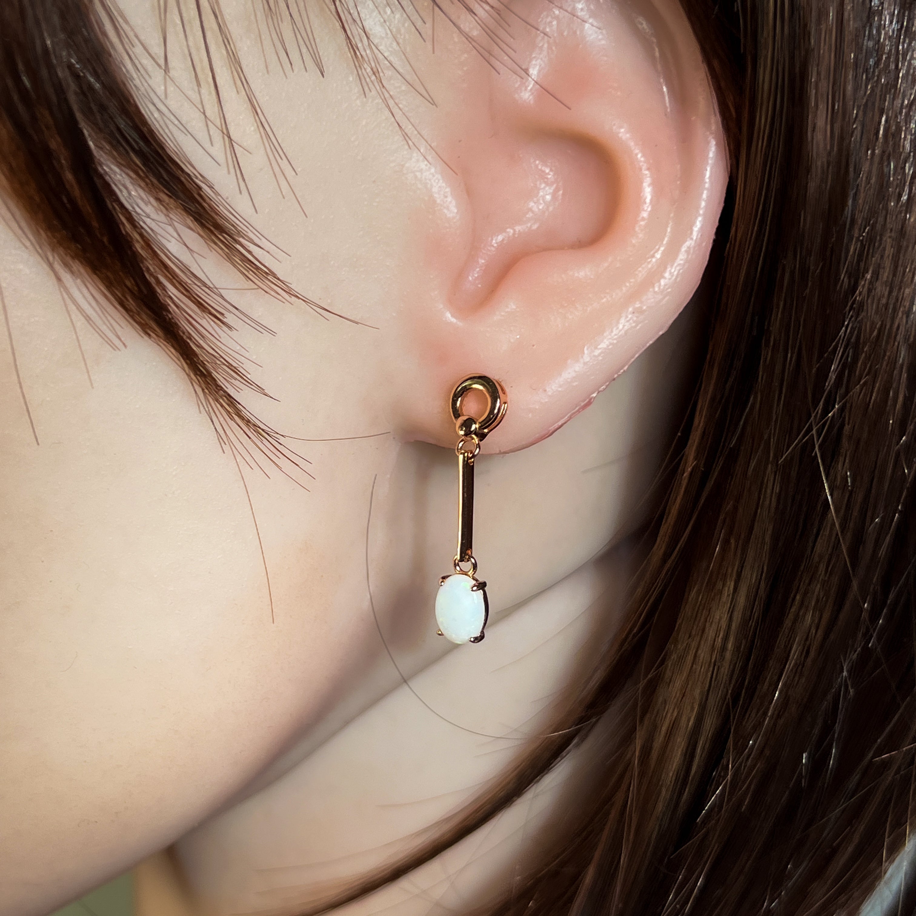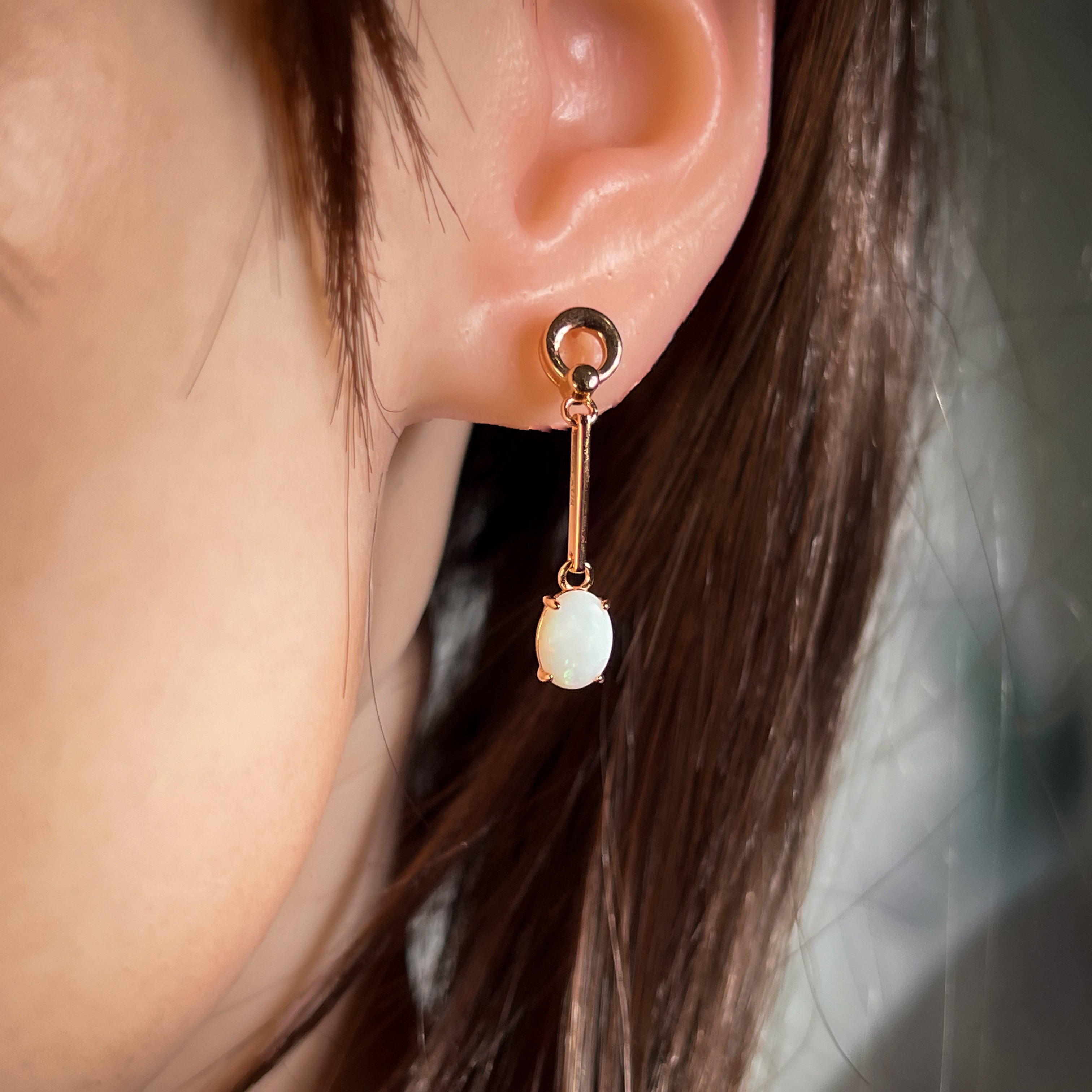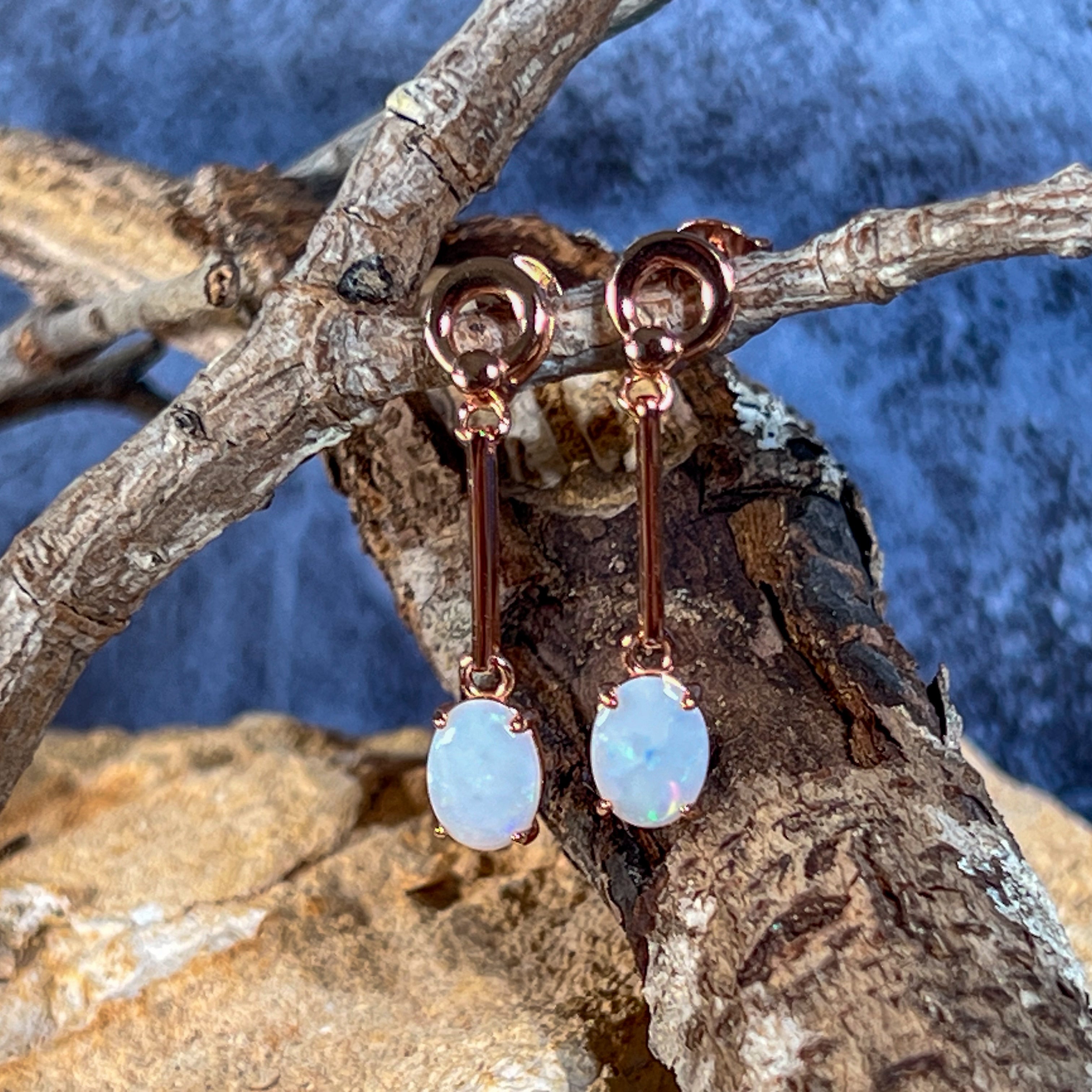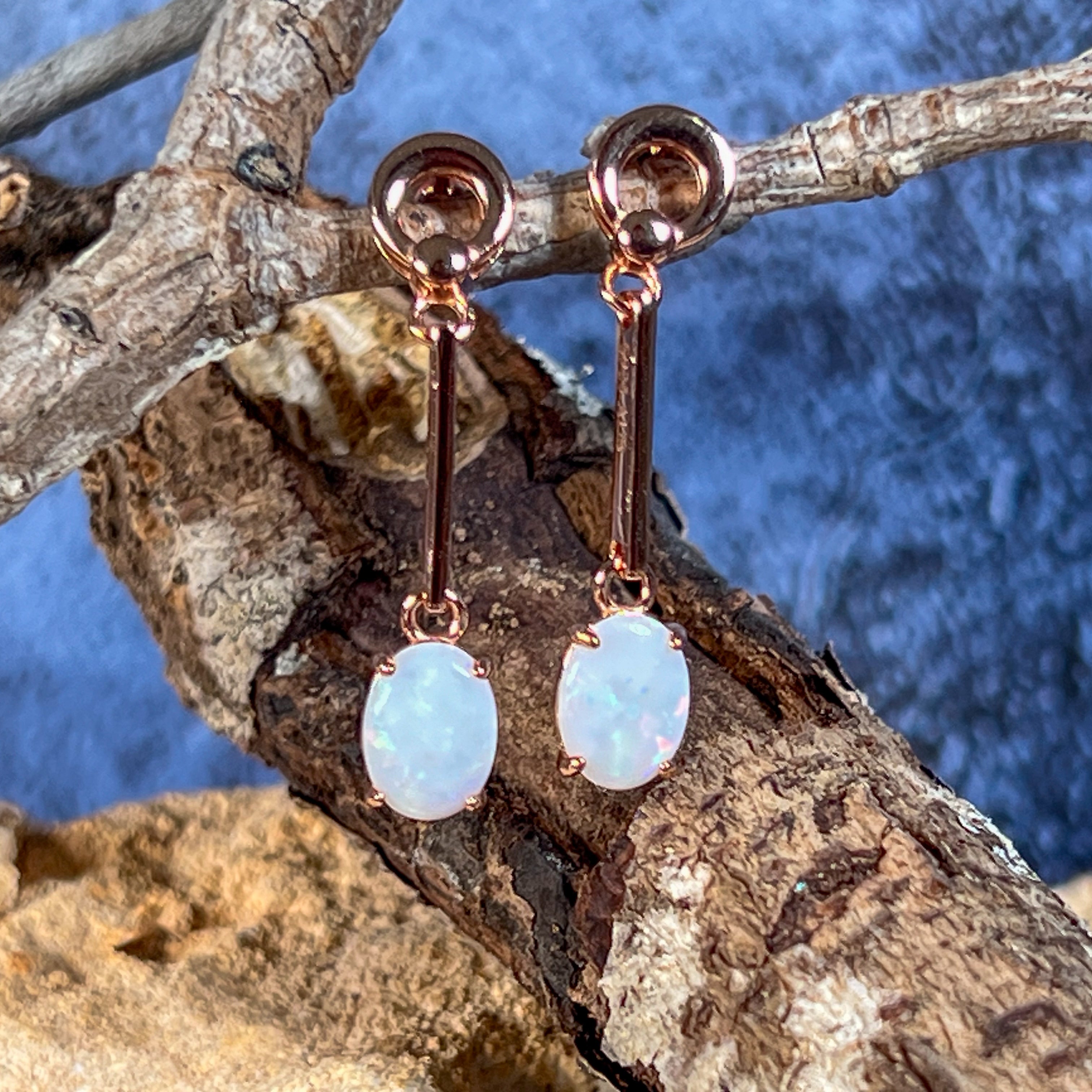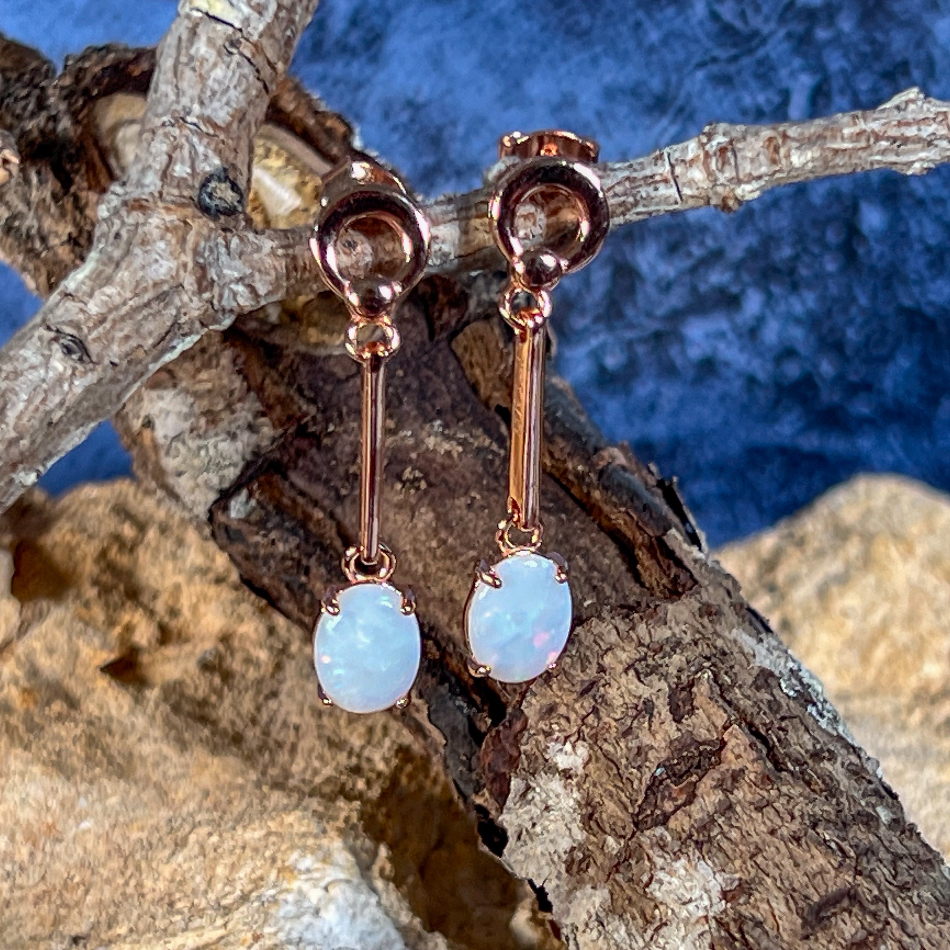 Add a touch of elegance with our Rose Gold plated Silver dangling claw set White Opal earrings featuring a long bar design. These earrings will effortlessly elevate any outfit and make a statement. Sparkle and shine with the unique opal stones, making you stand out from the crowd. Treat yourself or someone special to this stunning piece of jewelry!