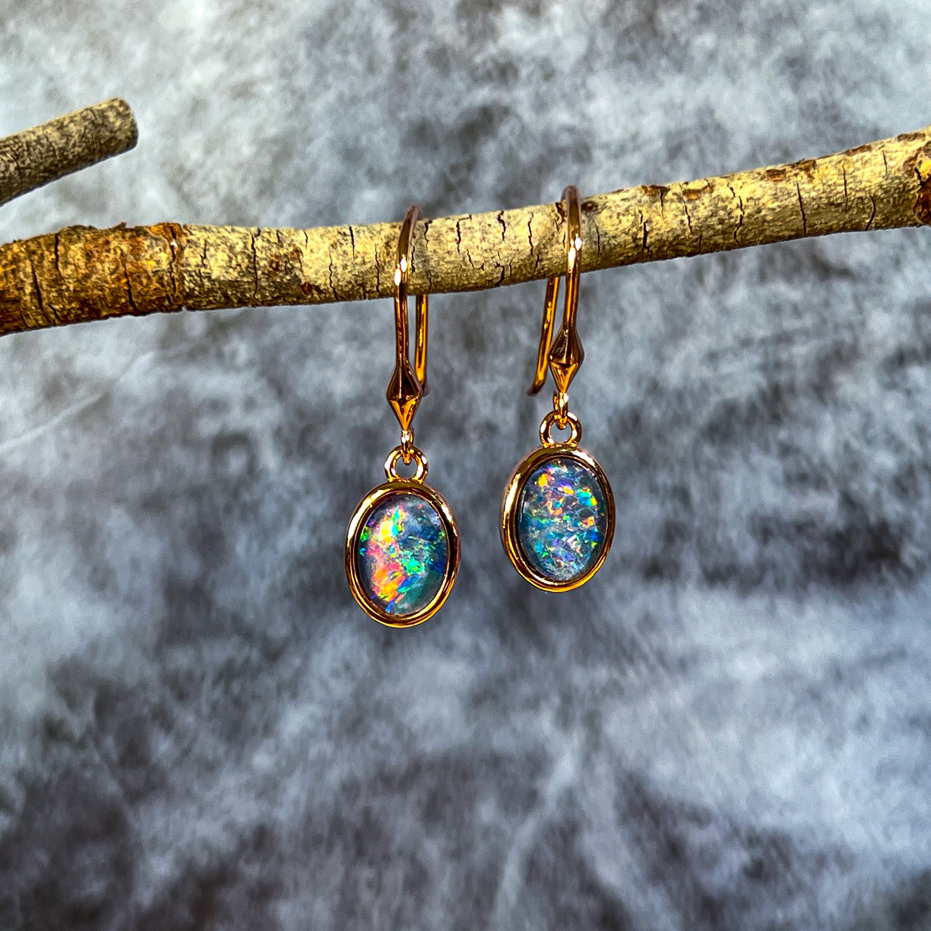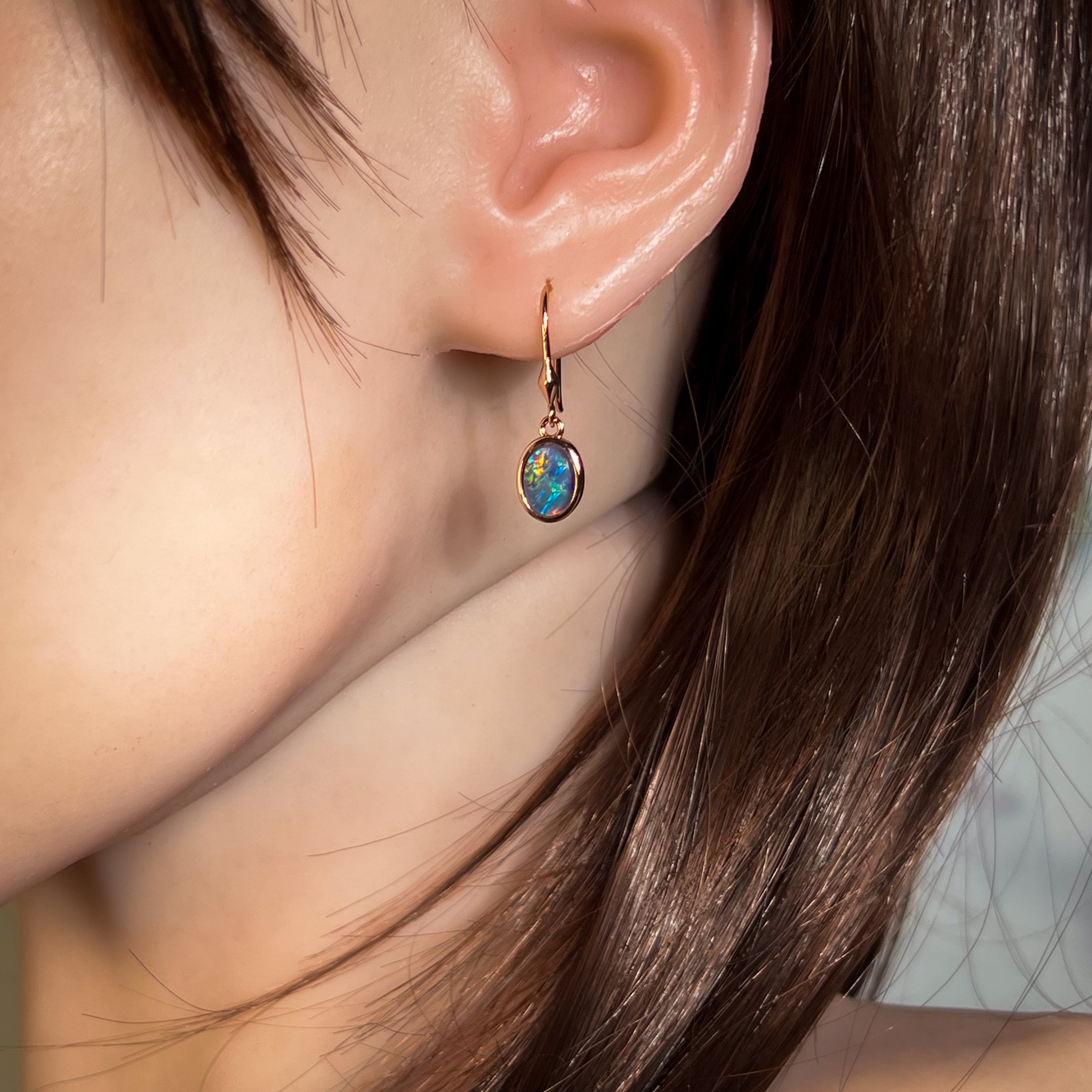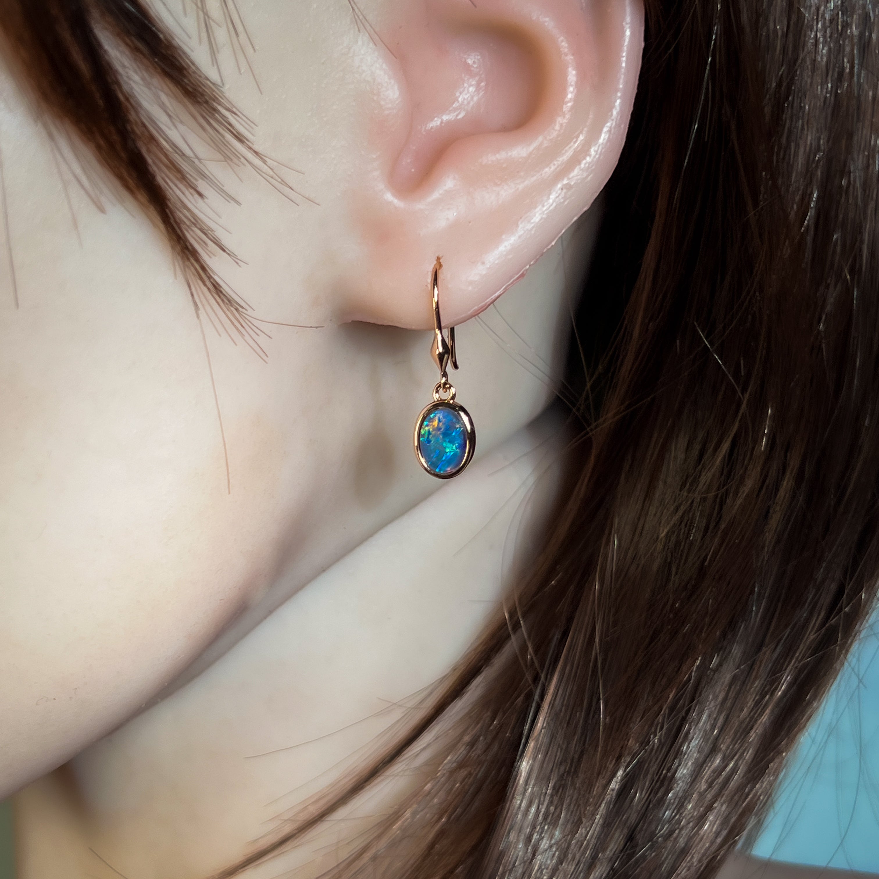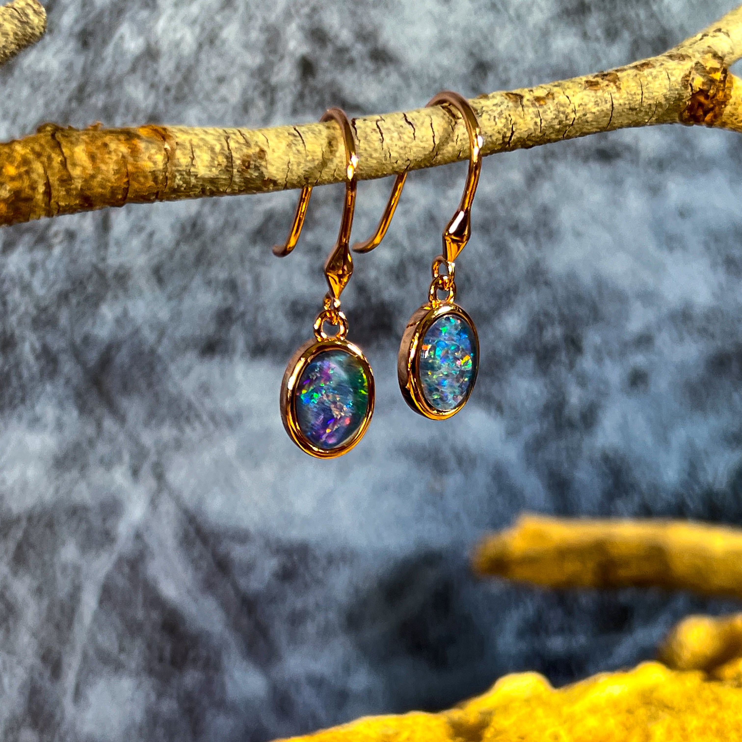 Rose Gold plated silver dangling Opal triplet 8x6mm hook earrings