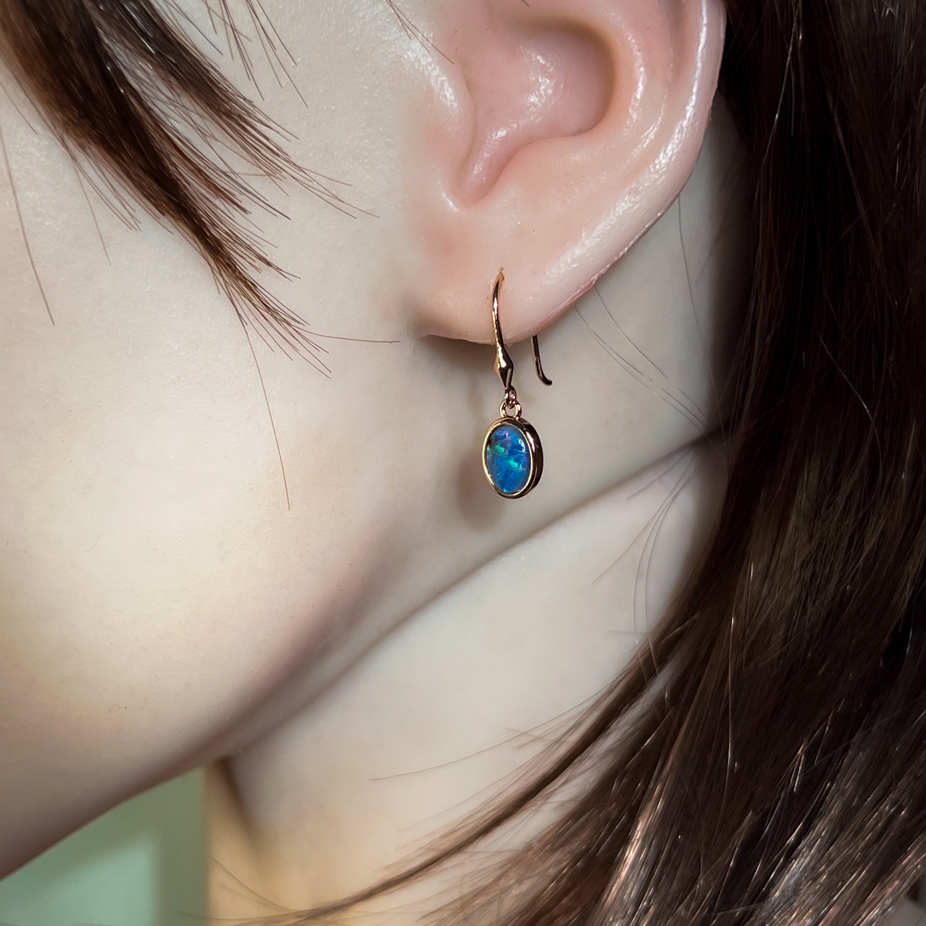 Elevate your style with our elegant Rose Gold plated silver dangling Opal triplet 8x6mm hook earrings! These stunning earrings feature a beautiful Opal triplet, showcasing its unique shimmer and color. The dangling design adds a touch of movement and sophistication to any outfit. Sparkle and shine with these must-have earrings!