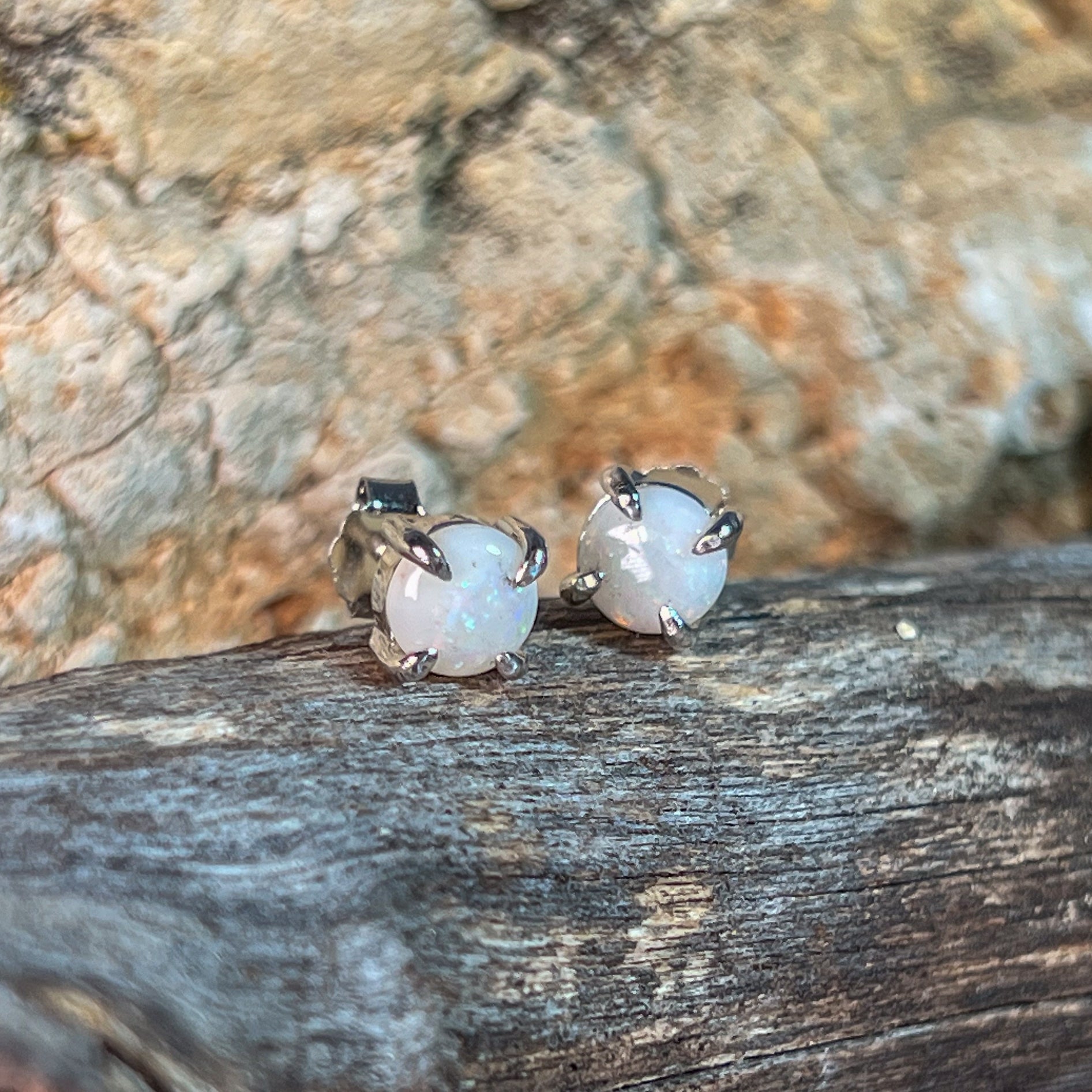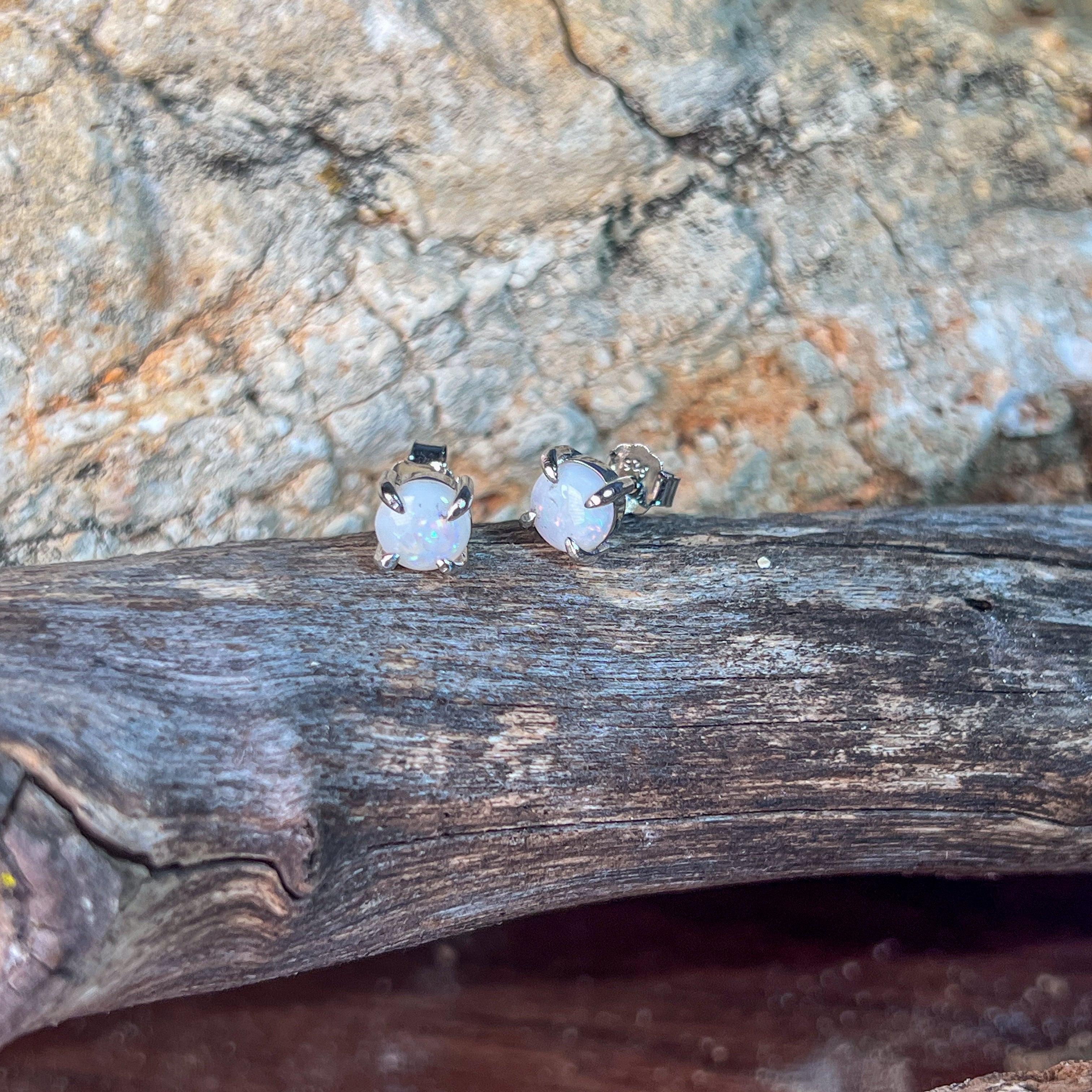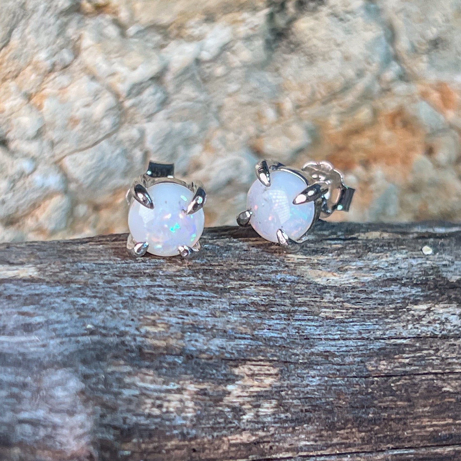 Unleash your inner elegance with our Sterling Silver 6mm Round White Opal claw set studs! These classic studs exude sophistication and add a touch of glamour to any outfit. Elevate your style with the timeless beauty of opal.
