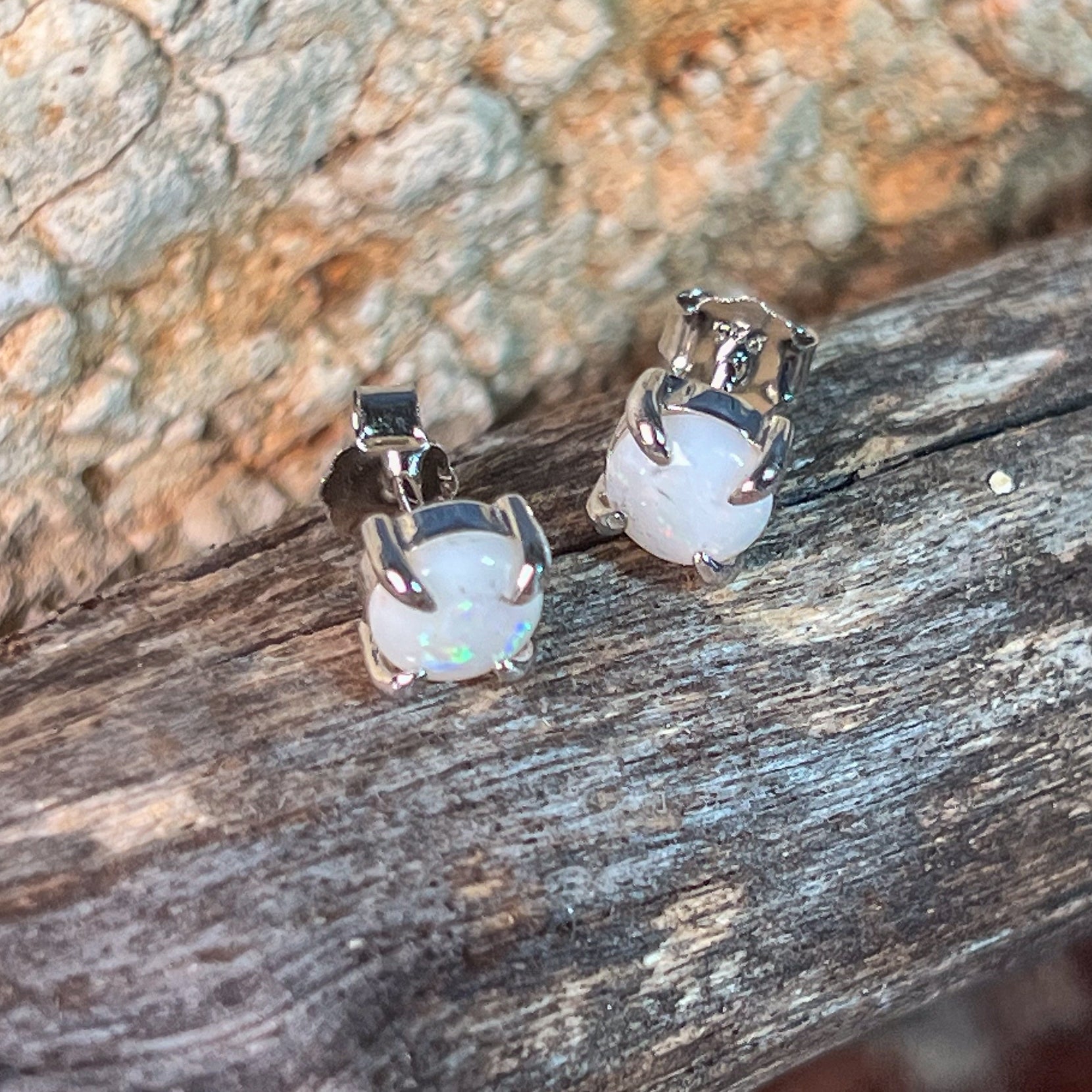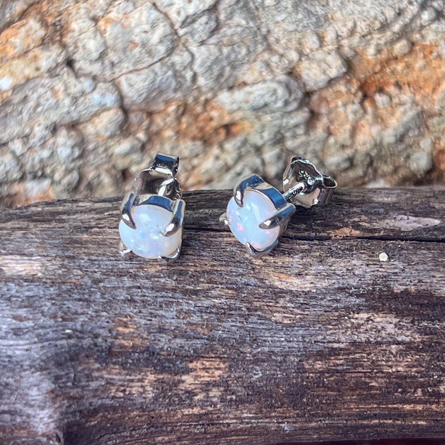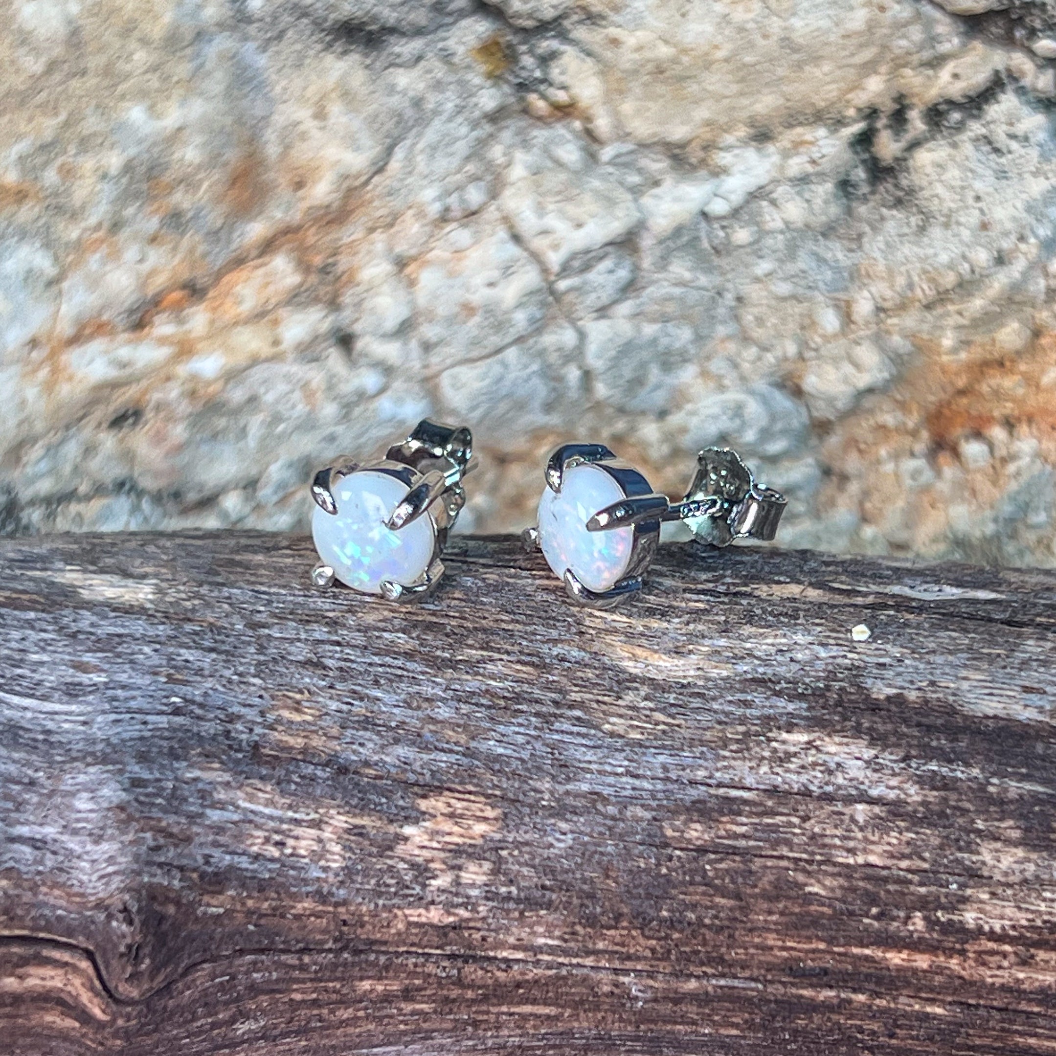 Unleash your inner elegance with our Sterling Silver 6mm Round White Opal claw set studs! These classic studs exude sophistication and add a touch of glamour to any outfit. Elevate your style with the timeless beauty of opal.