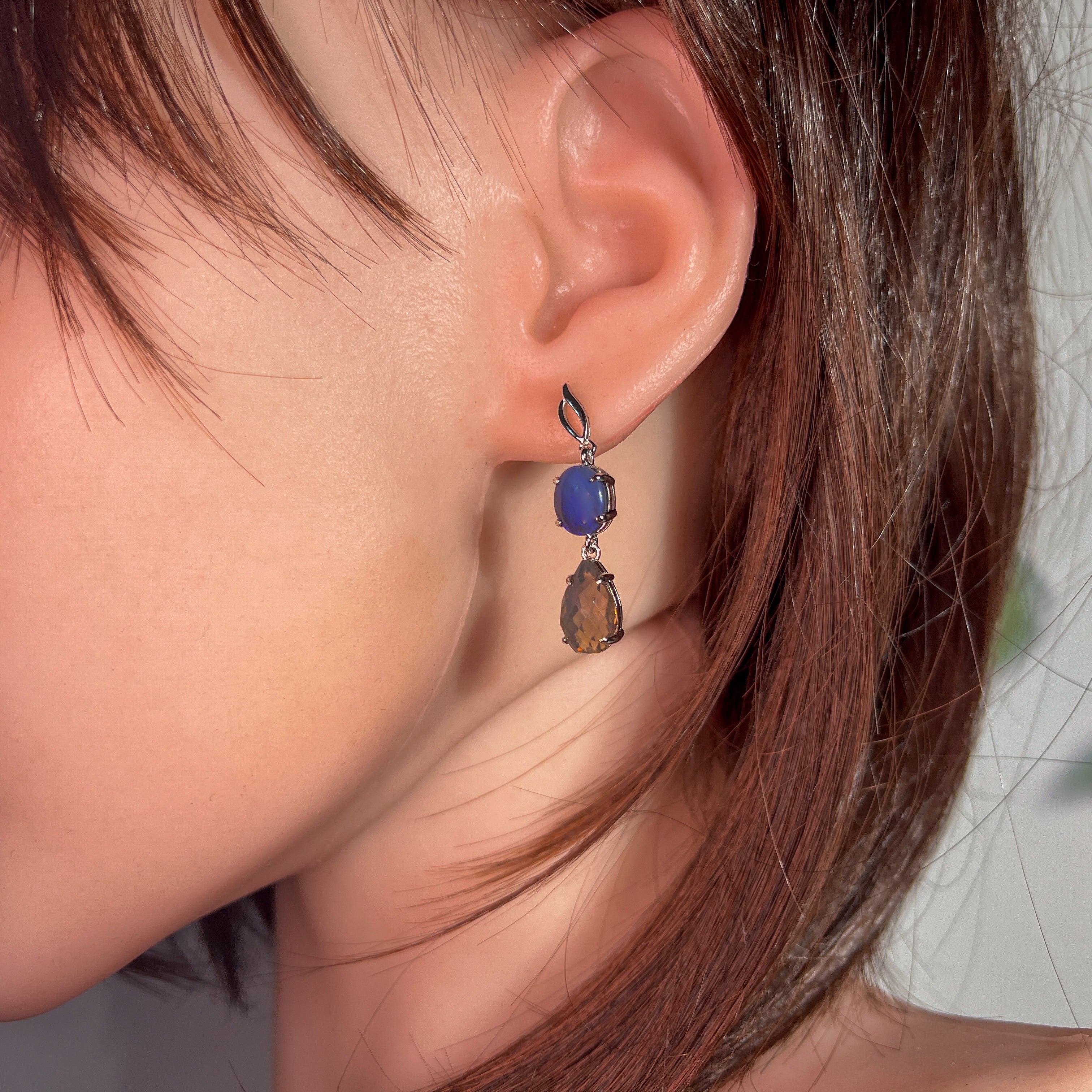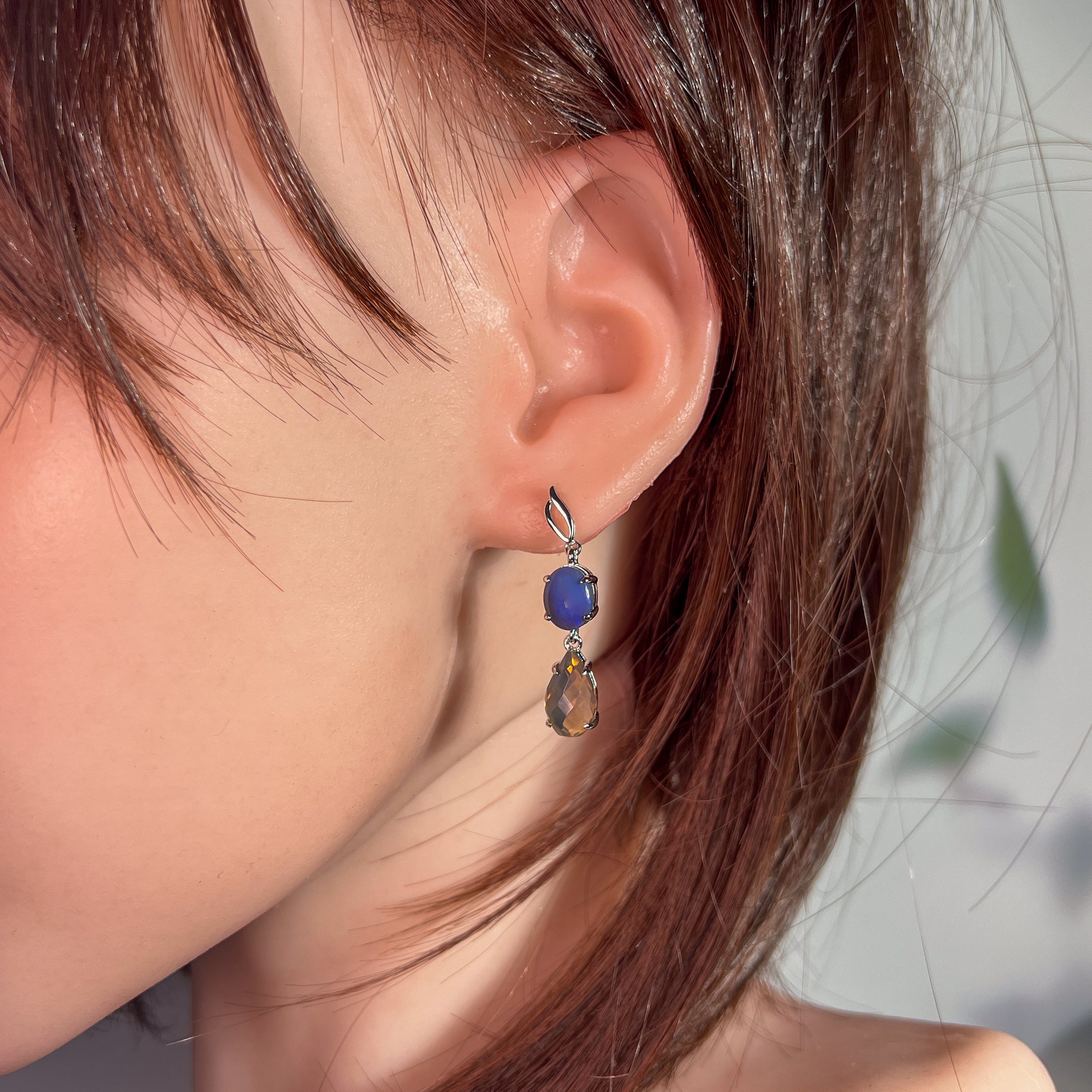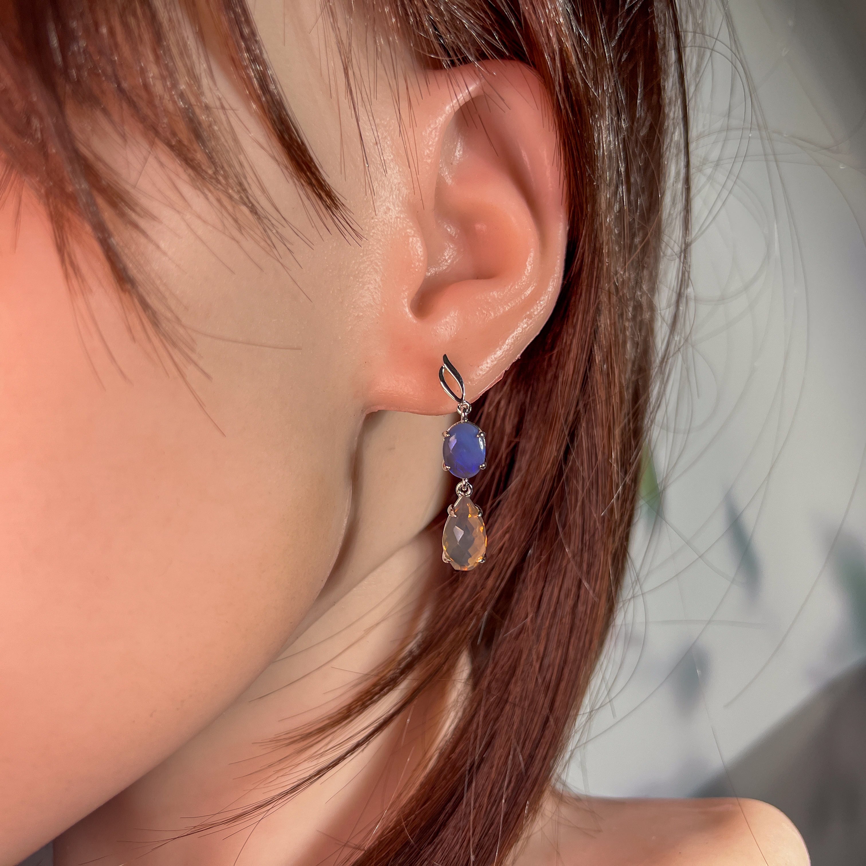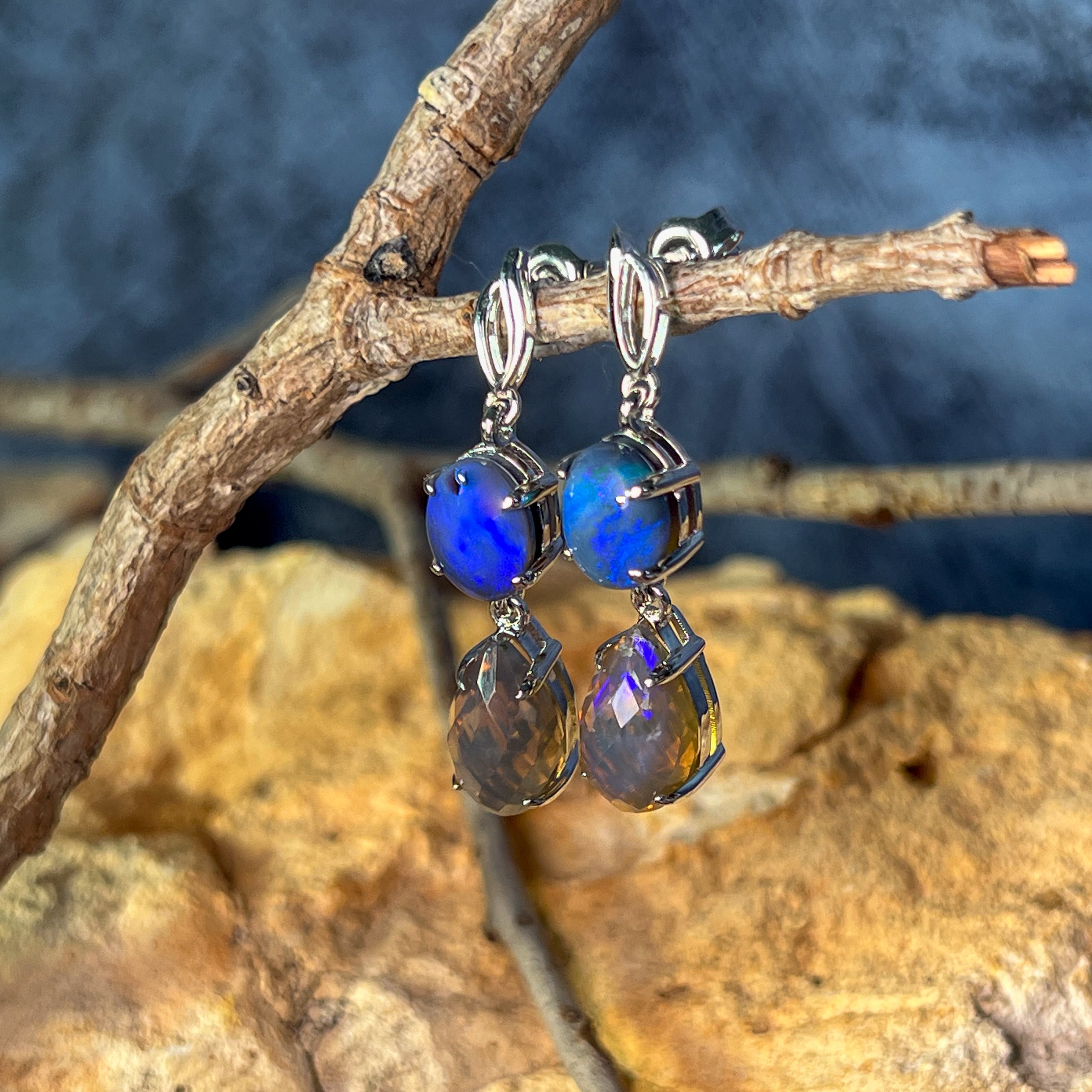 Add a touch of magic to your ensemble with our Sterling Silver Black Opal Dangling Earrings! Featuring Briolette cut opals that dance with every step, these earrings will make you feel like a goddess. Elevate your style game with these stunning and playful earrings. (Opal-ly perfect!)