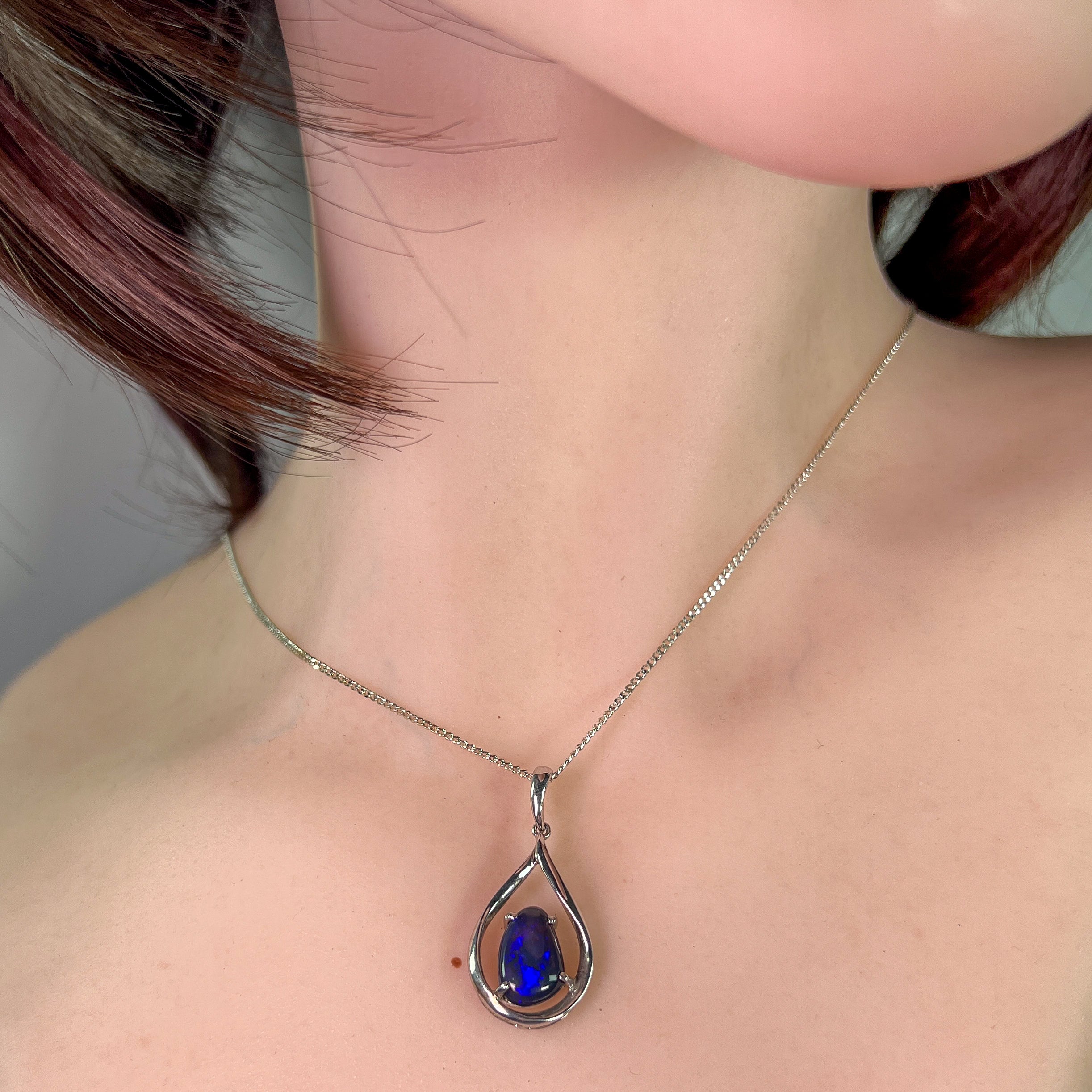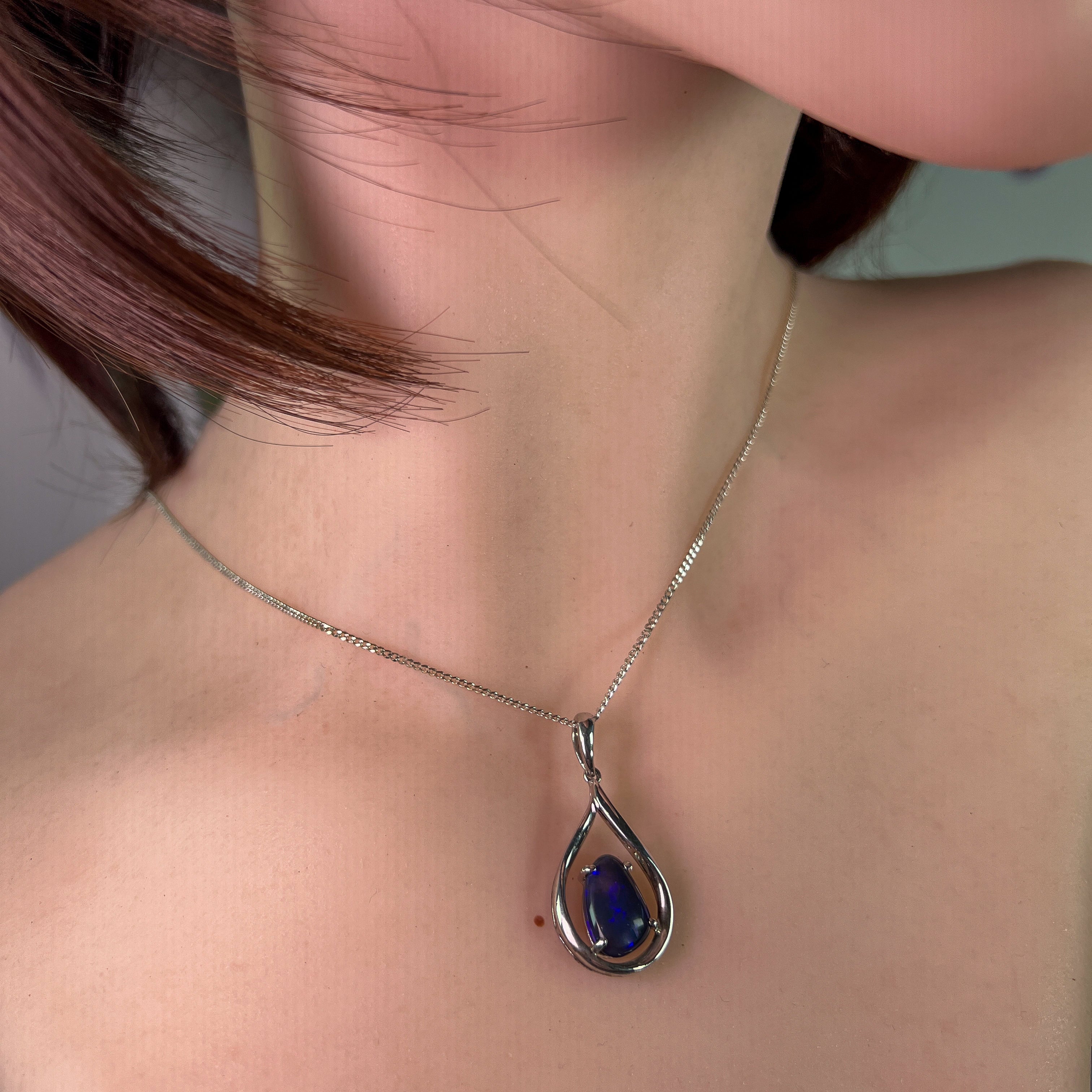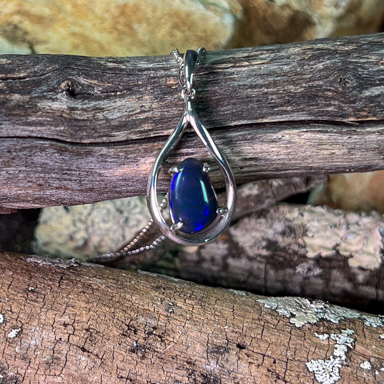 This Sterling Silver Black Opal pendant features a stunning Lightning Ridge black opal, making it a unique and elegant necklace for women. The deep saturated blue colors of the opal will catch the eye and add a touch of sophistication to any outfit. Own a piece of natural beauty with this exquisite pendant.