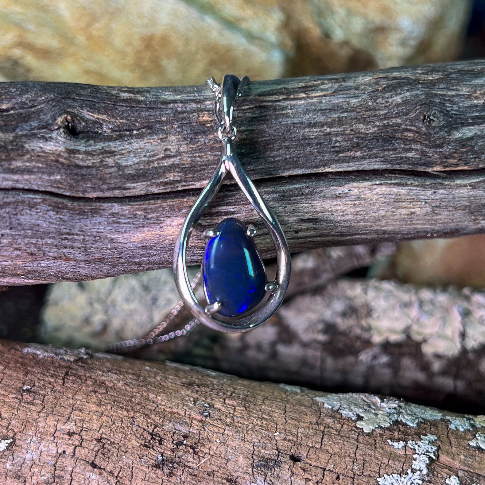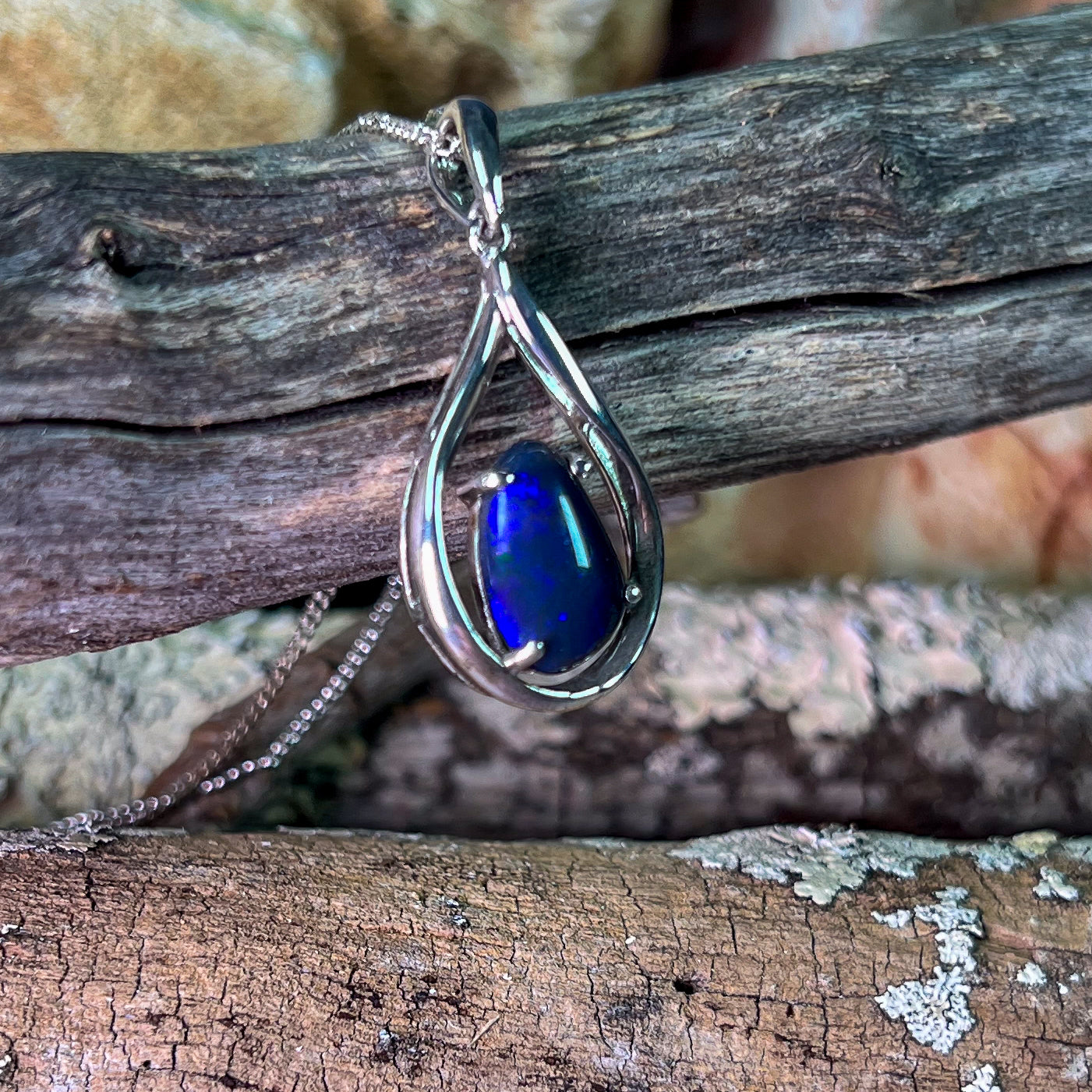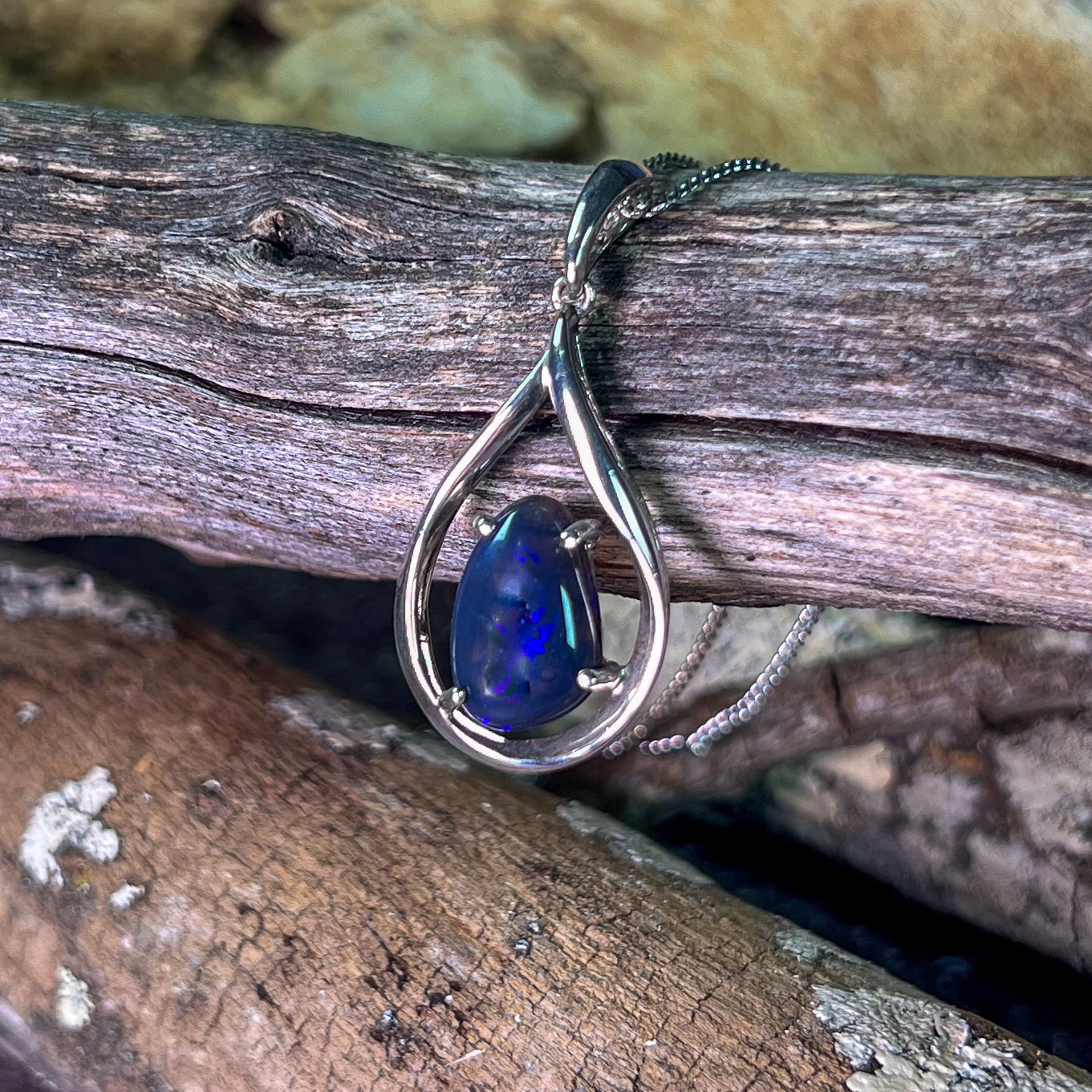 This Sterling Silver Black Opal pendant features a stunning Lightning Ridge black opal, making it a unique and elegant necklace for women. The deep saturated blue colors of the opal will catch the eye and add a touch of sophistication to any outfit. Own a piece of natural beauty with this exquisite pendant.