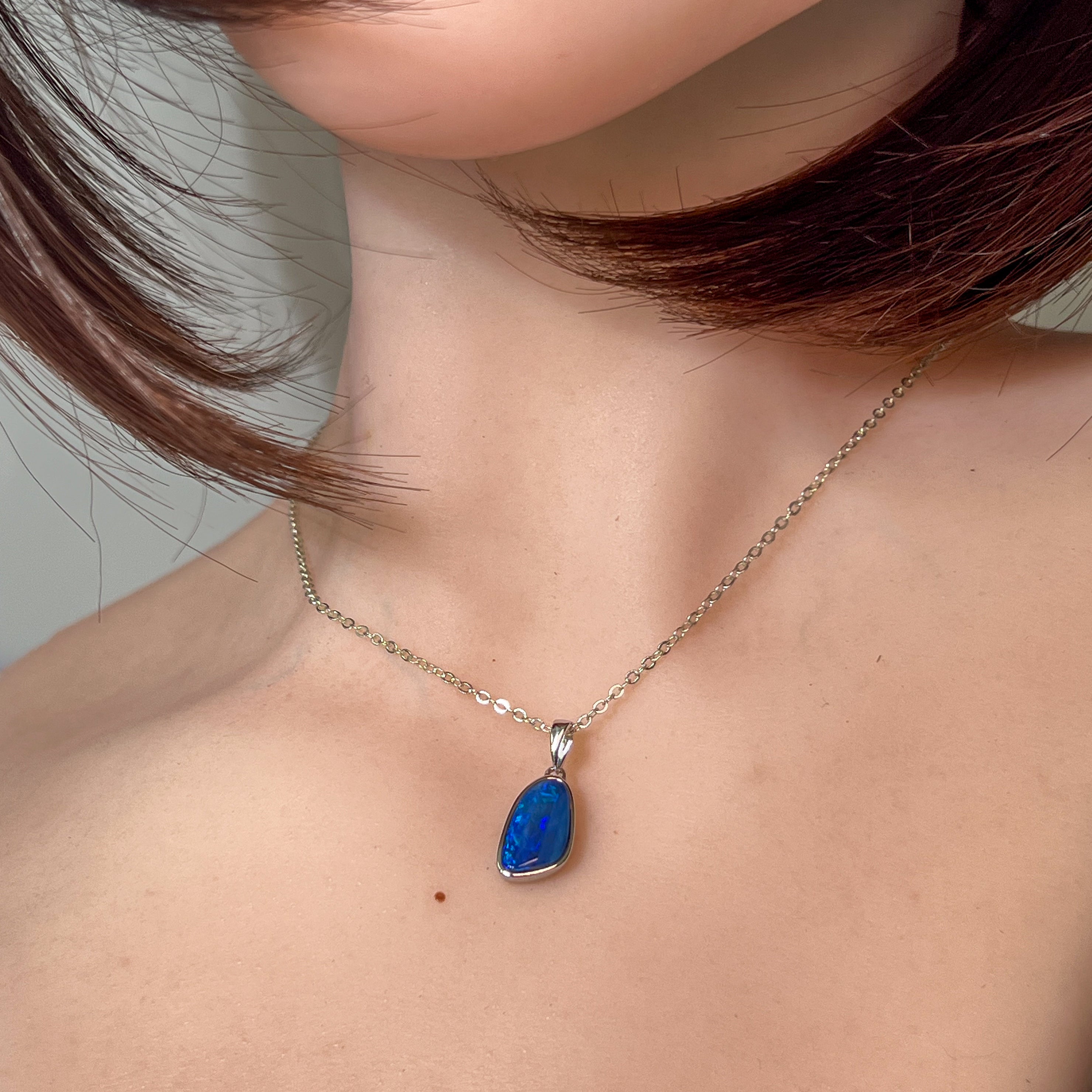 Add a splash of magic to your day with this Sterling Silver Blue Opal doublet bezel pendant. Its shimmering blue opal birthstone catches the light beautifully, making it the perfect playful accessory to brighten any outfit. Crafted with care, this necklace is a charming way to celebrate your birth month or gift a loved one something truly special.