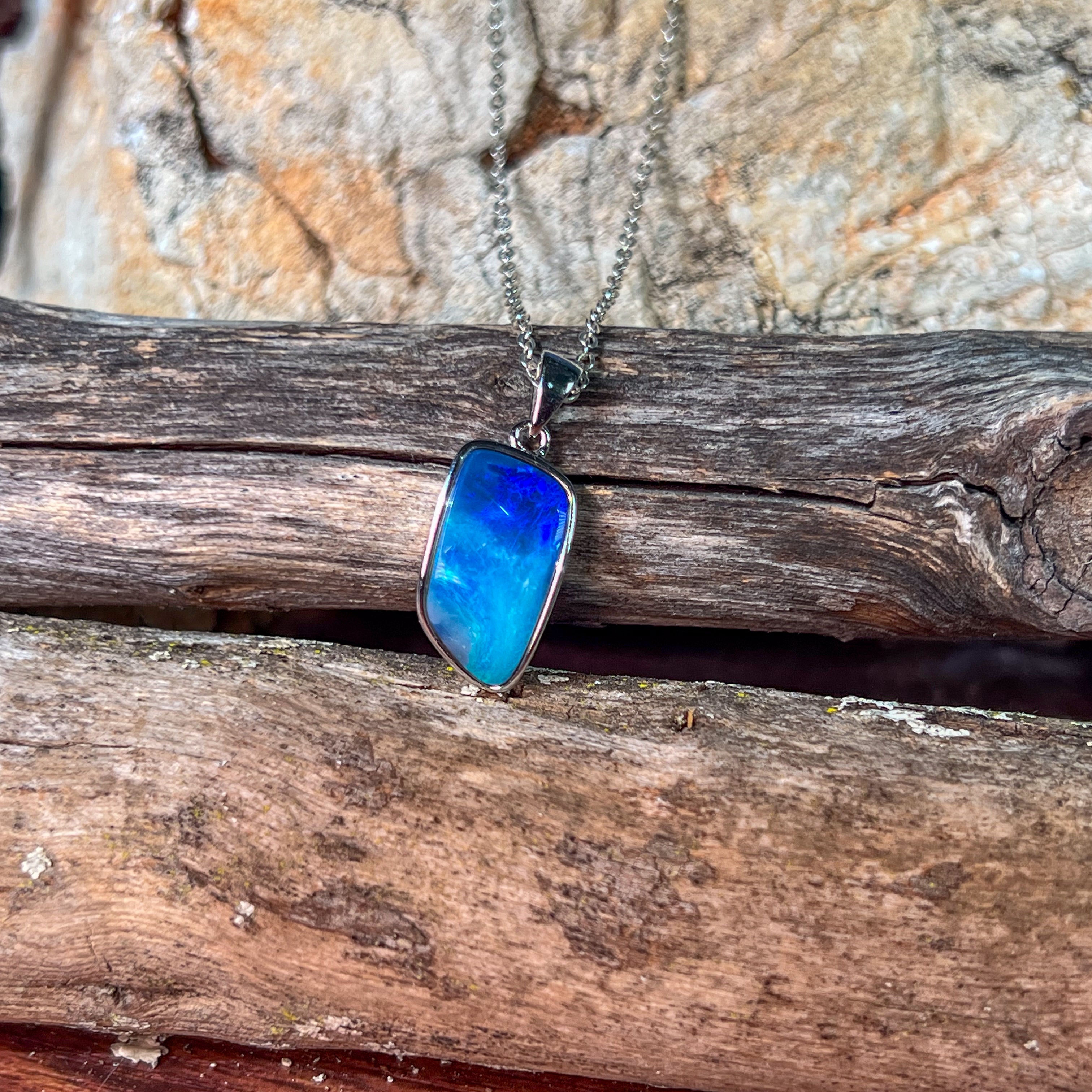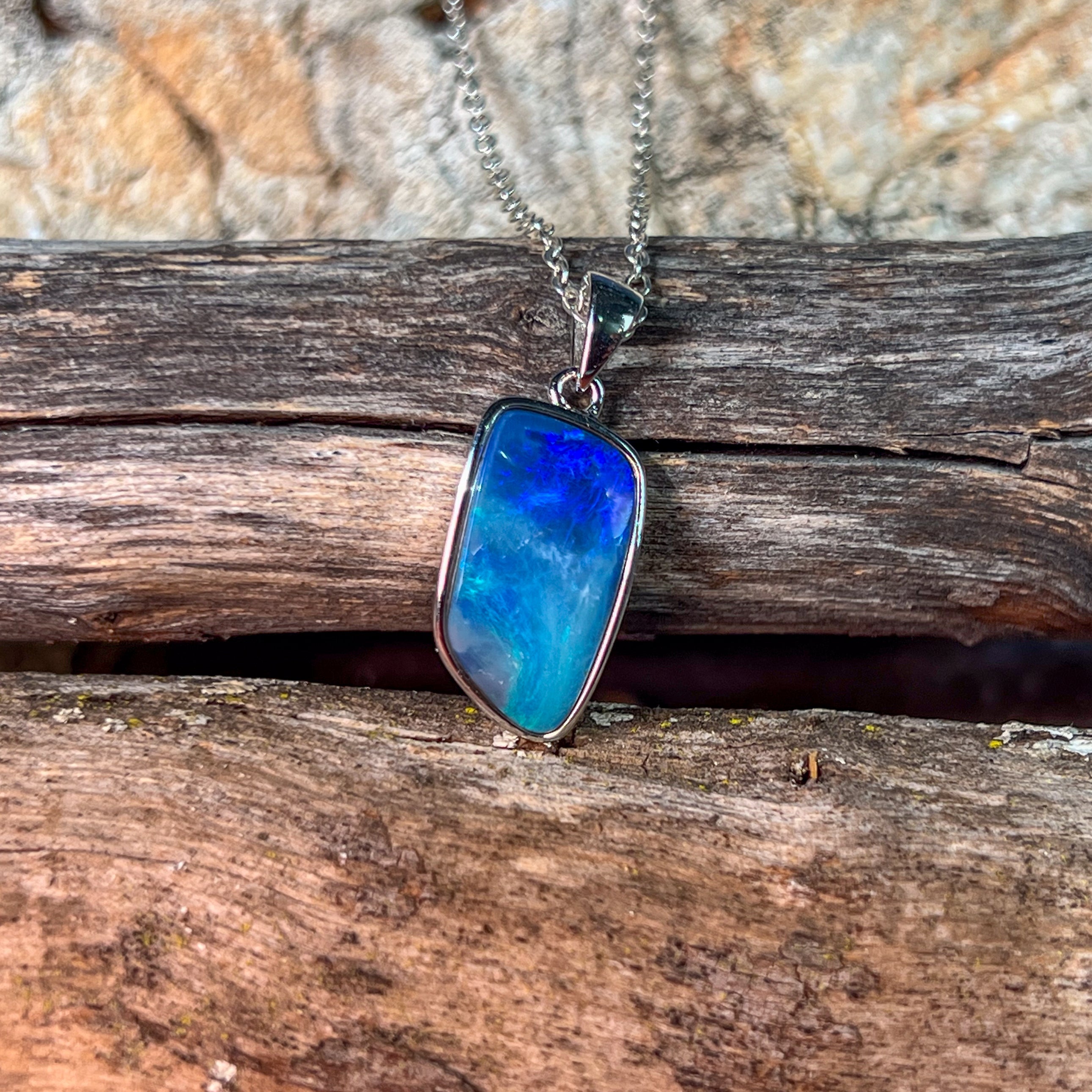 Sterling Silver Blue Opal stripe doublet pendant