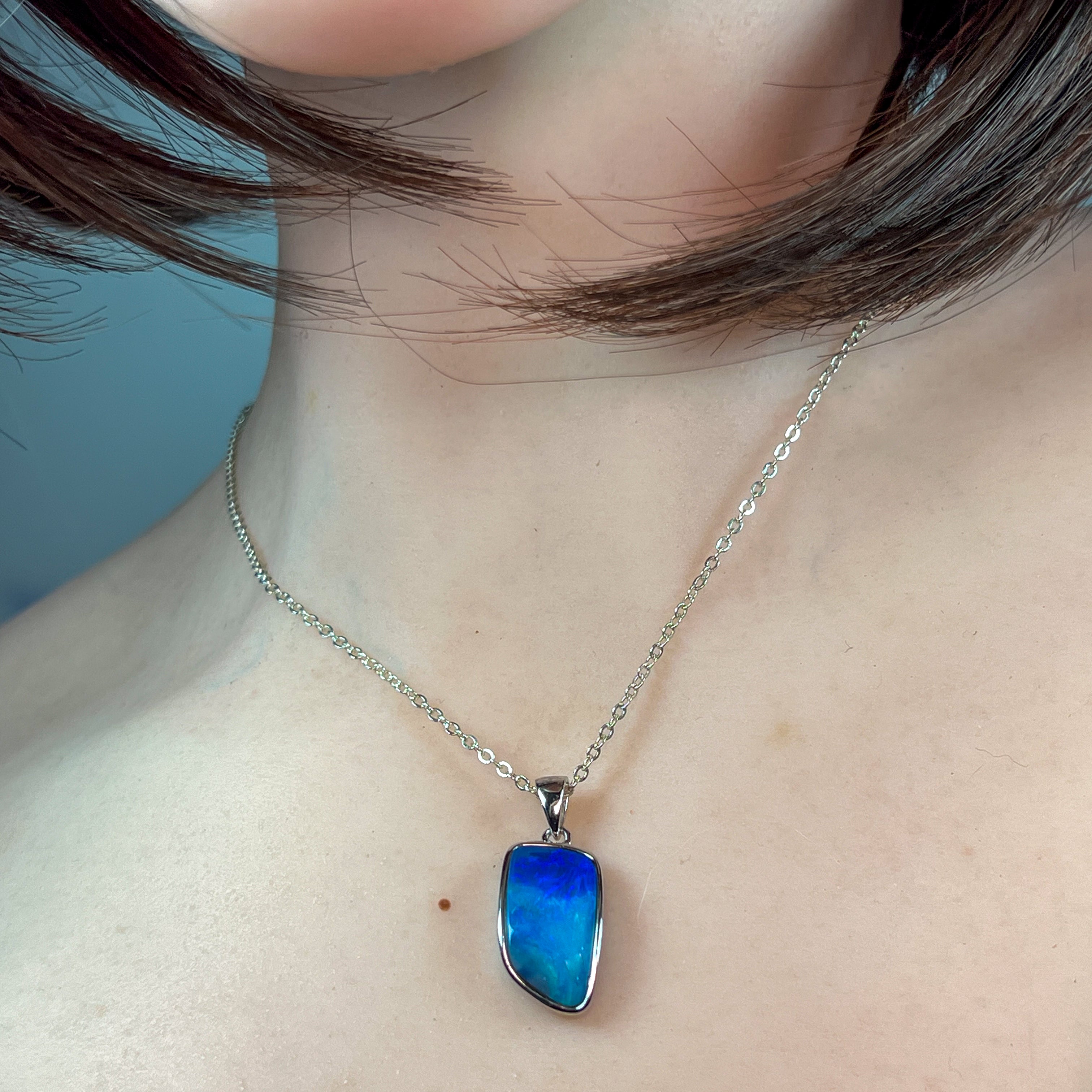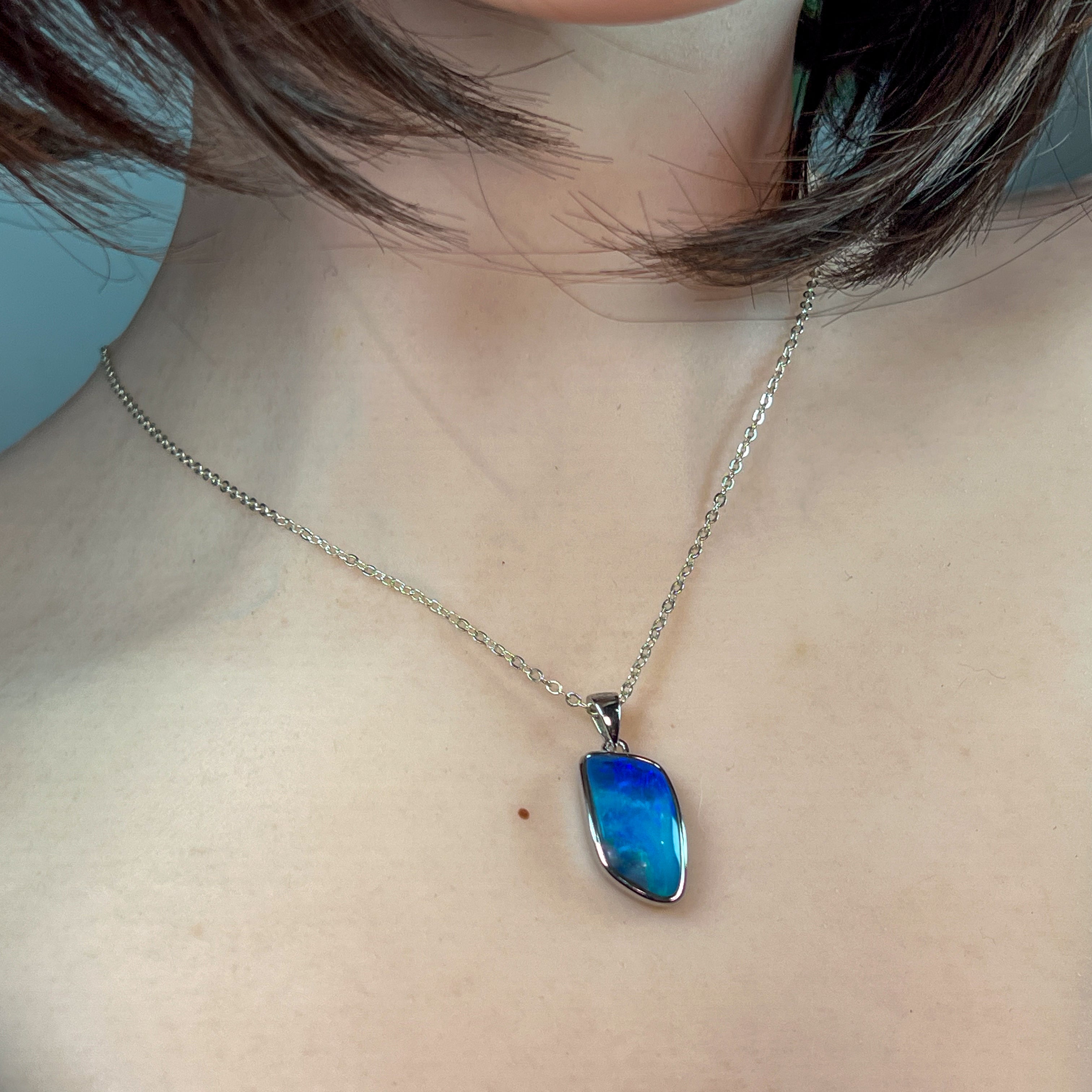 Dive into the mesmerizing depths of our Sterling Silver Blue Opal Stripe Doublet Pendant, where ocean reef hues come alive. This stunning piece captures the serene blues and luminous greens of tropical waters, with distinctive striping that mirrors nature's own artistry. Crafted in quality sterling silver, the doublet construction enhances the opal's natural brilliance while ensuring durability. Perfect for those who crave a touch of coastal elegance, this pendant brings the tranquil beauty of the reef directly to your neckline. A timeless investment that celebrates the ocean's magic.