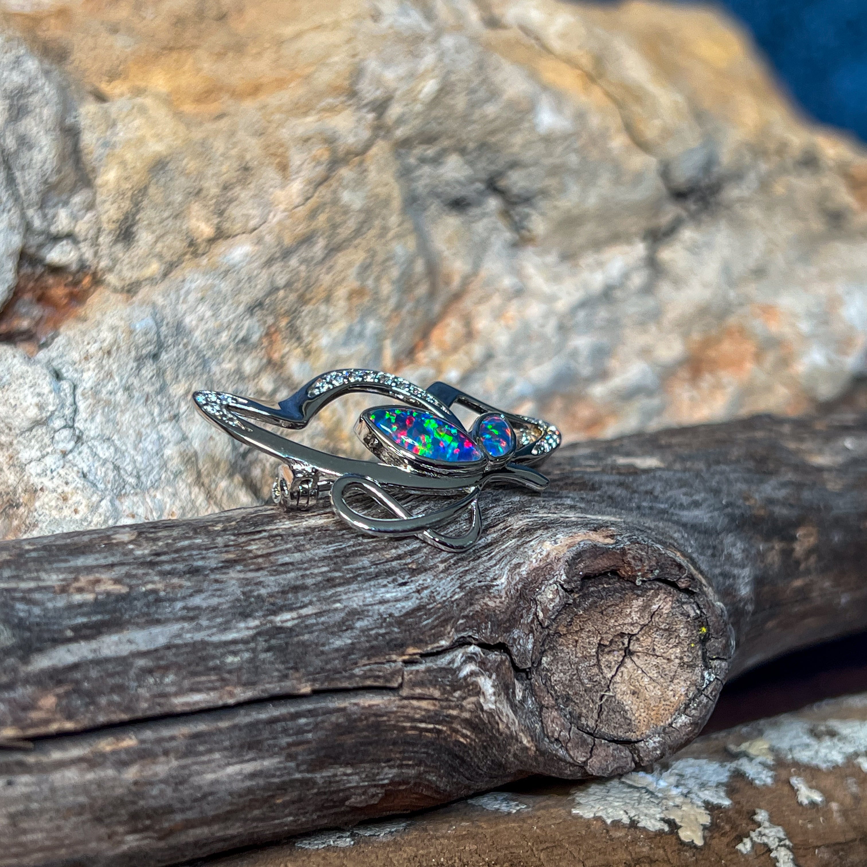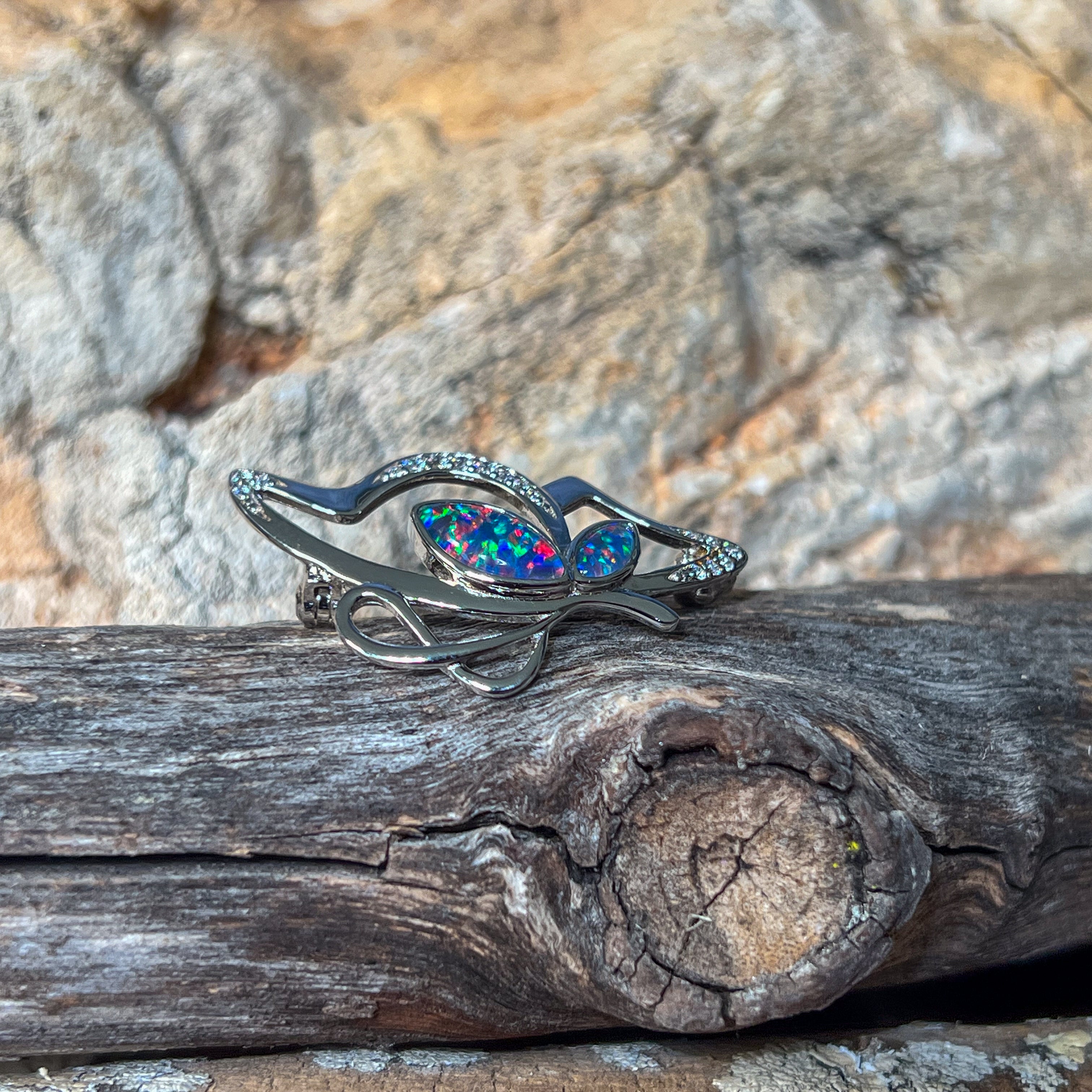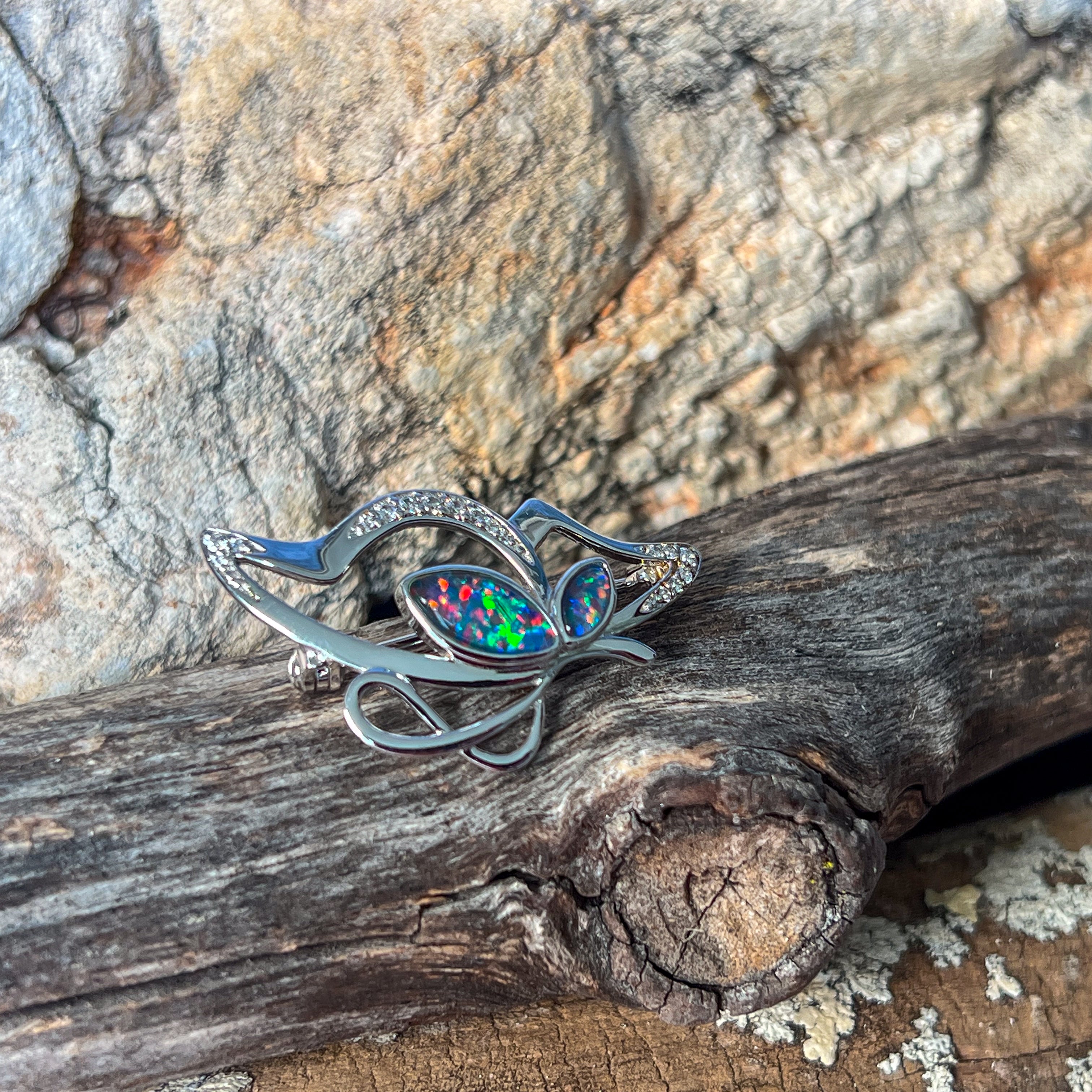 Elevate her elegance with this sterling silver butterfly brooch, featuring exquisite marquise-cut opal triplets. The delicate design captures the beauty of nature, while the vibrant opals add a touch of iridescent charm. Perfect as a thoughtful gift, this brooch complements any outfit with timeless sophistication.