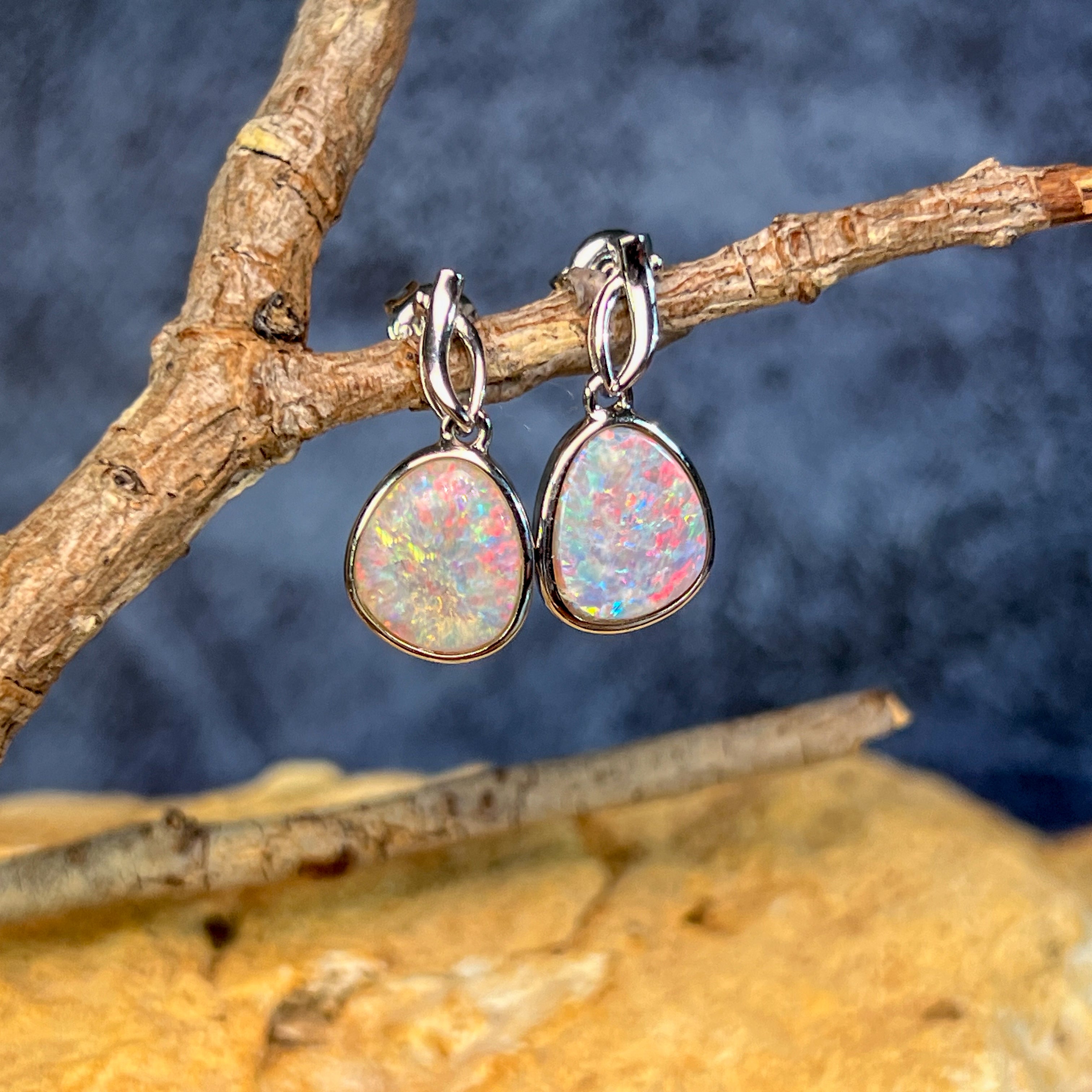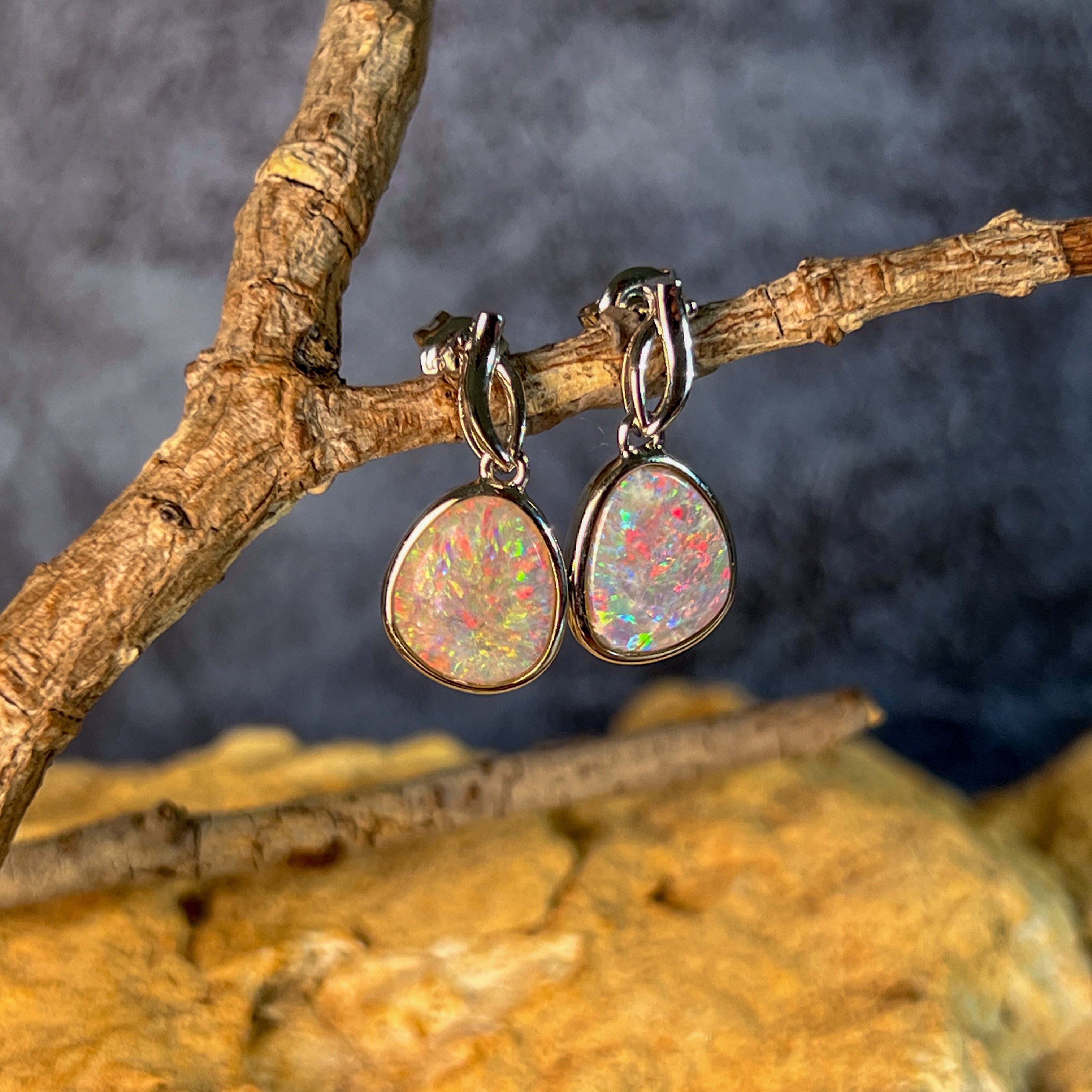 Expertly crafted from gleaming sterling silver, these earrings feature stunning black opal drops with vibrant red pin fire color play. Elevate any outfit with the dynamic and unique beauty of these 2.55ct earrings. Perfect for adding a touch of luxury and elegance to your look.