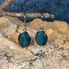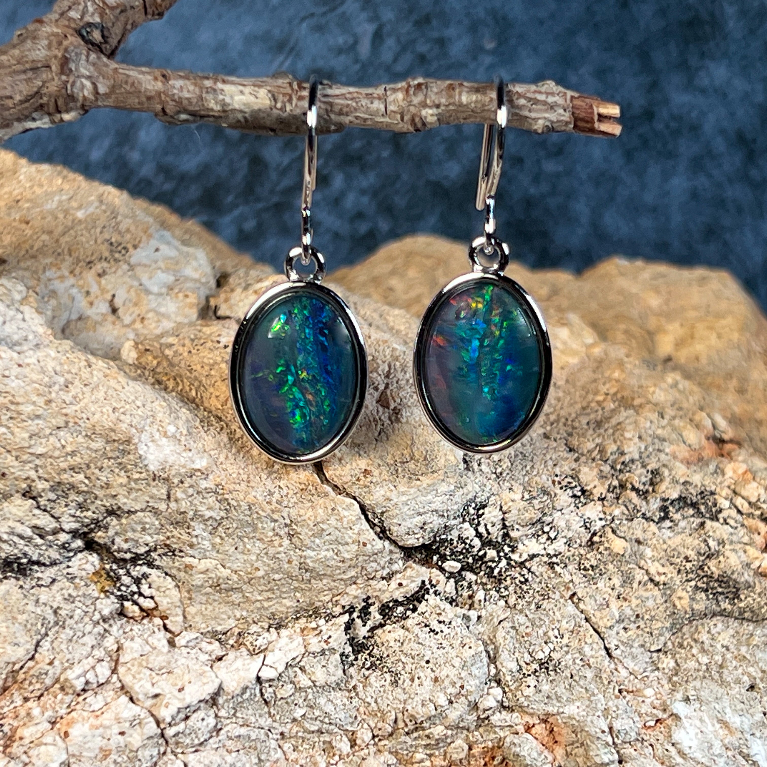 Sterling Silver dangling Opal triplet oval earrings on hooks