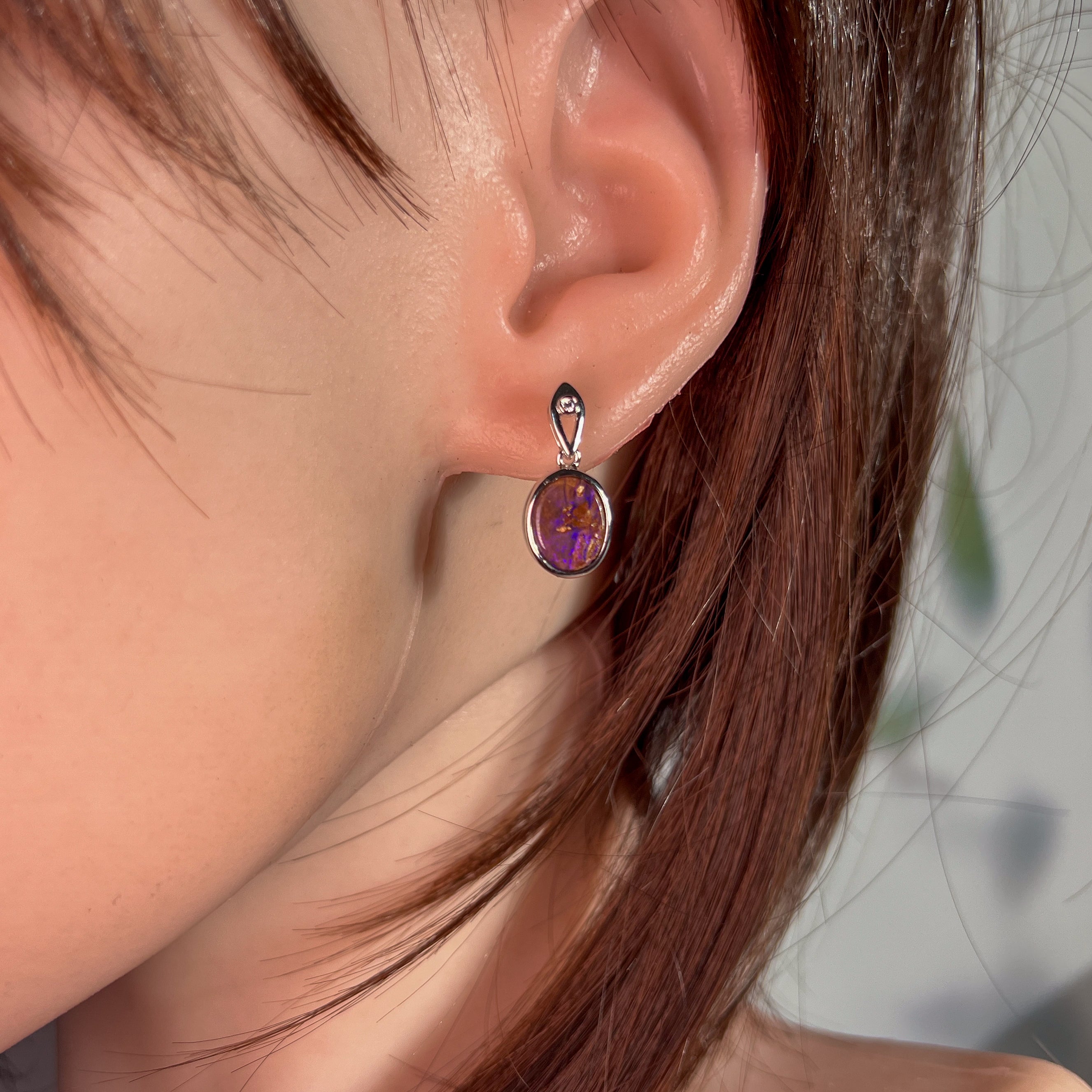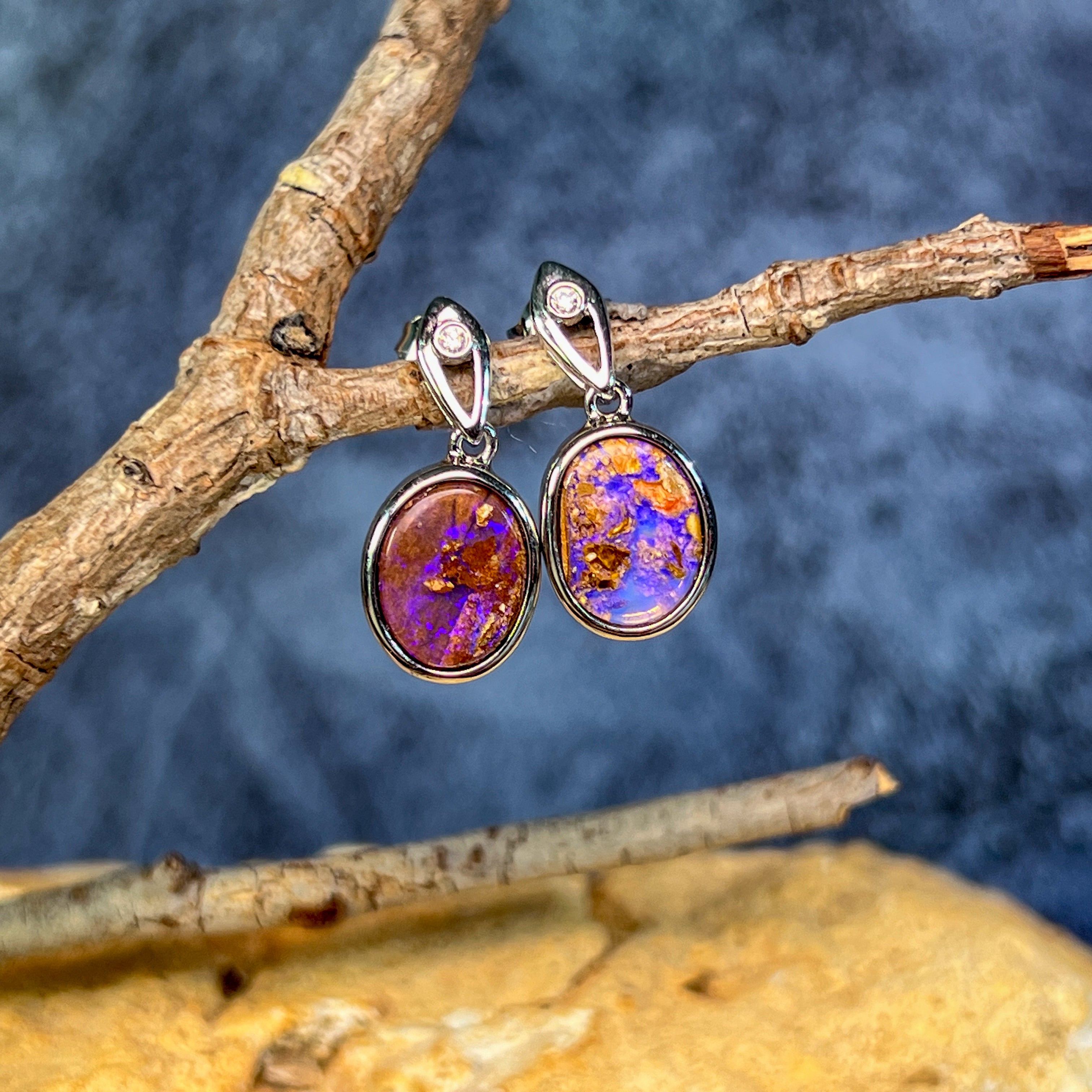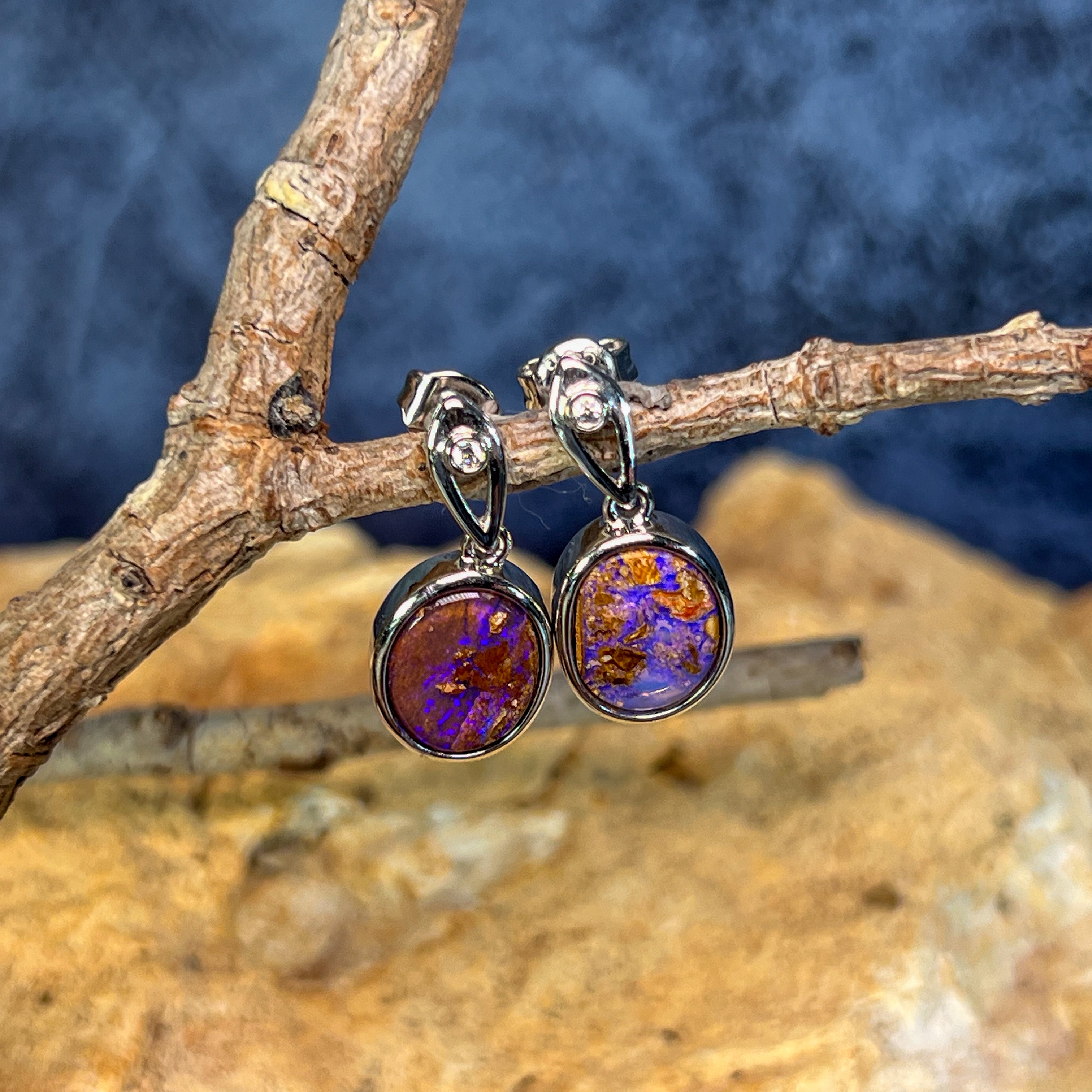 Sterling Silver dangling Oval shape Boulder Opal earrings