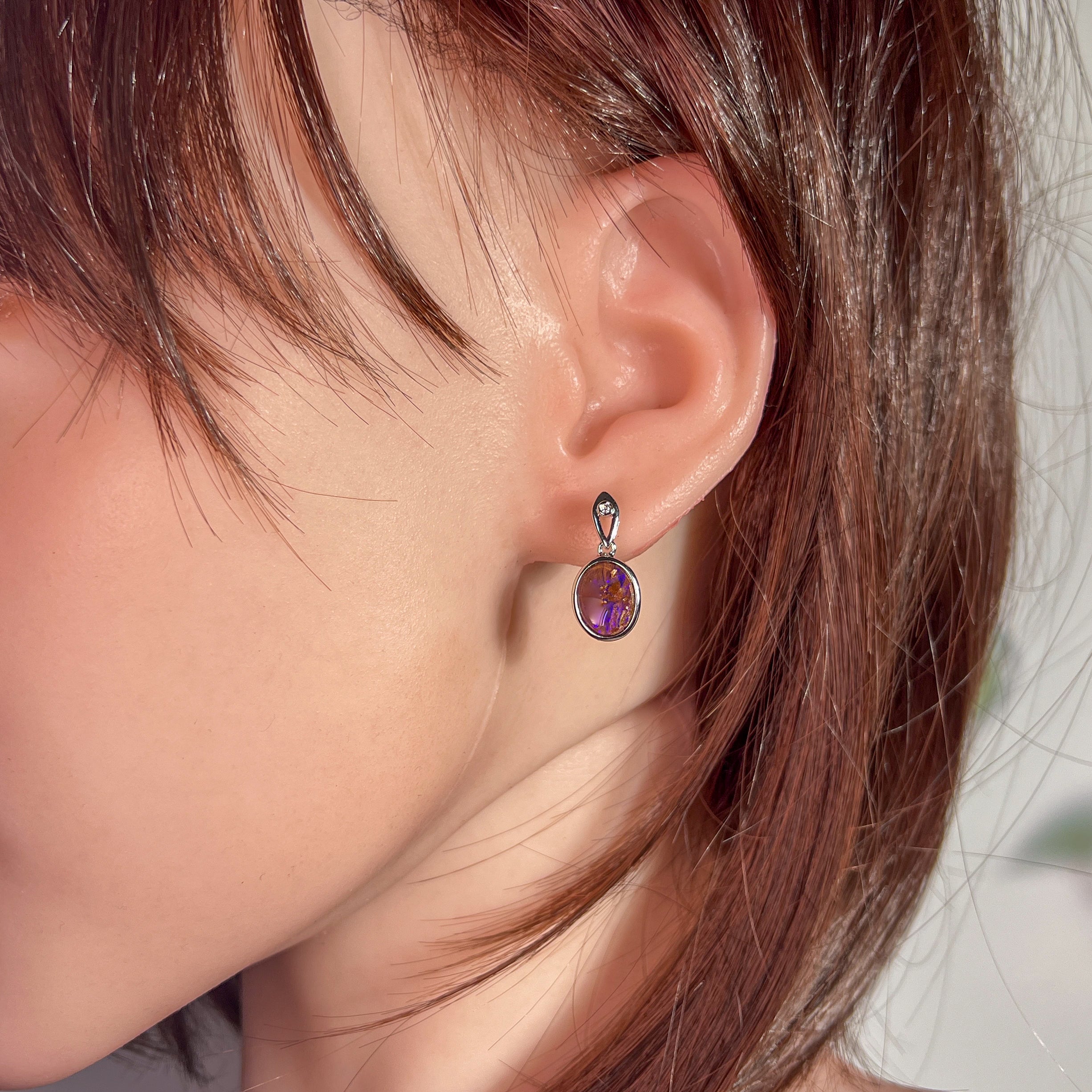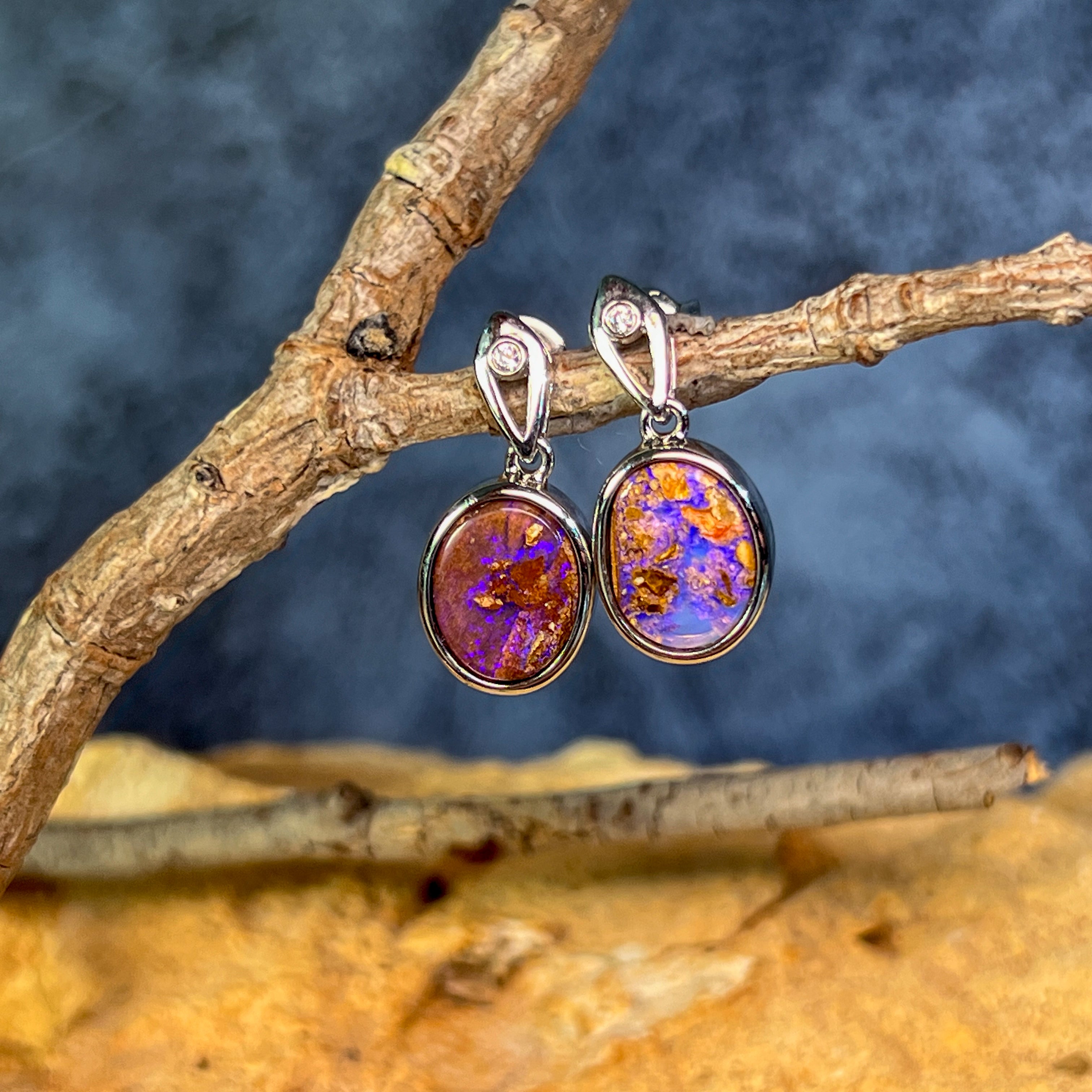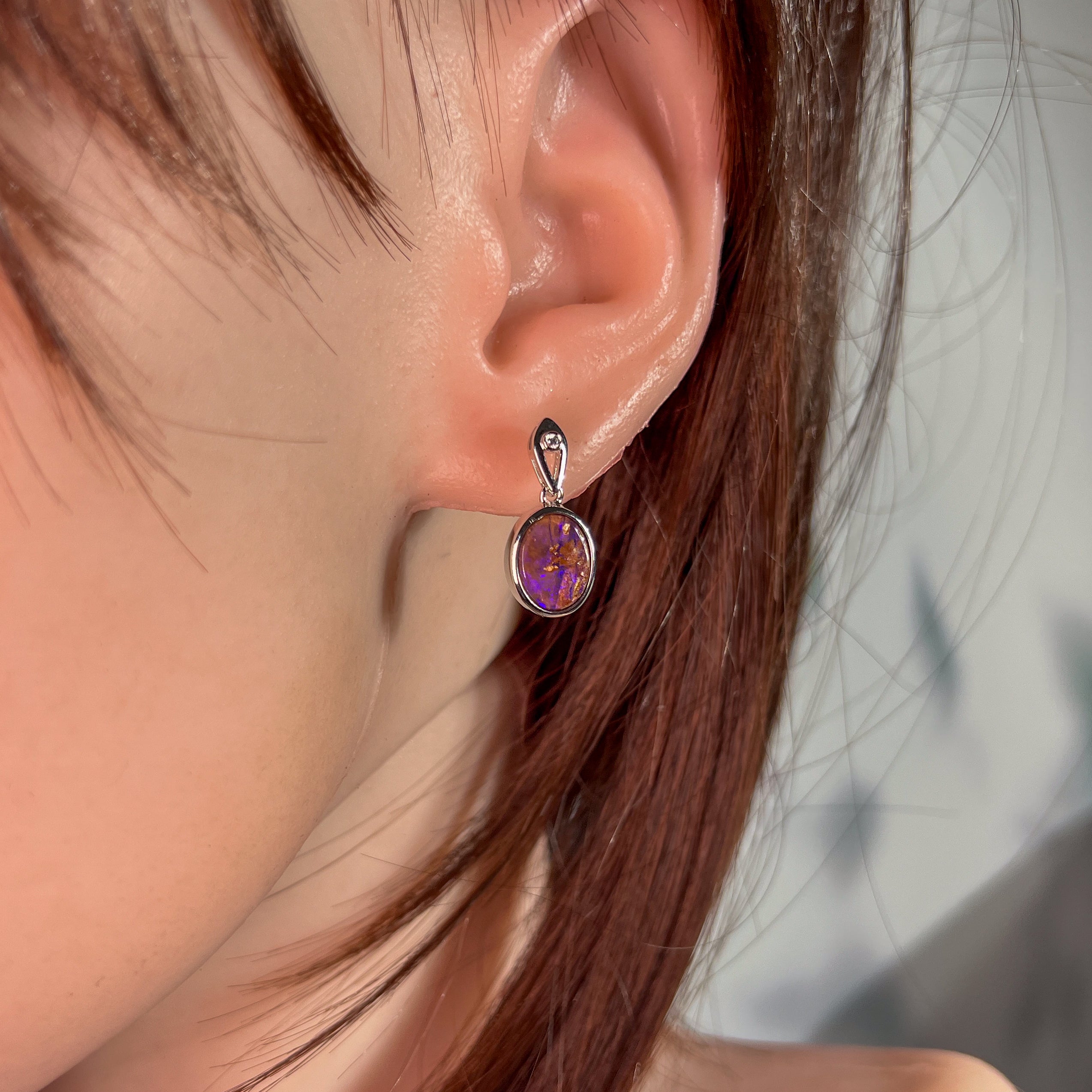 Sterling Silver dangling Oval shape Boulder Opal earrings