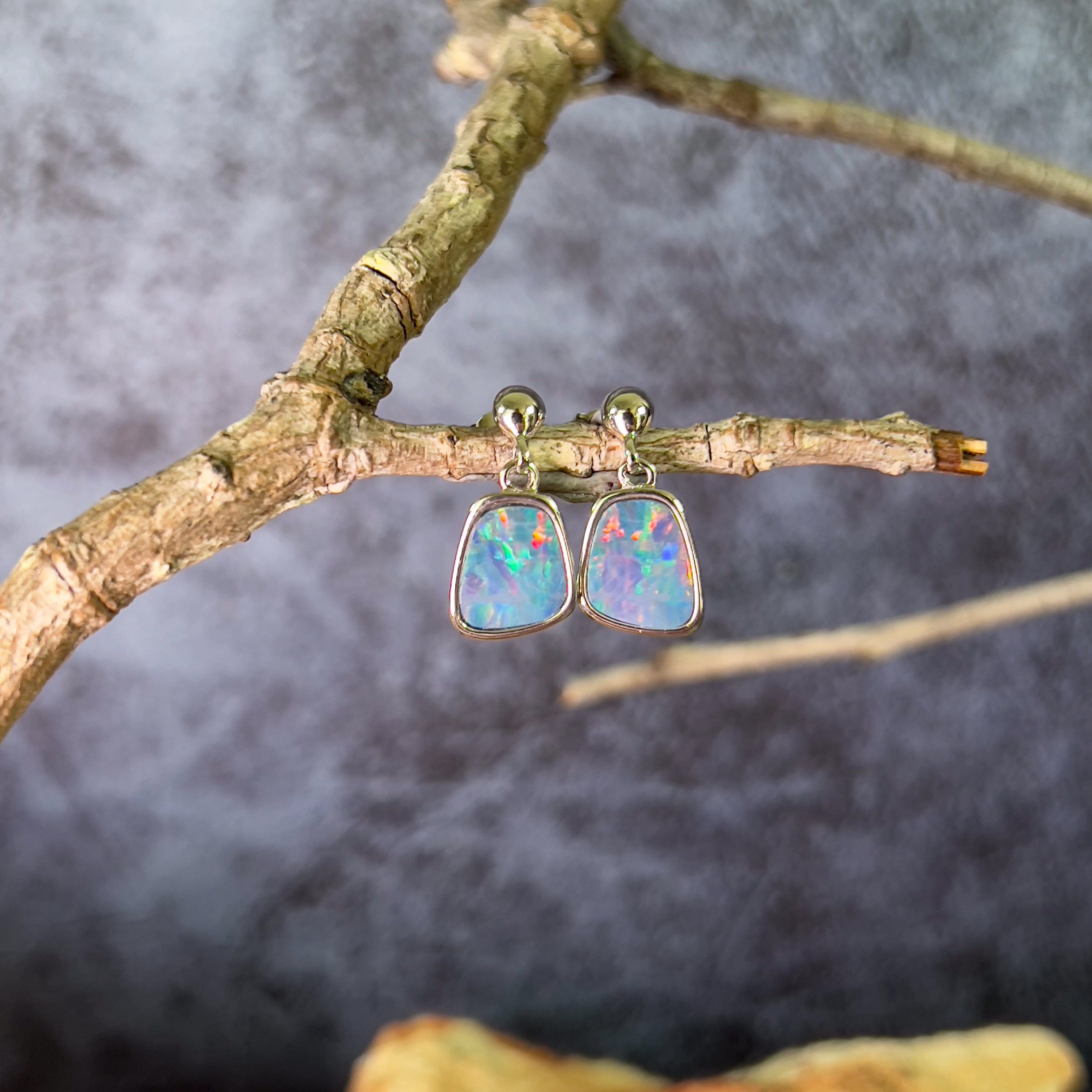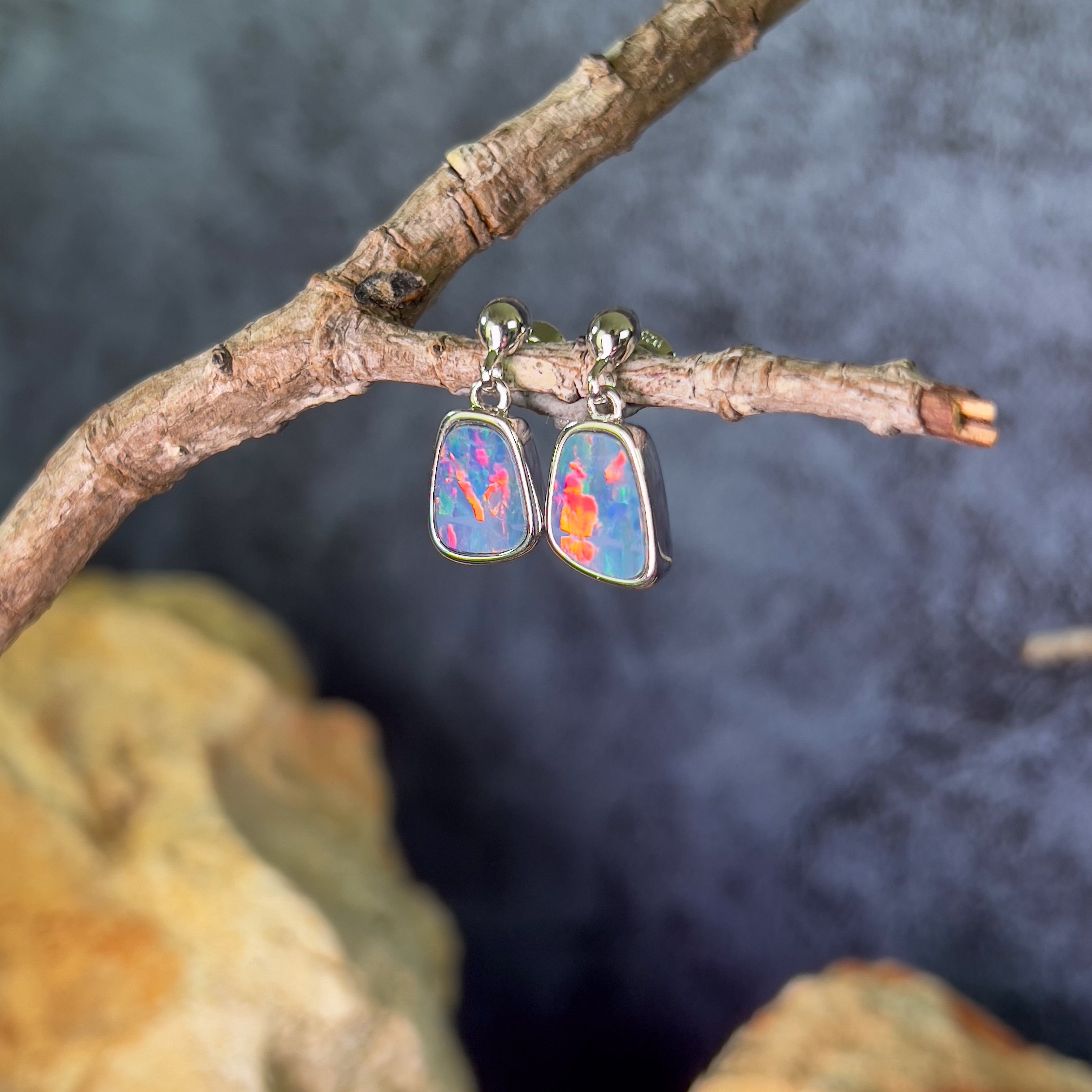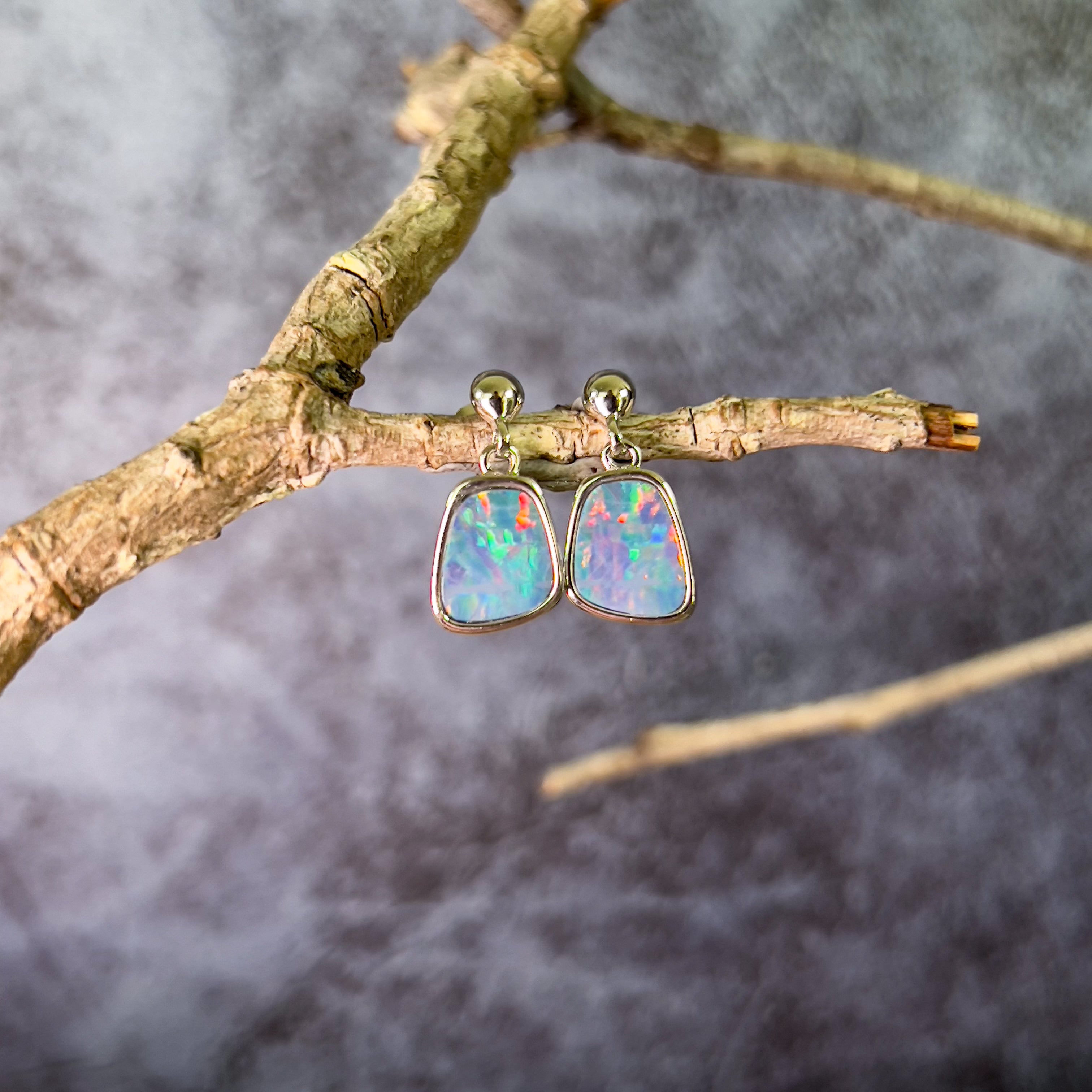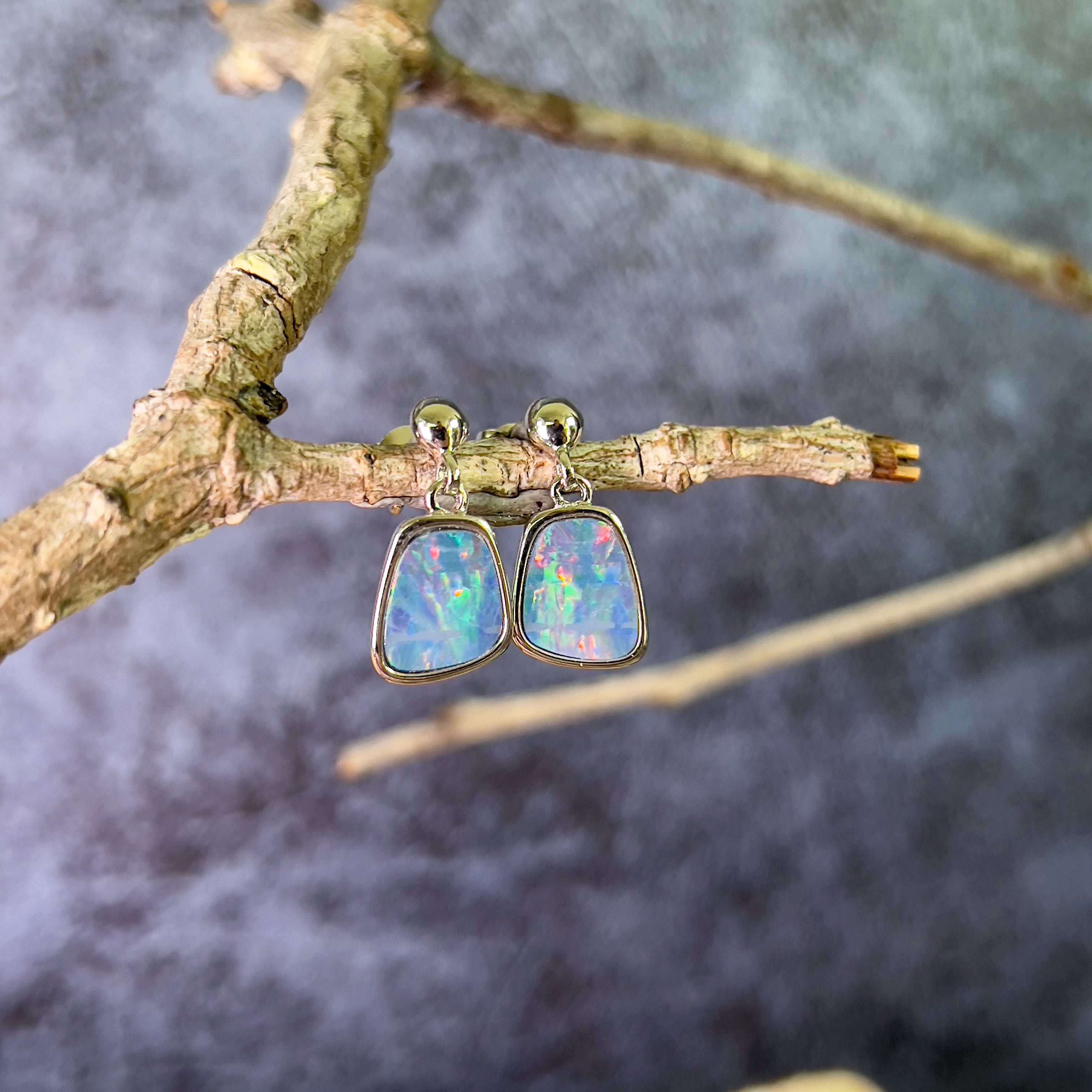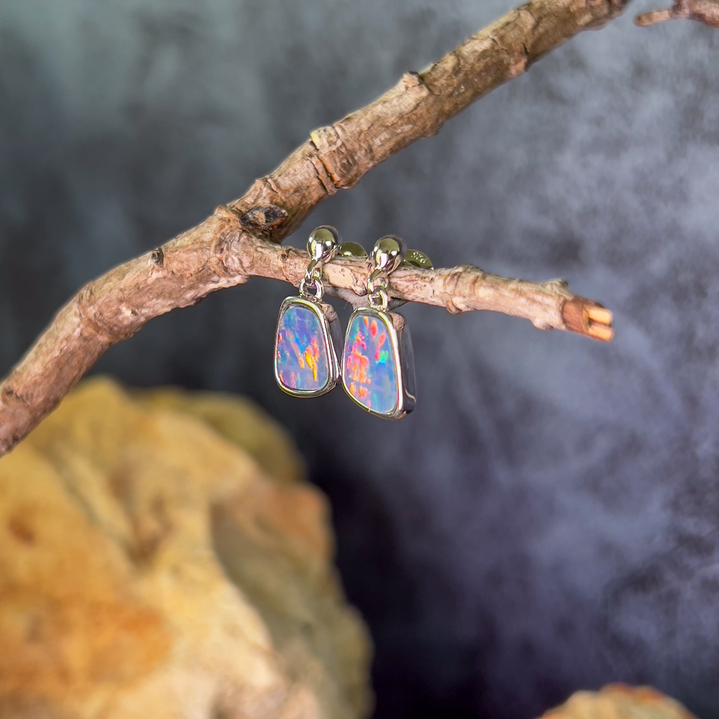 Pair of freeform Rectangular shape Australian Opal doublets