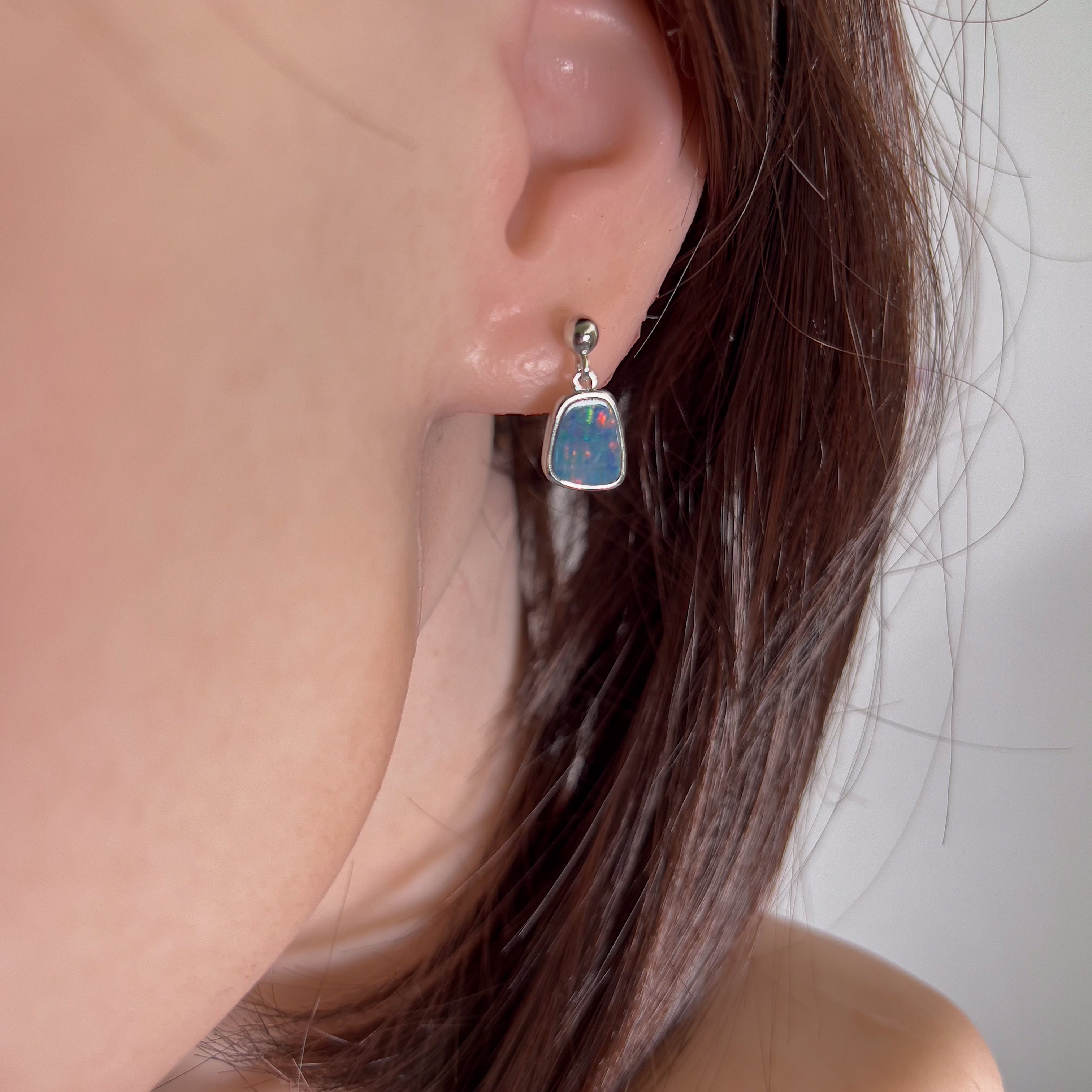 Add some sparkle to your outfit with these Sterling Silver Opal doublet earrings! The dangling rectangles give a unique touch while the short length keeps them comfortable to wear. (Plus, they make a great gift for any occasion!)