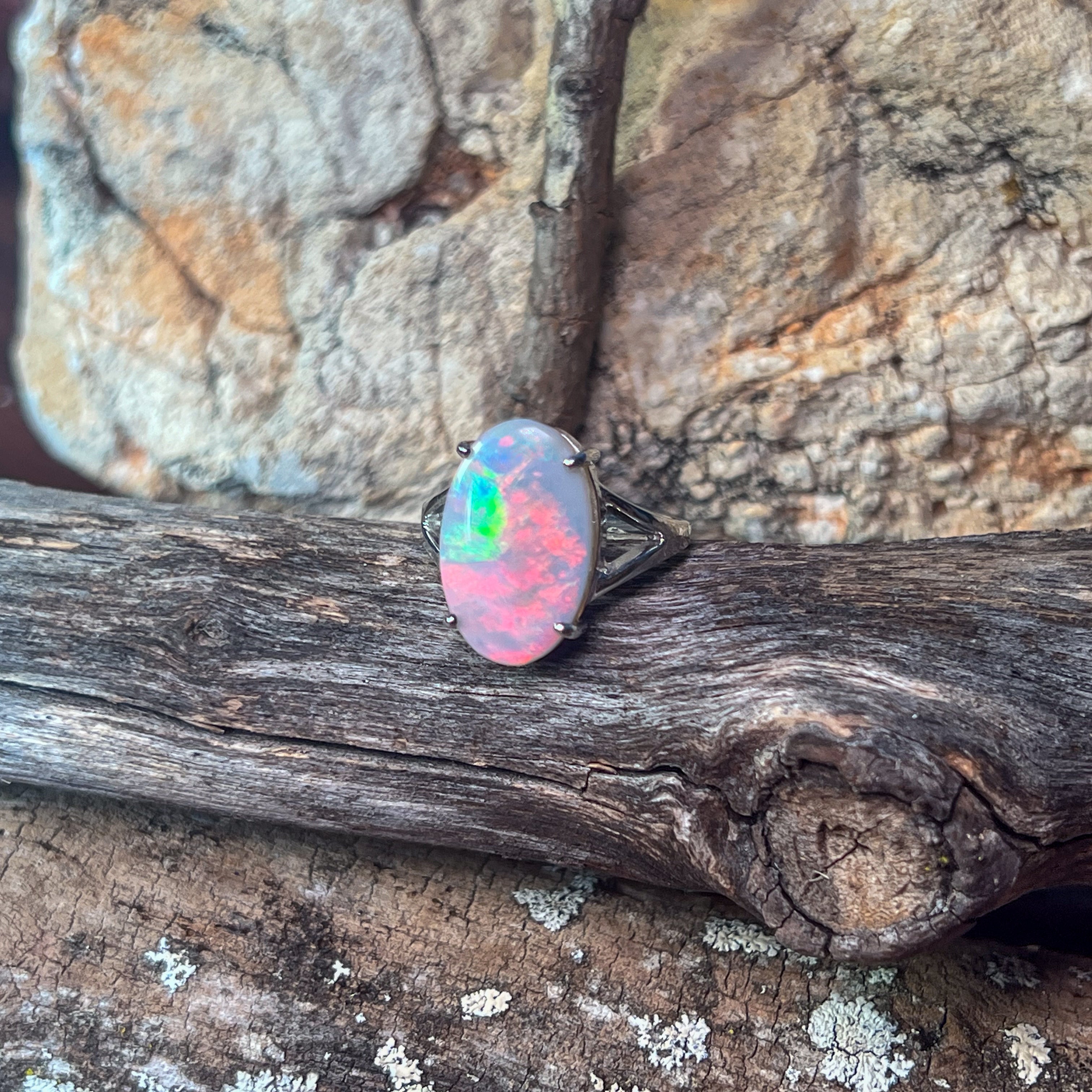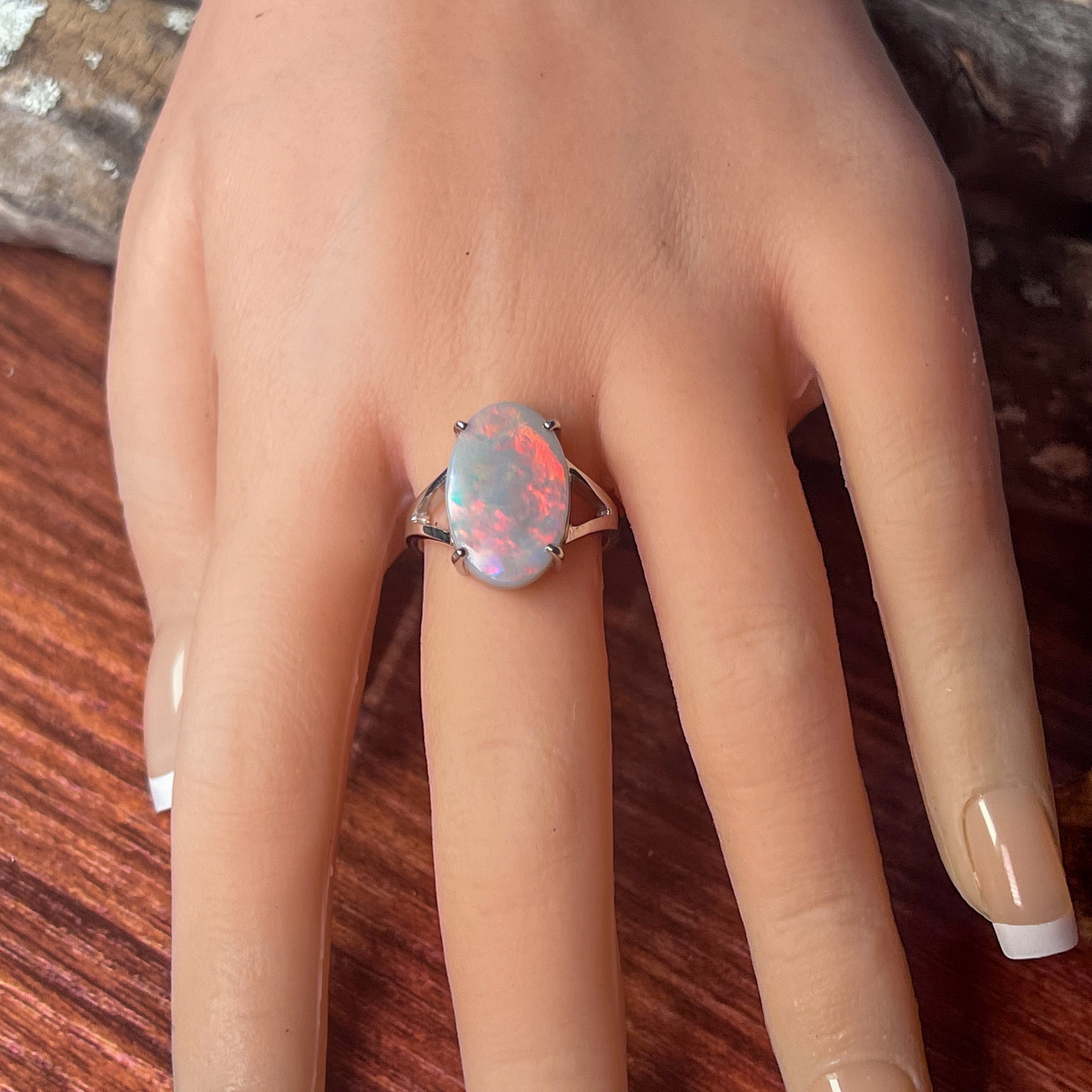 Sterling Silver Dark Opal 6.35ct claw set split shank