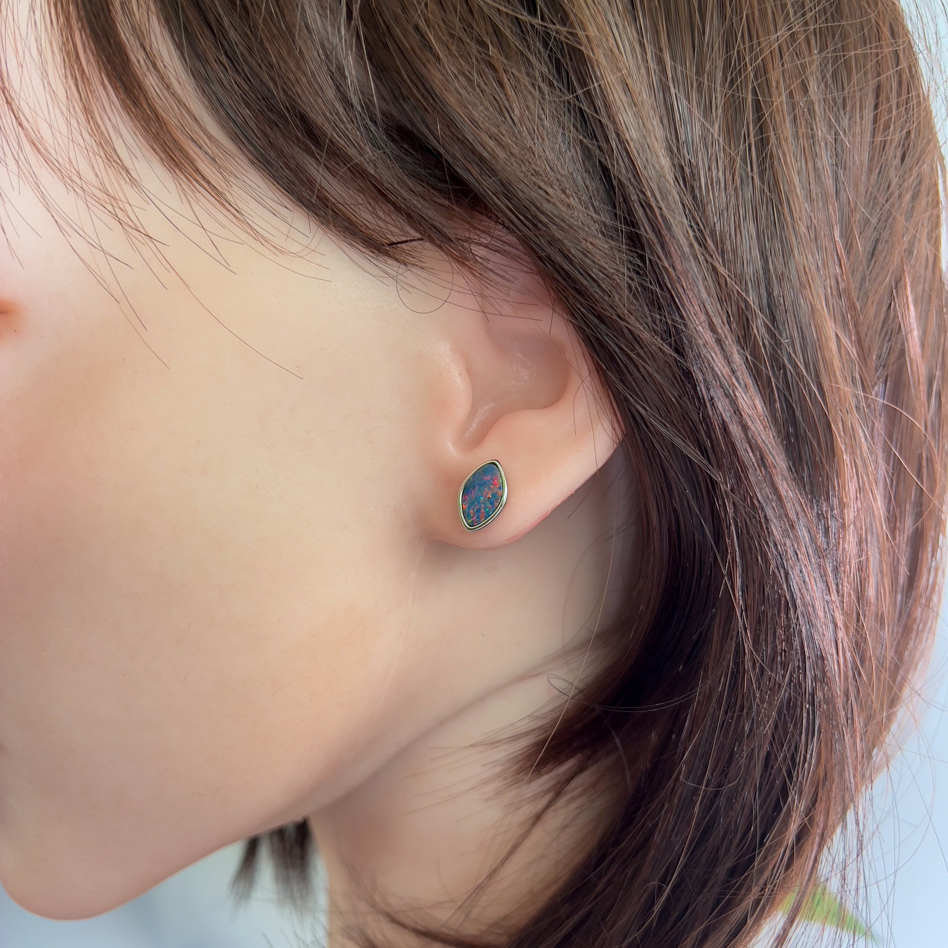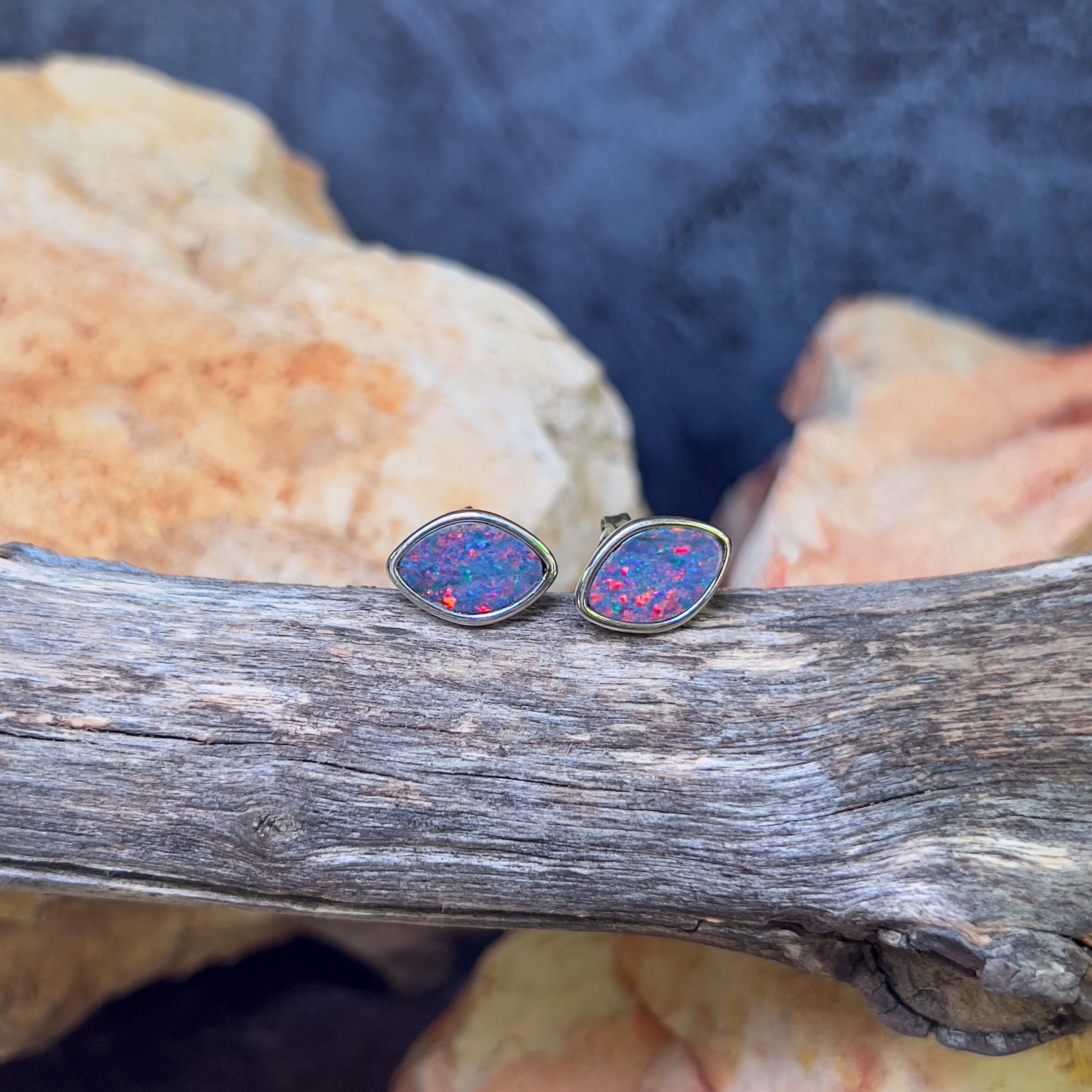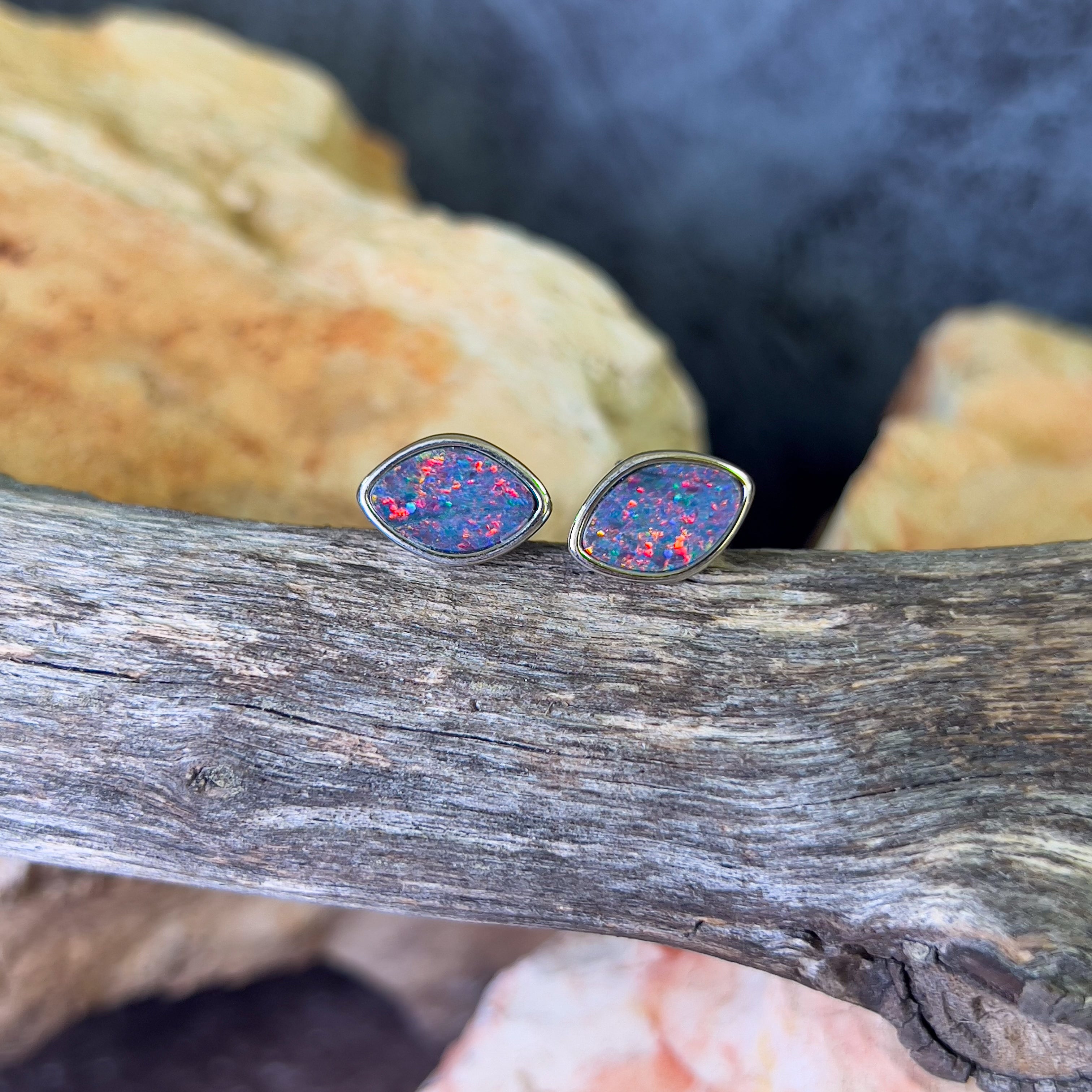 Sterling Silver diamond shape Opal doublet Red Blue studs