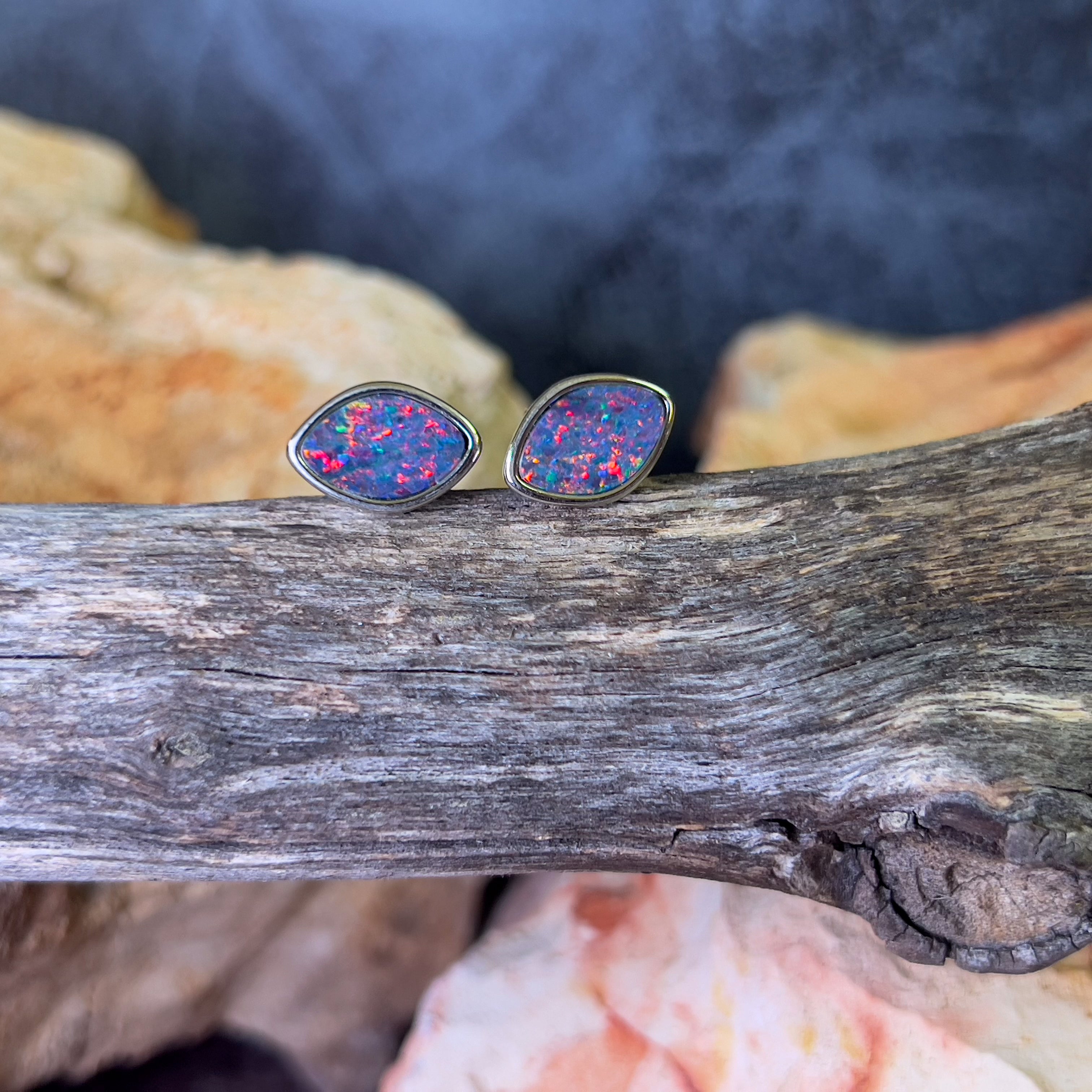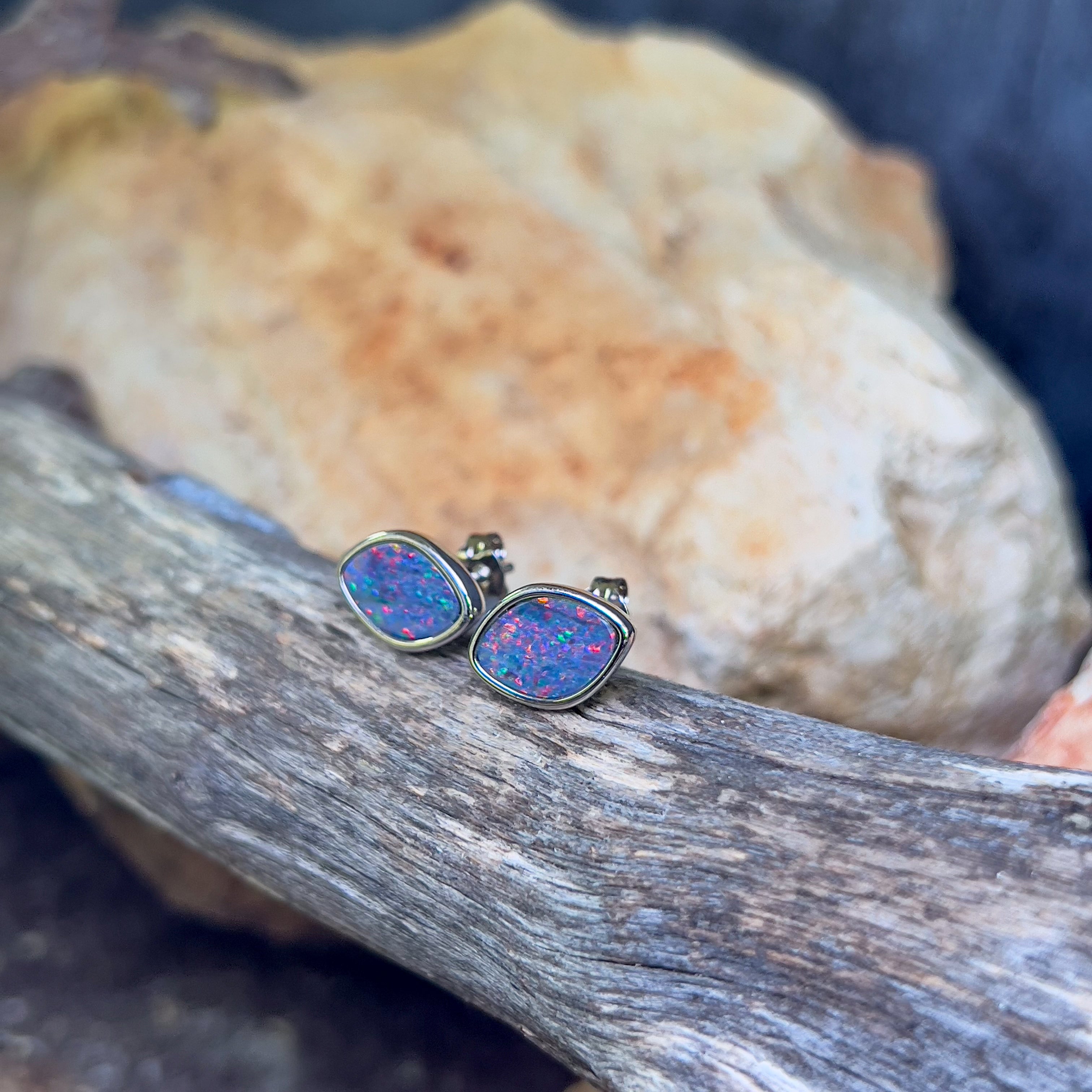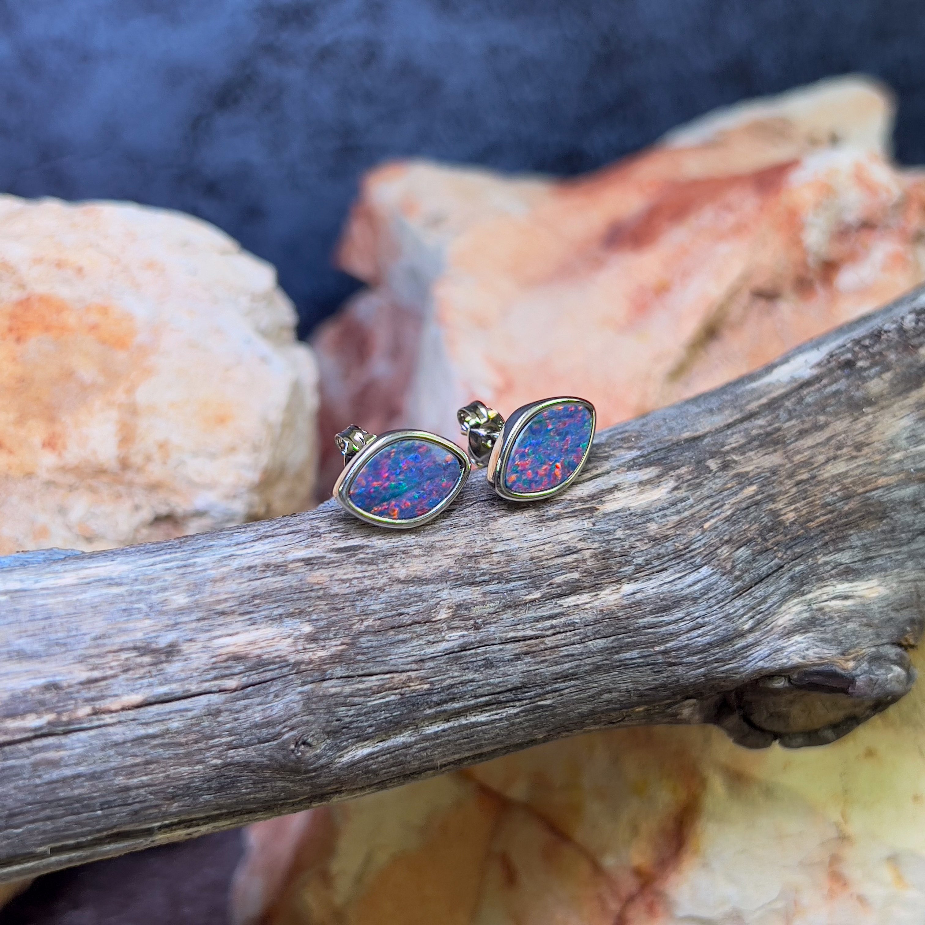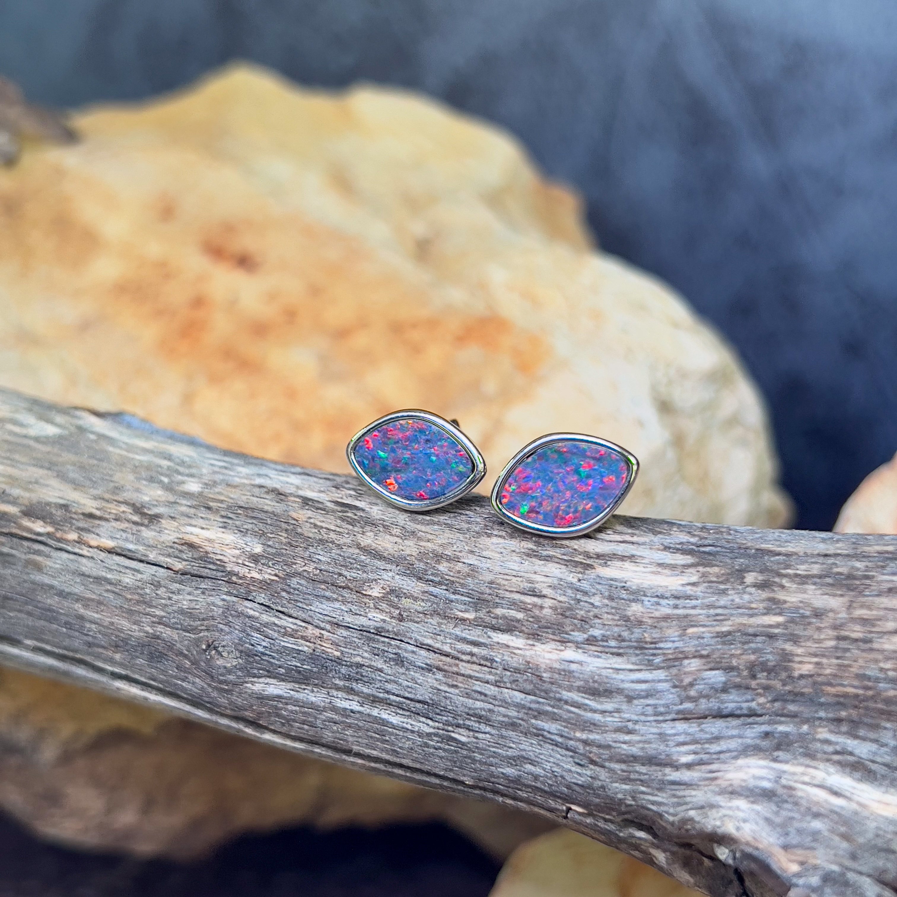 Pair of Freeform Diamond shape Australian Opal doublets