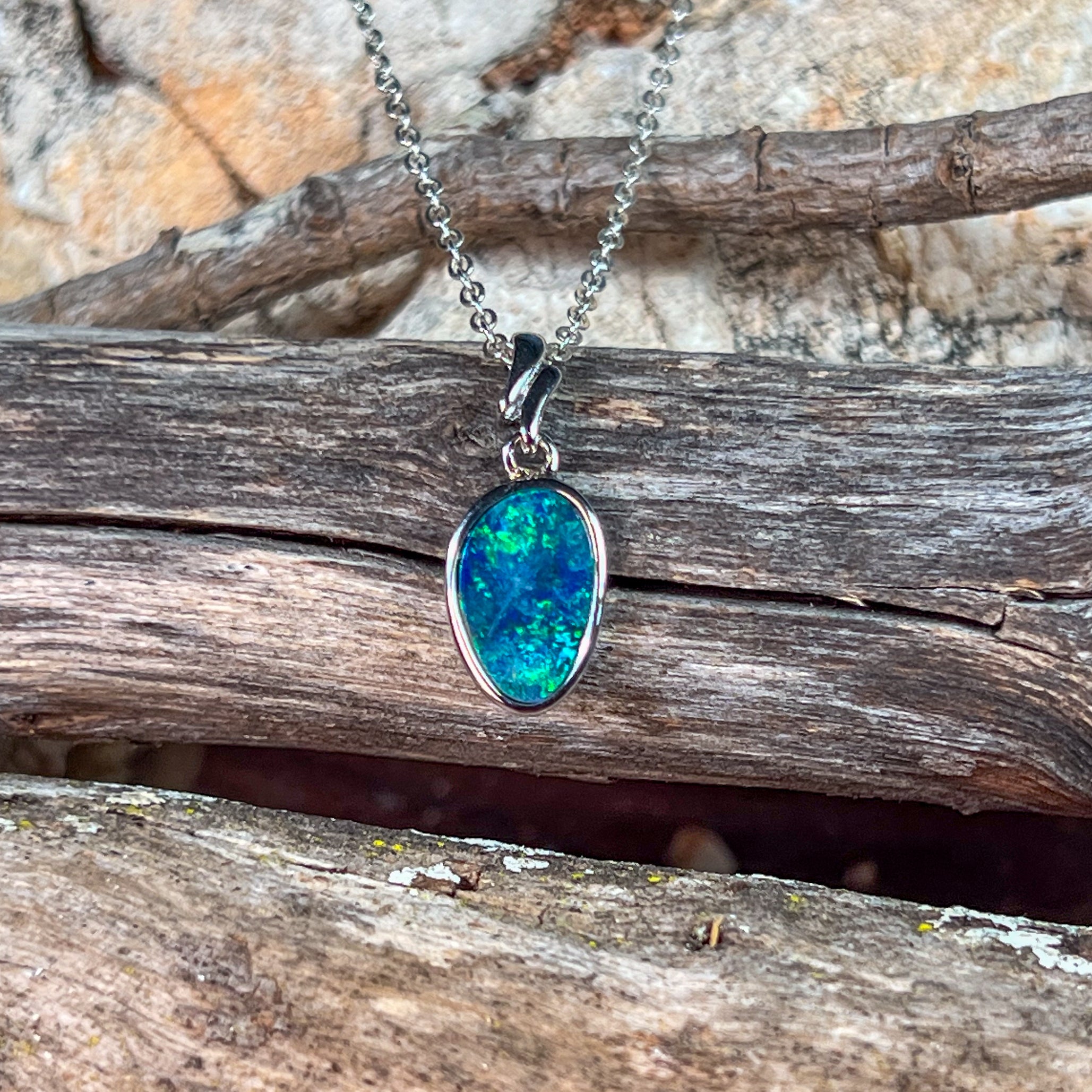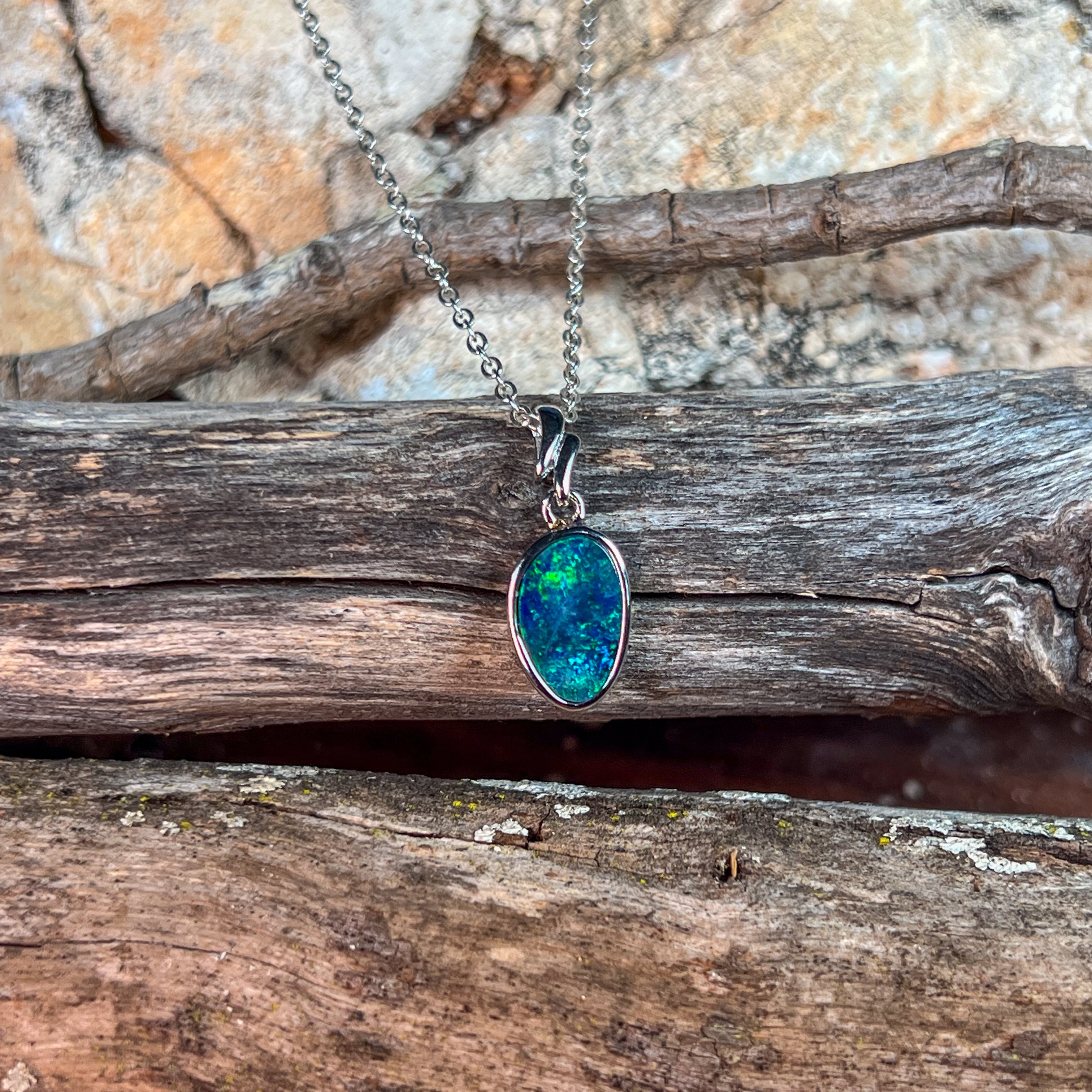 Sterling Silver freeform Green Blue Opal doublet pendant