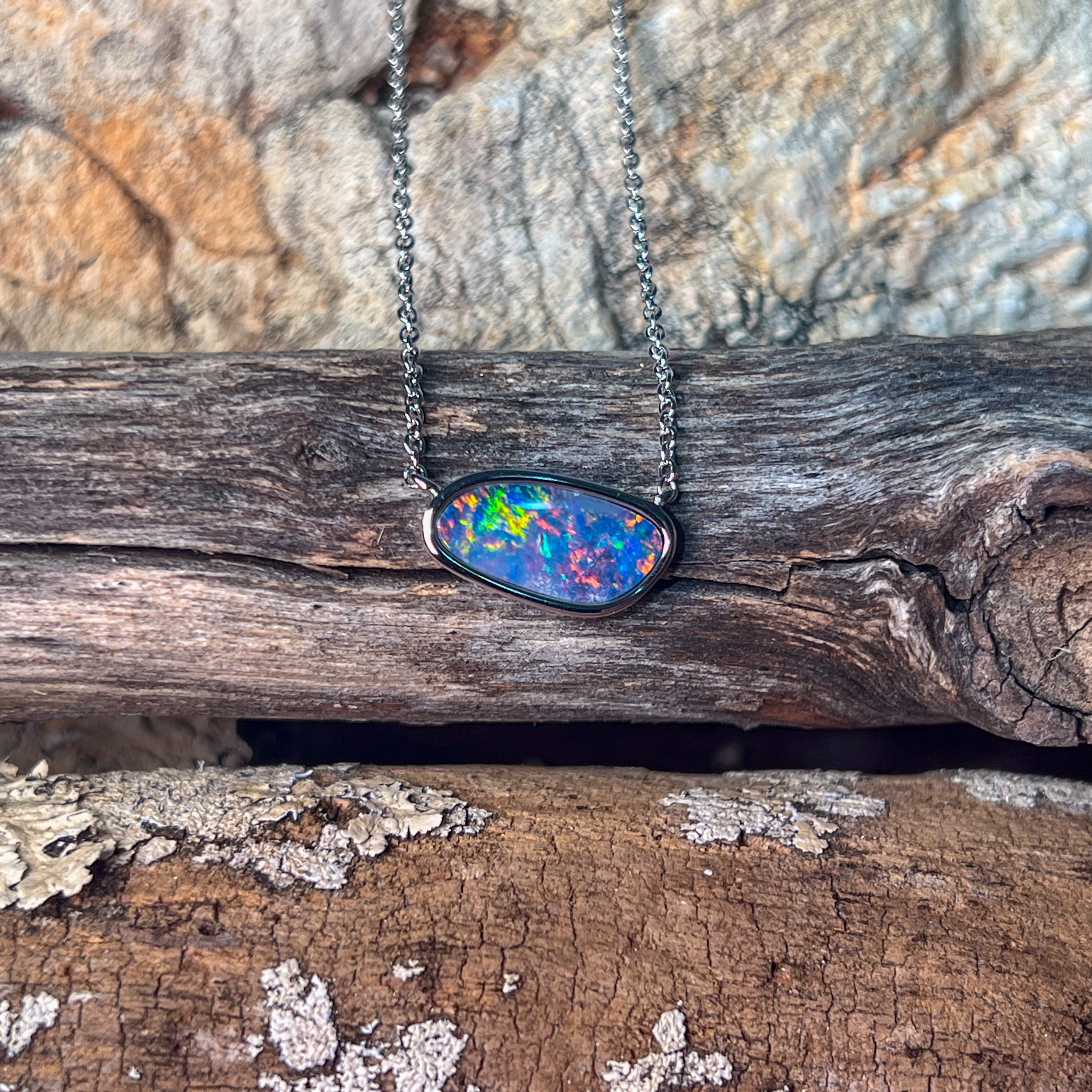 Sterling Silver freeform horizontal set Opal doublet necklace
