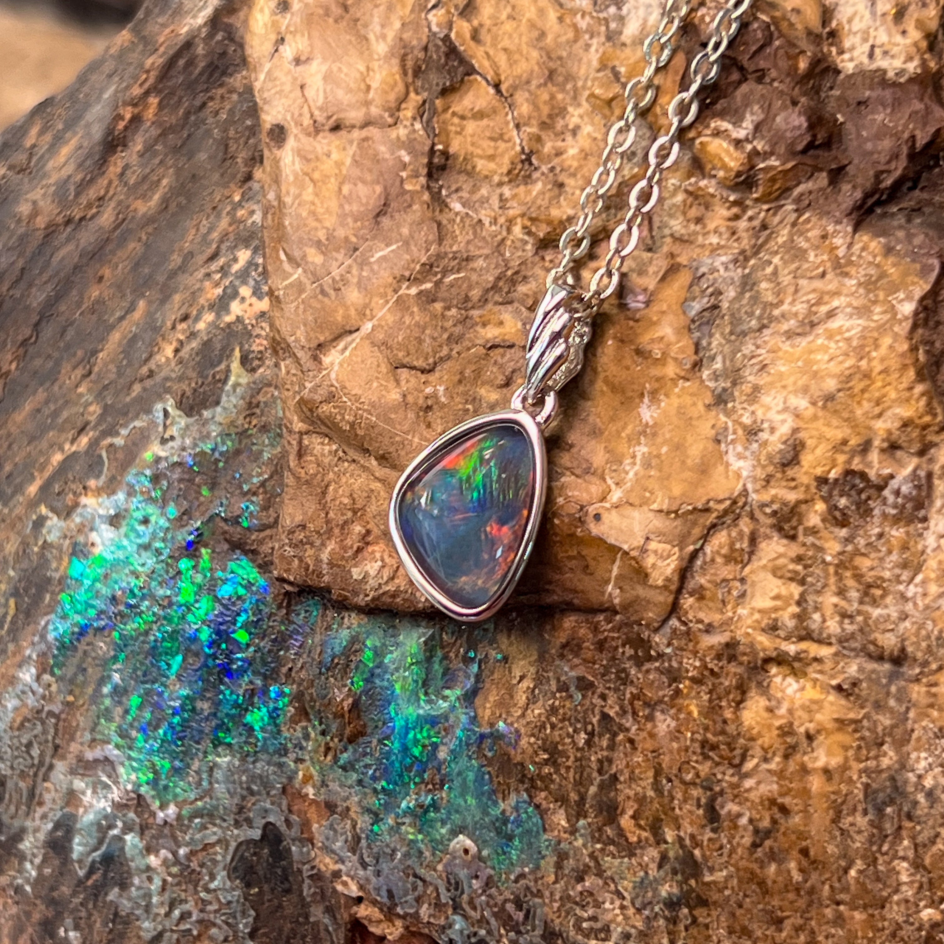 Sterling Silver freeform Opal triplet triangle shape pendant