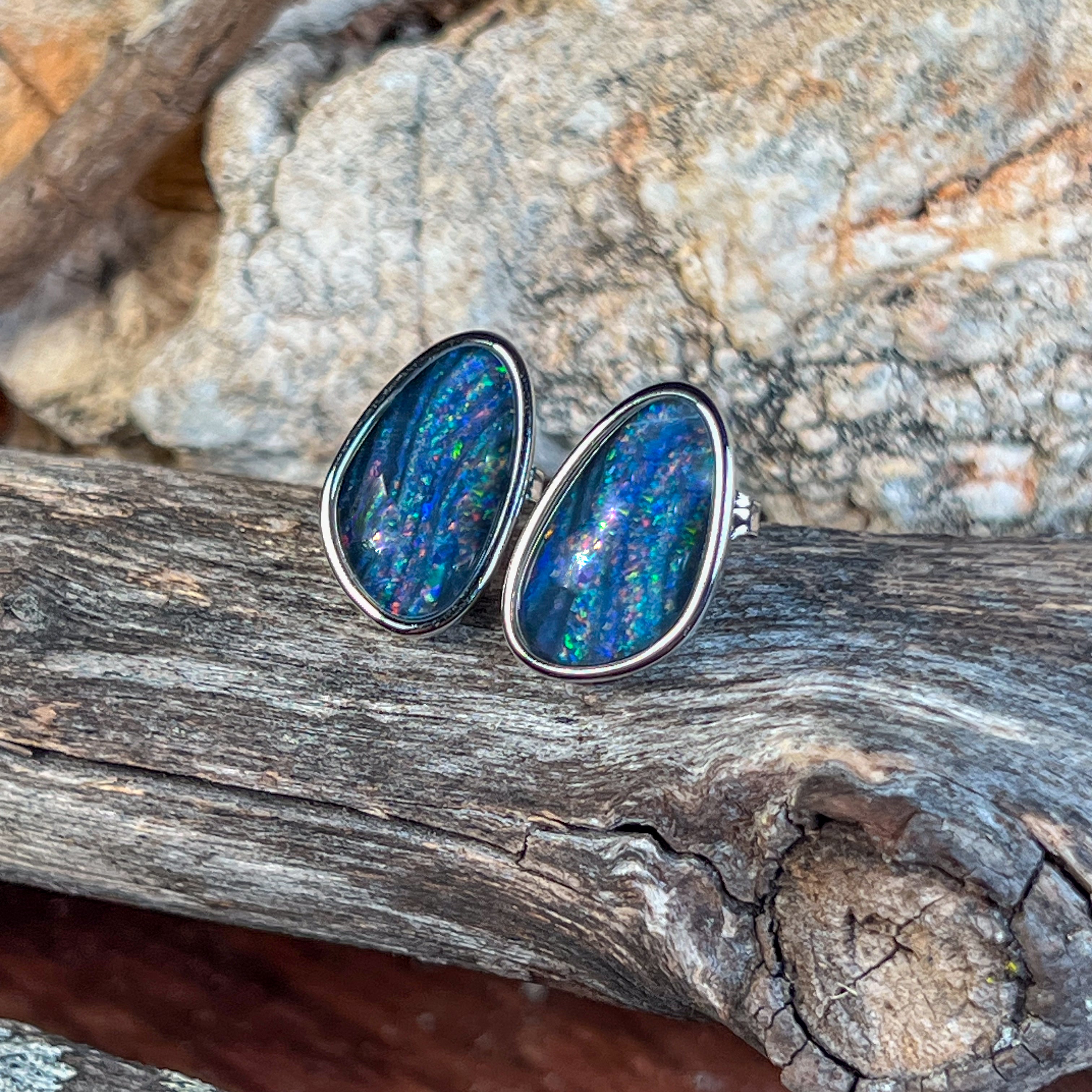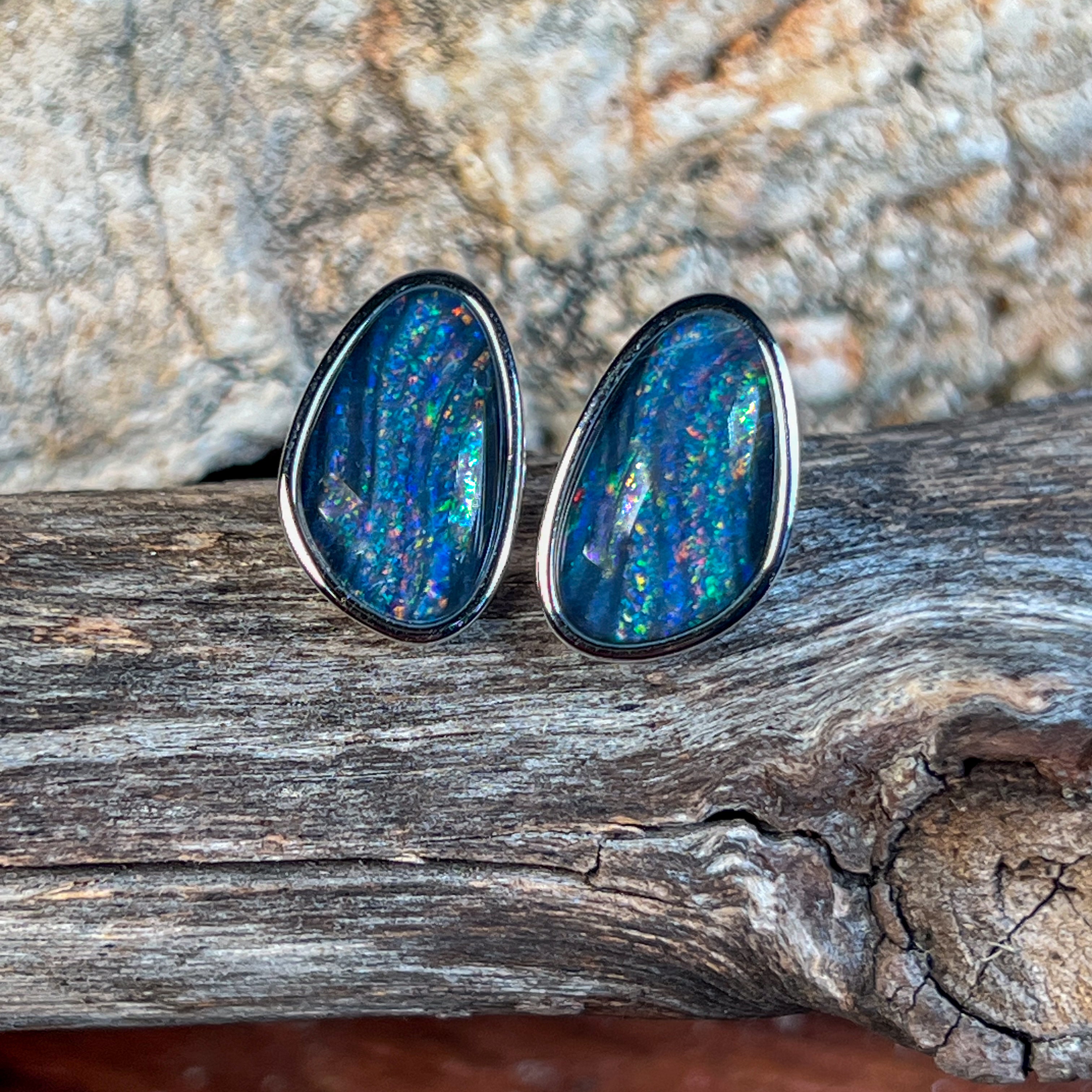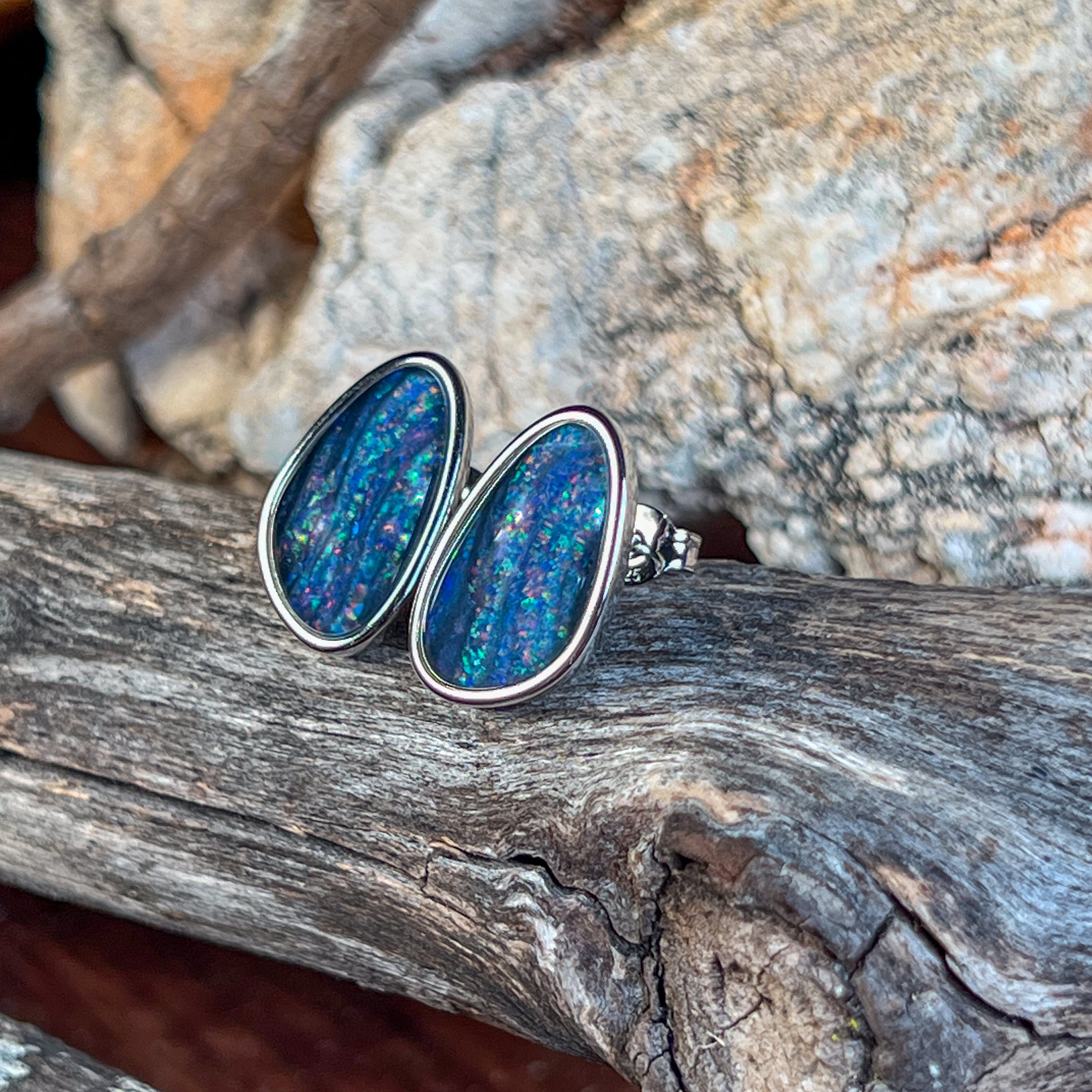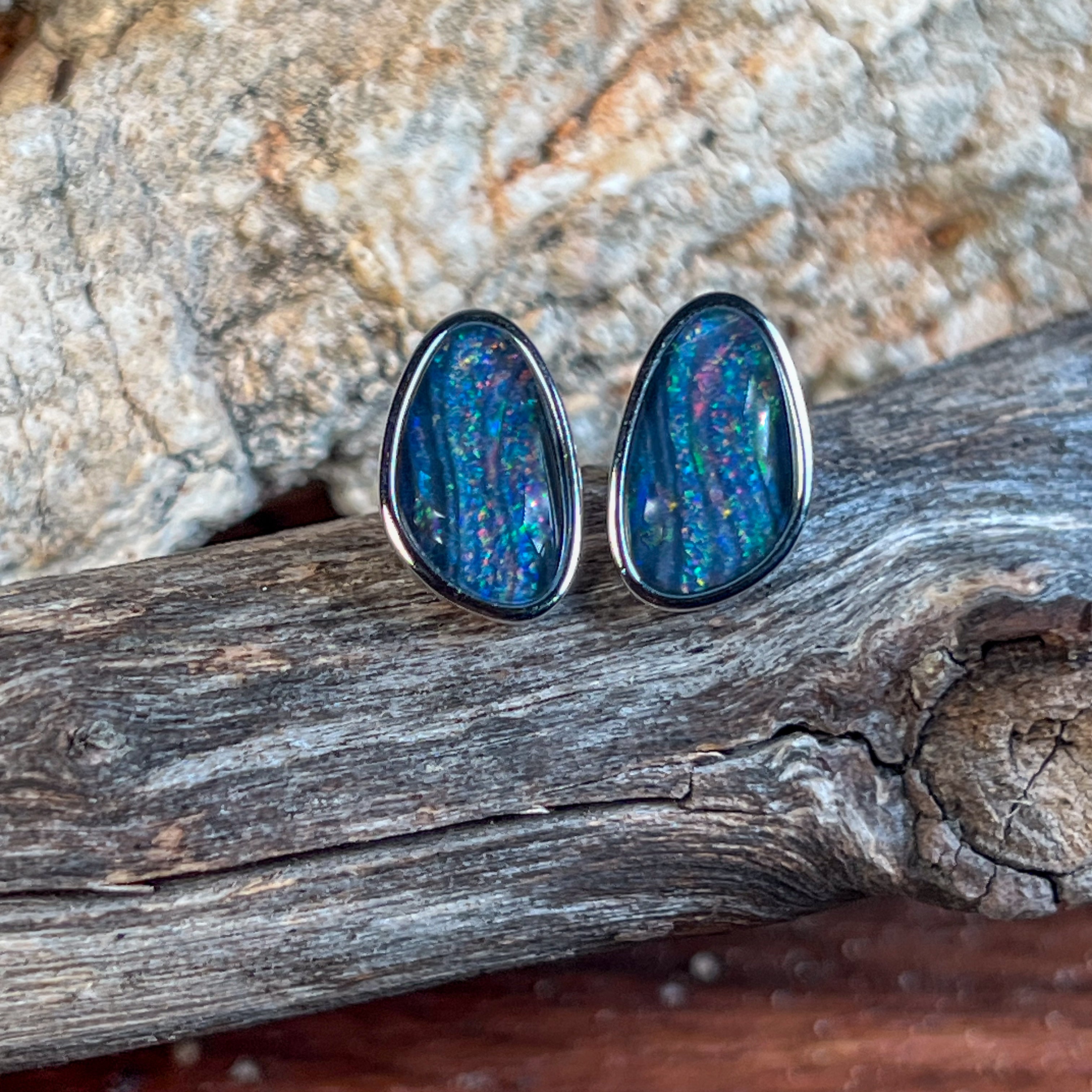 Sterling Silver freeform shape Red Blue Opal triplet studs