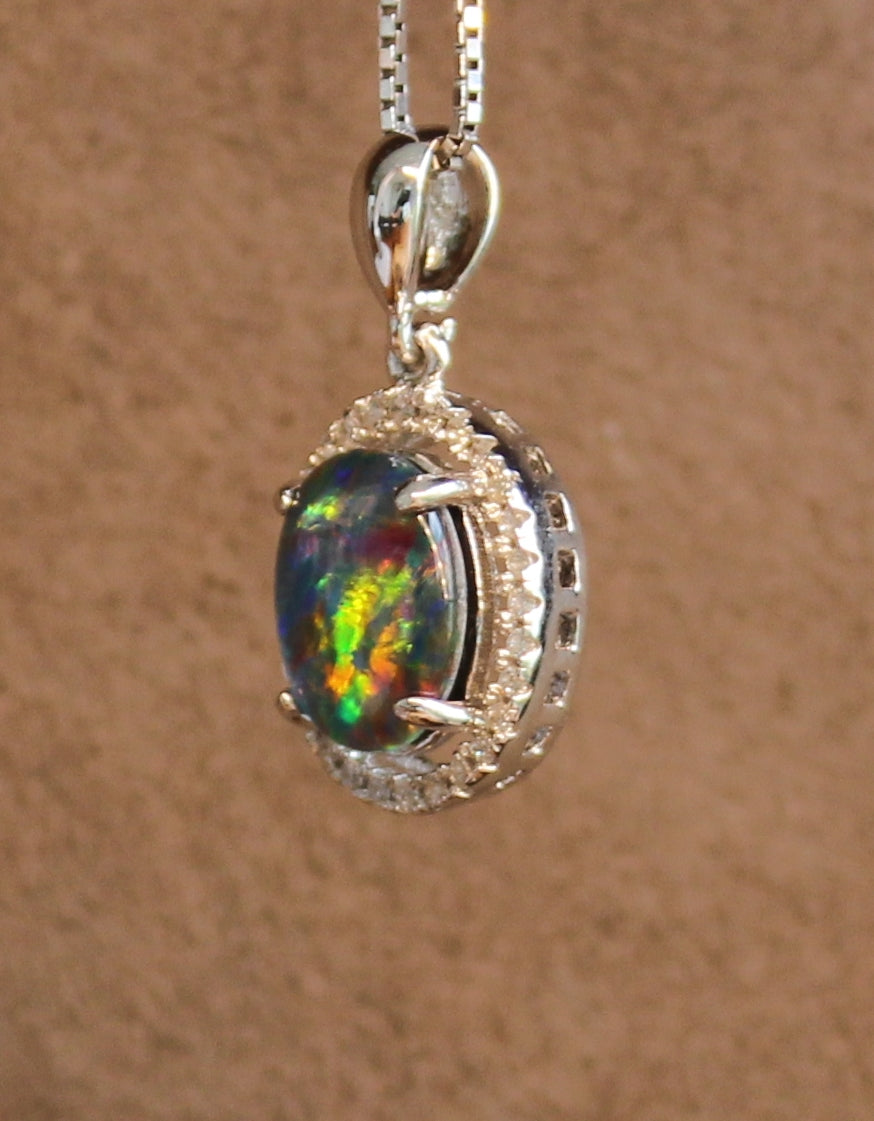 Sterling Silver halo Opal triplet 10x8mm pendant