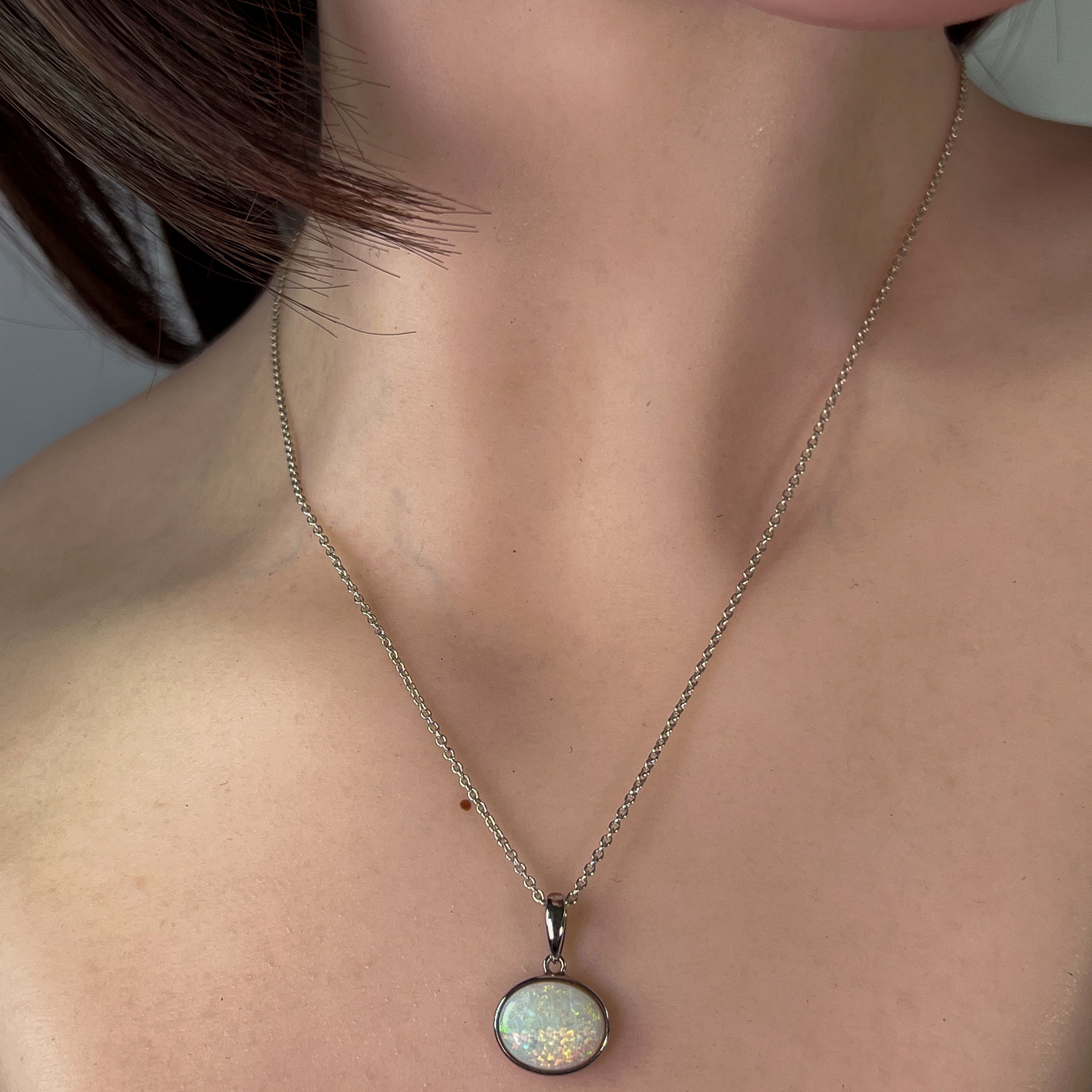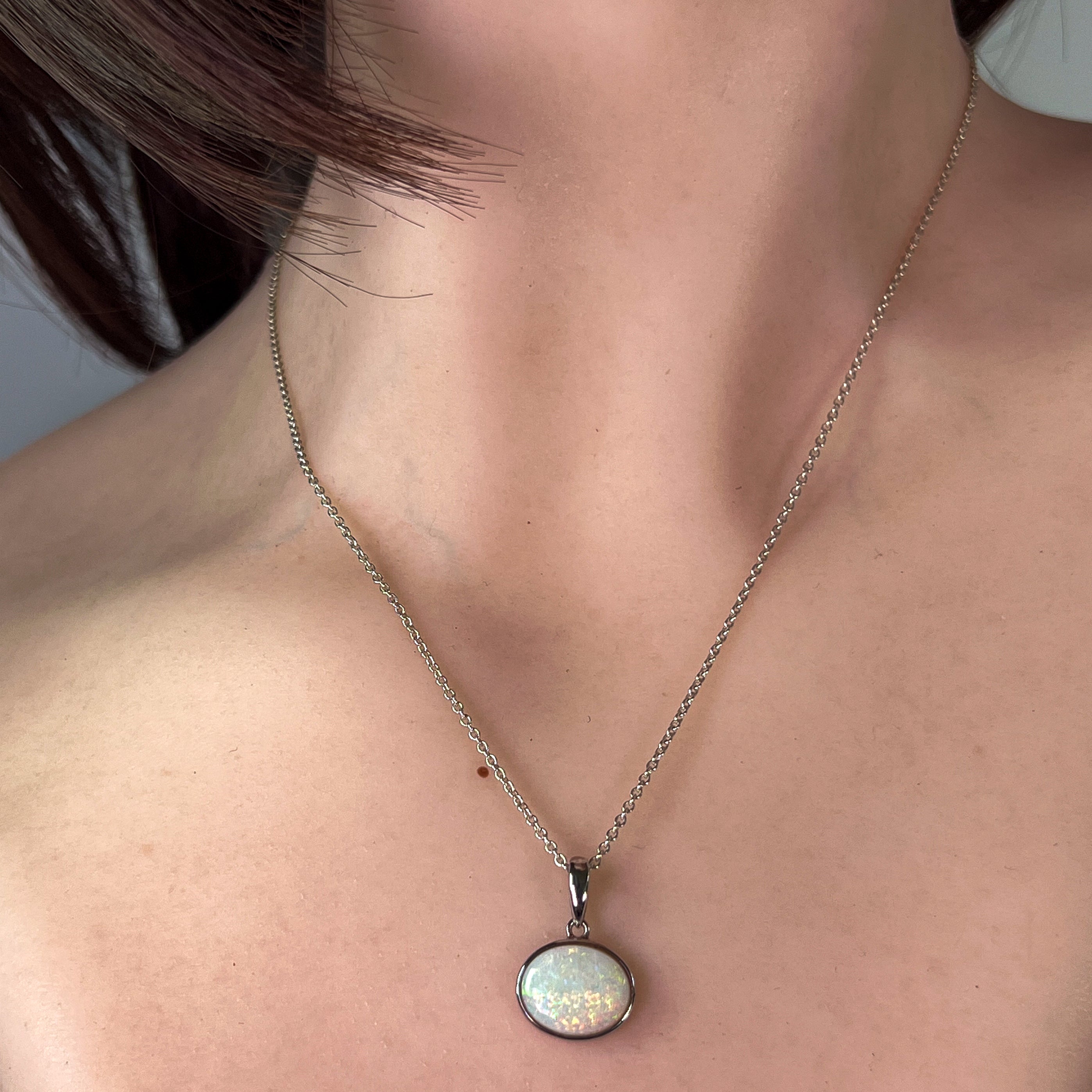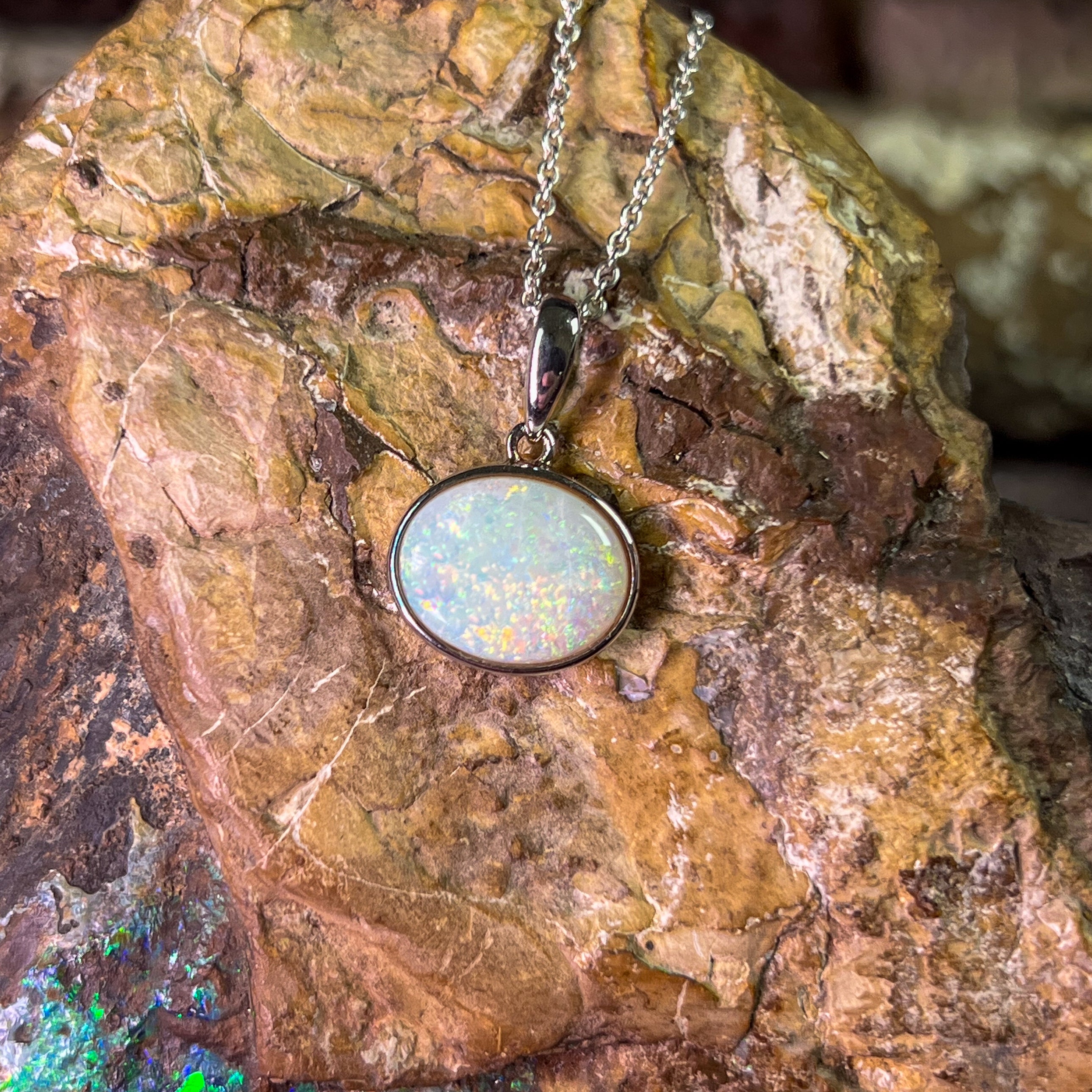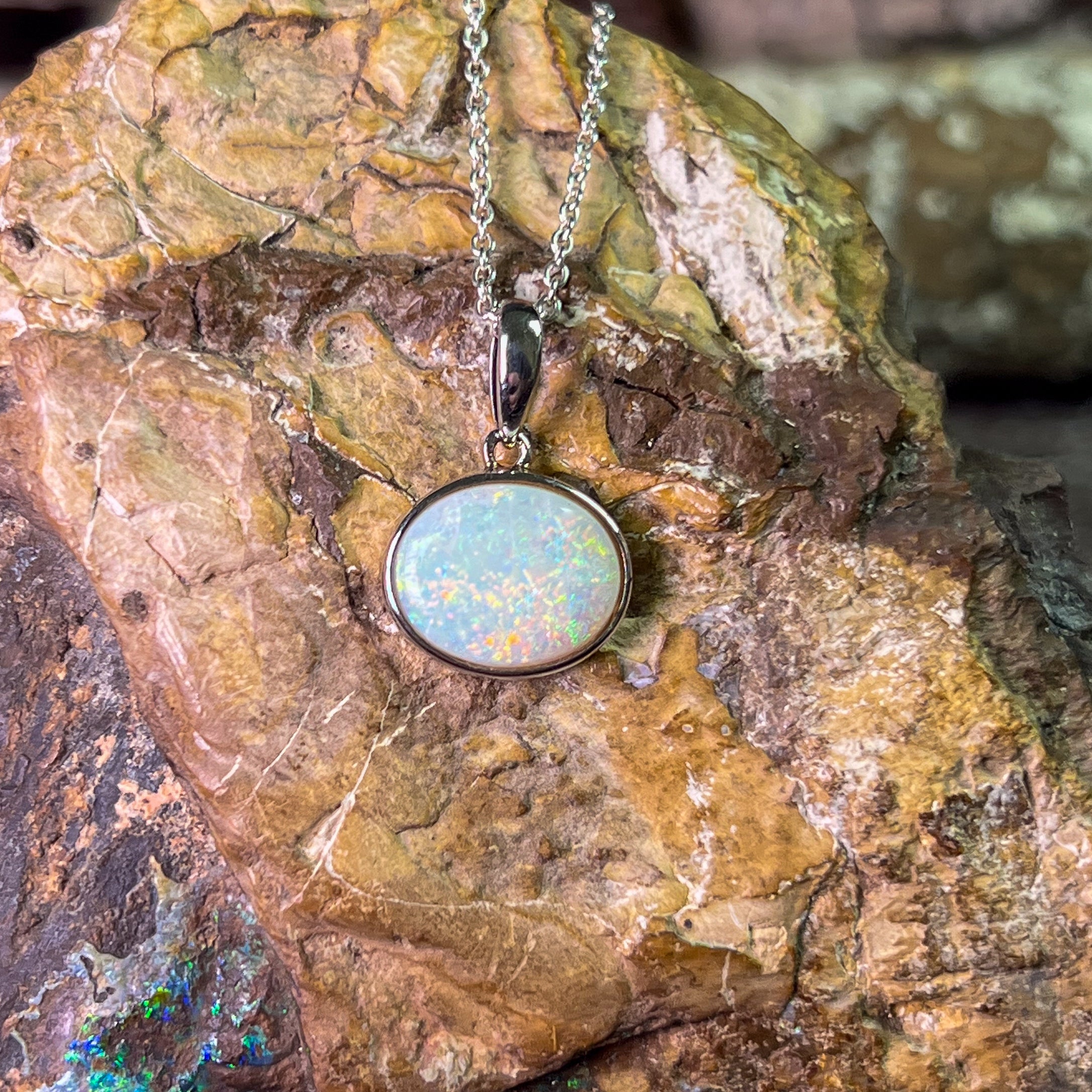 One Sterling Silver Opal bezel pendant