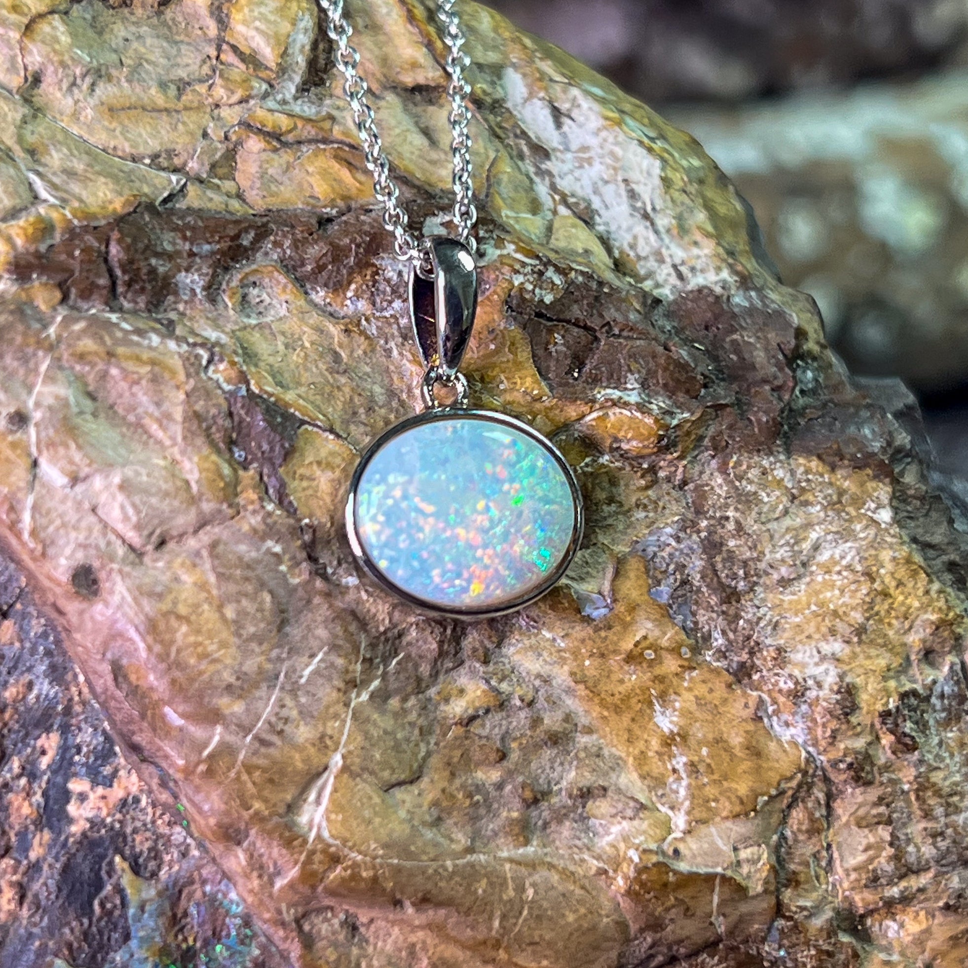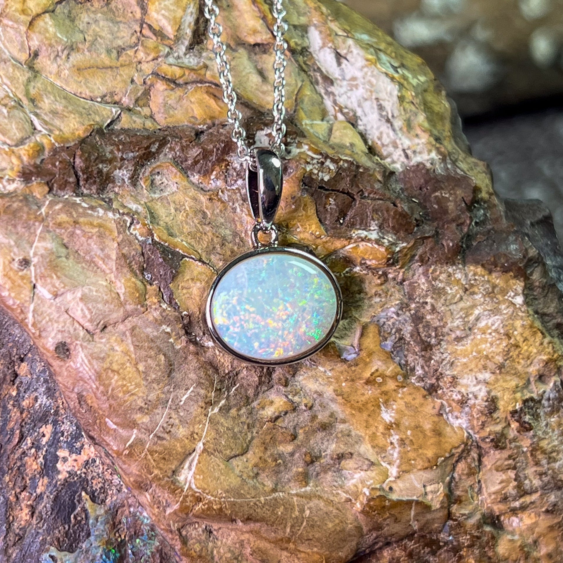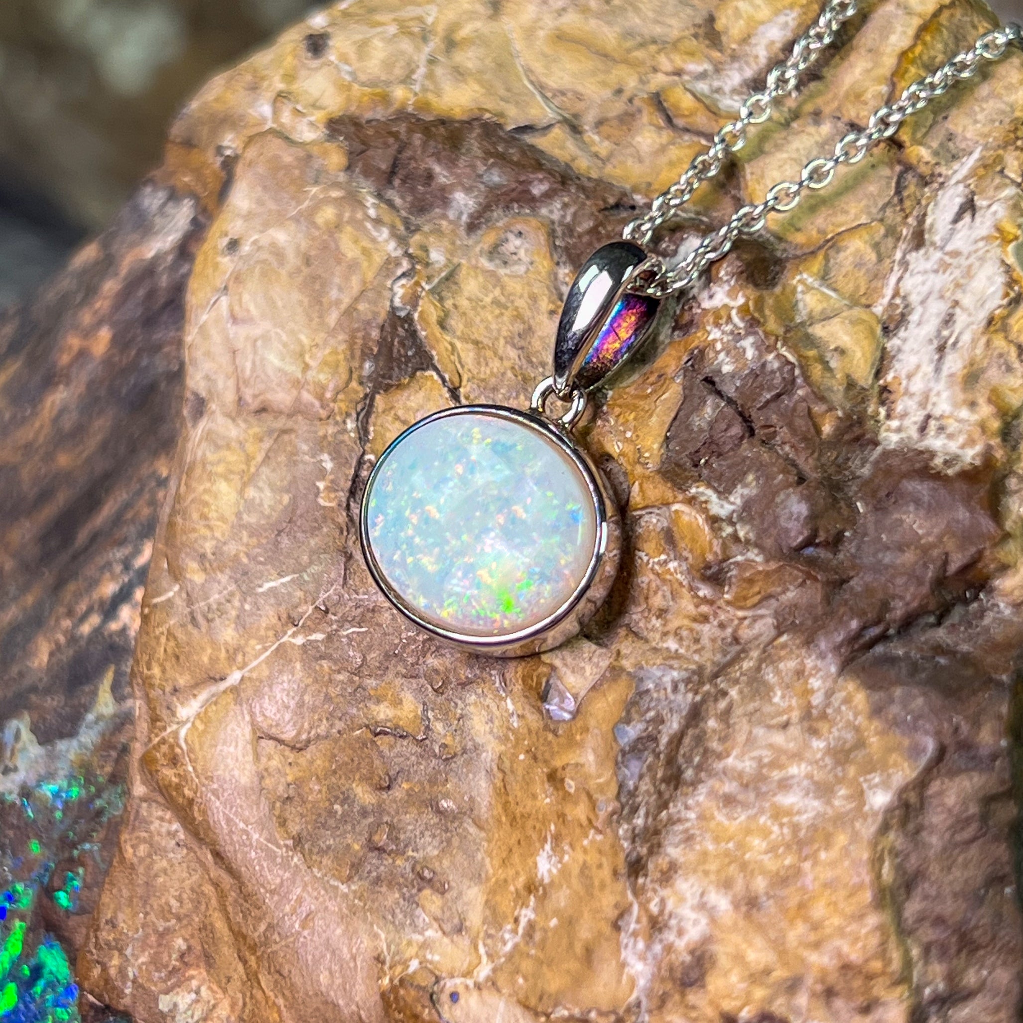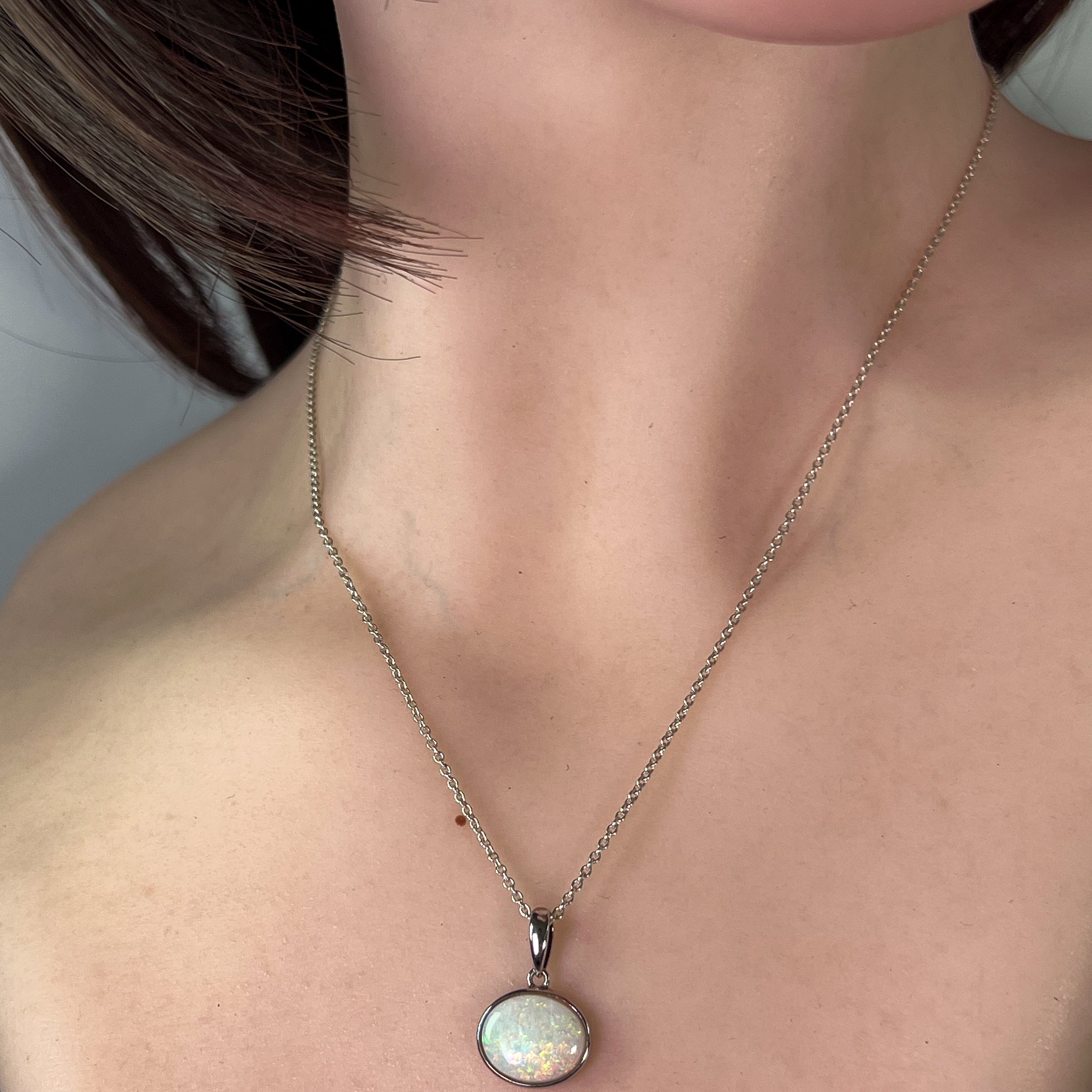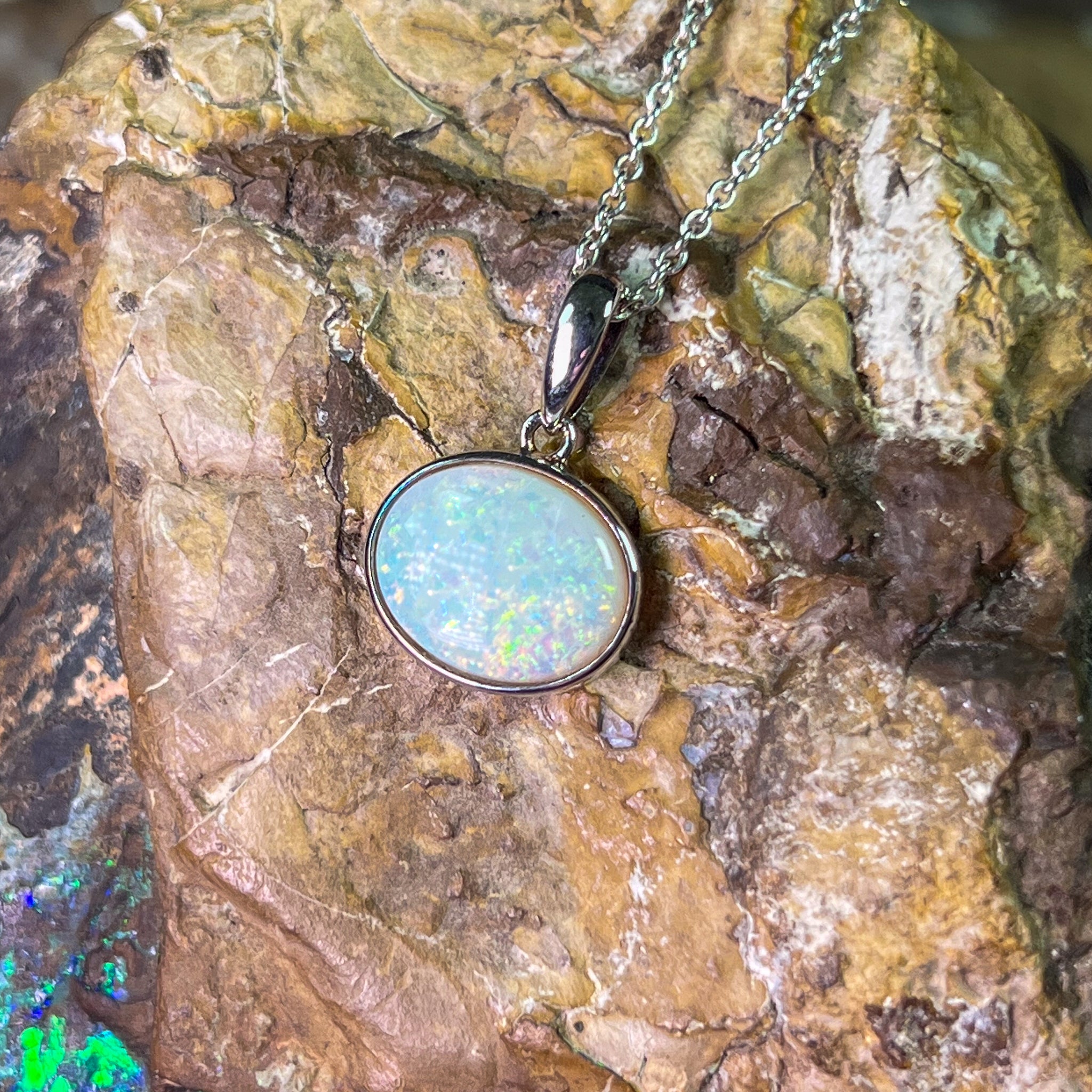 One Sterling Silver Opal bezel pendant