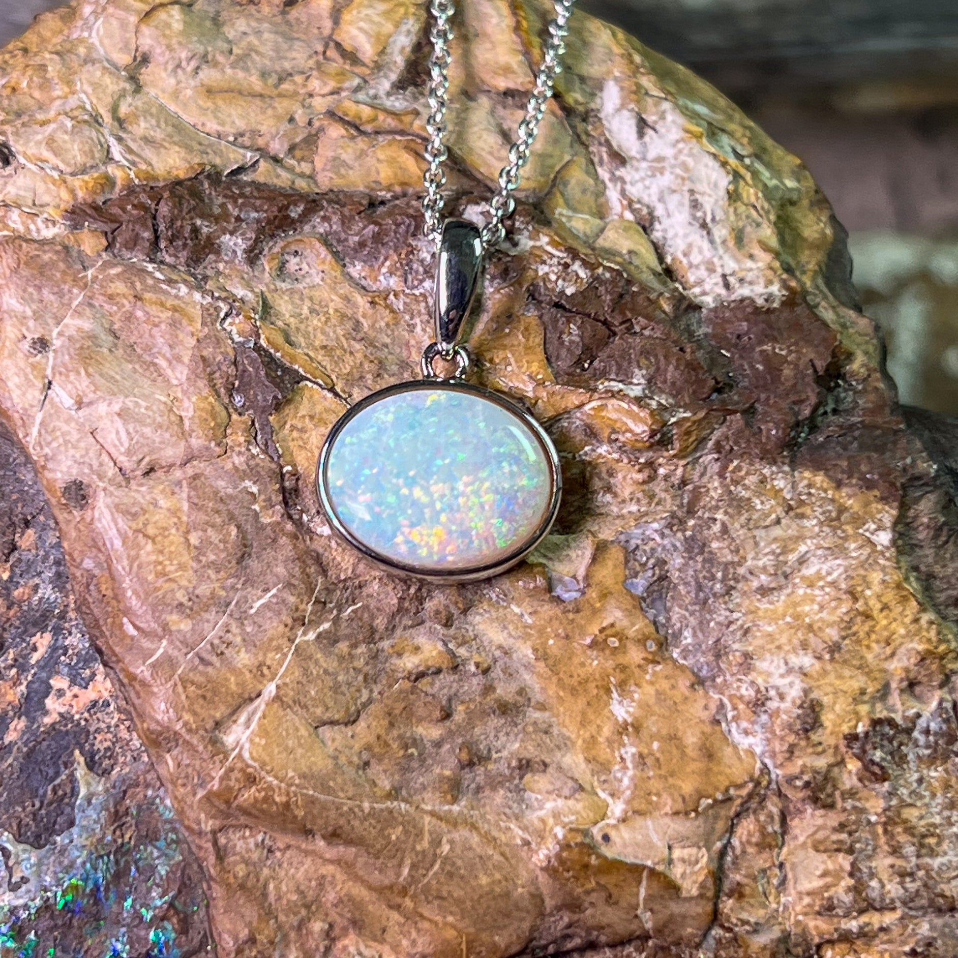 Add a touch of elegance to any outfit with our Sterling Silver horizontal set Light Opal 12x10mm bezel pendant. The horizontal setting showcases the beautiful light opal, radiating its natural beauty. A must-have for any jewelry collection!