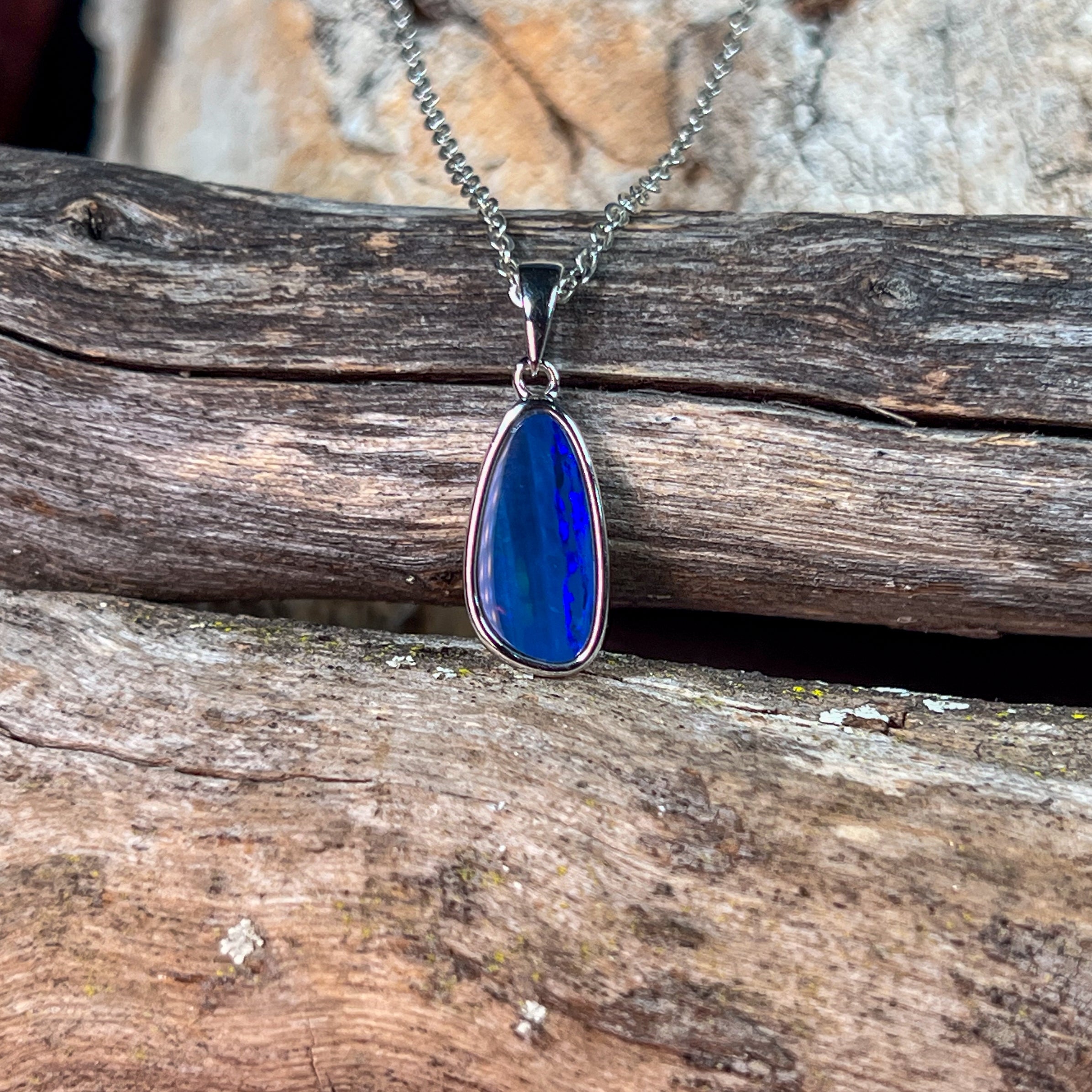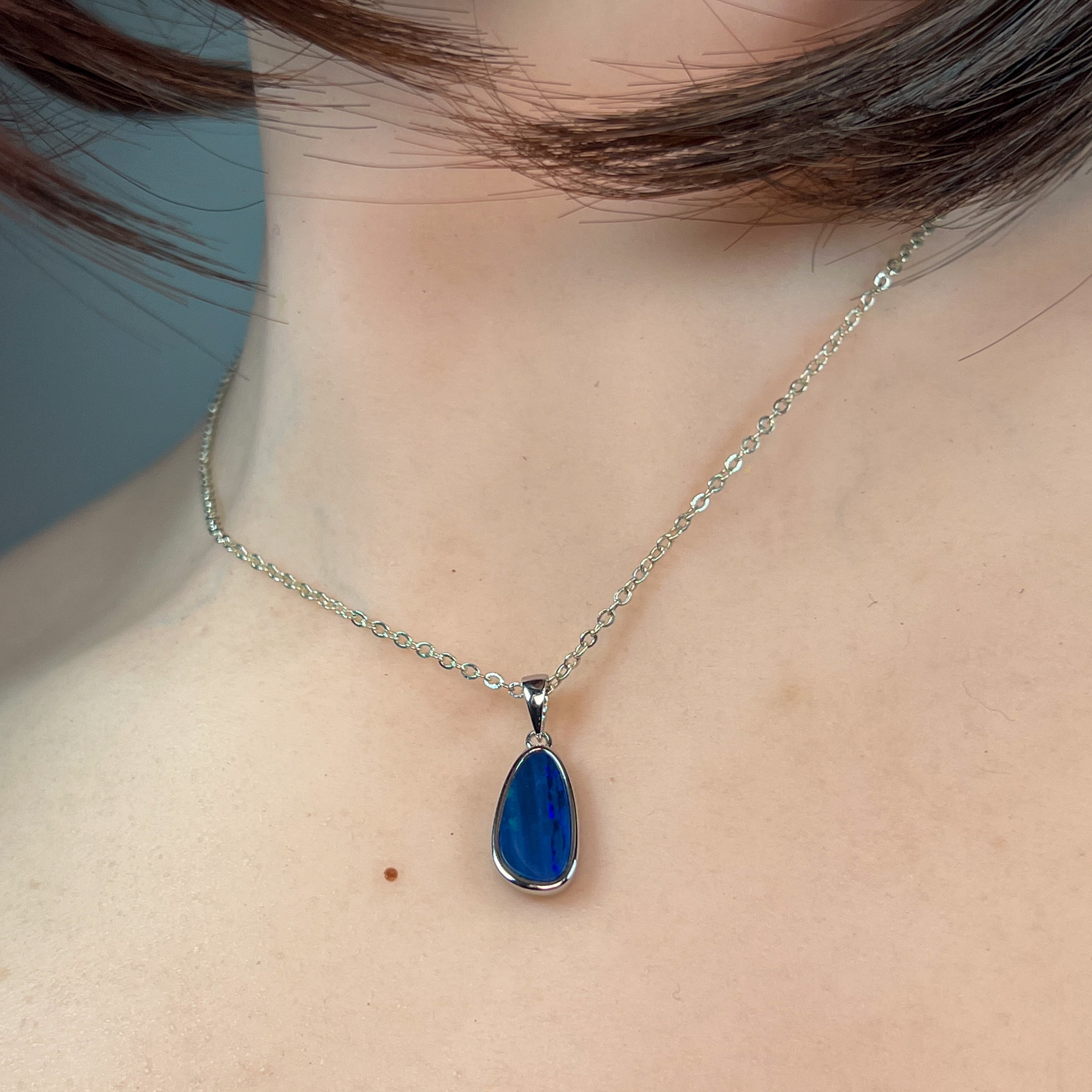 Sterling Silver Navy Blue Opal doublet pendant