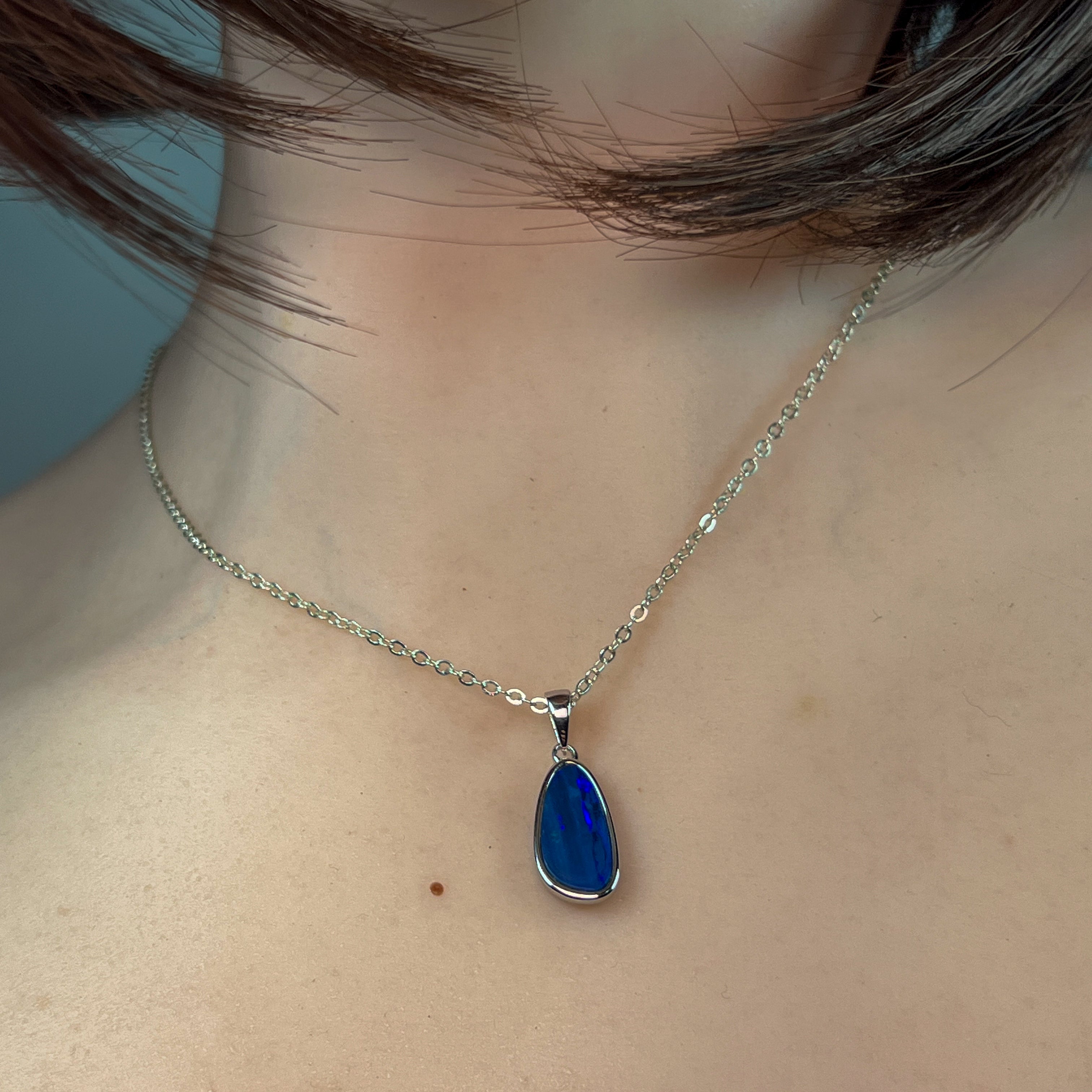 Elevate your jewellery collection with this stunning Sterling Silver Navy Blue Opal Doublet Pendant. Crafted from premium sterling silver, this piece showcases a captivating navy blue opal doublet that catches the light beautifully, creating mesmerising colour play with every movement. The doublet construction ensures durability while maintaining the opal's natural brilliance and depth. Perfect for layering or wearing as a statement piece, this pendant adds sophistication and elegance to any outfit. Whether you're treating yourself or searching for a meaningful gift, this timeless design offers exceptional beauty and quality that will be treasured for years to come.