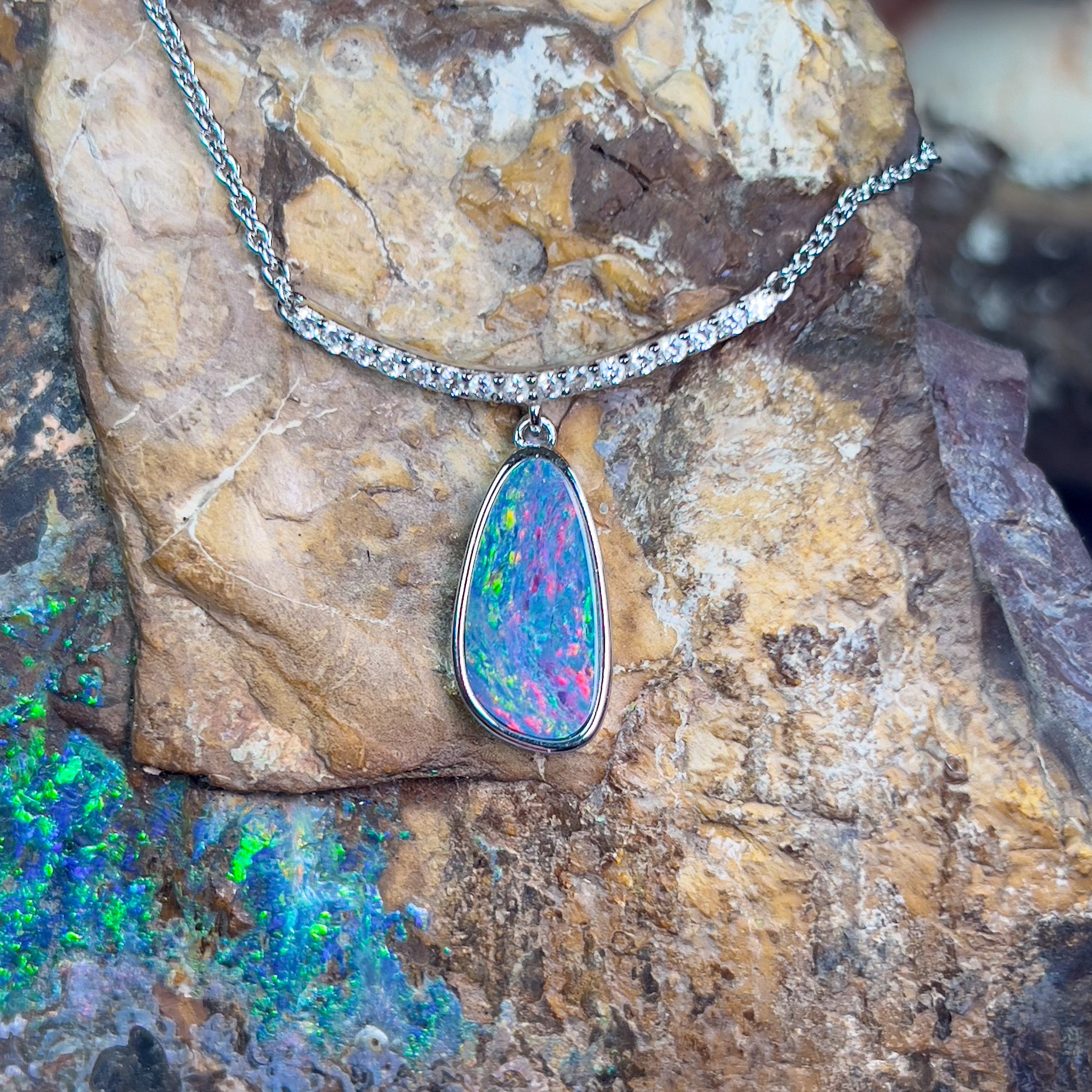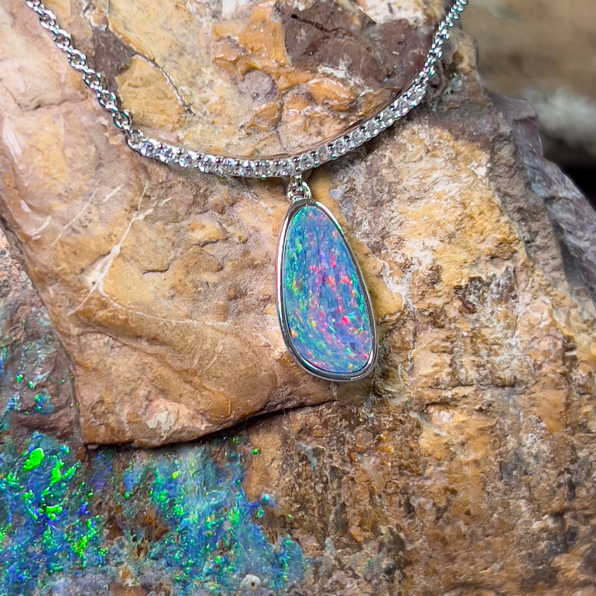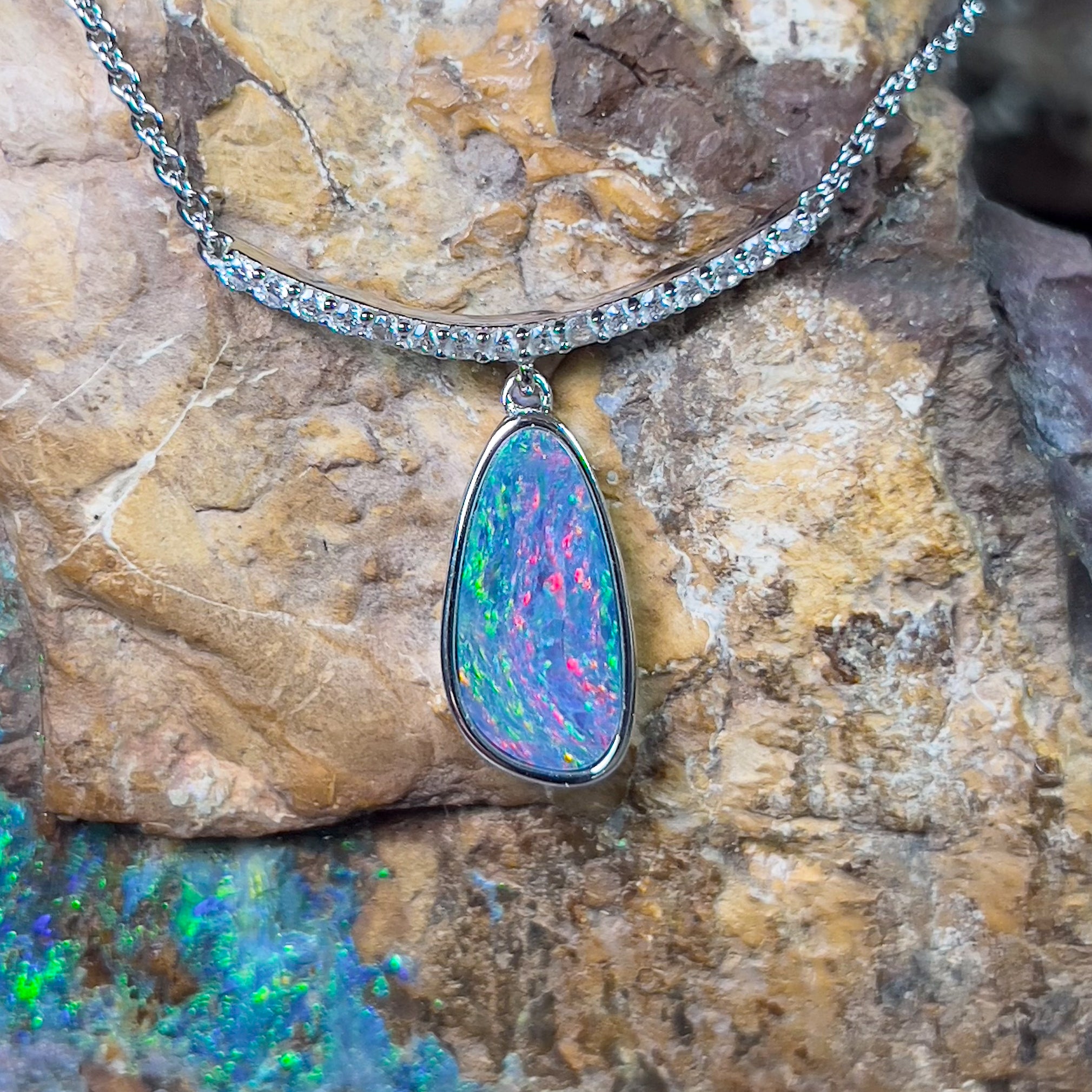 Sterling Silver Opal doublet and cubic zirconia necklace