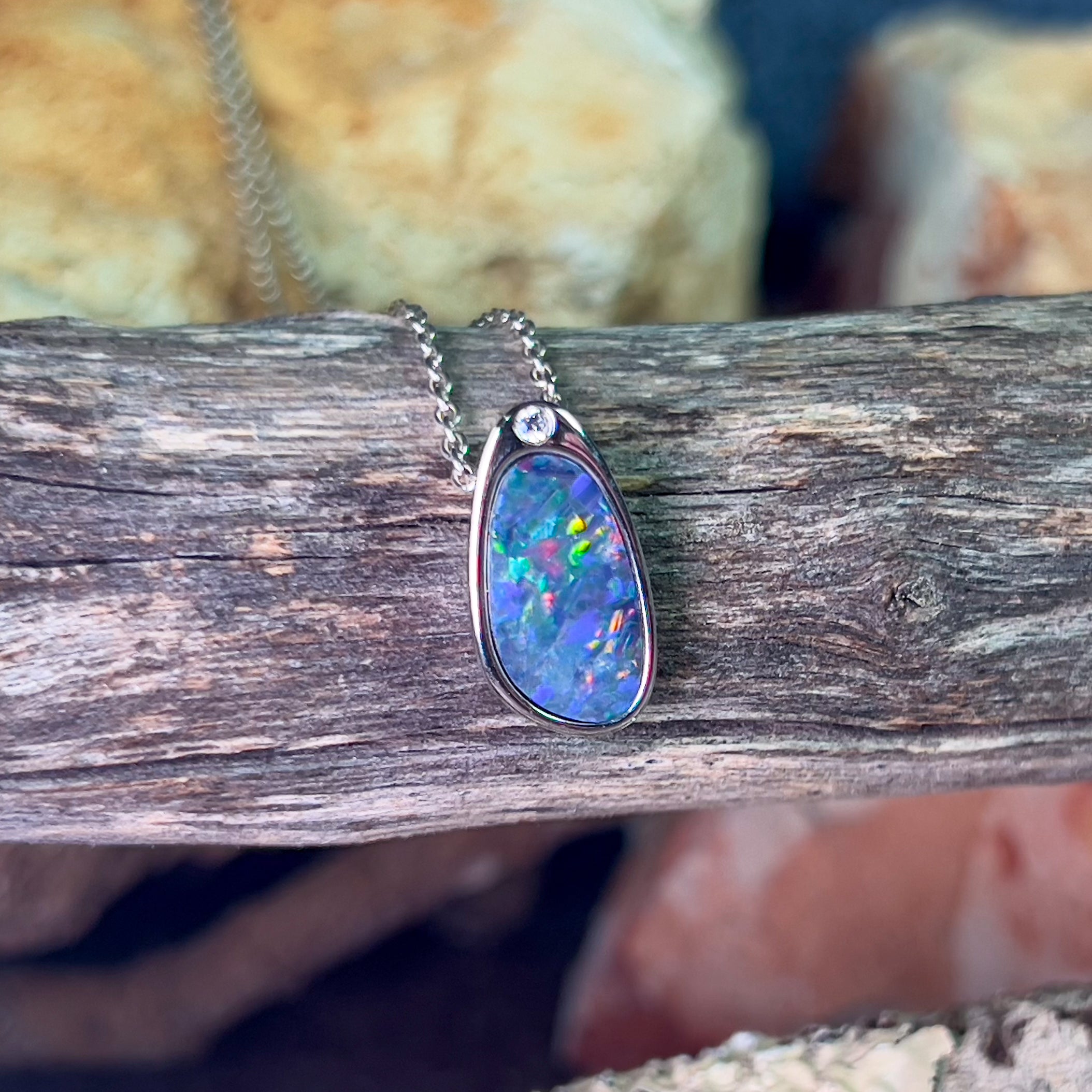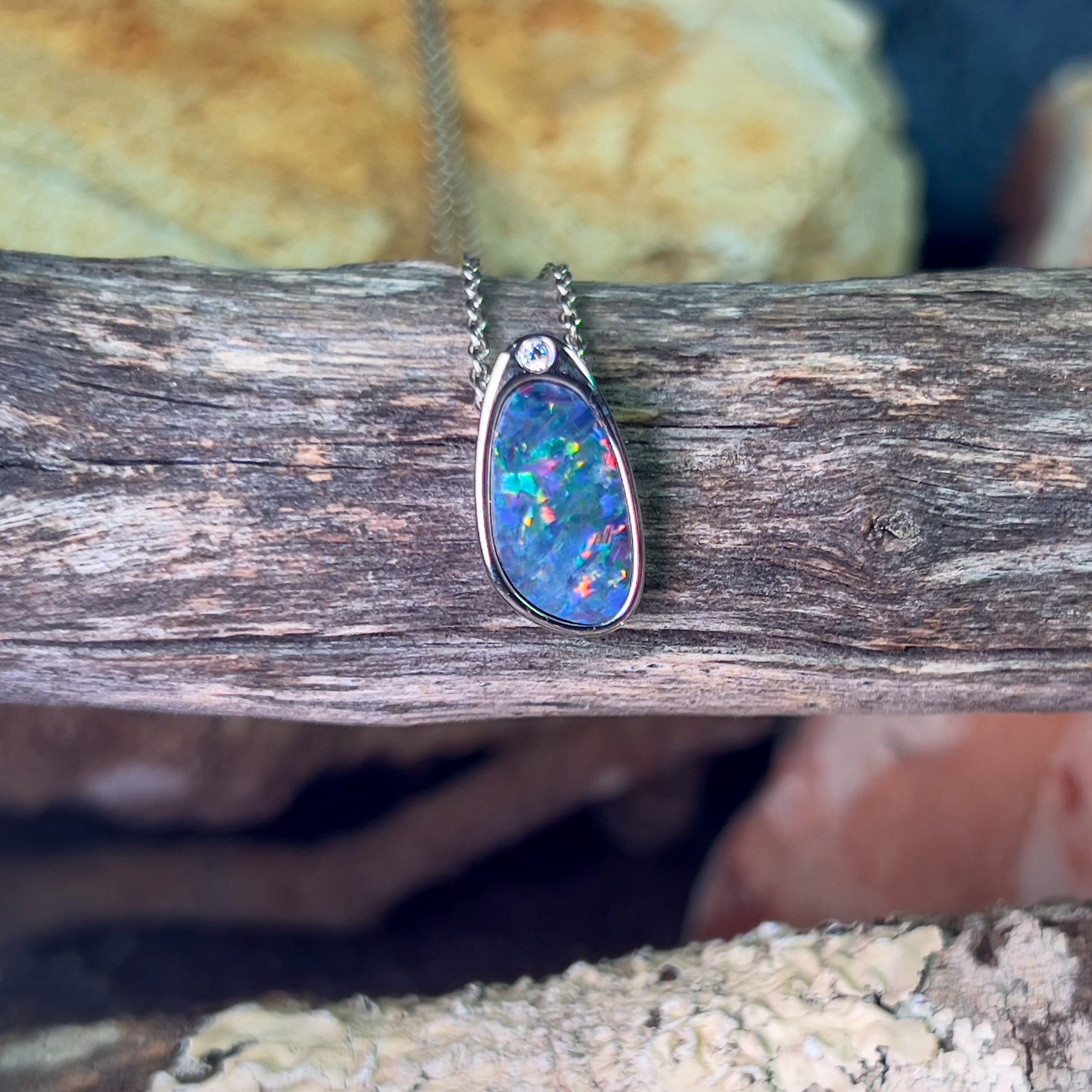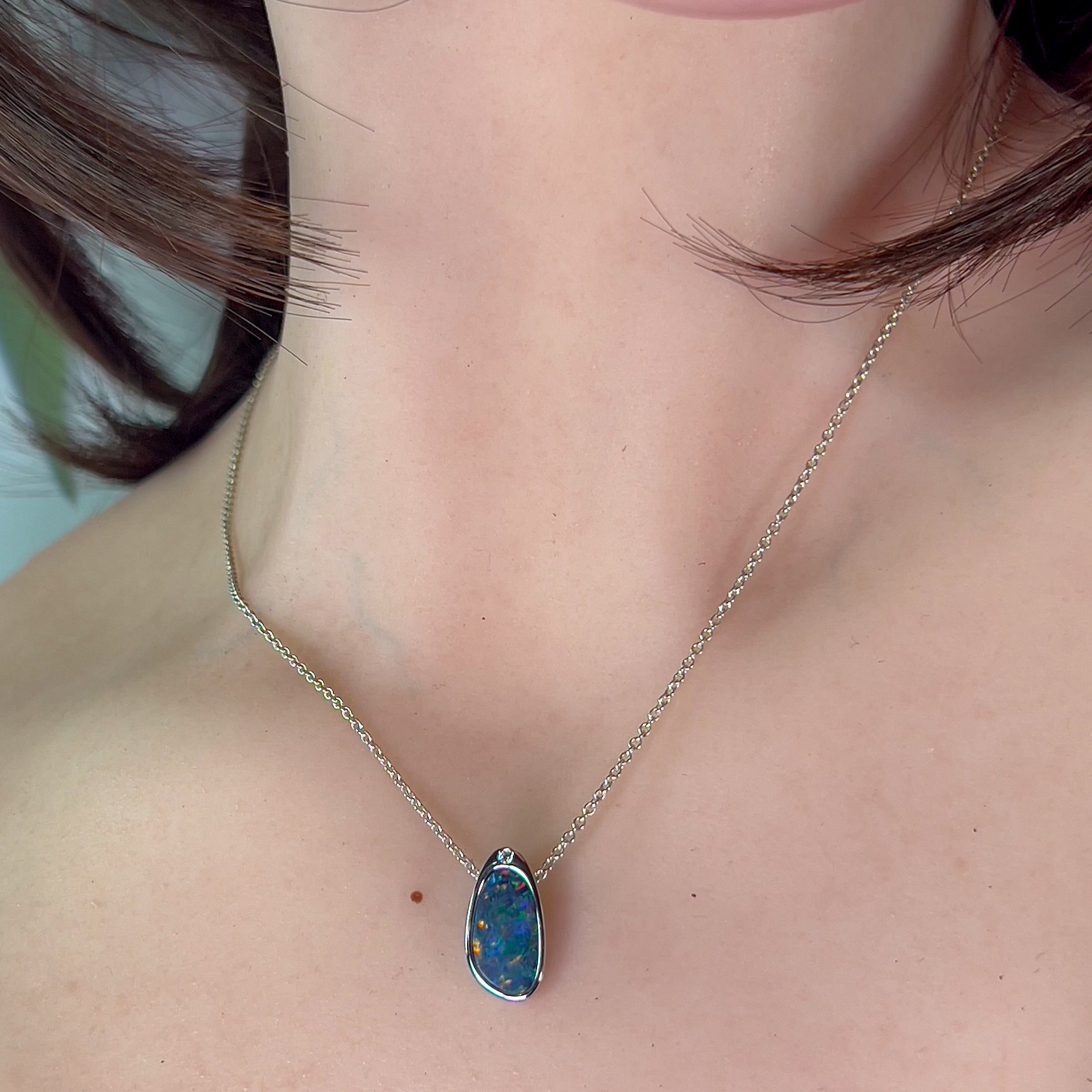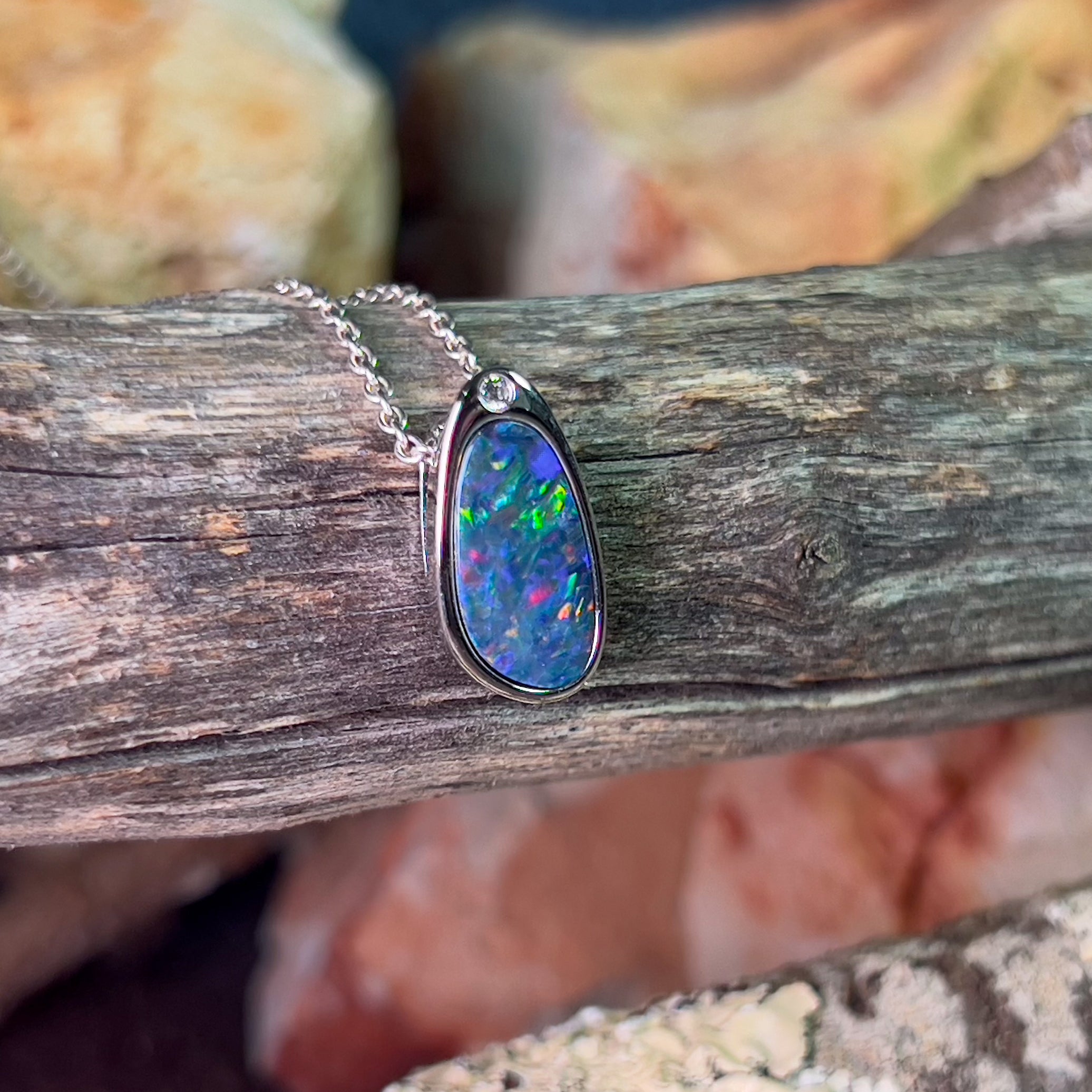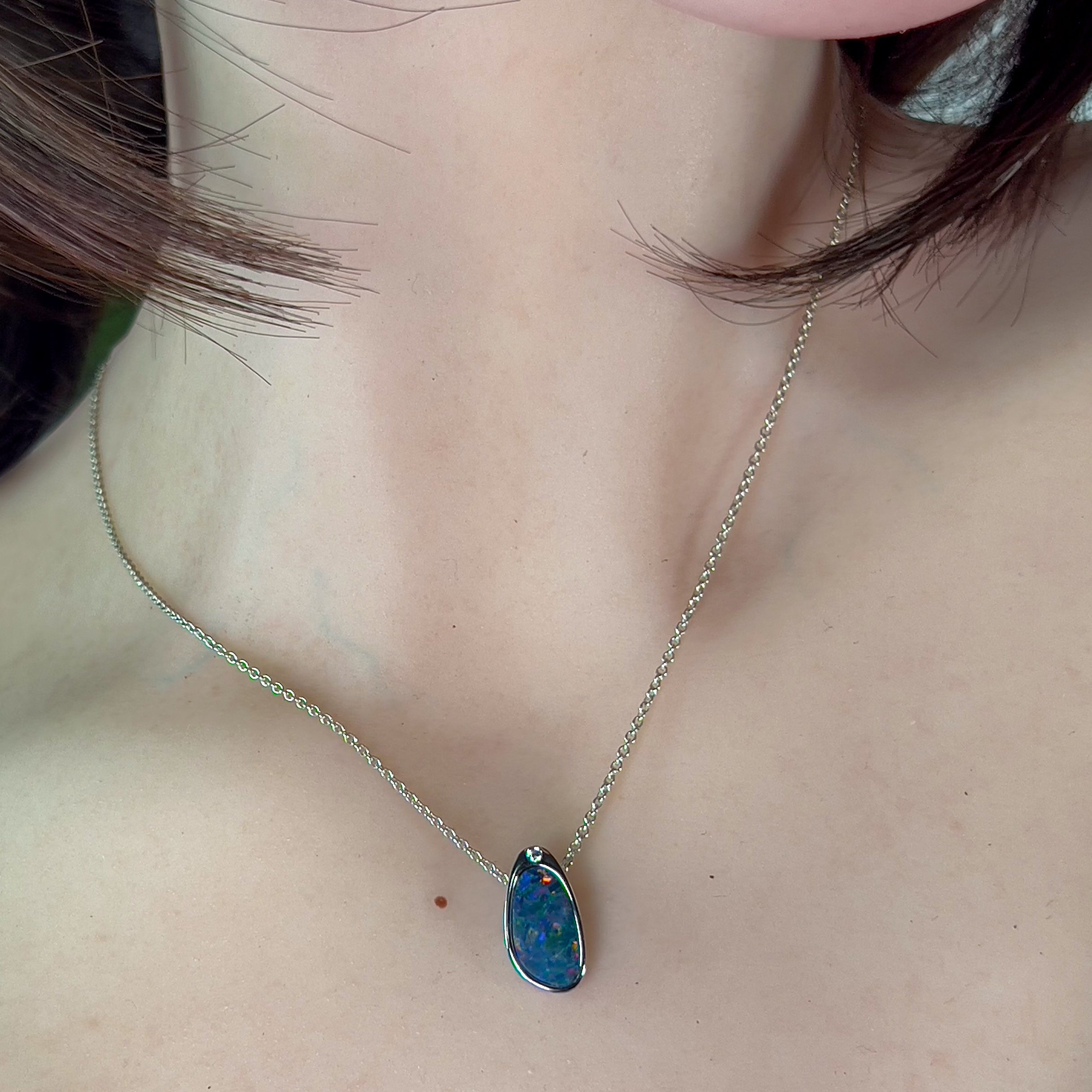 Experience the beauty and elegance of our Sterling Silver Opal doublet and cz pendant. The slider feature allows for easy adjustment of length, making it the perfect addition to any outfit. Sparkle and shine with this stunning pendant, a must-have for any jewelry collection.