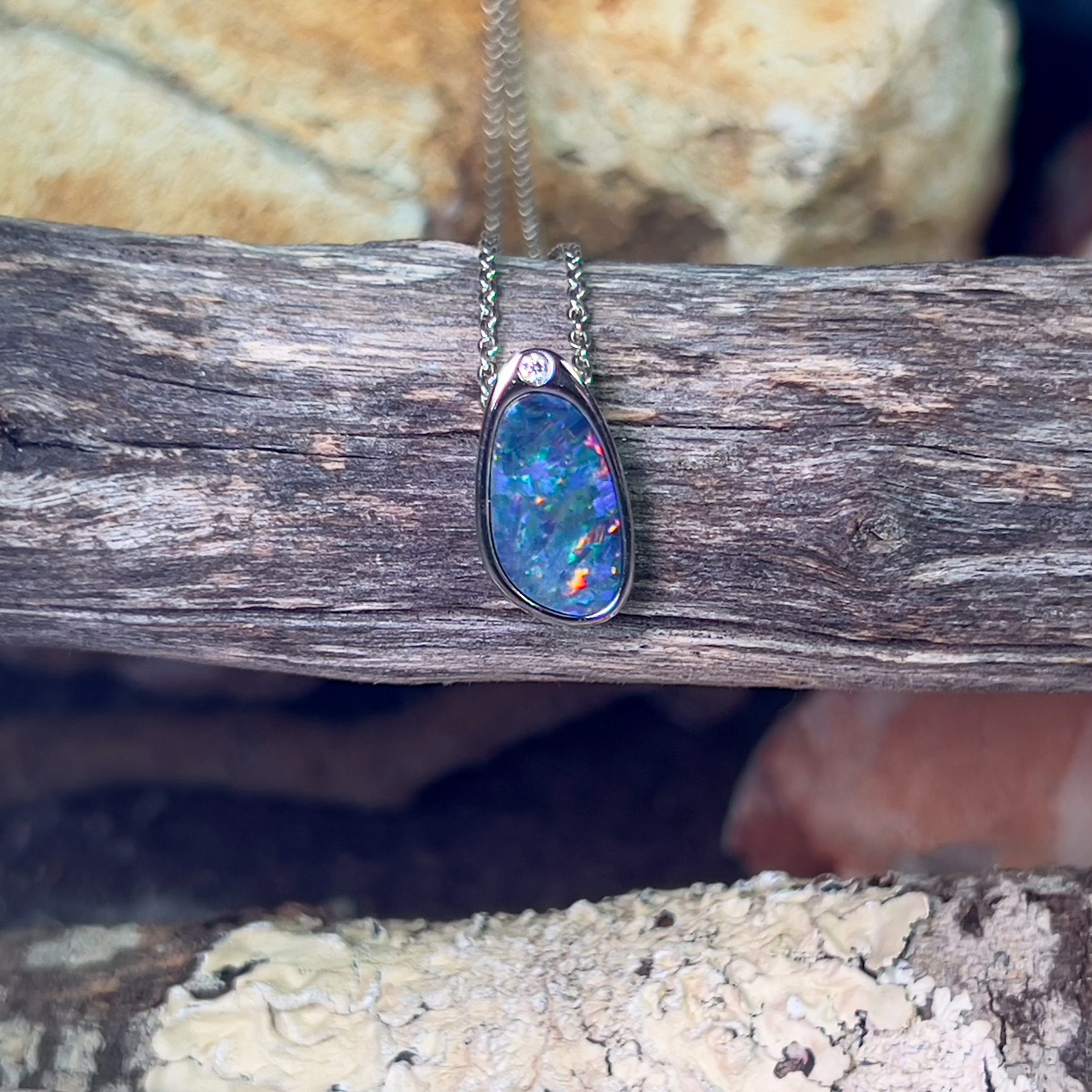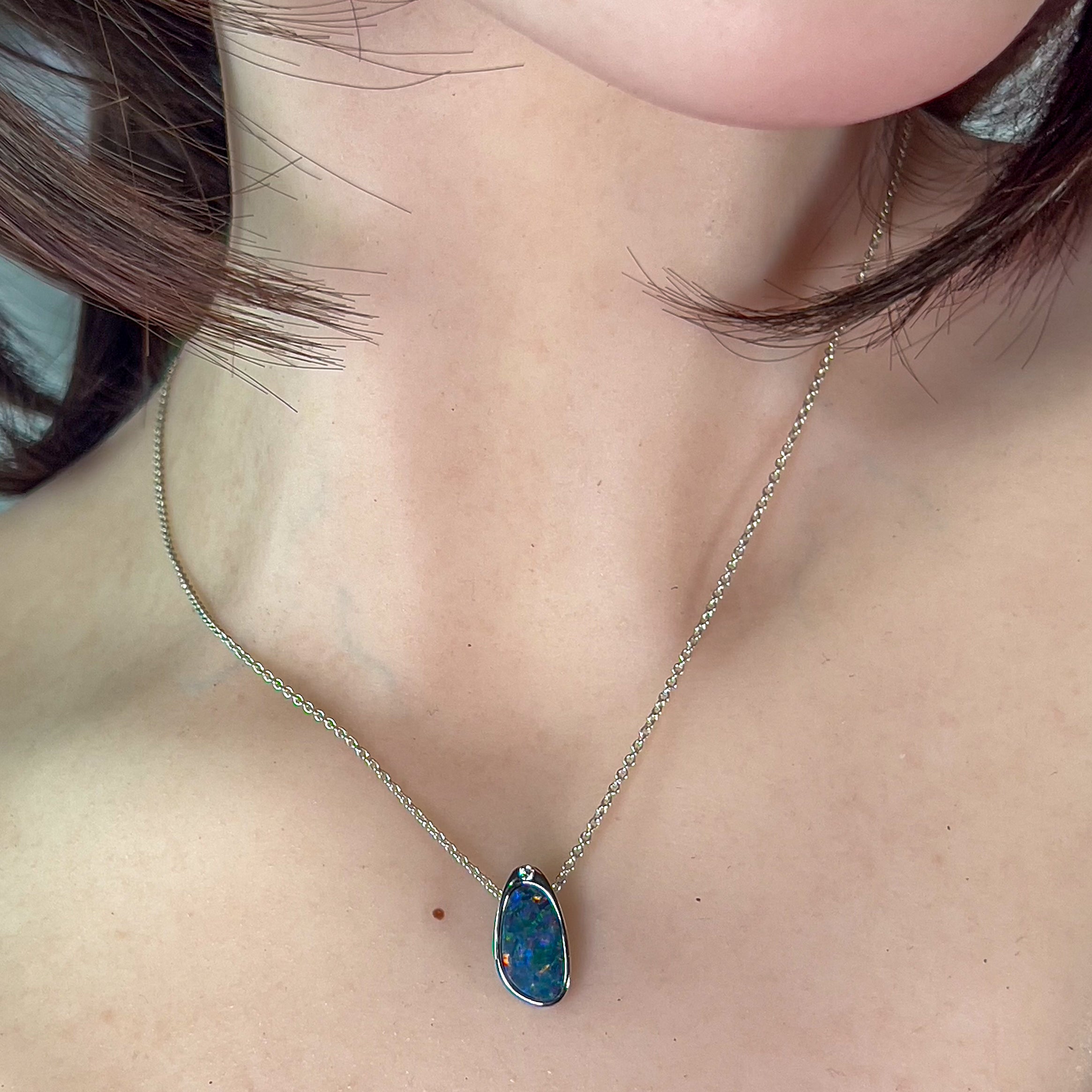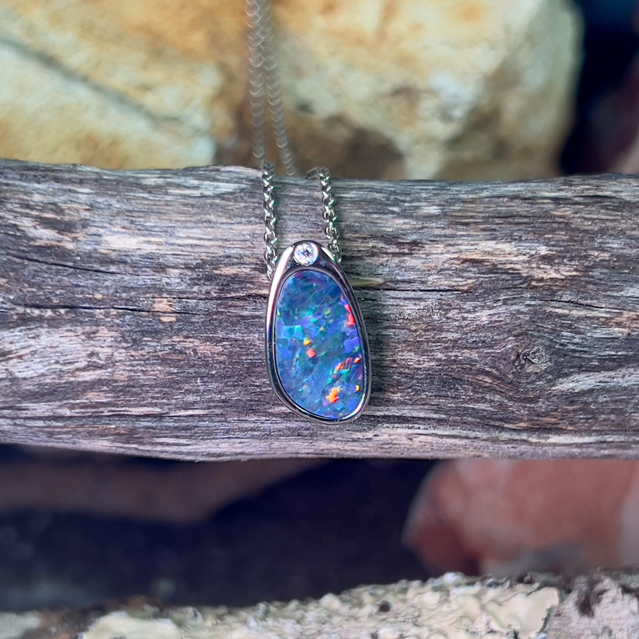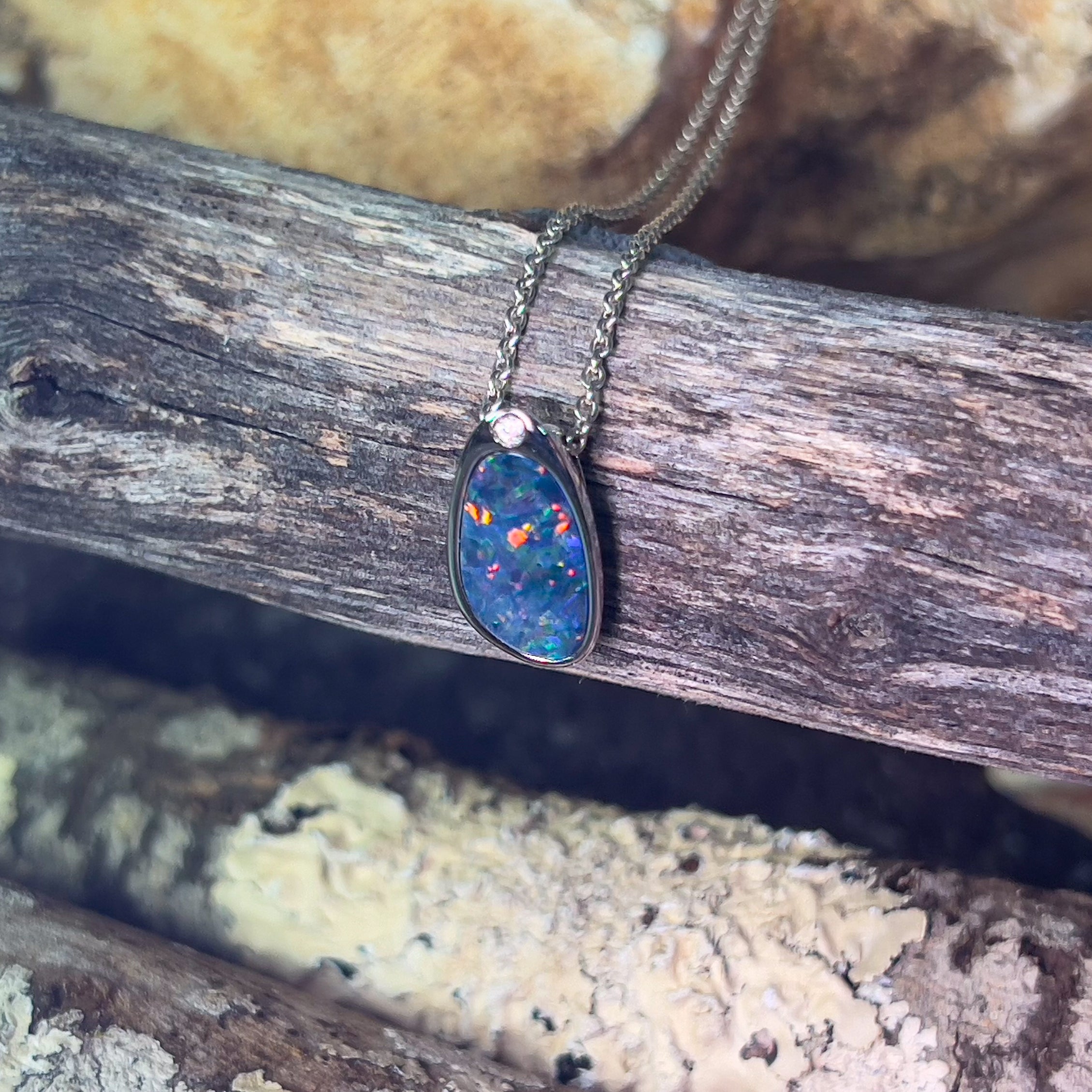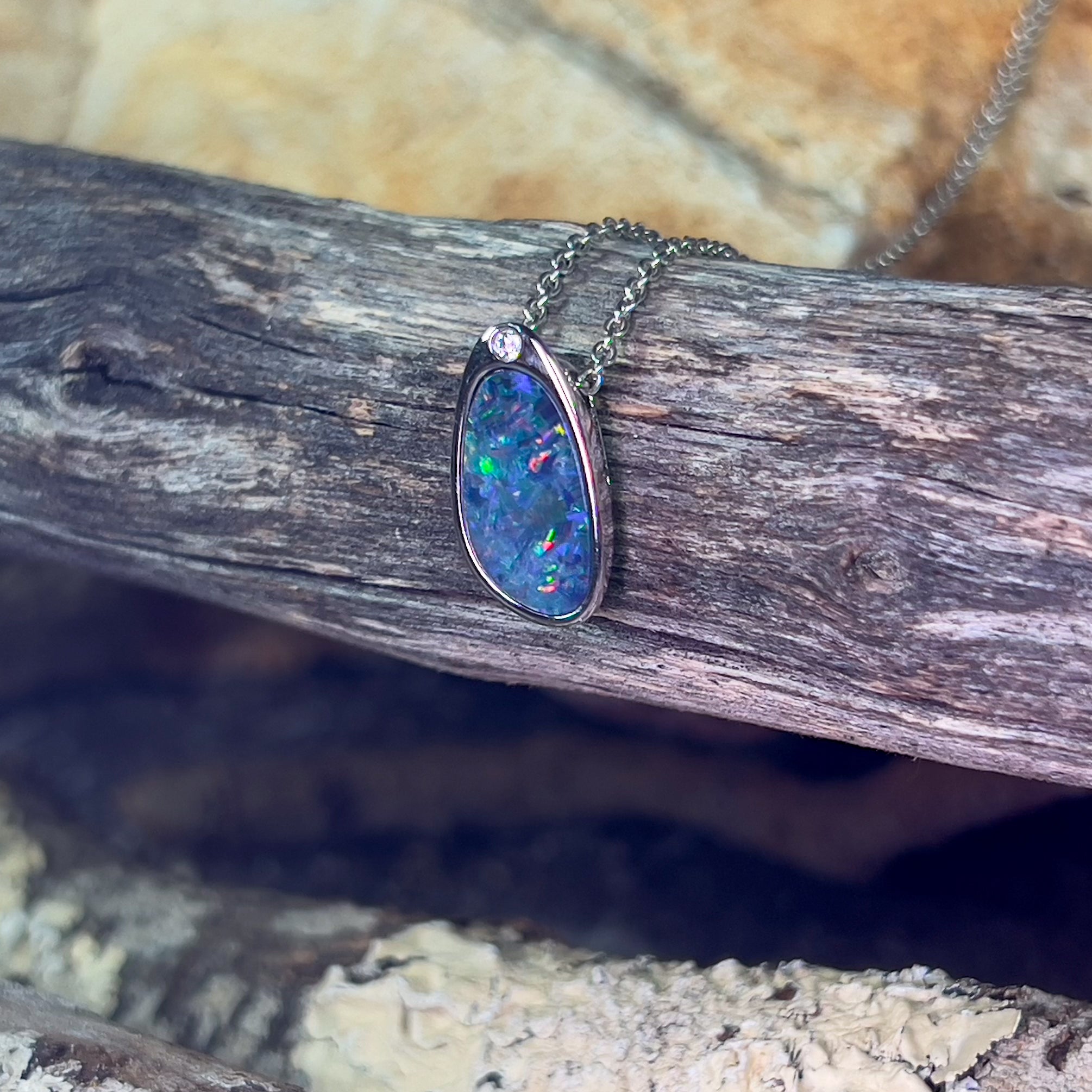 Experience the beauty and elegance of our Sterling Silver Opal doublet and cz pendant. The slider feature allows for easy adjustment of length, making it the perfect addition to any outfit. Sparkle and shine with this stunning pendant, a must-have for any jewelry collection.