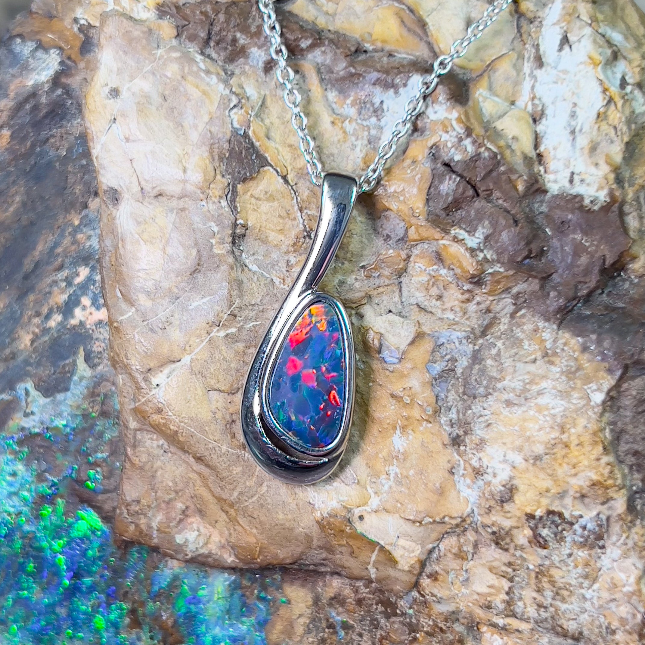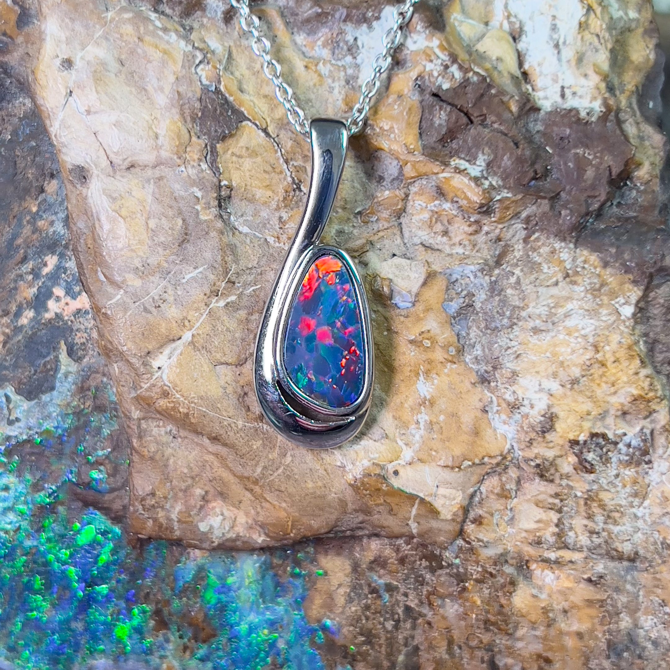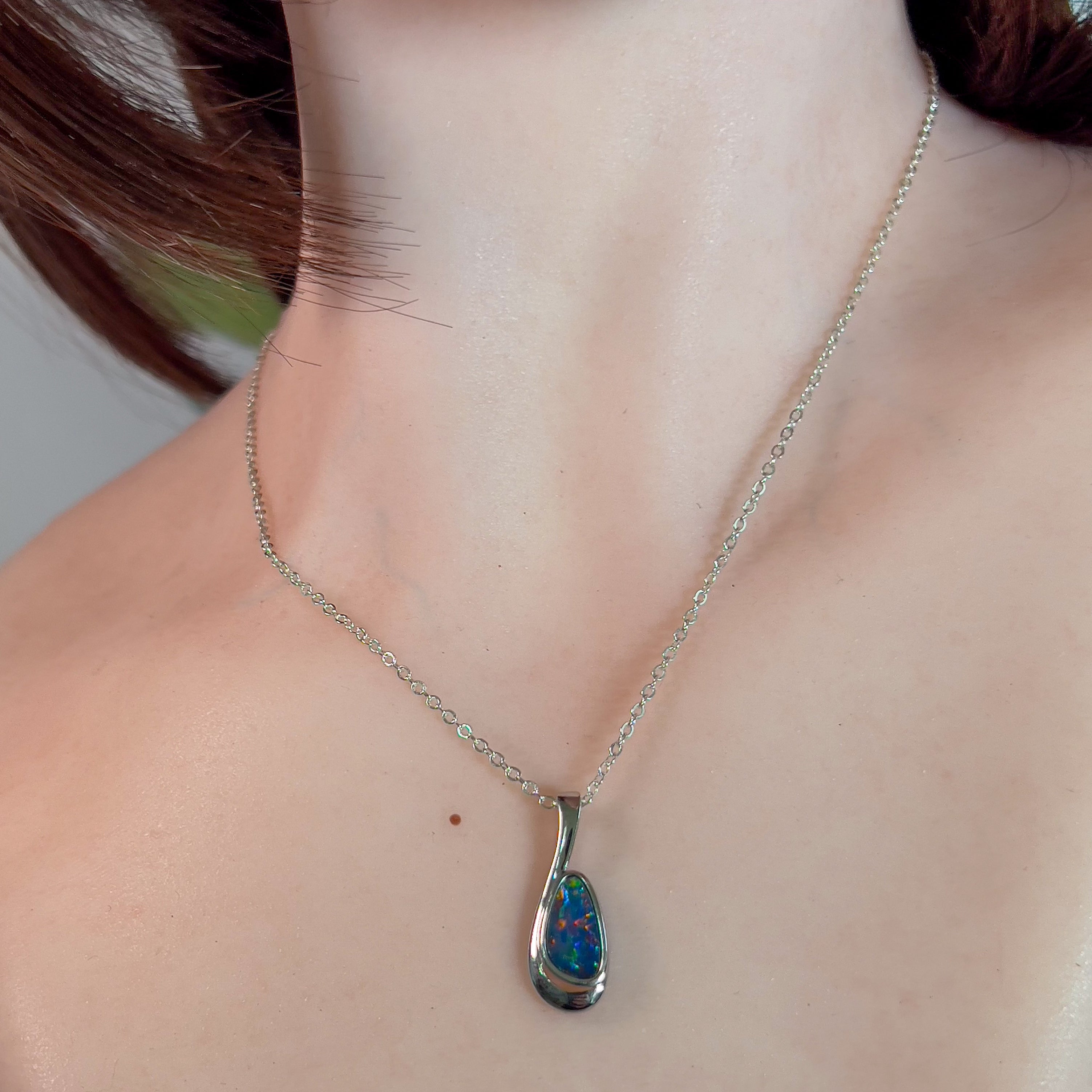 Sterling Silver Opal doublet loop pendant